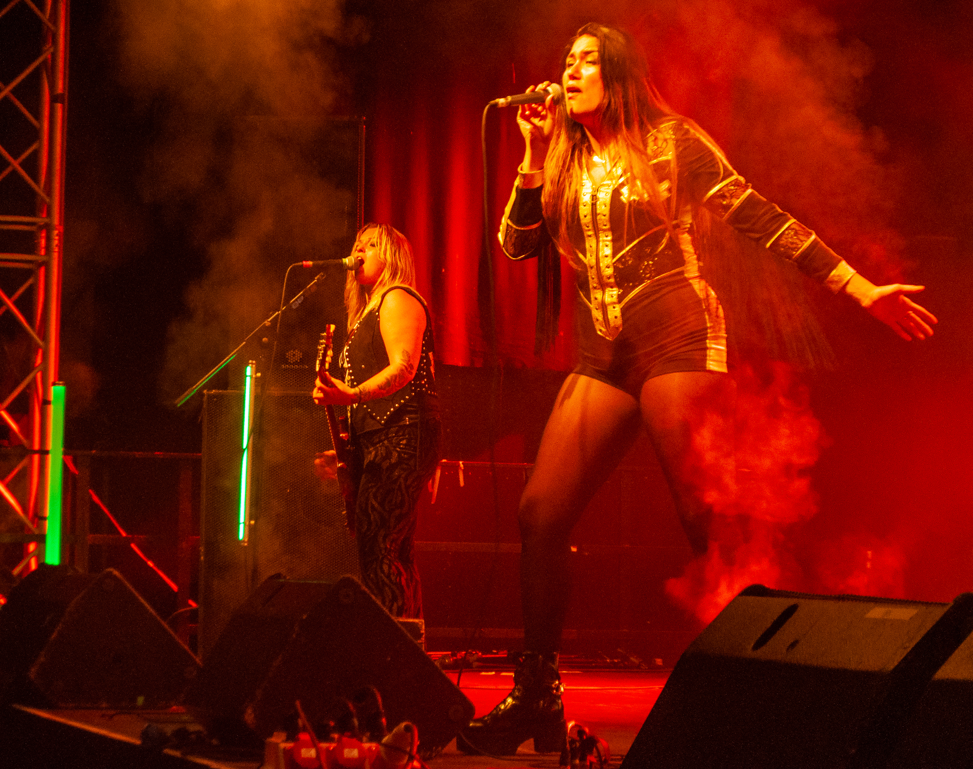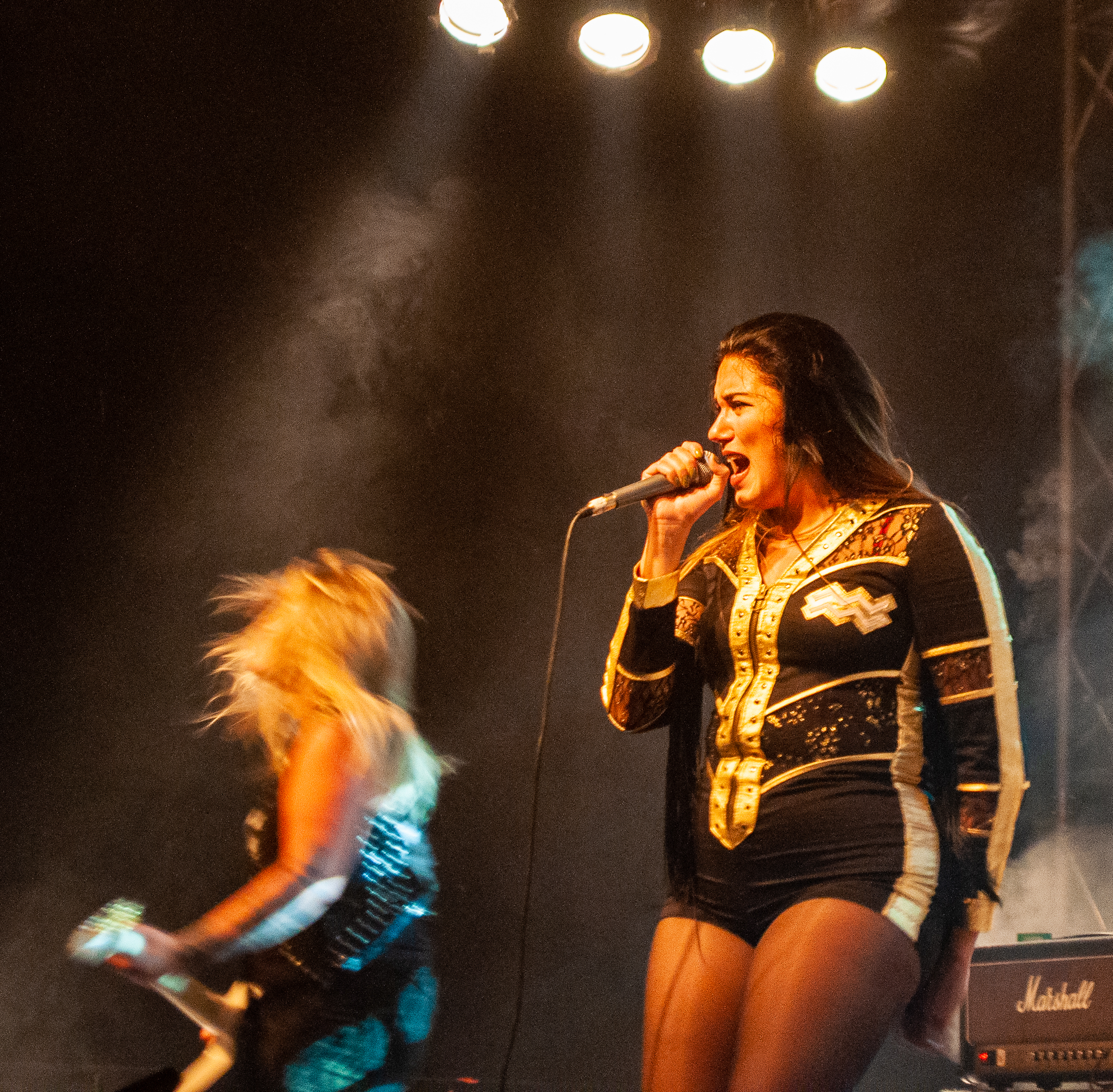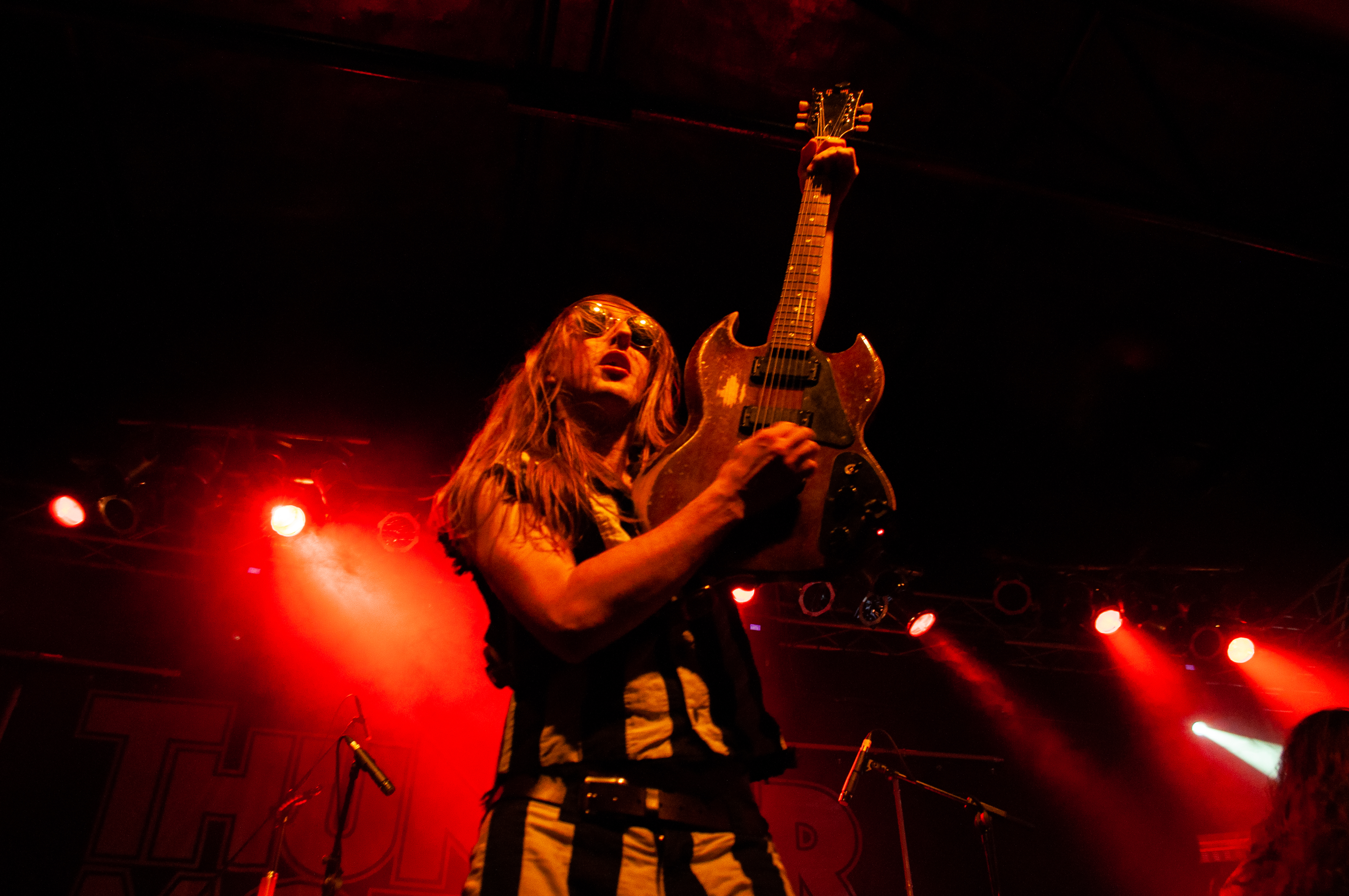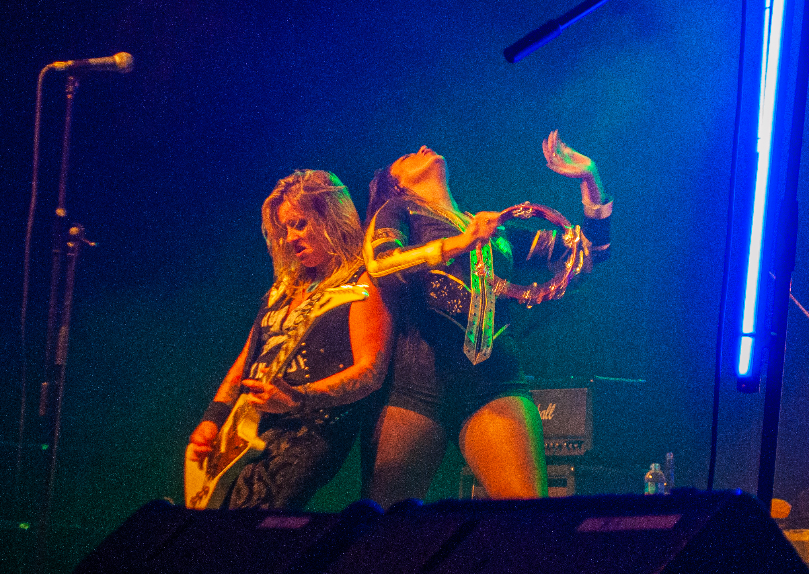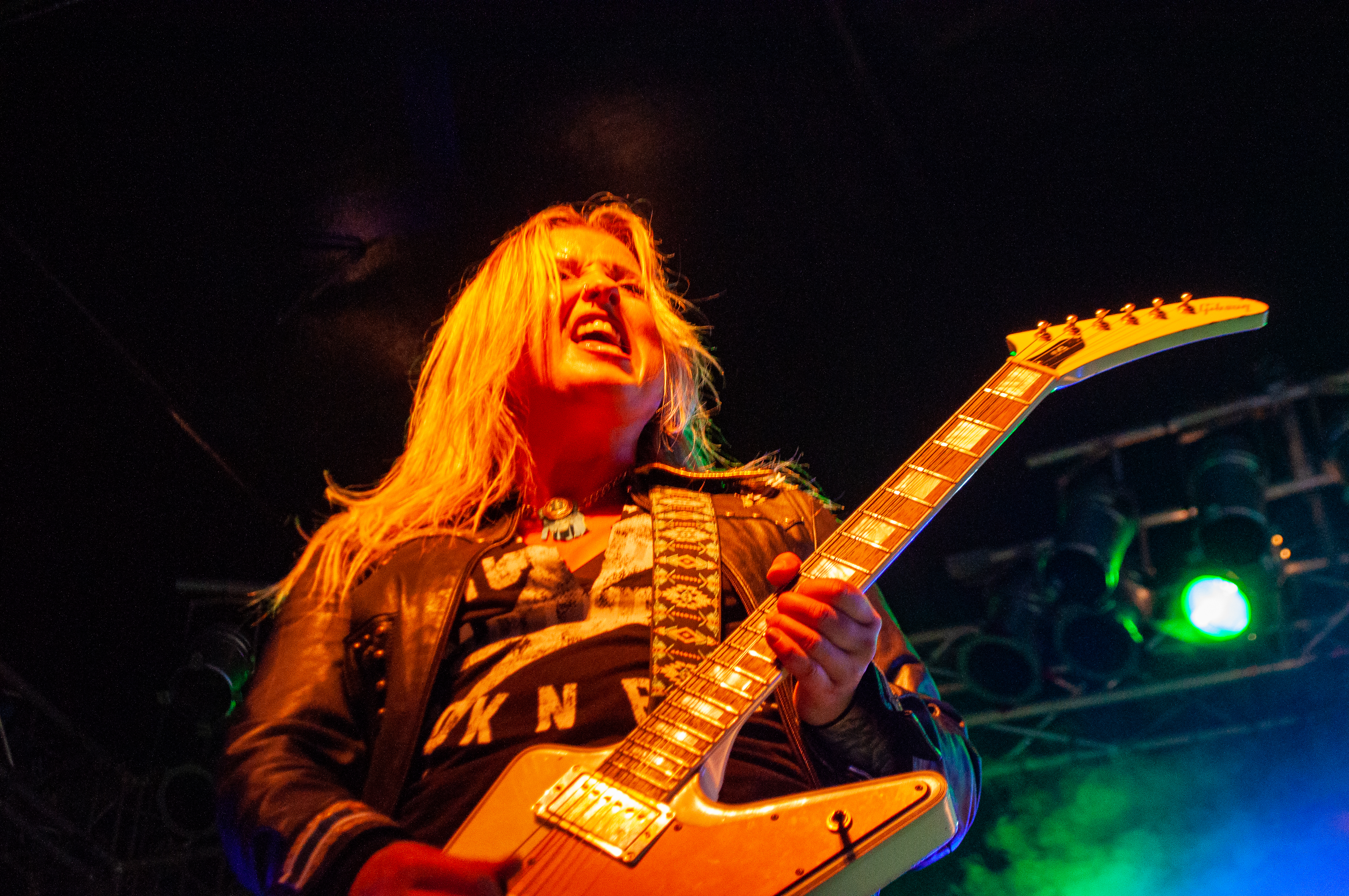 THUNDERMOTHER legen hier noch eine Schippe drauf: Mit „Whatever“ starten sie ihr Set und geben von Anfang an Vollgas. Es folgen „The Road is ours“ und das lässig groovende „Dog from Hell“. Die Energie der vier Damen ist ansteckend und ihr Hardrock geht durch Mark und Bein. Älteres Material wie „Thunderous“ und „Deal with the Devil“ gehen live genauso gut, wie die aktuellen Tracks „Watch Out“ und das eingängige „I Don't Know You“. Was mich und das Publikum an diesem gelungenen Konzertabend am meisten beeindruckt, ist die grandiose Spielfreude mit der THUNDERMOTHER hier überzeugen. Die charismatische Rockröhre Guernica Mancini ist stimmlich voll auf der Höhe, Emlee Johansson treibt die Truppe am Schlagzeug an und Bassistin Mona Lindgren und Gitarristin Filippa Nässil posen um die Wette. Diese großen Rock- und Metalposen beherrscht die Truppe vorzüglich. Bandchefin Filippa transformiert auf der Bühne zur unbezähmbaren Rockmaschine, mit wildem Mienenspiel. Die neue Bassistin Mona Lindgren ist ein Gewinn für die Band und wirbelt bewegungsfreudig über die Bühne. In dieser Verfassung könnten THUNDERMOTHER bei der anstehenden Support-Tour den SCORPIONS leicht die Show stehlen!