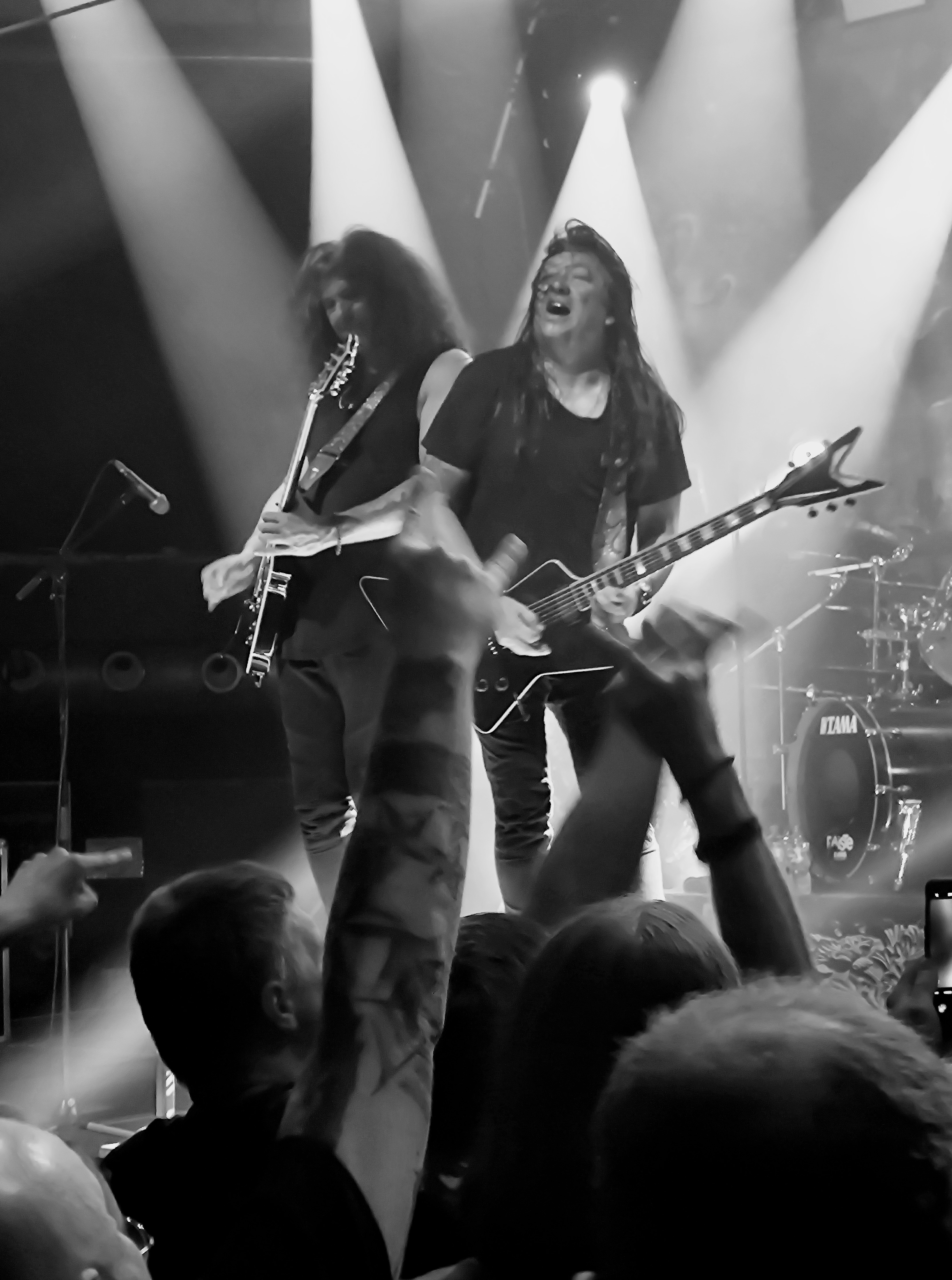 Als Opener waren HEATHEN am Start und ließen nichts anbrennen. Sie eröffneten ihren Gig mit den beiden ersten Songs des immer noch aktuellen Albums "Empire Of The Blind". Bei aller Kritik an diesem Longplayer (die ich nicht teile) muss man sagen, dass diese Tracks live super funktionieren. Später im Set kam noch das getragene "Sun In My Head" und war ein absolutes Highlight. Natürlich gab es noch jede Menge Old-School-Stuff wie das grandiose "Goblin's Blade". Die instrumentale Leistung der Band war extrem tight, an den Vocals scheiden sich jedoch schon immer die Geister. Klar ist er live bissel dünn, aber für eine Thrash Band gibt es bei HEATHEN ungewöhnlich gute Gesangslinien. Später hat sich die Band noch am Merch-Stand blicken lassen und sich für alle Fans Zeit genommen. Sehr sympathische Typen.