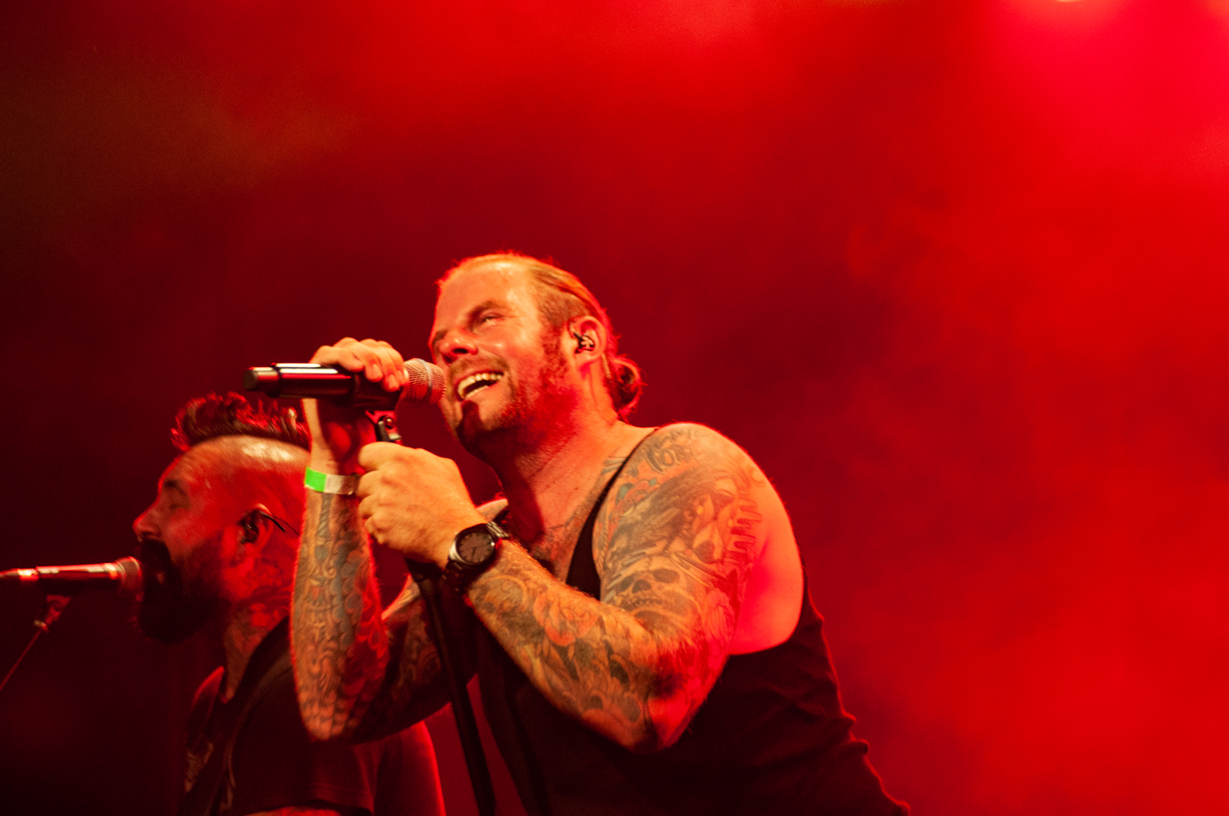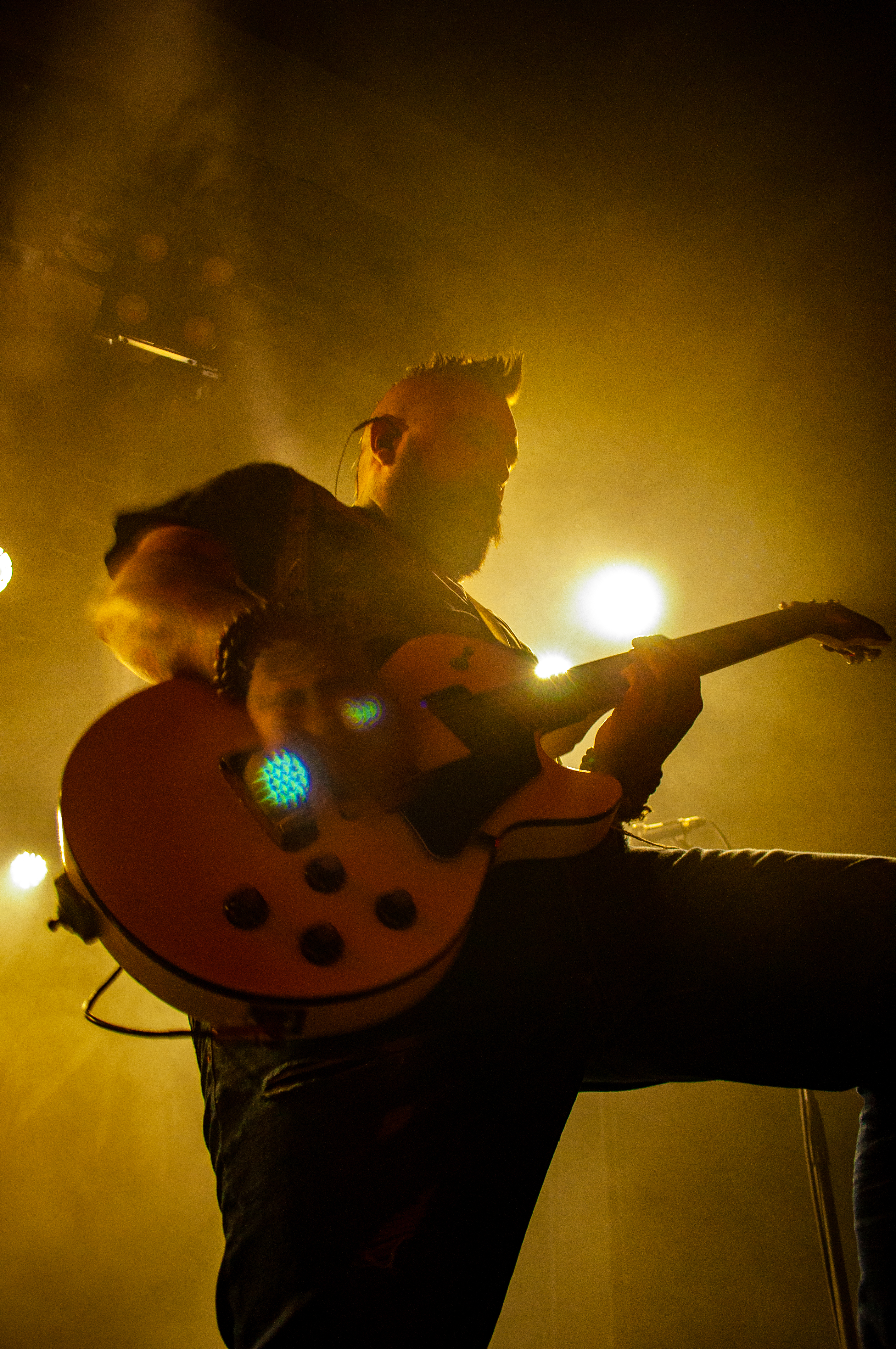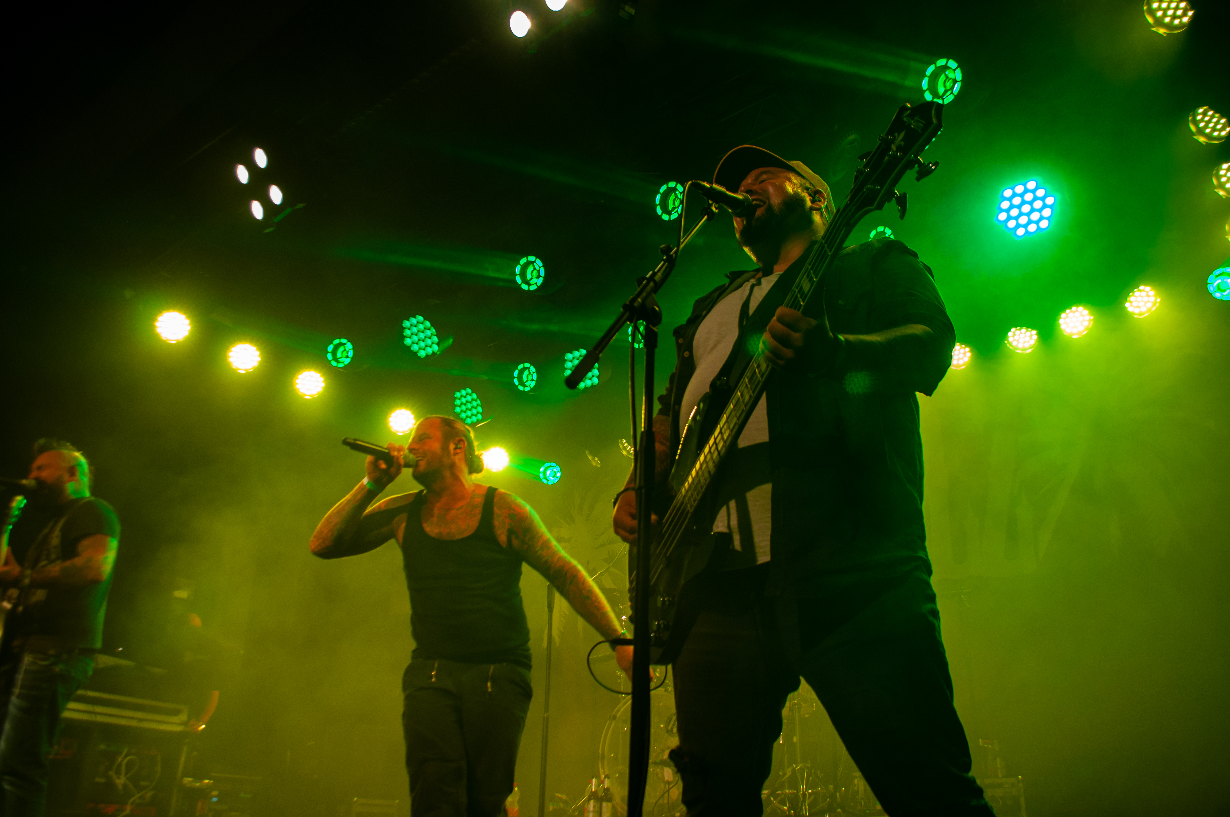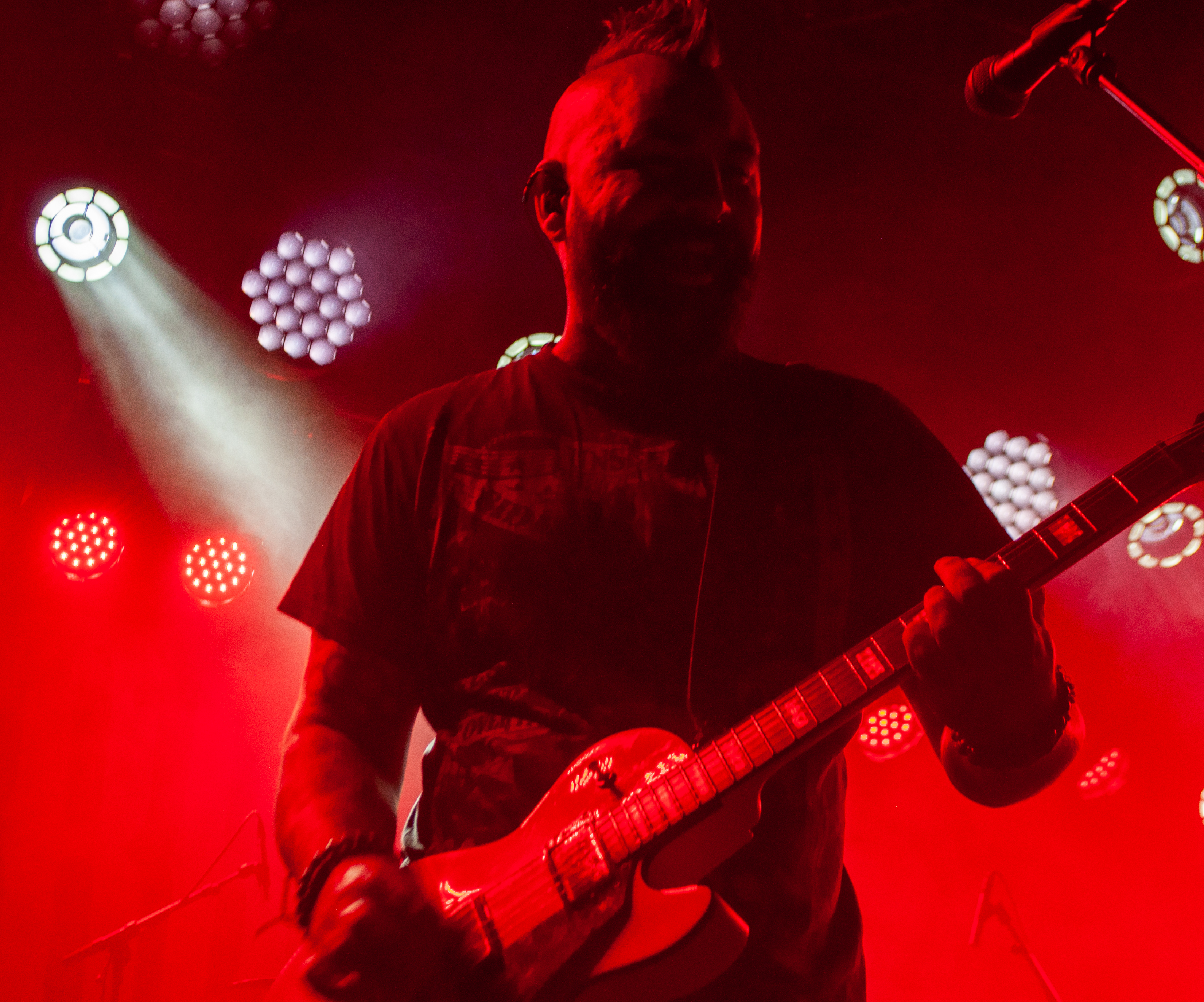 Um 20:50 Uhr starten KÄRBHOLZ mit „Überdosis Leben“, „Keiner befiehlt“ und der Singleauskopplung „Niemals Fallen“ vom aktuellen Album „Kontra“. Das Publikum geht direkt gut mit und zeigt sich textsicher. Pogo und Bier, darum ist man hier. Geliefert wird eine ordentliche Portion Deuschrock mit rauem Gesang und latent punkige Attitüde. Weiter geht es mit Songs wie „Du bist König“, der countrymäßigen Ode an die Heimat auf dem Lande „Kind aus Hinterwald“ und „Der schwarze Schwan“. Zwischenzeitig übernimmt Gitarrist Adrian Kühn das Mikro. Im Zugabe-Teil wird es noch einmal besonders enthusiastisch. Voller Inbrunst singt Frontmann Torben Höffgen gemeinsam mit dem Publikum „Tiefflieger“ und „Mutmacher“. Mit „Feuerräder“ ist nach ca. zwei Stunden Spielzeit Zapfenstreich und die Schaluppe legt gegen 23 Uhr wieder an. „Eine laute Fahrt über den Rhein Teil II“ ist Geschichte und geht im kommenden Jahr bestimmt in Runde Drei.