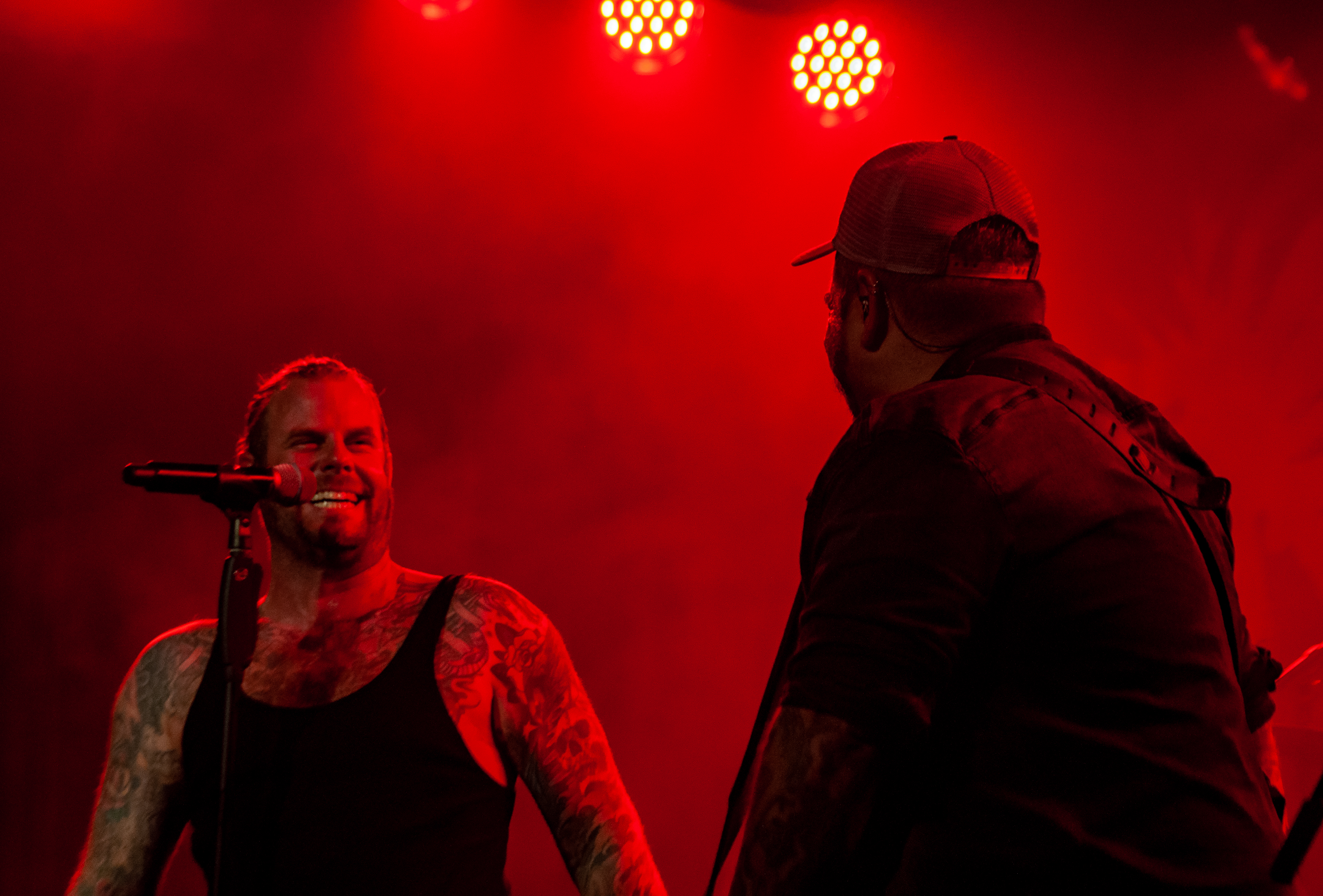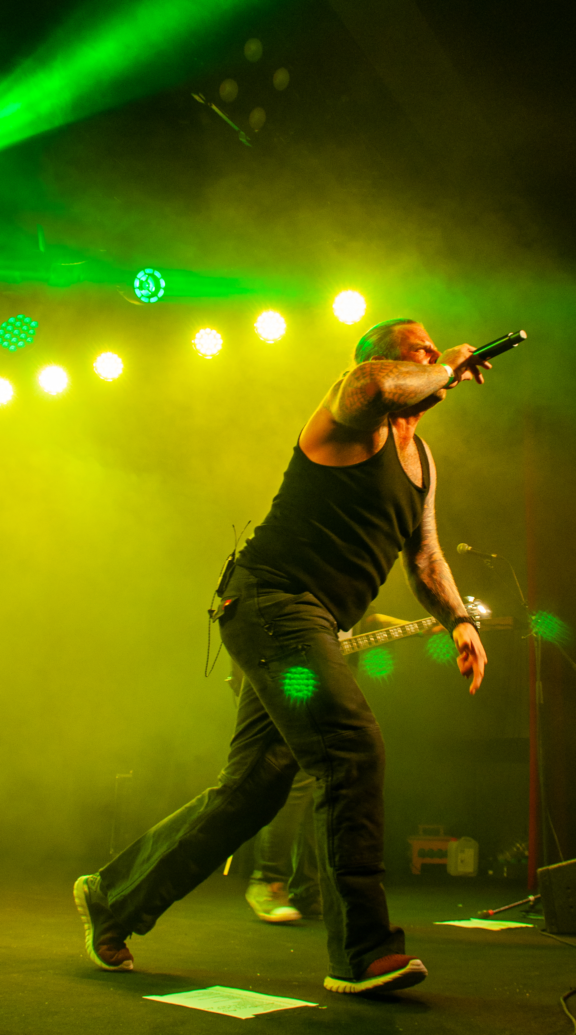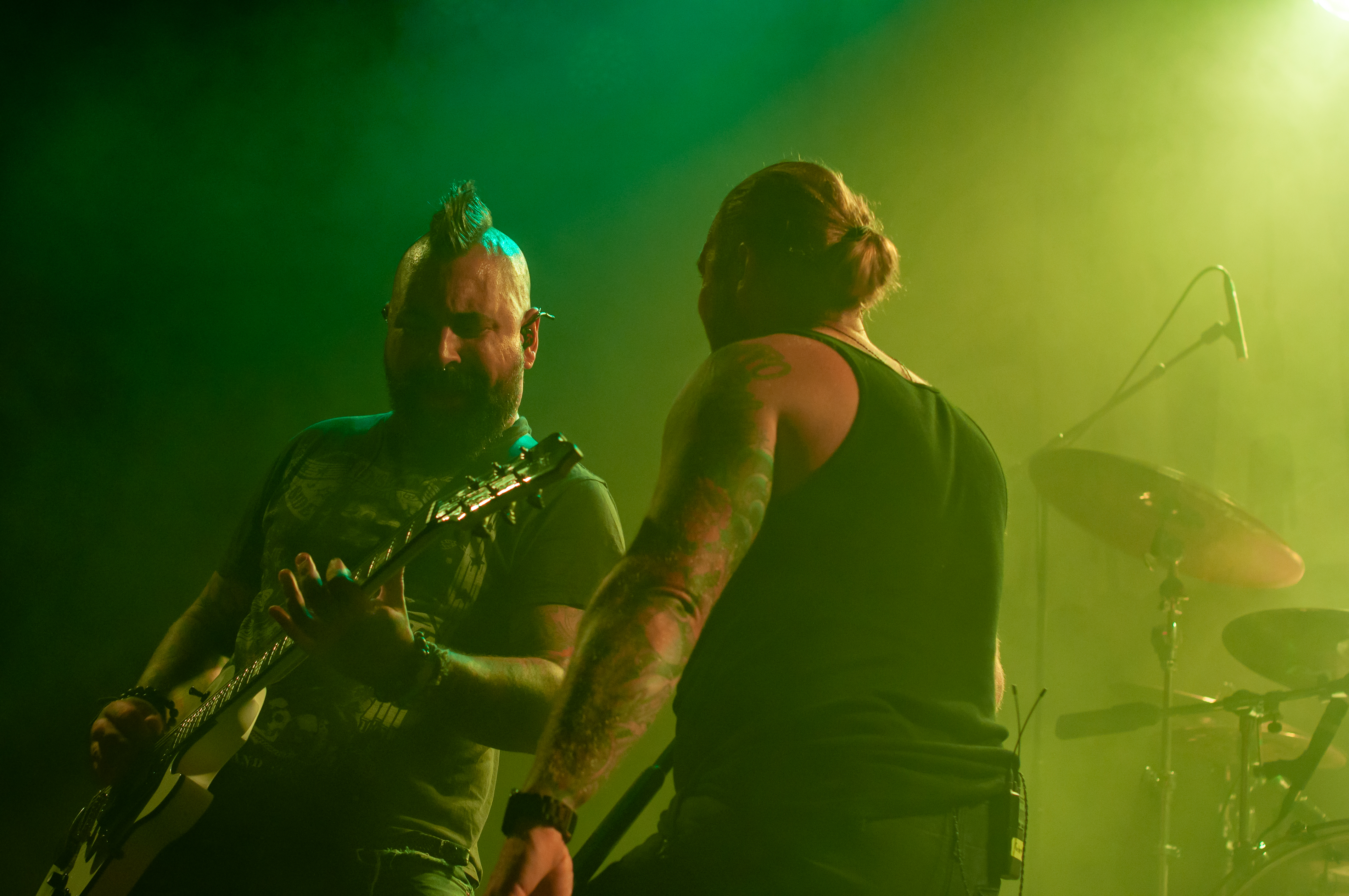 Um 20:50 Uhr starten KÄRBHOLZ mit „Überdosis Leben“, „Keiner befiehlt“ und der Singleauskopplung „Niemals Fallen“ vom aktuellen Album „Kontra“. Das Publikum geht direkt gut mit und zeigt sich textsicher. Pogo und Bier, darum ist man hier. Geliefert wird eine ordentliche Portion Deuschrock mit rauem Gesang und latent punkige Attitüde. Weiter geht es mit Songs wie „Du bist König“, der countrymäßigen Ode an die Heimat auf dem Lande „Kind aus Hinterwald“ und „Der schwarze Schwan“. Zwischenzeitig übernimmt Gitarrist Adrian Kühn das Mikro. Im Zugabe-Teil wird es noch einmal besonders enthusiastisch. Voller Inbrunst singt Frontmann Torben Höffgen gemeinsam mit dem Publikum „Tiefflieger“ und „Mutmacher“. Mit „Feuerräder“ ist nach ca. zwei Stunden Spielzeit Zapfenstreich und die Schaluppe legt gegen 23 Uhr wieder an. „Eine laute Fahrt über den Rhein Teil II“ ist Geschichte und geht im kommenden Jahr bestimmt in Runde Drei.