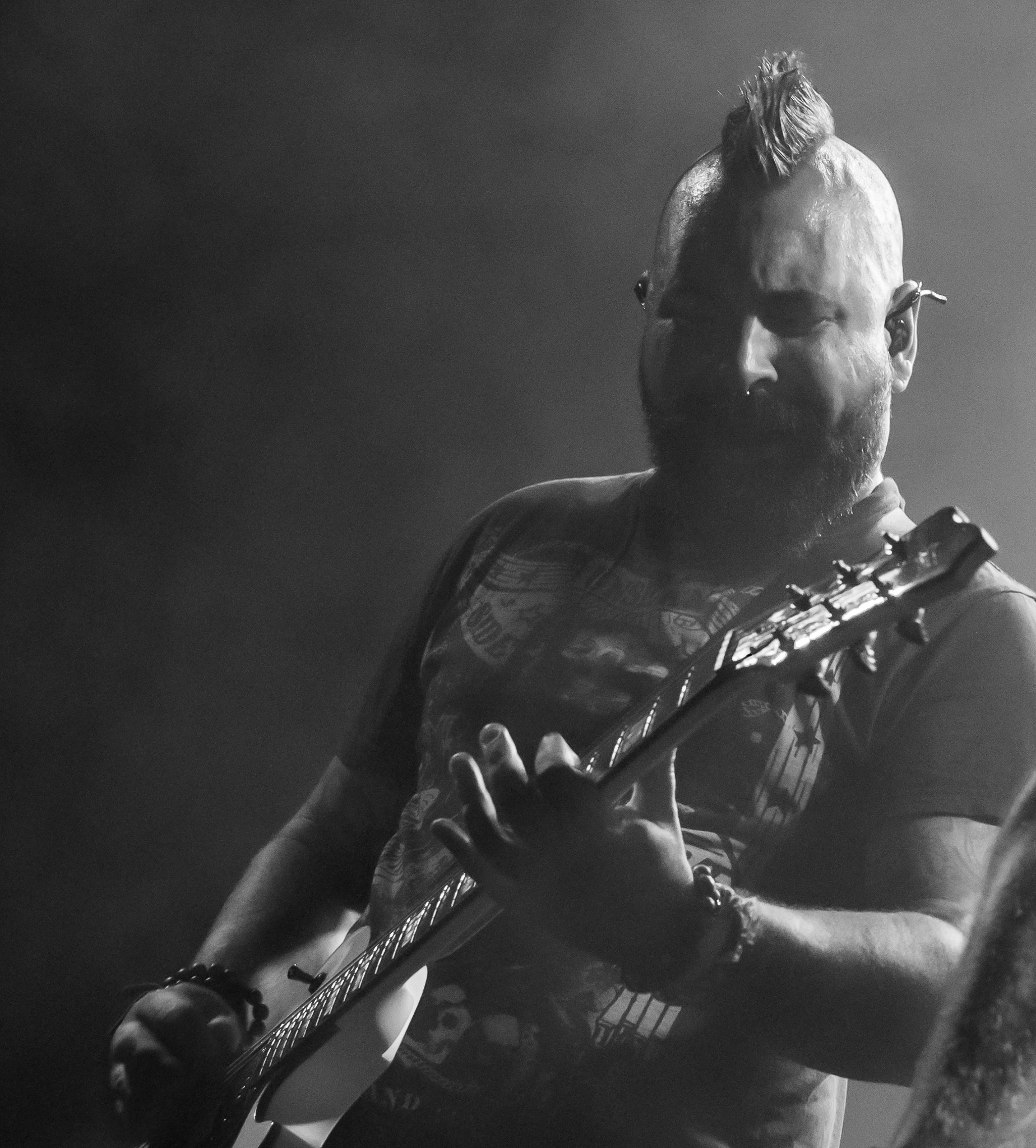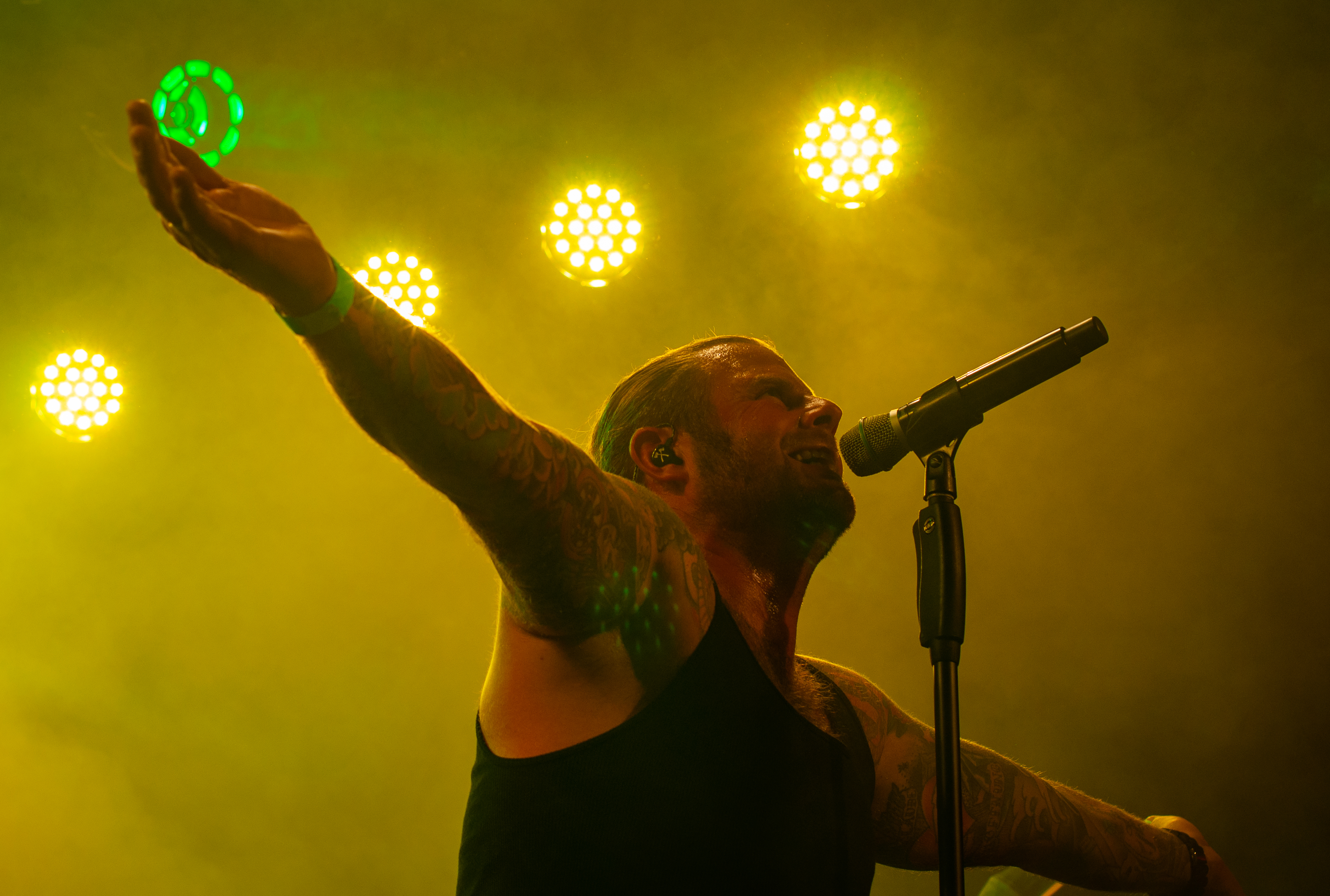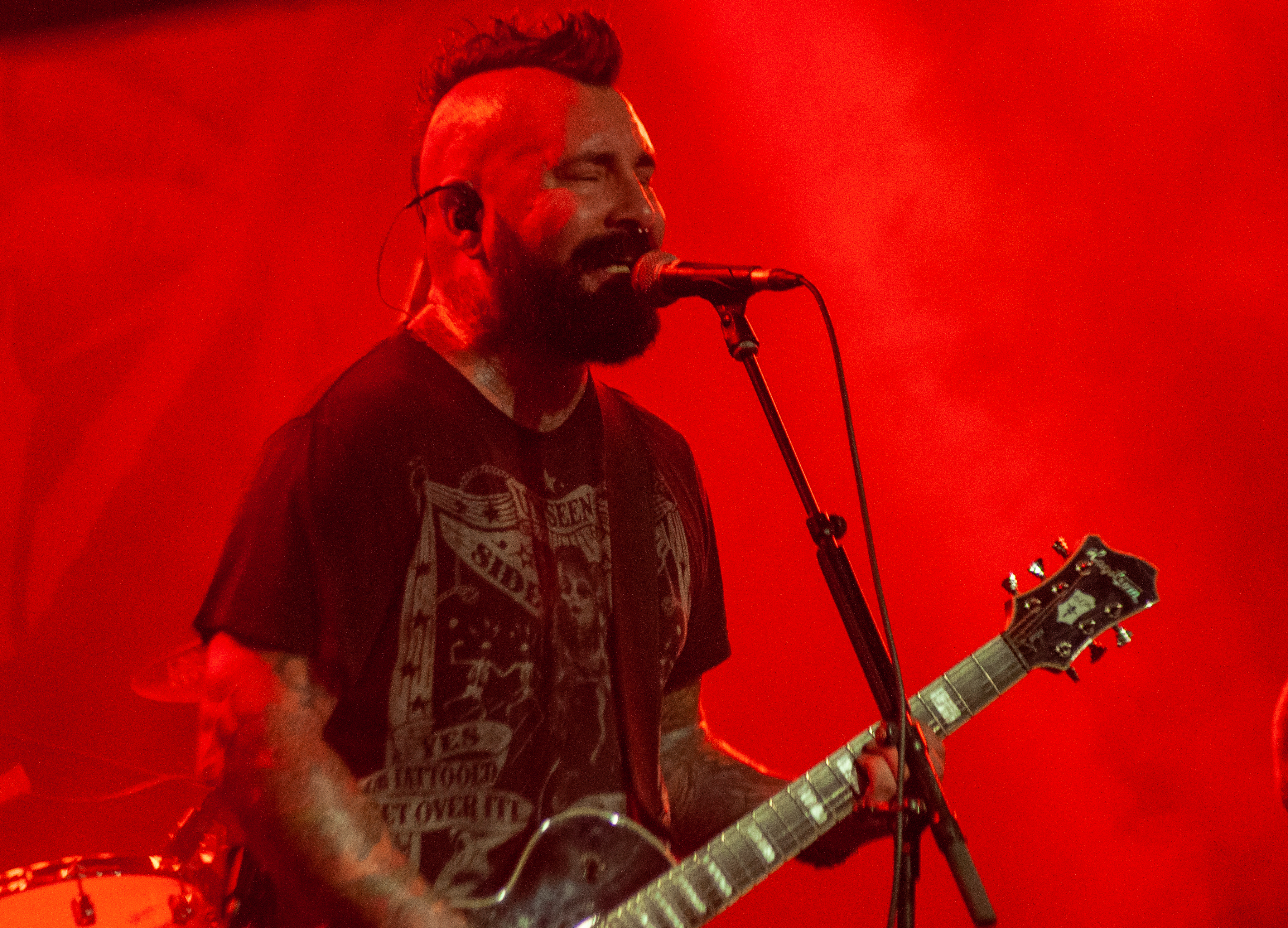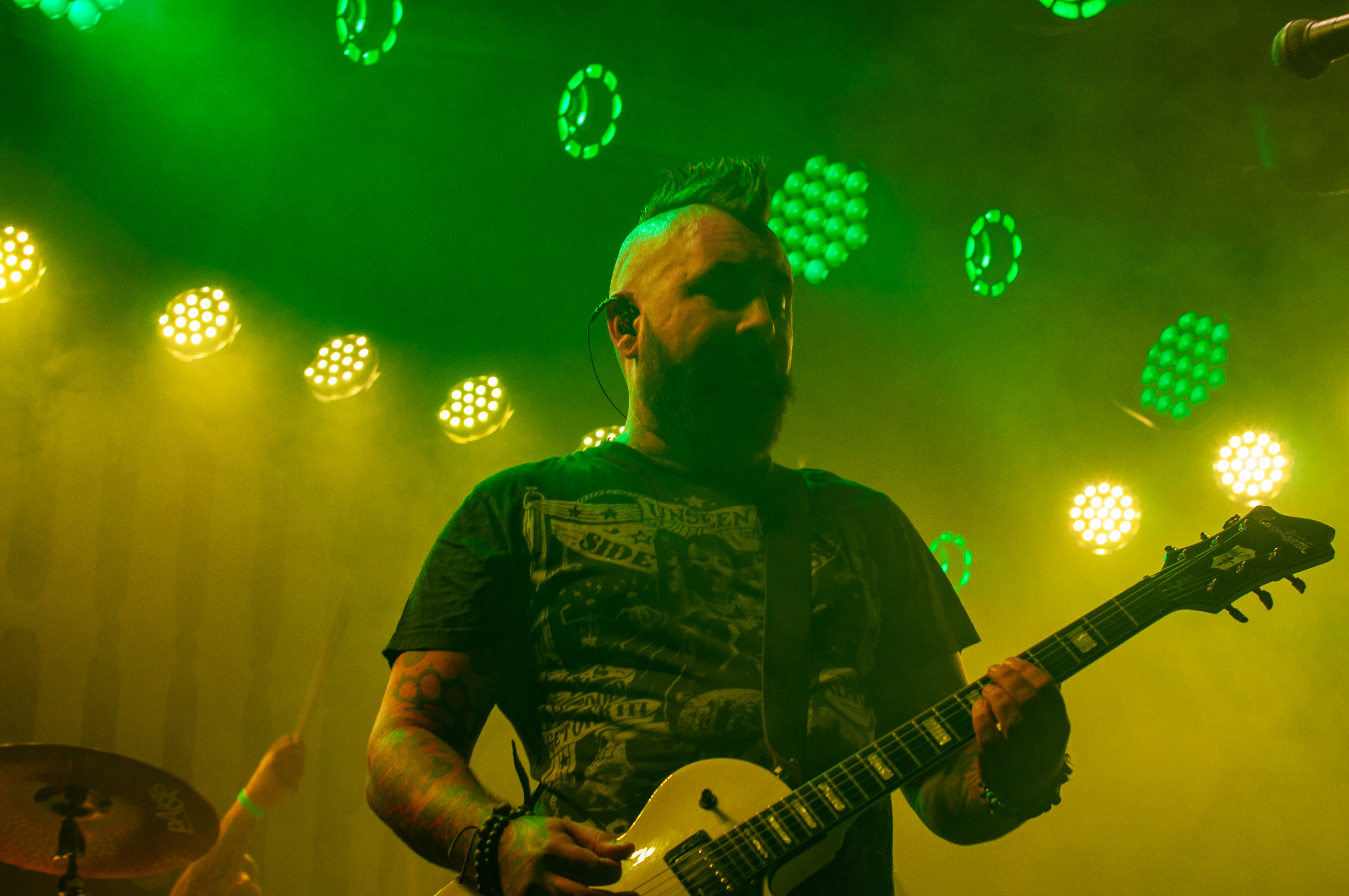 Um 20:50 Uhr starten KÄRBHOLZ mit „Überdosis Leben“, „Keiner befiehlt“ und der Singleauskopplung „Niemals Fallen“ vom aktuellen Album „Kontra“. Das Publikum geht direkt gut mit und zeigt sich textsicher. Pogo und Bier, darum ist man hier. Geliefert wird eine ordentliche Portion Deuschrock mit rauem Gesang und latent punkige Attitüde. Weiter geht es mit Songs wie „Du bist König“, der countrymäßigen Ode an die Heimat auf dem Lande „Kind aus Hinterwald“ und „Der schwarze Schwan“. Zwischenzeitig übernimmt Gitarrist Adrian Kühn das Mikro. Im Zugabe-Teil wird es noch einmal besonders enthusiastisch. Voller Inbrunst singt Frontmann Torben Höffgen gemeinsam mit dem Publikum „Tiefflieger“ und „Mutmacher“. Mit „Feuerräder“ ist nach ca. zwei Stunden Spielzeit Zapfenstreich und die Schaluppe legt gegen 23 Uhr wieder an. „Eine laute Fahrt über den Rhein Teil II“ ist Geschichte und geht im kommenden Jahr bestimmt in Runde Drei.