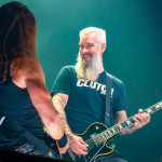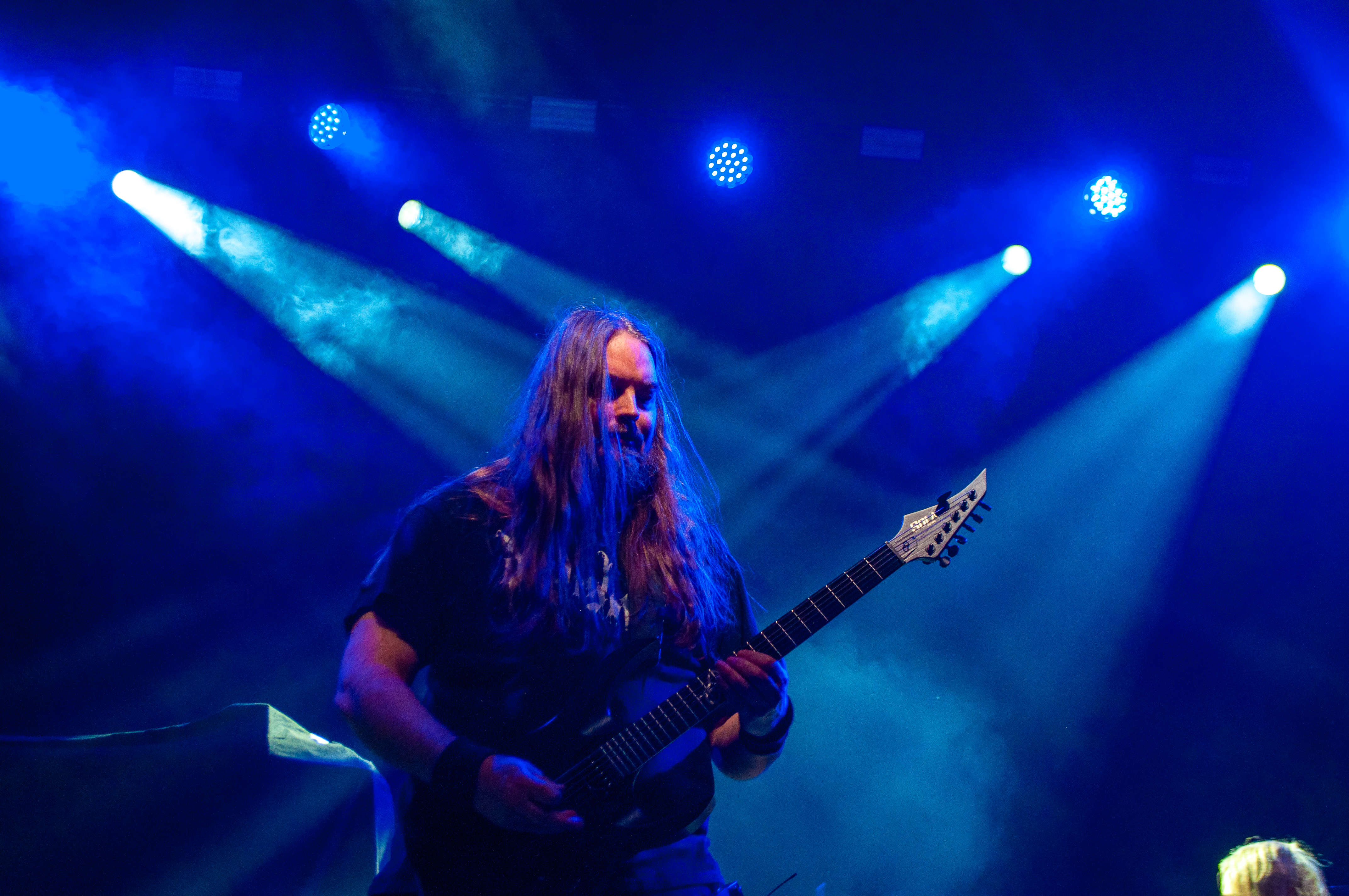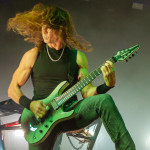 „Graveland“ ist die einzige Nummer von „The Jester Race“, Kracher „Moonshield“ wird nicht gespielt. Aber was solls: IN FLAMES sind gut drauf und es ist erleichternd die Band mit so viel Spielfreude zu sehen. Vor allem Gitarrist Björn Gelotte scheint motiviert bis in die Bartspitzen zu sein. Der neue Gitarrist Chris Broderick posed was das Zeug hält. In der heutigen Setlist werden viele Alben berücksichtigt, es ergibt sich ein buntes Potpori: „The Hive“ von „Whoracle“, „Colony“, „Leeches“ von „Come Clarity“, „Alias“ von „A Sense of Purpose“… . Erwartungsgemäß sind die Publikumsreaktionen und dessen Bewegungsfreude bei „Only für the weak“ besonders ausufernd. Nach „I Am Above“ und „Take this Life“ ist fini und ein schwitzig süßer „Duft“ liegt in der sich leerenden Halle.