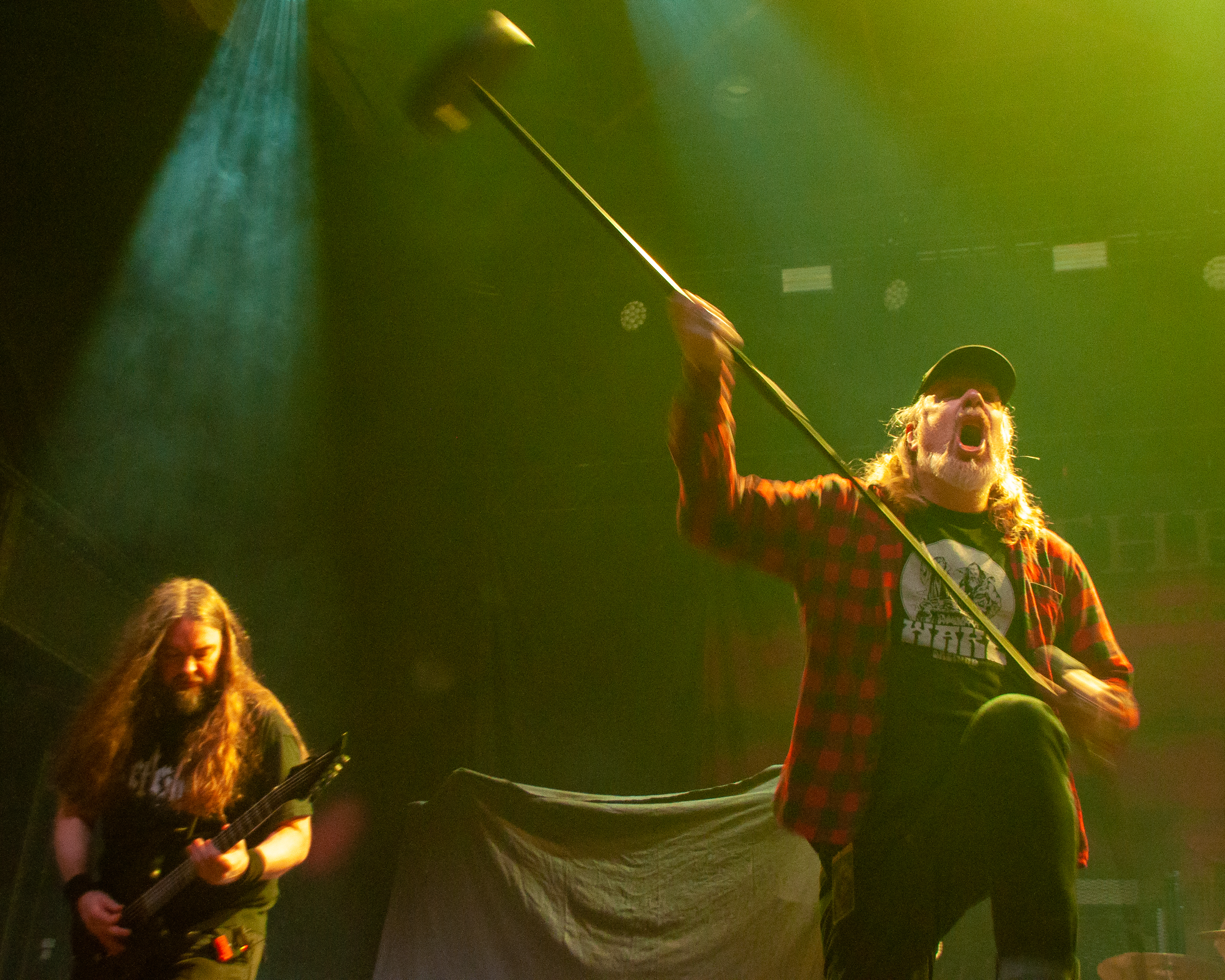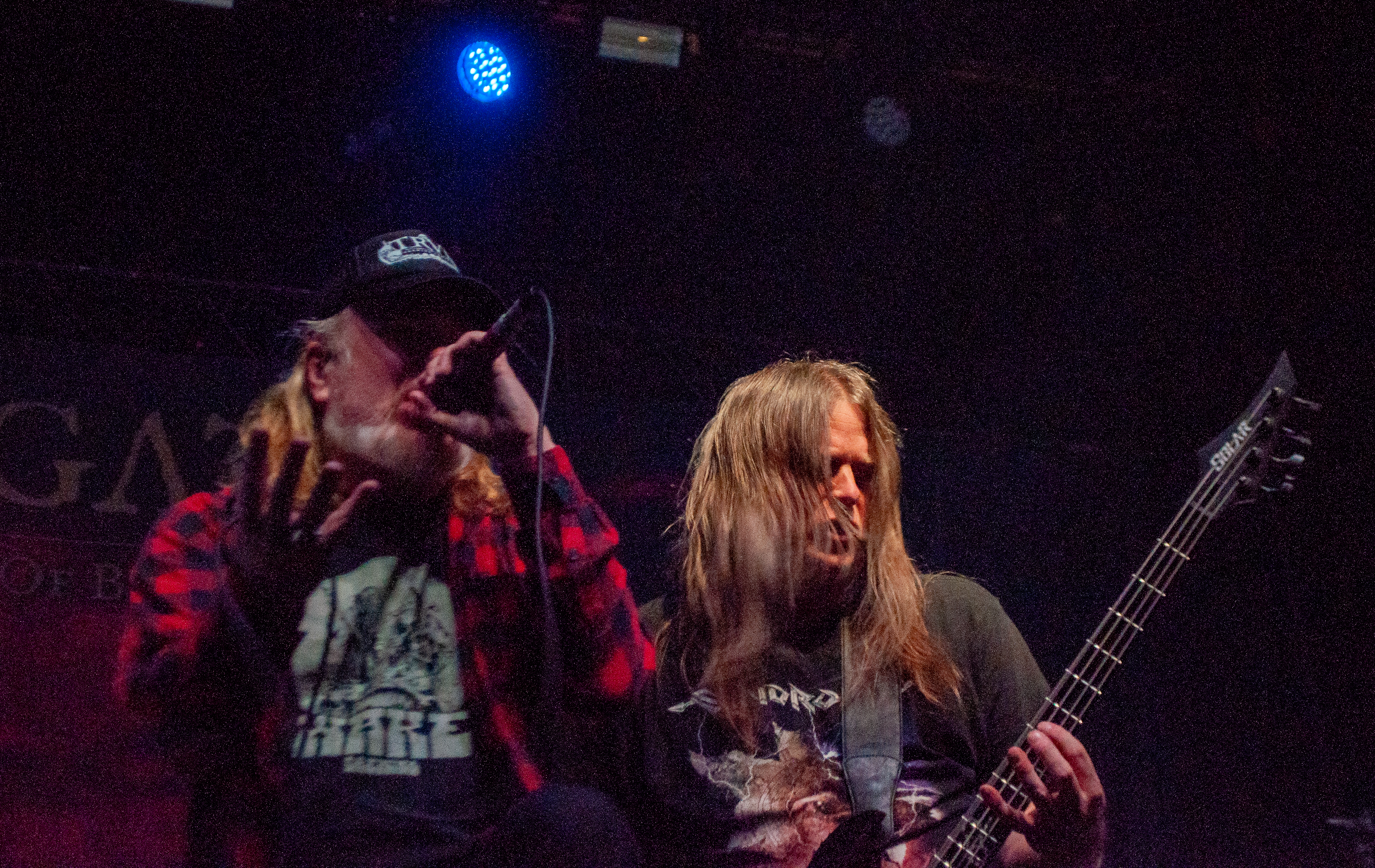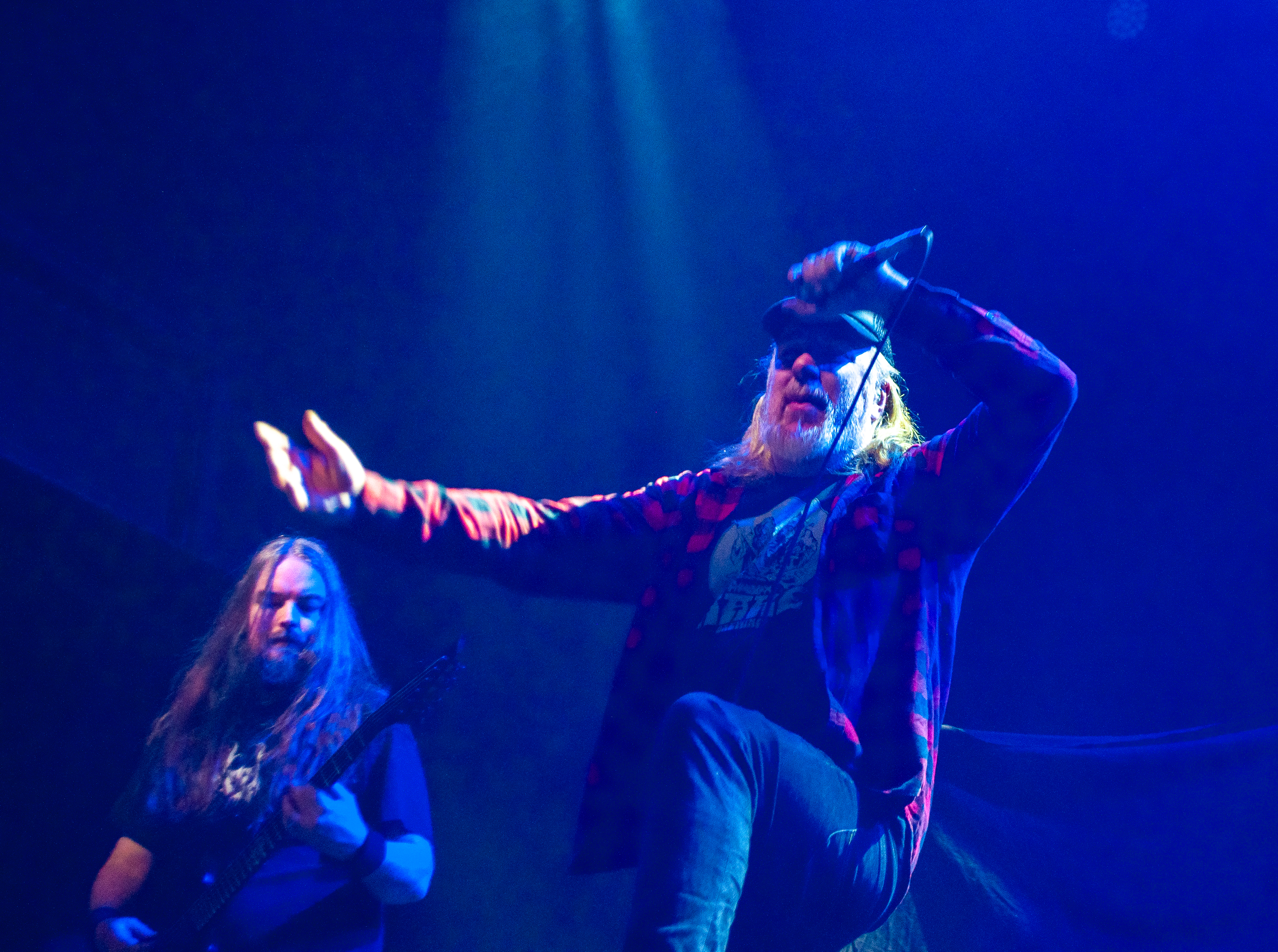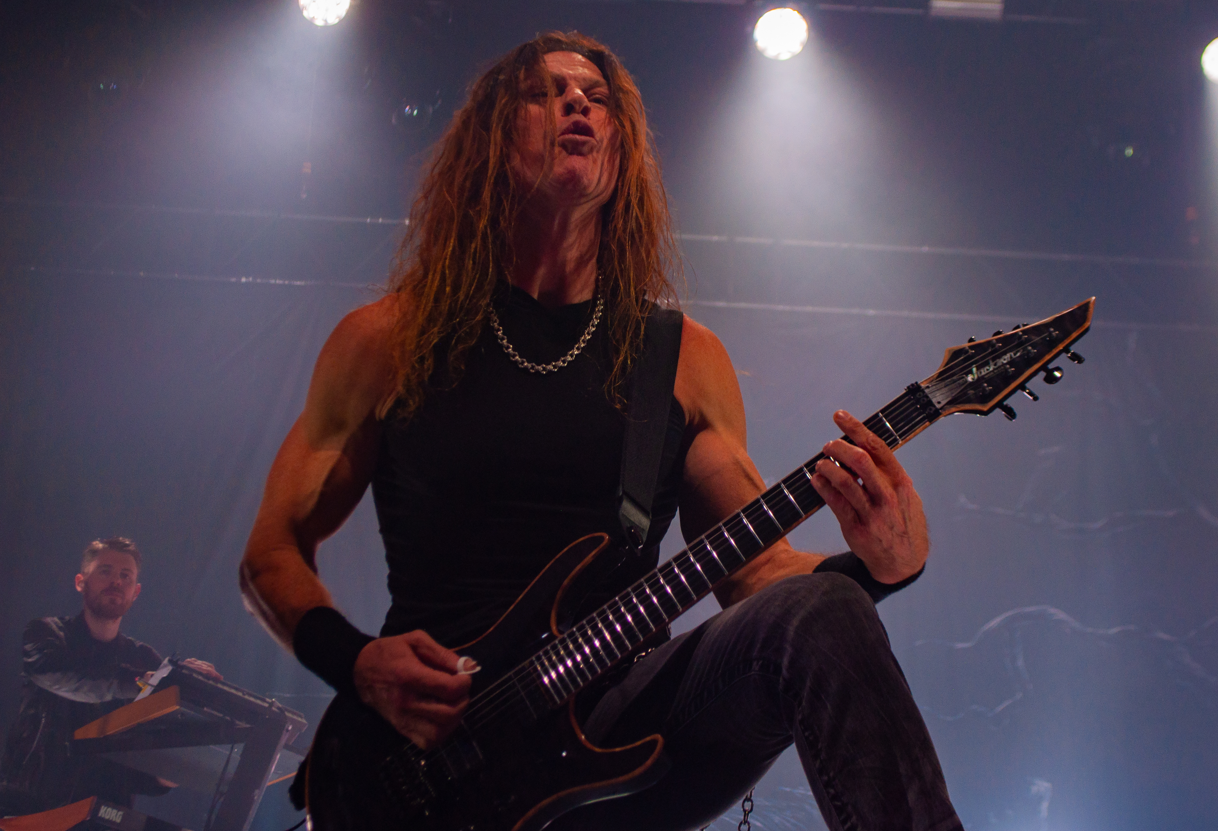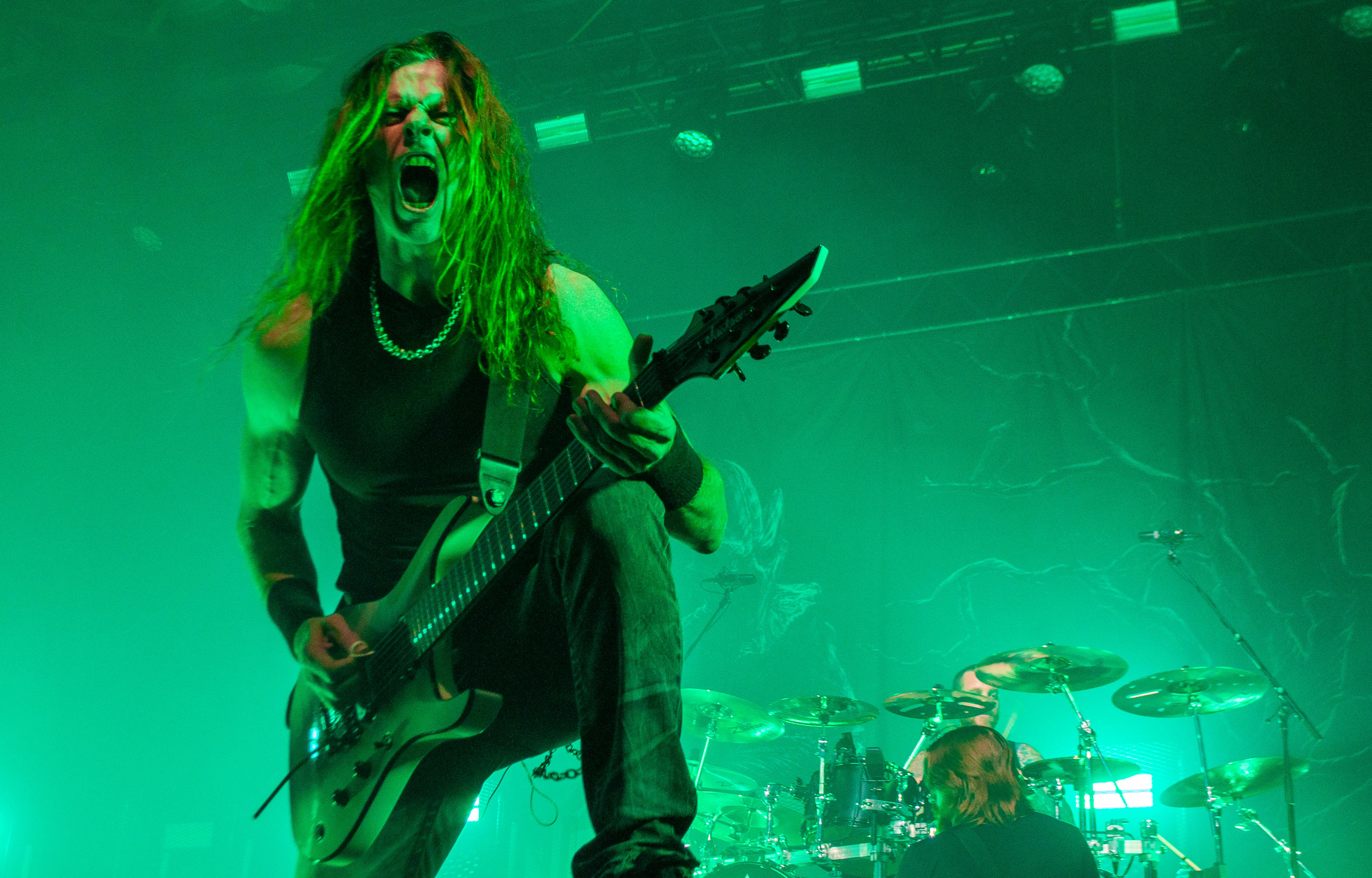 Den Anfang machen heute Abend die Metalcoreband IMMINENCE und die Melodic Death Metal-Truppe ORBIT CULTURE. Ich stehe zu dem Zeitpunkt aber noch im Stau auf dem Heumarer Dreieck, bin aber pünktlich für AT THE GATES vor der Bühne. Die Band rund um ihren Sänger und Kopf Tomas Lindberg entert zu „Spectre of Extinction“ vom neusten Album „The Nightmare of Being“ (2021) die Bühne. Sie geben gut Gas und es folgen „Slaughter of the Soul” und „At War With Reality“. Gleich zu Beginn decken AT THE GATES verschiedene Epochen ab. „Der Widerstand“ hat man noch nicht oft live hören können. Es geht weiter mit Klassikern wie „Cold“ und „Blinded by Fear“. Gerade live hört man bei der Band gewisse Hardcore-Anleihen heraus. Lindberg wirbelt mit dem Mikroständer umher und mit Anders Björker rockt hier wieder das Original die Gitarre. Er stieg 2017 aus und ist seit kurzem wieder mit der Band und mit seinem Zwillingsbruder Jonas Björler am Bass vereint. Dann ertönen melodisch melancholische Gitarrenklänge und nach „The Night Eternal“ ist Schluss. AT THE GATES sind immer, und so ist es auch heute im Kölner Palladium, etwas rauer und ungestümer als IN FLAMES.