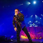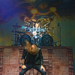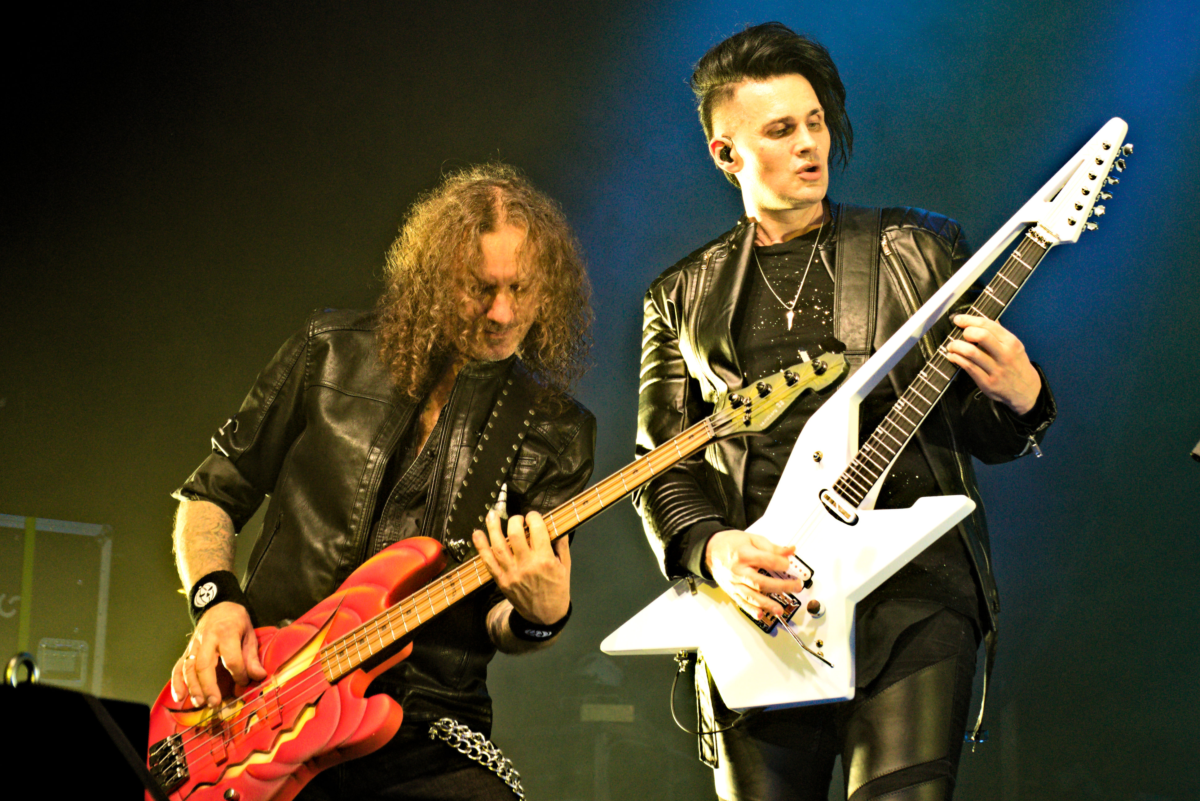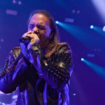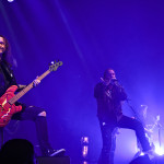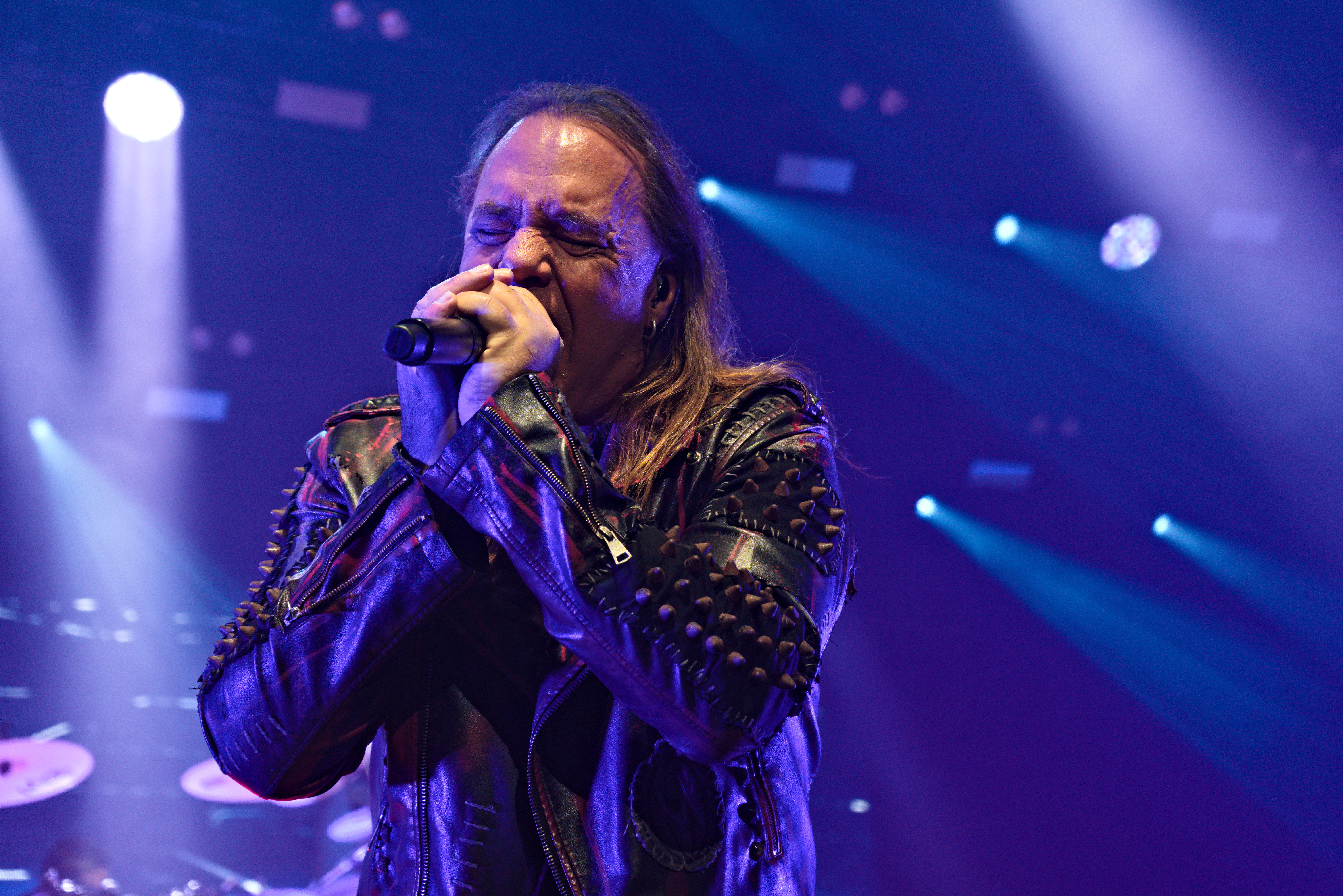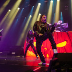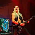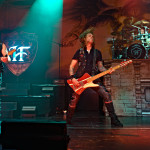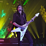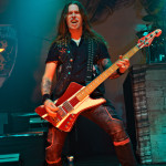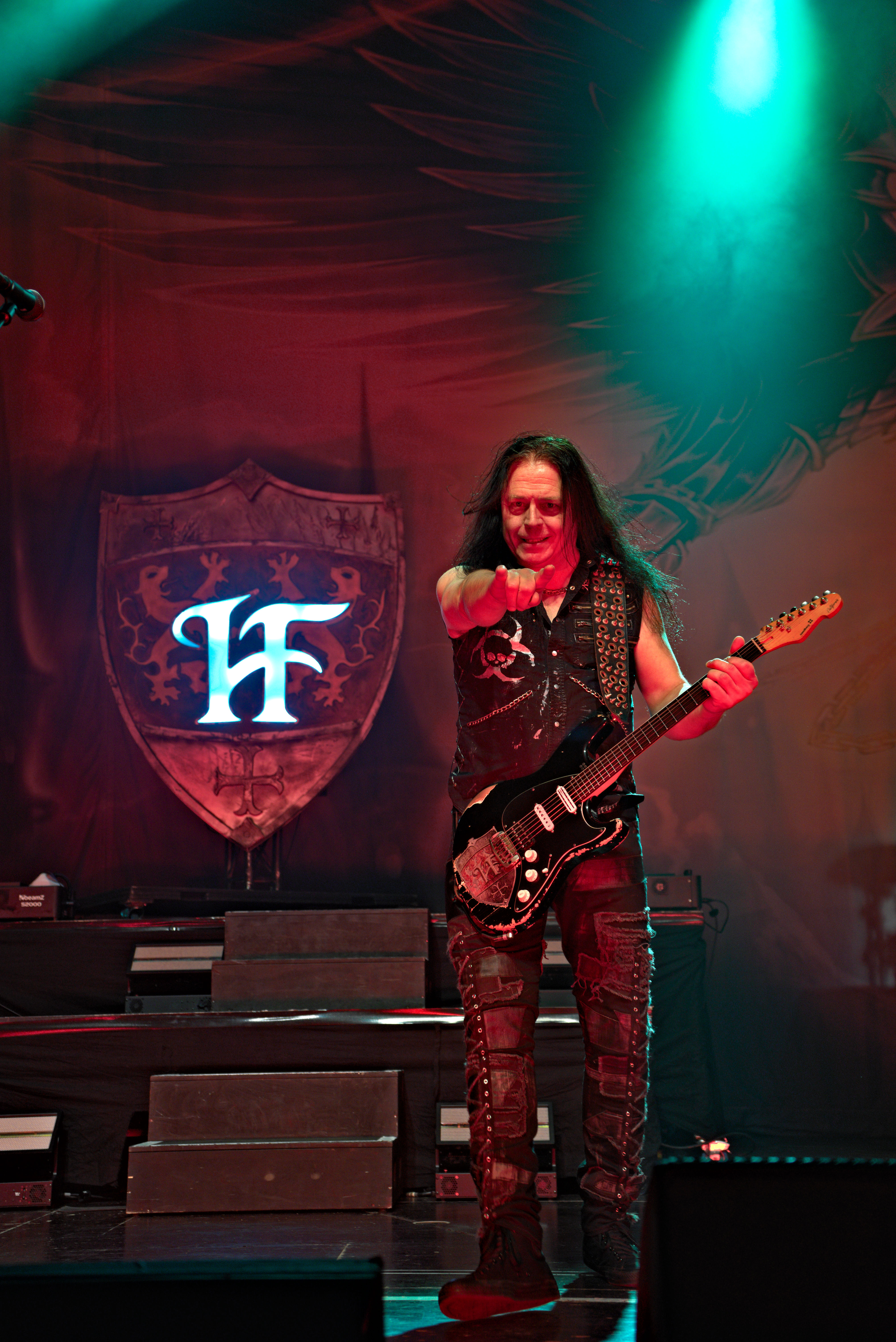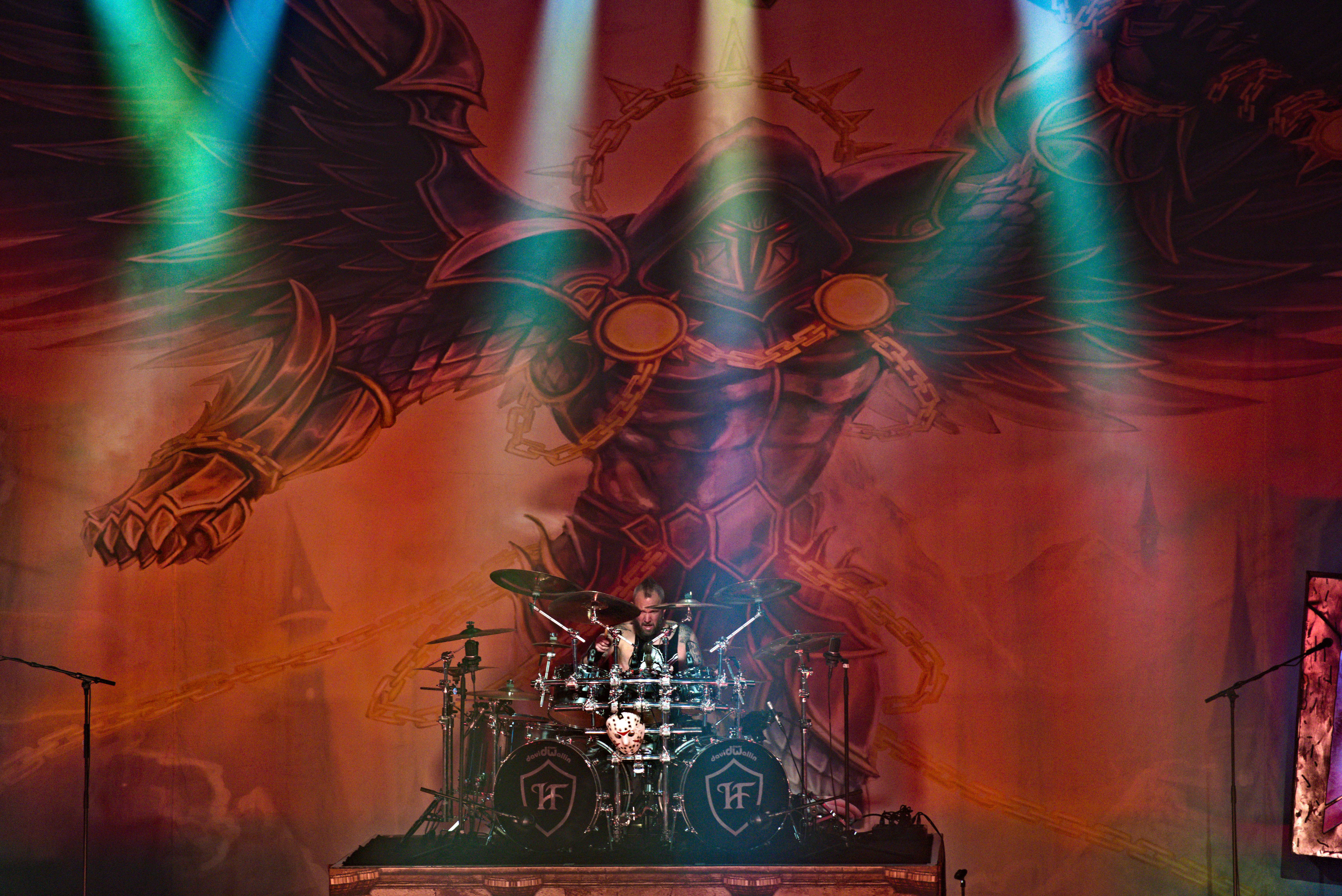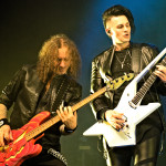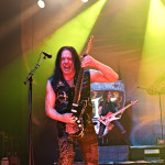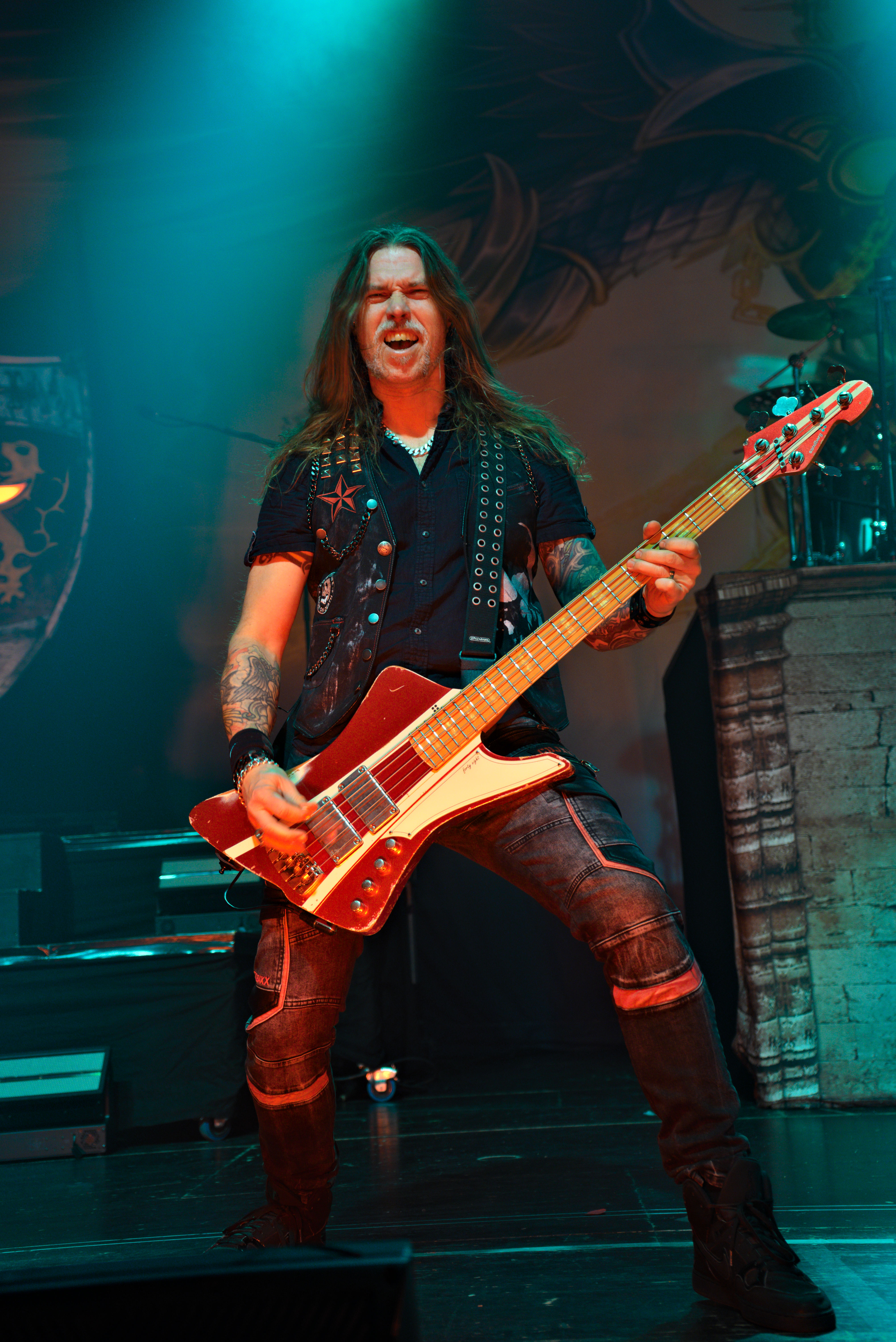 Zuerst durften sich HAMMERFALL beweisen, deren Status weit über den einer normalen Supportband hinaus ging. Sie hatten die volle Bühne, Licht und Sound zu Verfügung und bekamen darüber hinaus auch noch über 70 min Spielzeit zugestanden. Offenbar ist die Stimmung im Tourtross eine sehr gute und der große Nutznießer ist dabei der Fan, welcher zwei fette Shows an einem Abend geboten bekam. Der Einstieg mit dem neuen „Brotherhood“ ist gut gewählt und sofort hatten die Schweden einen Großteil der Leute auf ihrer Seite. Joacim war einmal mehr ein souveräner Frontman, welcher sowohl mit klarer, kraftvoller Stimme, als auch mit sympathischen Ansagen punktete. Wenn man allerdings HAMMERFALL schon oft live bewundern durfte, dann kam einem doch vieles schon sehr bekannt vor und ein bisschen Spontanität würde dem Vergnügen keinen Abbruch bereiten. Aber das ist Meckern auf hohem Niveau, denn die Schweden boten eine knackige, bewegungsfreudige und kurzweilige Metalshow. Unterhaltung auf Topniveau sozusagen. Die Haare flogen, Oscar poste, Fredrik hatte augenscheinlich richtig Spaß und Pontus feuerte ein Flitzefingesolo nach dem anderen ab. Joacim und seine Mannen führten durch ein Programm, welches nahezu alle Hits im Umfangreichen Oeuvre der Schweden abdeckte. Egal ob alte Nummern wie „The Metal Age“ oder das „Crimson Thunder-Medley“, mittelaltes wie „Any Means Necessary“, „Blood Bound” oder „Last Man Standing“ oder aktuelles wie „Venerate Me“ und „Hammer Of Dawn“, jeder Song ein Treffer. Das Finale bestritten HAMMERFALL dann mit einer furiosen Version von „Hearts On Fire“, welches von der ganzen Halle lauthals mitgesungen wurde. Ich persönlich habe zwar die eine oder andere Speednummer vermisst, dürfte da aber wohl der einzige gewesen sein. Alles in allem ein einmal mehr sackstarker Auftritt, welcher den Status HAMMERFALLs als eine der konstantesten Livebands wieder einmal untermauerte.