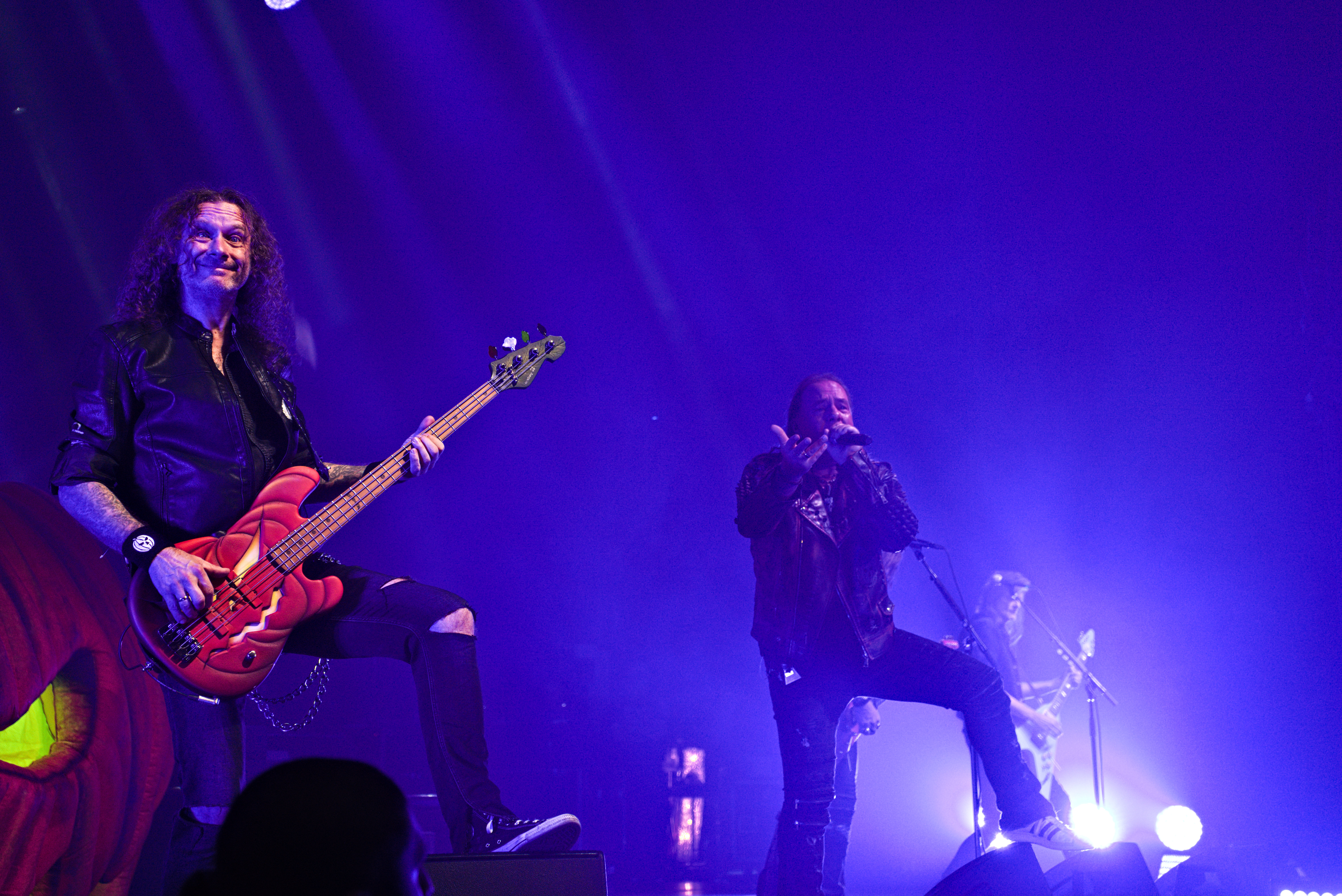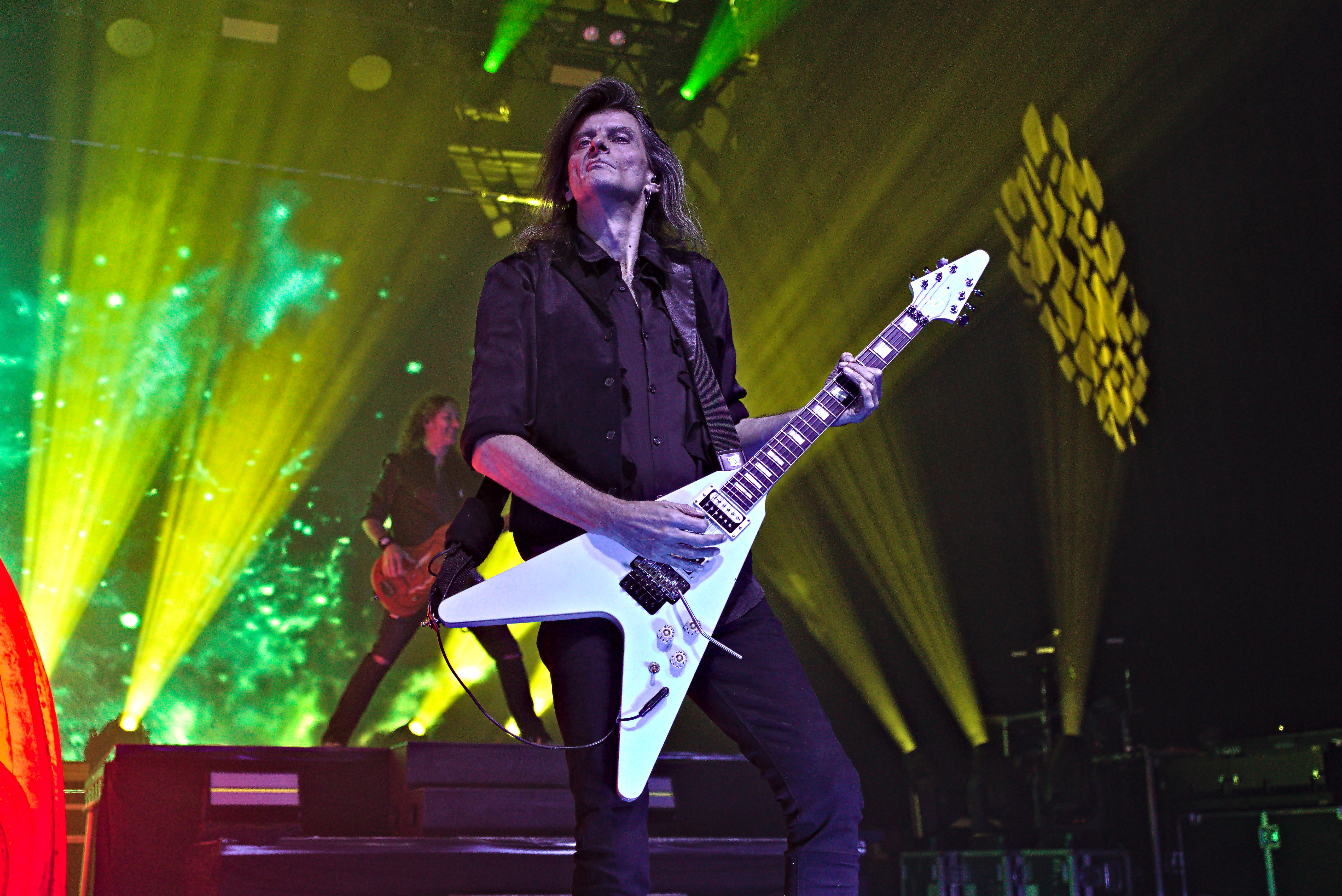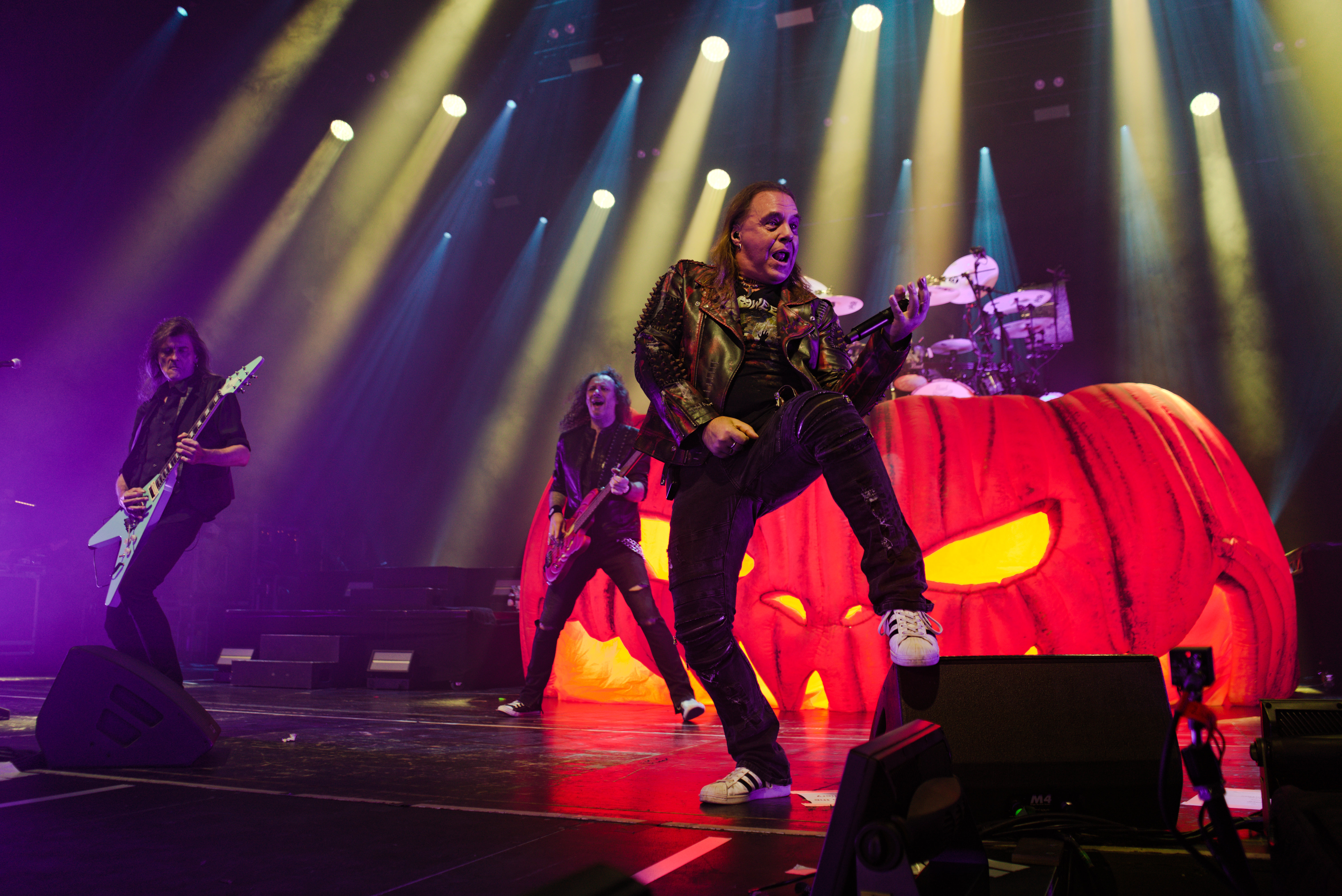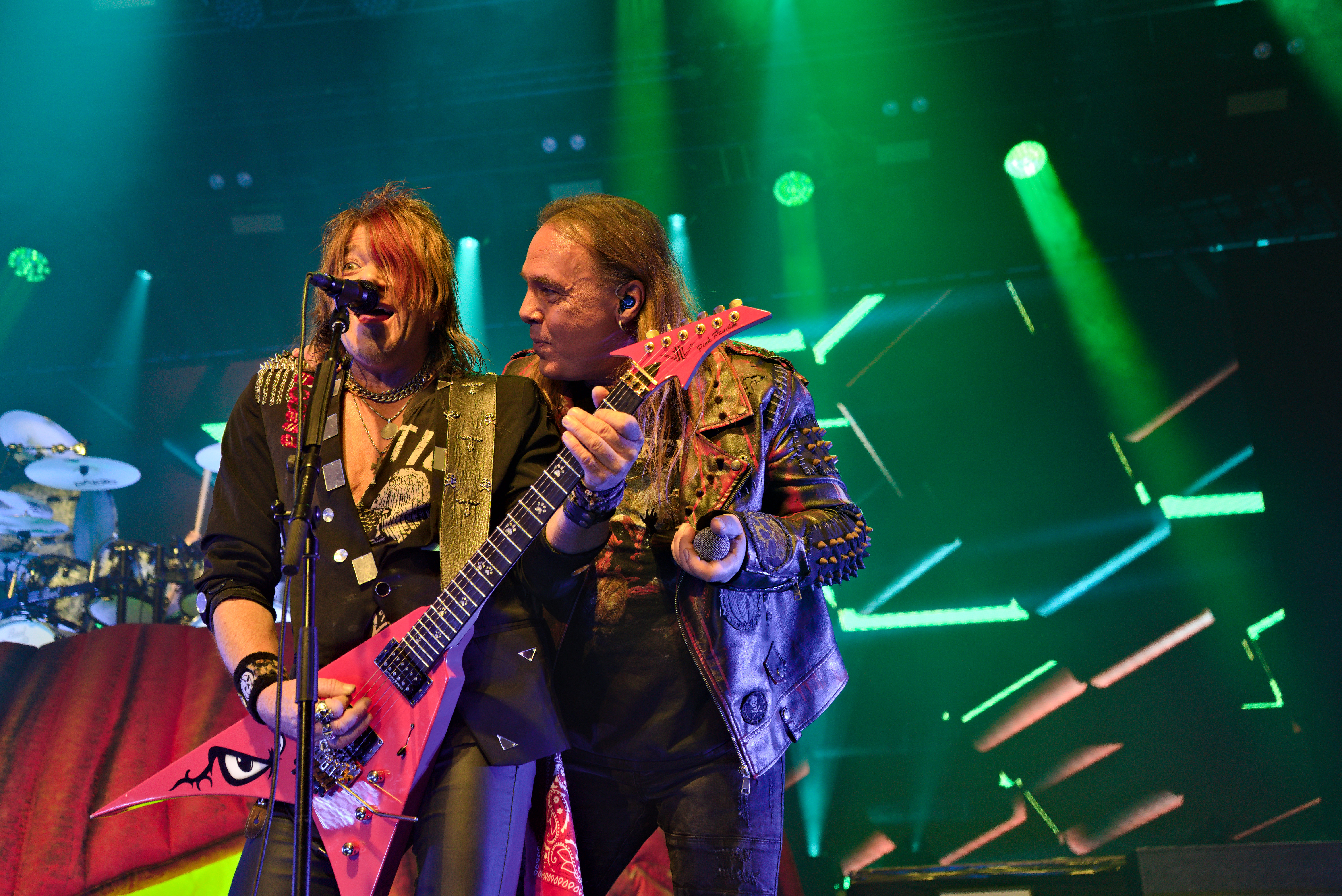 Nach einer kurzen Pause legten HELLOWEEN mit dem langen „Skyfall“ gleich standesgemäß los. Nicht jede Band kann es sich erlauben mit einem knapp viertelstündigen Song eines neuen Albums zu beginnen. Bei HELLOWEEN funktionierte es tadellos. Und wenn man dann gleich noch „Eagle Fly Free“ hinterher schiebt, dann steht die Halle erfahrungsgemäß Kopf und so war es auch heute. Auch wenn man gerade hier oder bei „Future World“ Michael Kiske vermisste. Auf der anderen Seite singt Andi Deris auch diese Songs schon seit fast 30 Jahren und hat HELLOWEEN nicht nur geprägt, sondern vor allem am Leben gehalten und so diese Reunion erst möglich gemacht. Das sollte auch den ewigen Nörglern mal bewusst werden. Eins meiner persönlichen Highlights war natürlich der „Walls Of Jericho-Block“. Klar, „Metal Invaders“ geht nicht mehr wie einst im Mai und Kai ist sicherlich froh keine 90 min als Frontmann bestreiten zu müssen, Spaß macht es dennoch und der Teenager in mir ist plötzlich wieder ganz da. „Heavy Metal Is The Law“, mehr braucht es einfach nicht zum glücklich sein. Die Show als solche war gegenüber der „Pumpkins United“ Tour ein wenig reduzierter aber dennoch sehr stimmungsvoll und unterhaltsam. Mit „Dr. Stein“ und „How Many Tears“ bog man auch schon auf die Zielgerade ein. Ließ sich aber nicht lange bitten und legte im Zugabeblock mit „Perfect Gentleman“ und „I Want Out“ nochmal kräftig nach. Auch ohne Michael Kiske boten HELLOWEEN starkes Metalentertainment. Die gute Stimmung innerhalb der Band und die gegenseitige Wertschätzung aller Beteiligten ist zu jeder Zeit spürbar und lässt die Einheit HELLOWEEN auch solch schwierige Abende wie heute locker meistern. Das Fehlen des „Keepers“ und von „Save Us“ (beide wurden bei anderen Shows gespielt) tat zwar weh, war bei den Umständen jedoch verständlich und allemal besser als eine weitere Verschiebung oder eine Absage.