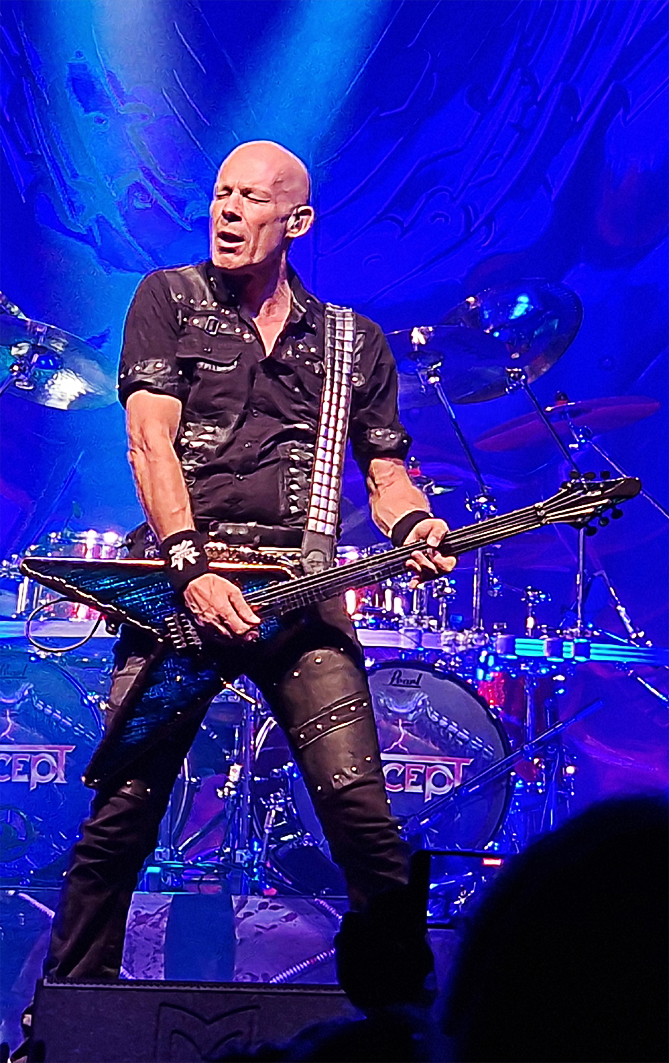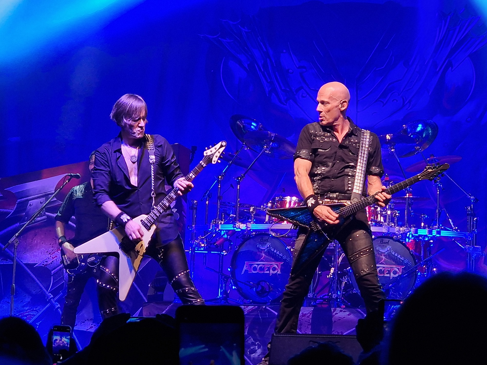 ACCEPT starten nach kurzer Umbaupause mit "Zombie Apocalypse" das Set. Sänger Mark Tomilio ist präsent und bestens bei Stimme. Der immerhin 68jährige Sänger hält sich zwar mit Ansagen eher zurück, macht aber insgesamt gesehen einen tollen Job. Die Show liegt überwiegend in den Händen von Gitarrist und Bandchef Wolf Hoffmann, der mit Posen und viel Gesten durchs Programm führt. Sein Spiel ist dynamisch und genau. Bei den Soli überrascht, dass neben seiner Vorliebe für Klassik, auch der Blues Raum bekommt. "Restless and Wild" und das darauffolgende "Midnight Mover" sind die Höhepunkte des ersten Drittels. Typisch für ACCEPT sind die einstudiert wirkenden Bewegungsabläufe. Das nimmt etwas Spontanität und Authentizität aus der Performance. Auch Wolf Hoffmanns zum Teil recht übertriebenes und immer gleiches Gestenspiel reiht sich passend in diesen Kontext ein. Aber die Songs sind klasse, der Sound ist druckvoll und die Band harmoniert und ist bestens aufeinander eingespielt. ACCEPT funktioniert hier als Team, das wenig dem Zufall überlässt, dafür aber 100% professionell und präzise agiert. Dem Publikum gefällt es, und darum geht es letztendlich. Ein willkommener Farbklecks ist das instrumentale "Samson and Delilah", bei dem sich eine mystisch anmutende Dame ein leidenschaftliches Instrumenten-Duell mit Wolf Hoffmann liefert, das so feurig ist, dass ich meine, kleine Blitze und Funken zwischen dem Gitarristen und der Geigerin gesehen zu haben. Das letzte Drittel wird mit "Fast as a Shark" stürmisch eingeleitet, ehe das mächtige und unsterbliche "Princess of the Dawn" zum kollektiven Chor erwächst und dieser Gänsehautmoment den Gig krönt.