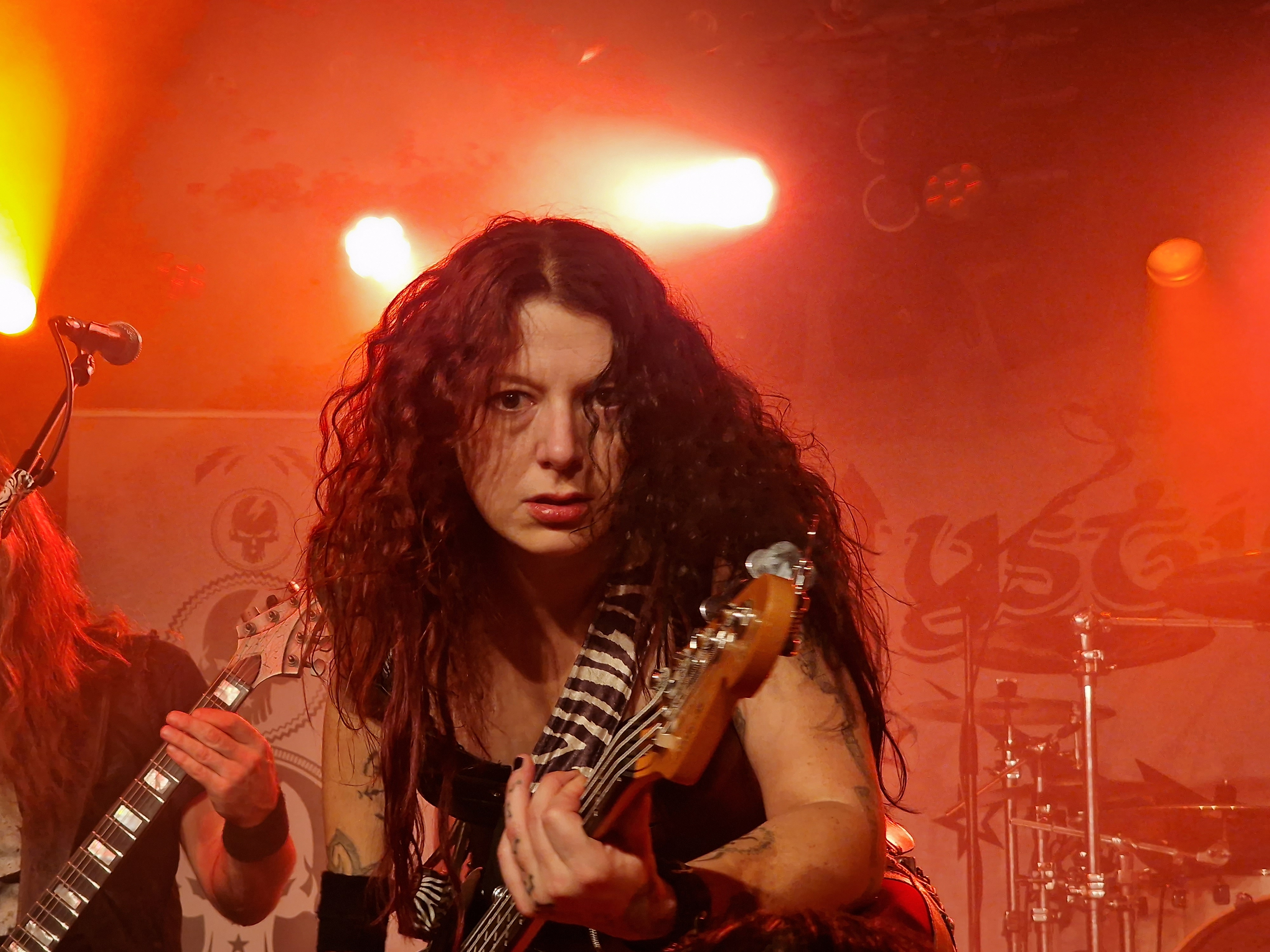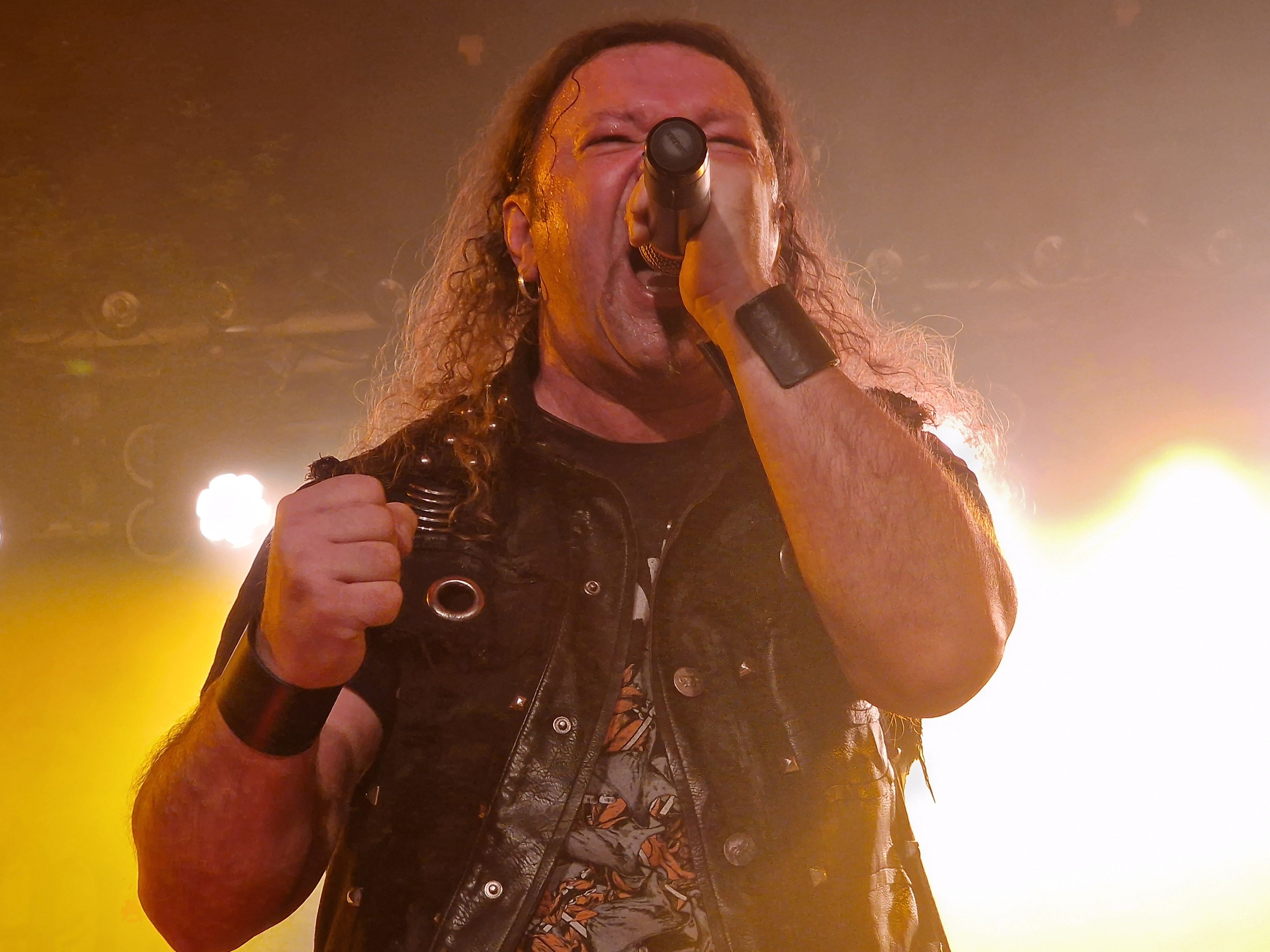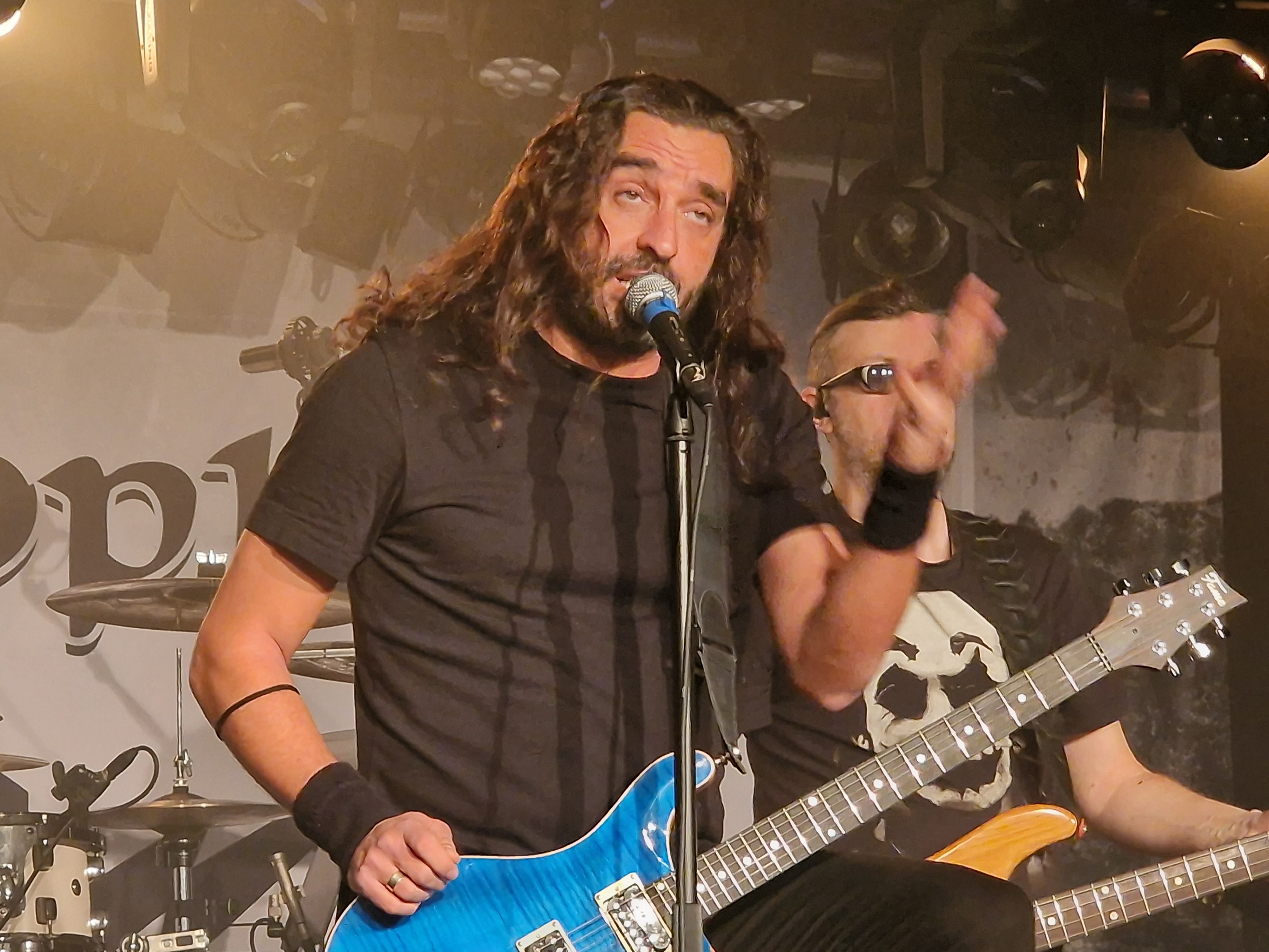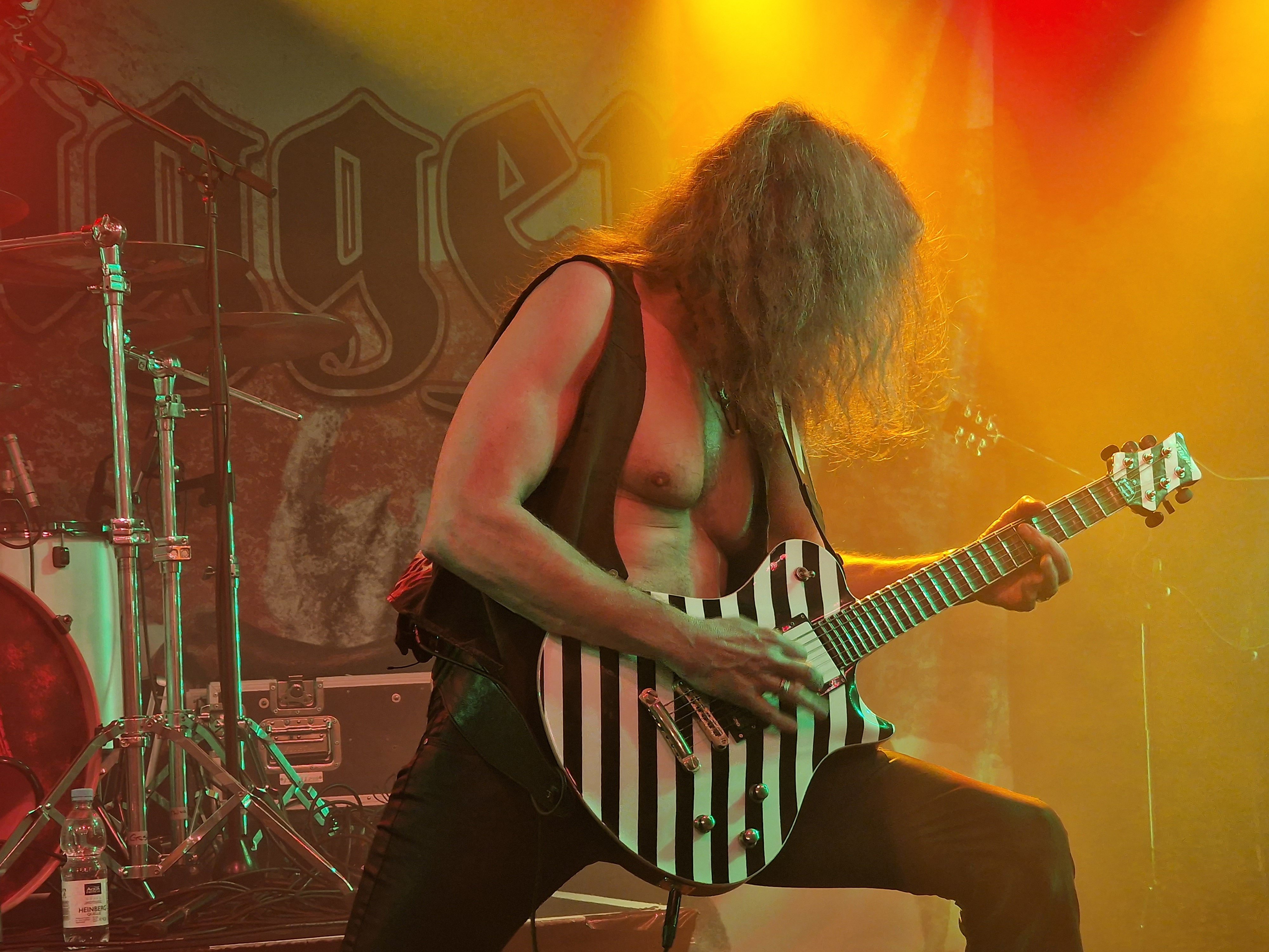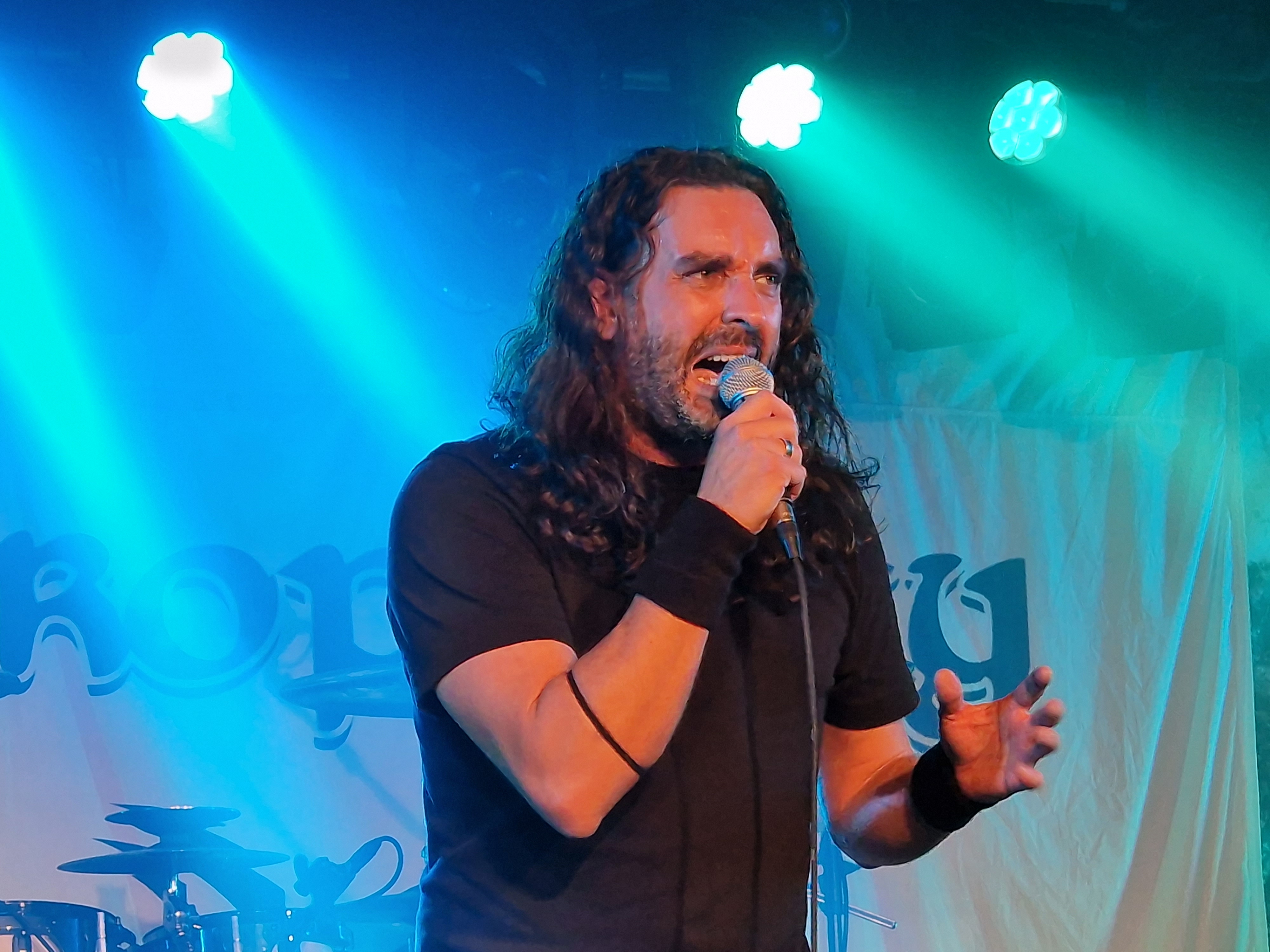 Den Anfang jedoch machen die Griechen CELLAR STONE. Und während sich der Rezensent schon Sätze wie „man erinnert an OZZY OSBOURNE in seiner Phase mit ZAKK WYLDE“ zurecht fabuliert, wird ihm von Aris Pirris und seinen Mannen in Form des BLACK SABBATH Songs „The Mob Rules“ ein dioesquer Knüppel in die imaginäre Tastatur gehauen. Aber was soll’s. Ganz daneben lag ich ja nicht und BLACK SABBATH in sämtlichen Inkarnationen scheint ein Haupteinfluss von CELLAR STONE zu sein. Auch wenn man sich stilistisch von den anderen Bands des Abends deutlich abhebt, so erntet man mehr als nur Höflichkeitsapplaus. Das hat schon mal gepasst.