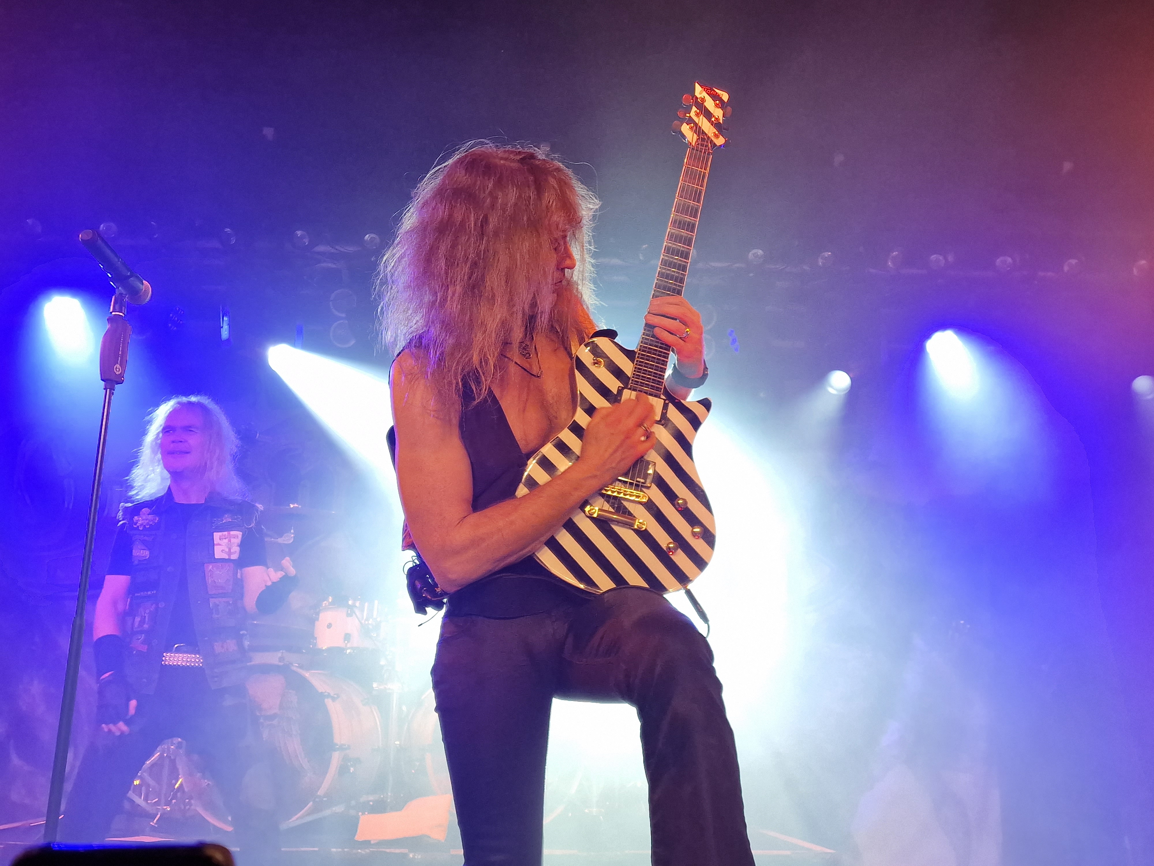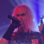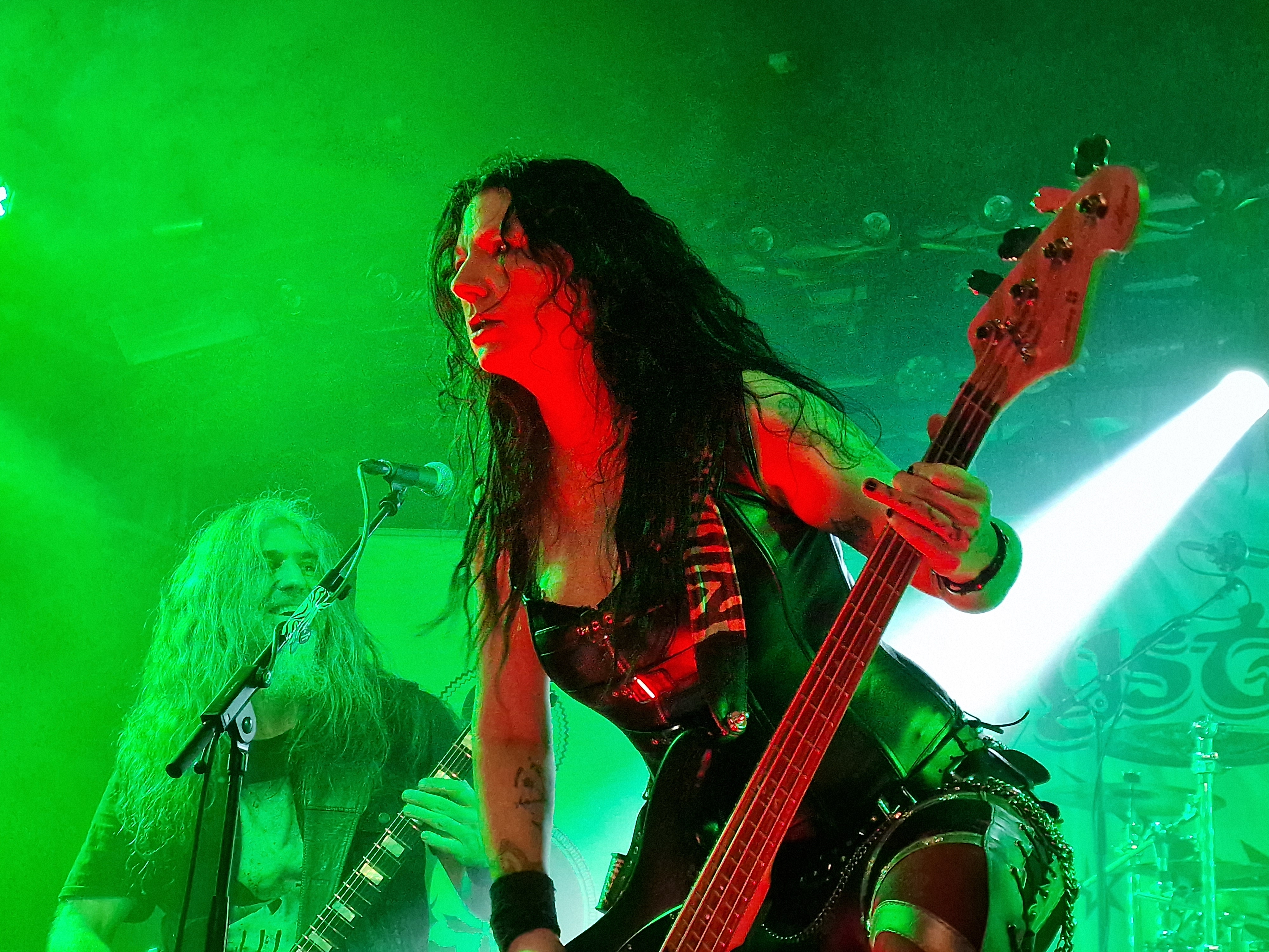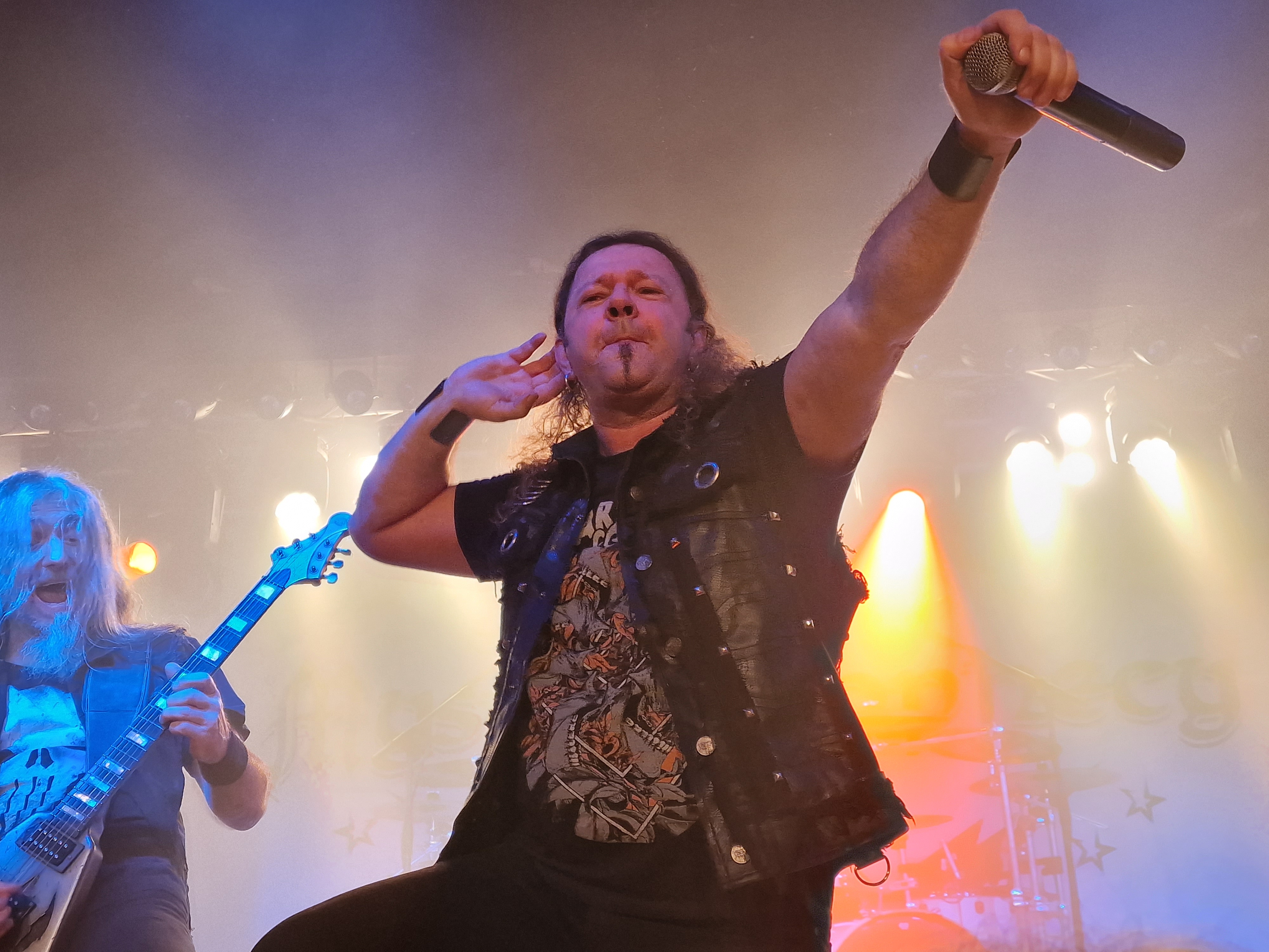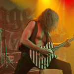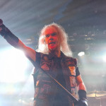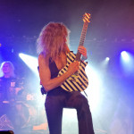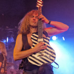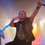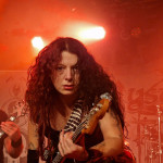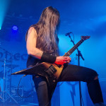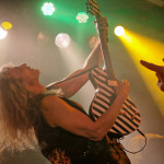 Die nun folgenden MYSTIC PROPHECY sind dann aber noch ein ganz anderes Kaliber. Mit unglaublich viel Energie und Spielfreude stürmt die bunte Truppe um den sympathischen schwäbischen Griechen R.D. Liapakis die Bühne im gut gefüllten Colos-Saal. Mit dem mächtigen Stampfer „Metal Divison“ wird gleich klar gemacht, um was es hier heute geht: Heavy Metal und sonst nichts. Reicht aber auch vollkommen aus, wenn man als Band eigentlich nur Charaktere mit Frontmann/-frau Niveau in den Reihen hat. Man weiß gar nicht, wo man hinschauen soll. Zu Lia am Mikro, der umherwirbelnden Joey am Bass, dem cool posenden Evan an der Gitarre, oder zu Schlagzeuger Hanno, der mit ordentlich Schmackes sein Kit bearbeitet. Jeder reißt sich buchstäblich den Hintern auf. Besonders hervorheben möchte ich allerding Gitarrist Markus Pohl, der gänzlich enthemmt erst über die Bühne und dann ins Schlagzeug fliegt. Das nennt man wohl Kollateralschaden. Abgesehen davon nutzen MYSTIC PROPHECY ihre knappe Zeit und zücken eine Metal Hymne nach der anderen. Leider werden die ersten 3 Alben nicht bedacht, was bei der Spielzeit, die sie als Support zur Verfügung hatten, aber auch sehr verständlich ist. Auch das Cover von „Shadow On The Wall“ kommt sehr gut an. Zumindest bei der ü-45 Fraktion. Wenn „Metal Division“ den Auftakt der Show bildet, dann kommt als Abschluss eigentlich nur die „Metal Brigade“ in Frage, und so kommt es dann auch. Allerdings hat das Aschaffenburger Publikum noch nicht genug und so wird das endgültige Finale mit „Ravenlord“ eingeläutet. Fette Vorstellung.