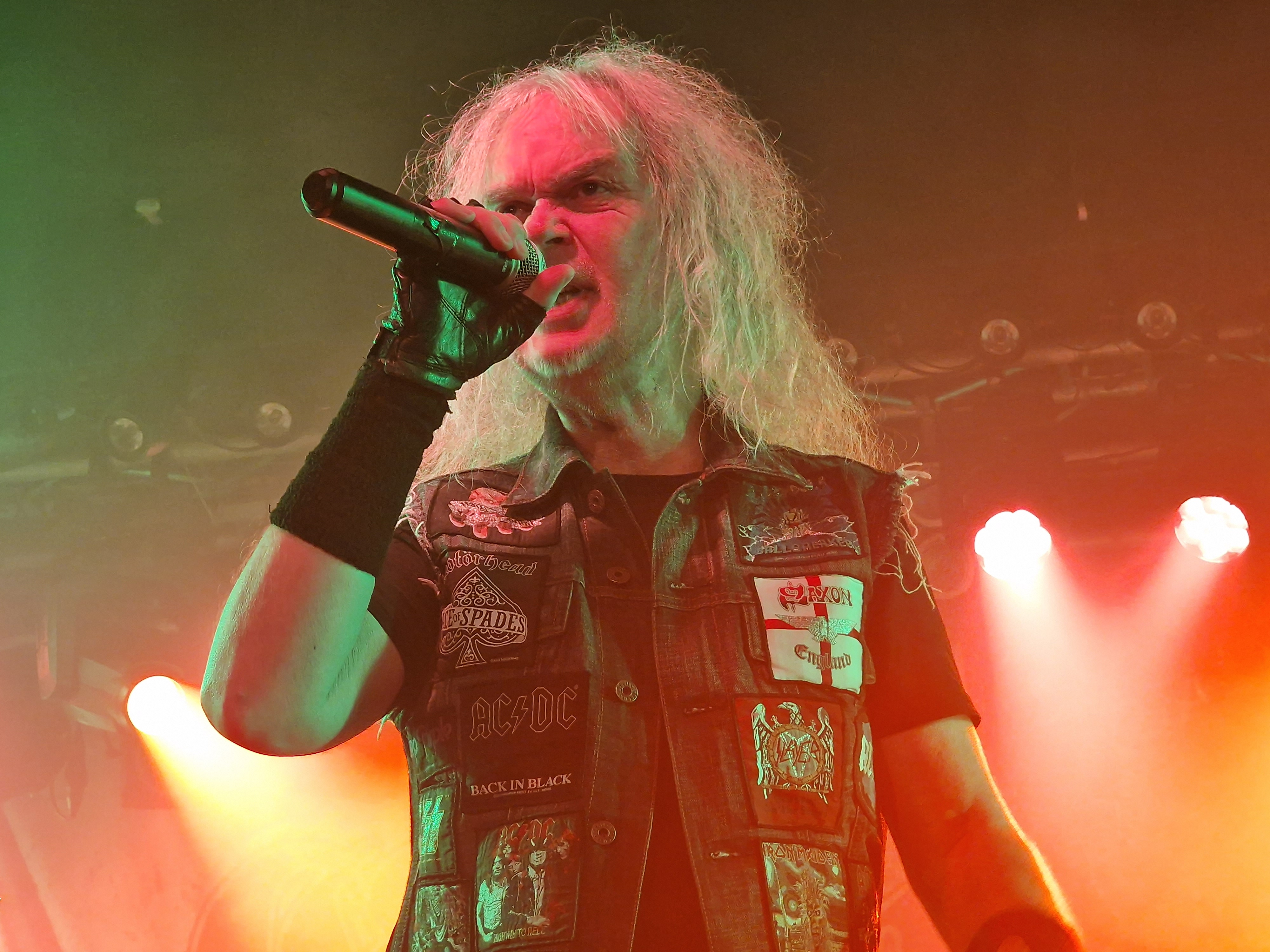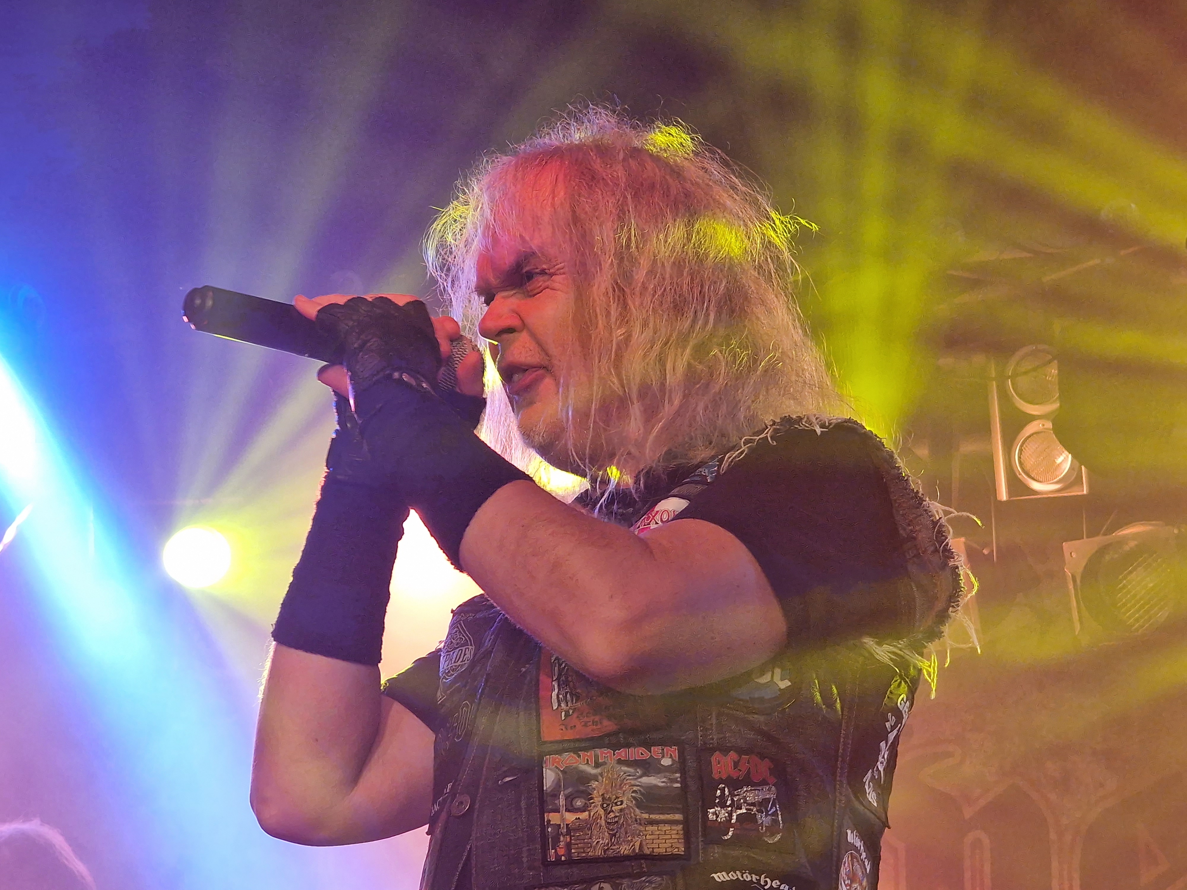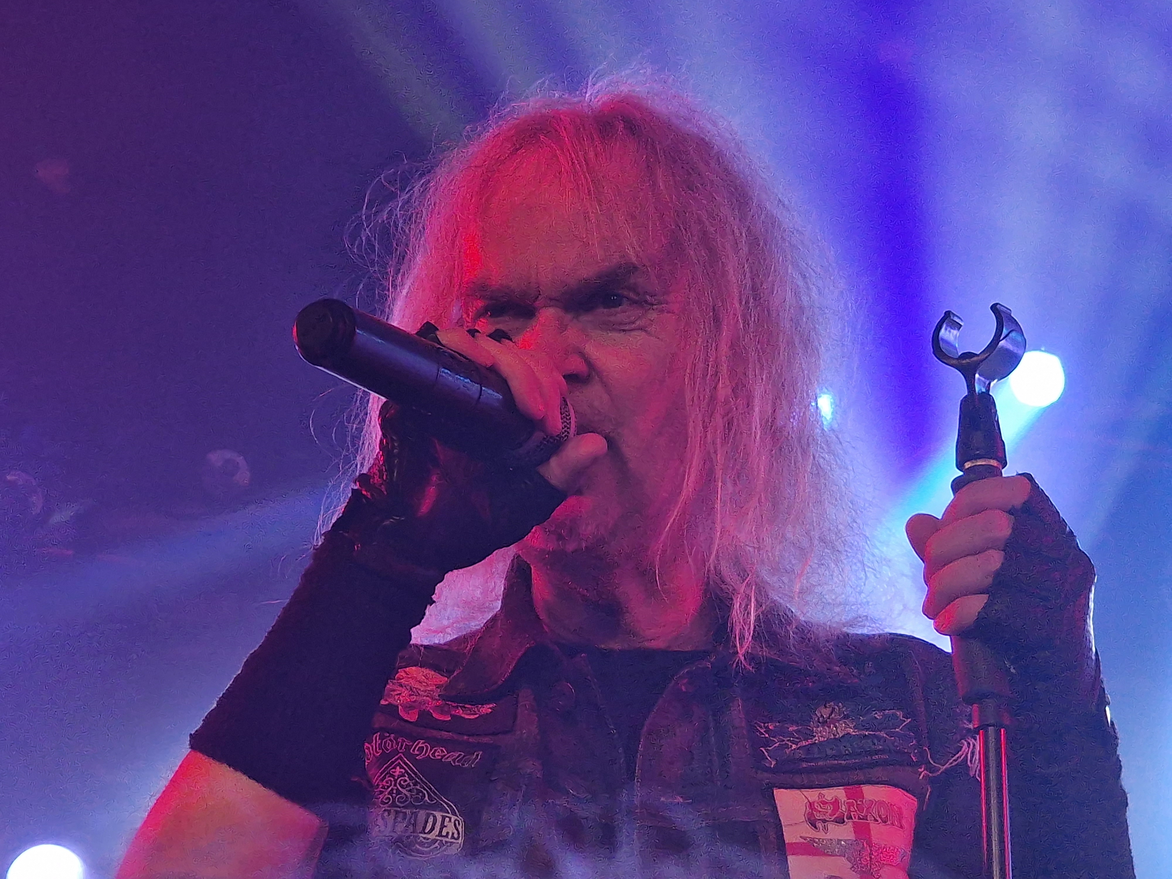 Die nun folgenden MYSTIC PROPHECY sind dann aber noch ein ganz anderes Kaliber. Mit unglaublich viel Energie und Spielfreude stürmt die bunte Truppe um den sympathischen schwäbischen Griechen R.D. Liapakis die Bühne im gut gefüllten Colos-Saal. Mit dem mächtigen Stampfer „Metal Divison“ wird gleich klar gemacht, um was es hier heute geht: Heavy Metal und sonst nichts. Reicht aber auch vollkommen aus, wenn man als Band eigentlich nur Charaktere mit Frontmann/-frau Niveau in den Reihen hat. Man weiß gar nicht, wo man hinschauen soll. Zu Lia am Mikro, der umherwirbelnden Joey am Bass, dem cool posenden Evan an der Gitarre, oder zu Schlagzeuger Hanno, der mit ordentlich Schmackes sein Kit bearbeitet. Jeder reißt sich buchstäblich den Hintern auf. Besonders hervorheben möchte ich allerding Gitarrist Markus Pohl, der gänzlich enthemmt erst über die Bühne und dann ins Schlagzeug fliegt. Das nennt man wohl Kollateralschaden. Abgesehen davon nutzen MYSTIC PROPHECY ihre knappe Zeit und zücken eine Metal Hymne nach der anderen. Leider werden die ersten 3 Alben nicht bedacht, was bei der Spielzeit, die sie als Support zur Verfügung hatten, aber auch sehr verständlich ist. Auch das Cover von „Shadow On The Wall“ kommt sehr gut an. Zumindest bei der ü-45 Fraktion. Wenn „Metal Division“ den Auftakt der Show bildet, dann kommt als Abschluss eigentlich nur die „Metal Brigade“ in Frage, und so kommt es dann auch. Allerdings hat das Aschaffenburger Publikum noch nicht genug und so wird das endgültige Finale mit „Ravenlord“ eingeläutet. Fette Vorstellung.