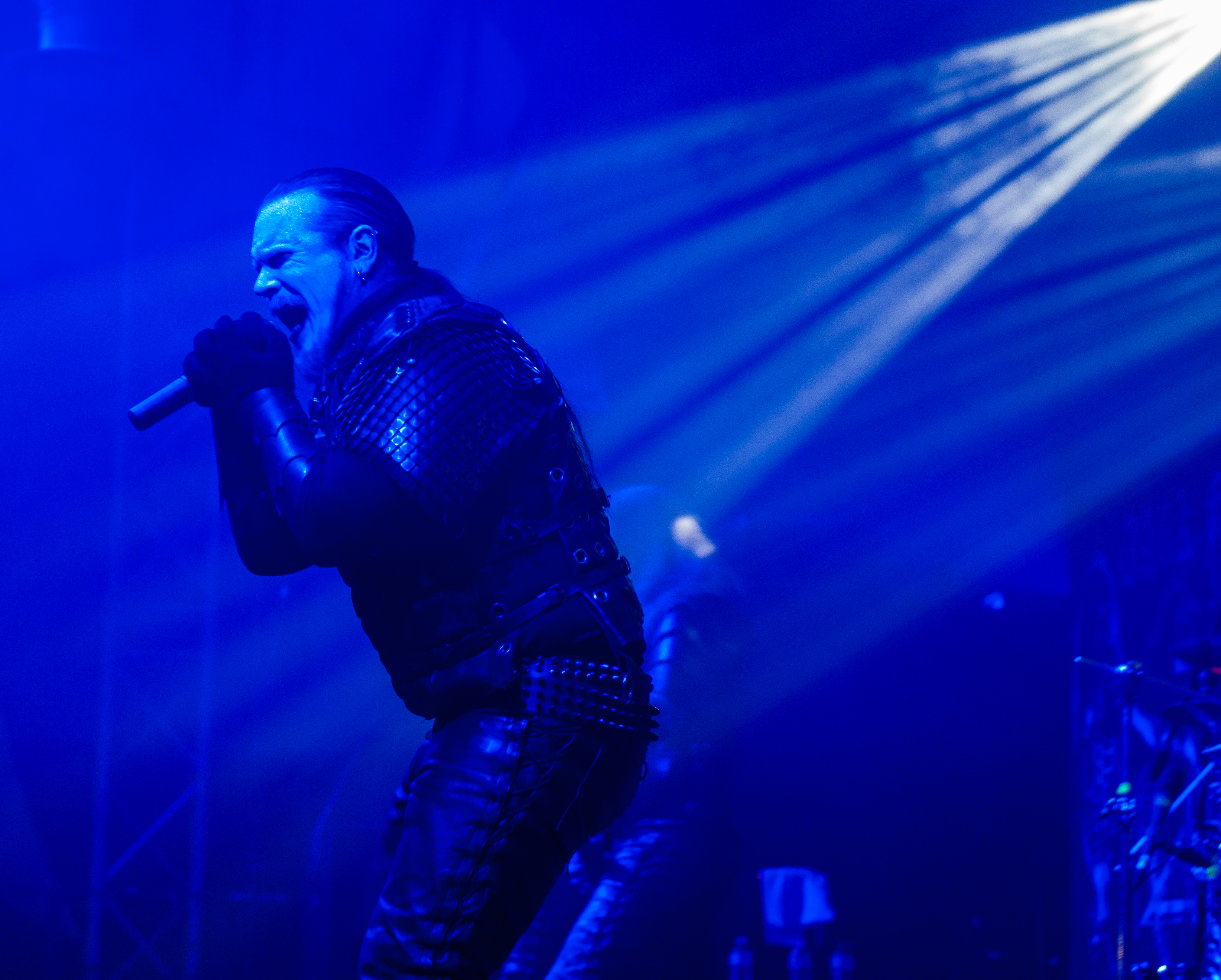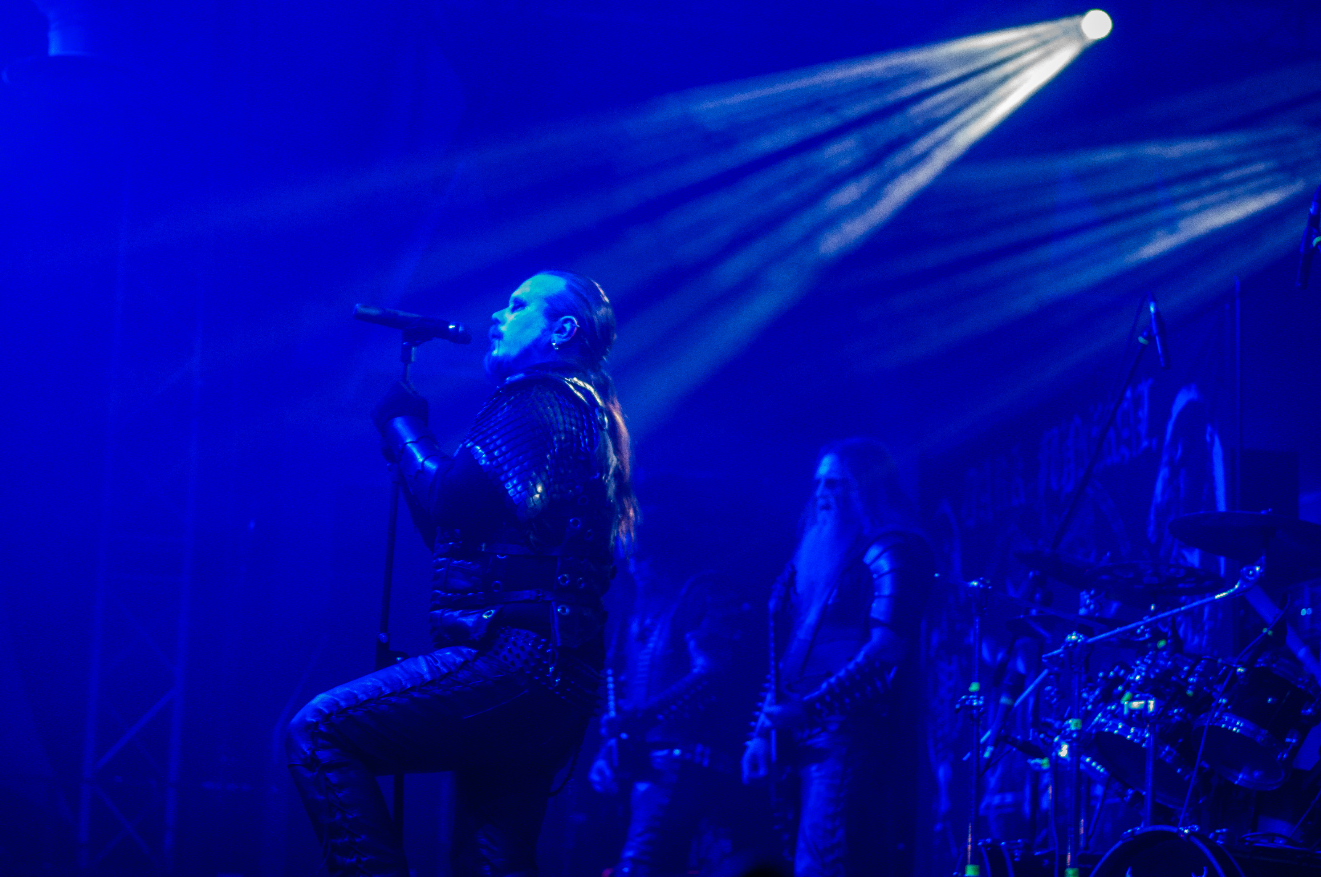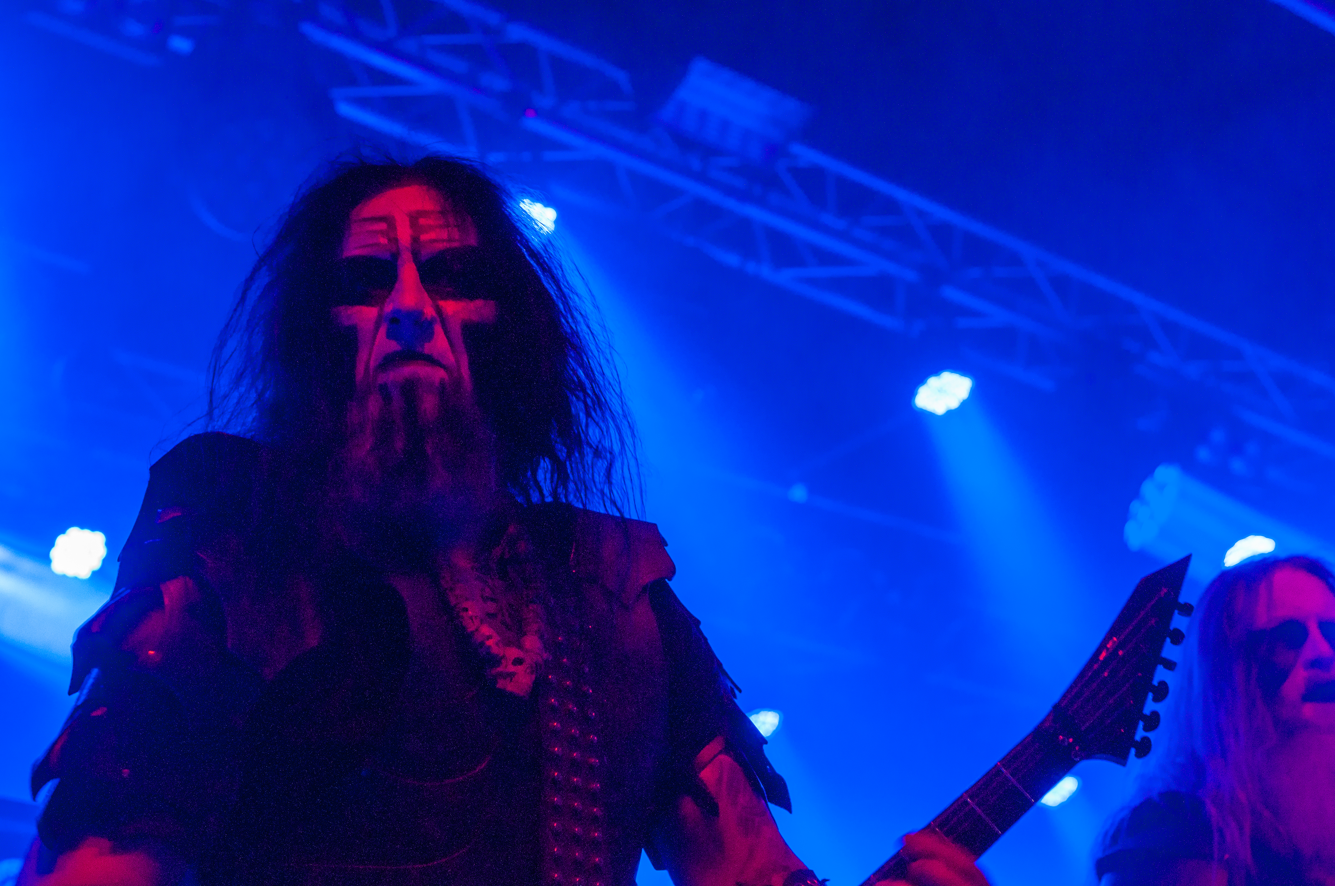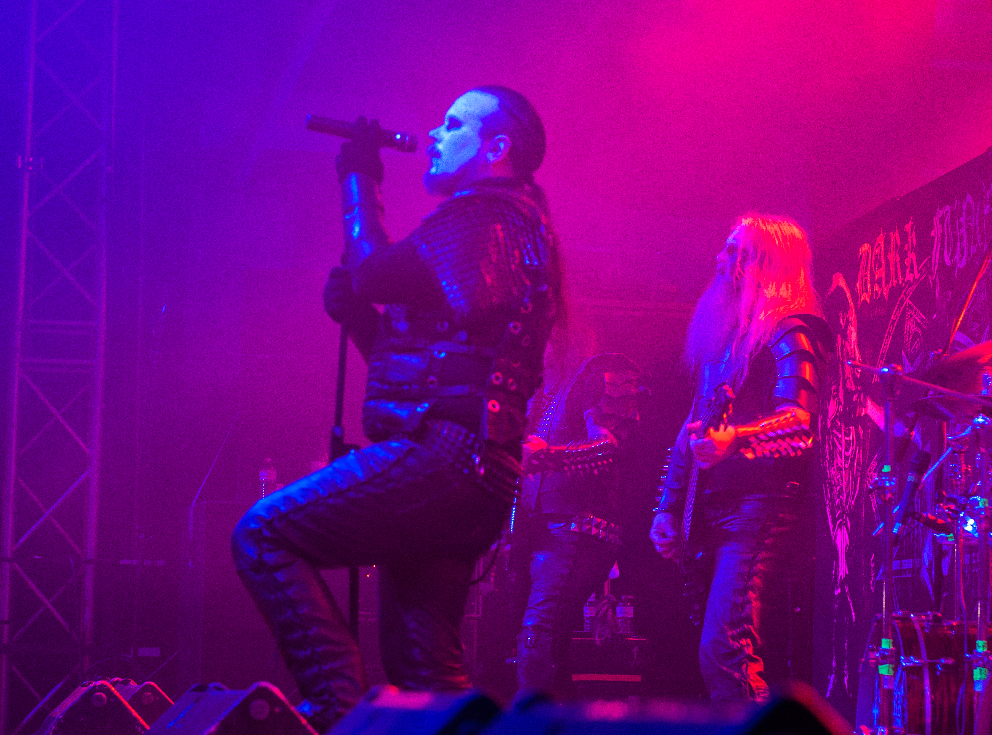 Nun wird’s ungleich düsterer: DARK FUNERAL entern die in Nebel und dunkel blaues Licht gehüllte Bühne. Die blasphemischen Schweden um Gründungsmitglied und Gitarrist Micke „Lord Ahriman“ Svanberg feiern ihr 30-Jähriges Bandjubiläum. Sänger Helharmadr fordert die Menge auf, sich an „Hail Satan“-Rufen zu beteiligen. Es wird geposed was das Zeug hält und die Band bietet alte Klassiker wie „The Secrets of the Black Arts“ und Songs vom neusten Album „We Are the Apocalypse“. DARK FUNERAL haben starke Livenummern wie „Leviathan“ und „My Funeral“. Natürlich darf „Unchain My Soul“ nicht fehlen, gut rüber kommen auch Tracks mit langsameren Parts, wie „When I’m Gone“, die eine tief schwarze melancholische Atmosphäre erzeugen. Der weiß geschminkte Helharmadr schleckt an seinem Satanskreuz und schwenkt die Fahne mit Bandemblem. Nach „Where Shadows Forever Reign“ verabschiedet sich das frevelhaft unheilige Quintett.