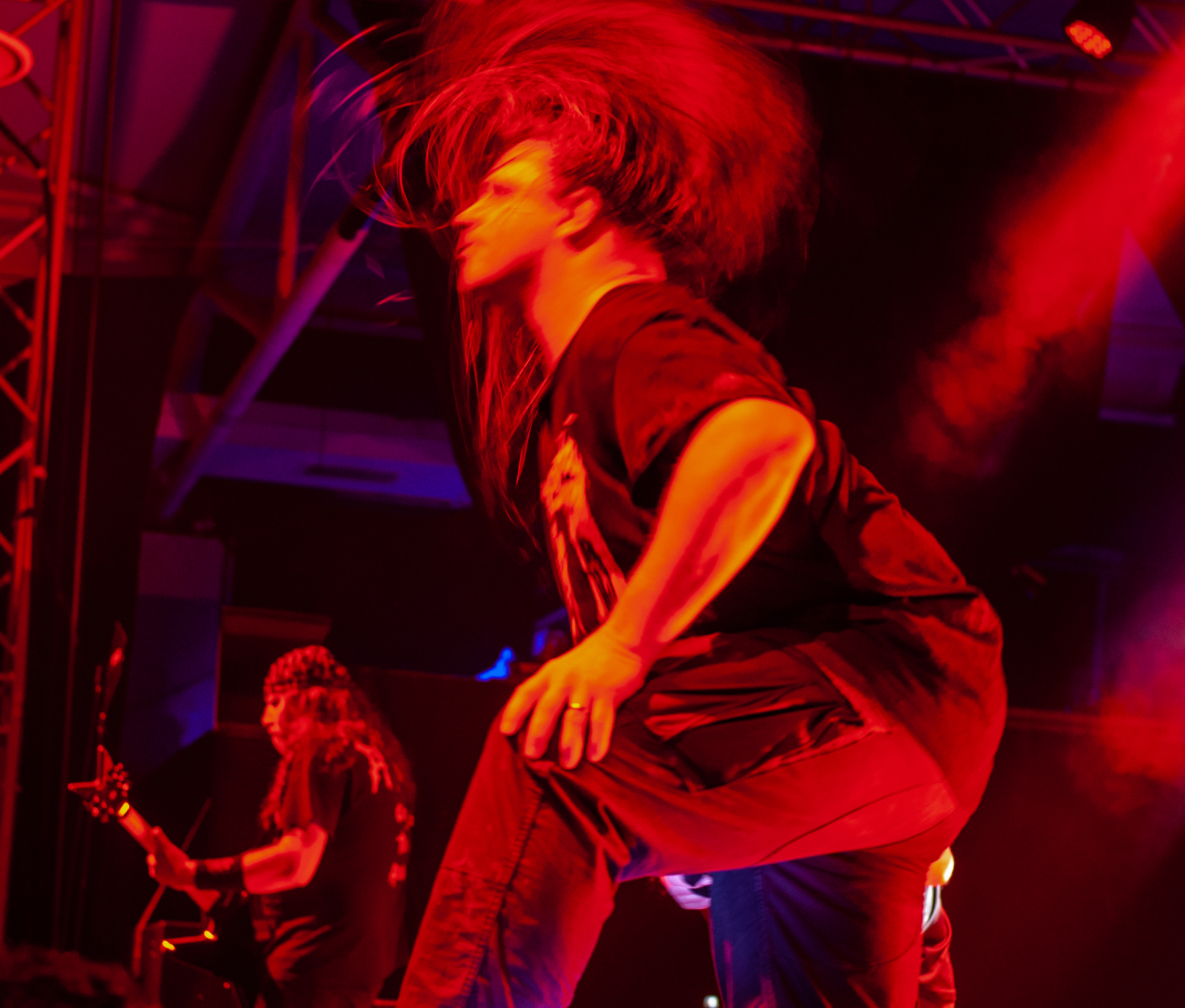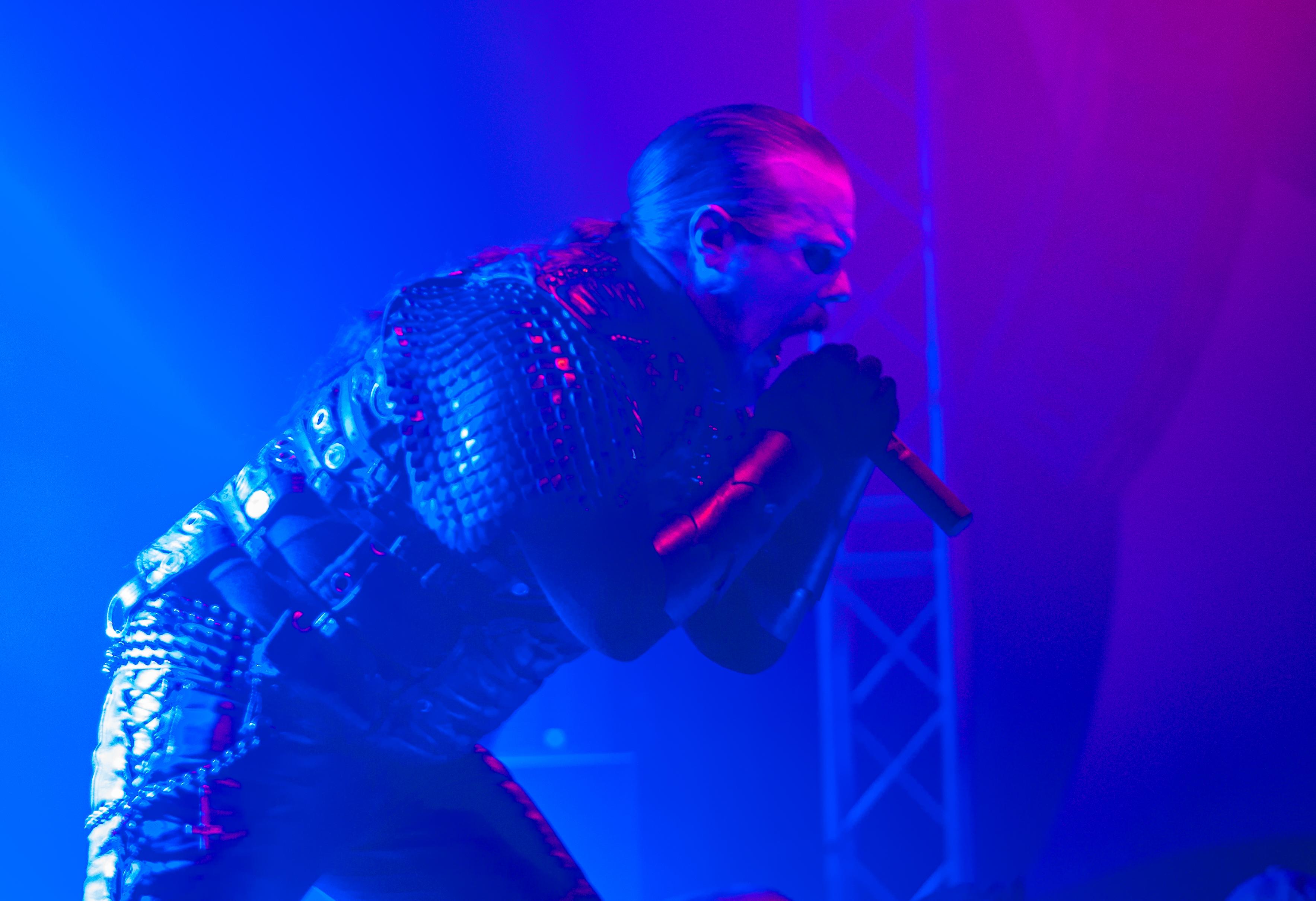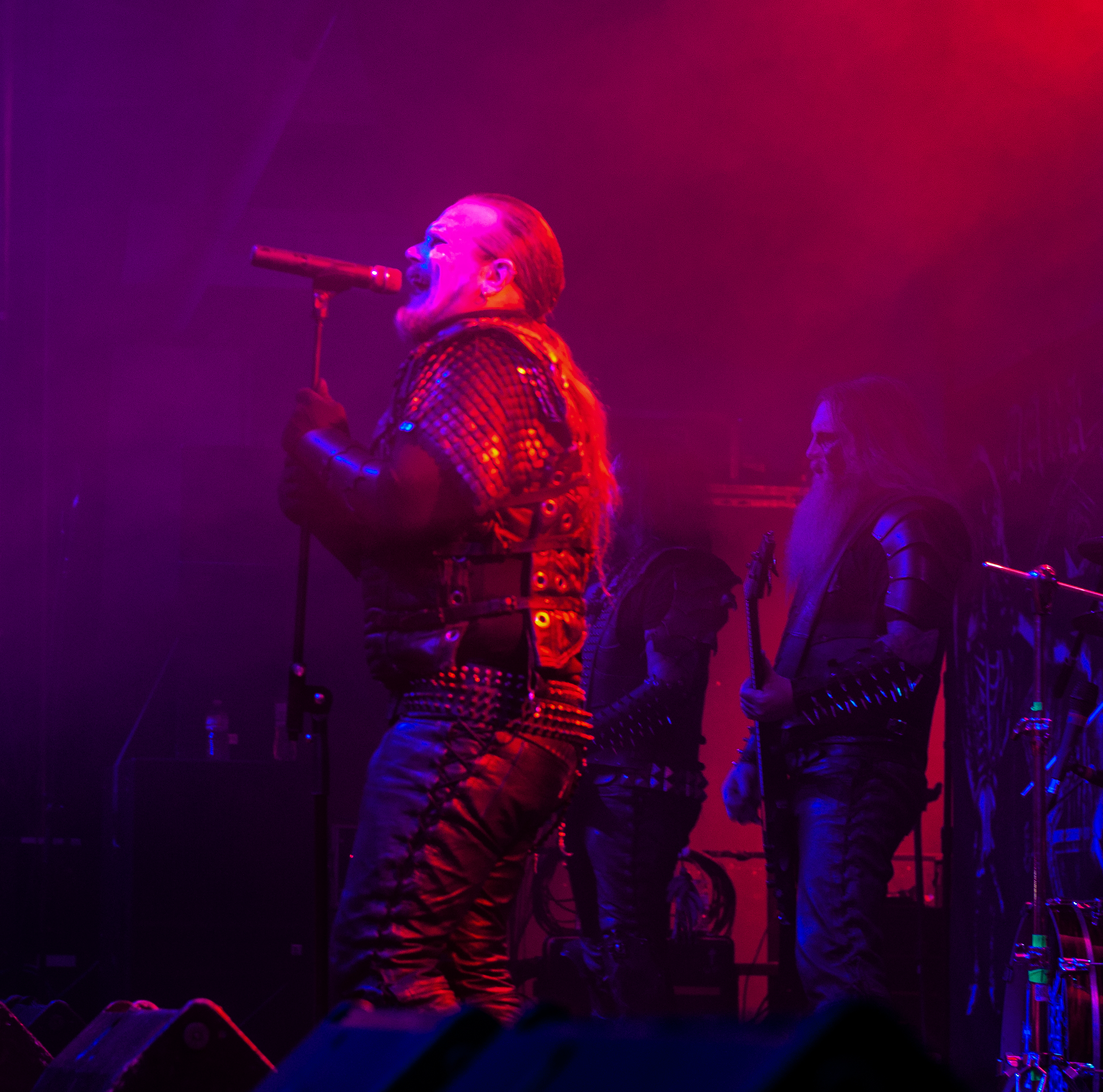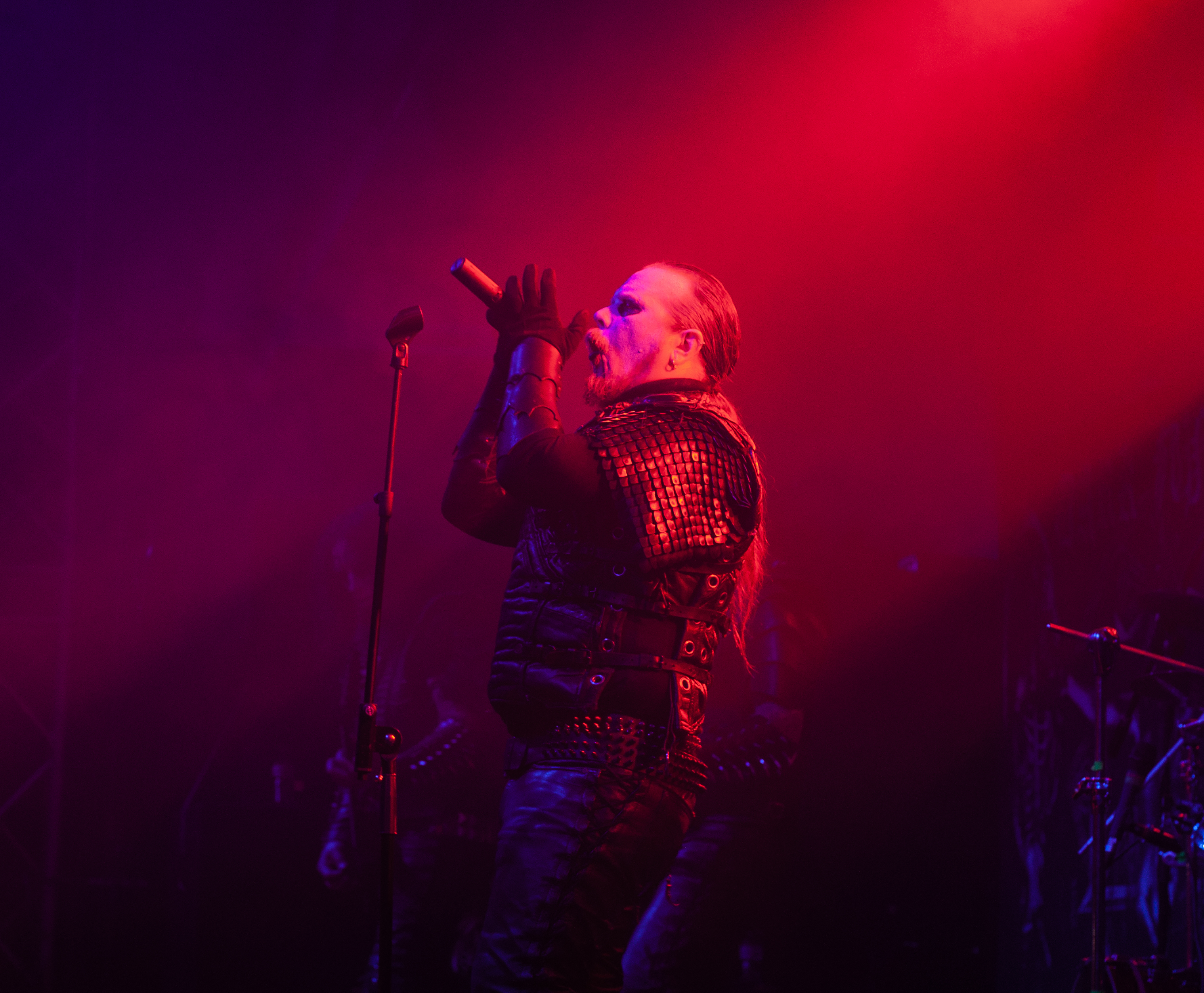 Nun wird’s ungleich düsterer: DARK FUNERAL entern die in Nebel und dunkel blaues Licht gehüllte Bühne. Die blasphemischen Schweden um Gründungsmitglied und Gitarrist Micke „Lord Ahriman“ Svanberg feiern ihr 30-Jähriges Bandjubiläum. Sänger Helharmadr fordert die Menge auf, sich an „Hail Satan“-Rufen zu beteiligen. Es wird geposed was das Zeug hält und die Band bietet alte Klassiker wie „The Secrets of the Black Arts“ und Songs vom neusten Album „We Are the Apocalypse“. DARK FUNERAL haben starke Livenummern wie „Leviathan“ und „My Funeral“. Natürlich darf „Unchain My Soul“ nicht fehlen, gut rüber kommen auch Tracks mit langsameren Parts, wie „When I’m Gone“, die eine tief schwarze melancholische Atmosphäre erzeugen. Der weiß geschminkte Helharmadr schleckt an seinem Satanskreuz und schwenkt die Fahne mit Bandemblem. Nach „Where Shadows Forever Reign“ verabschiedet sich das frevelhaft unheilige Quintett.