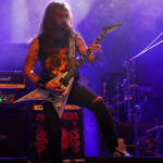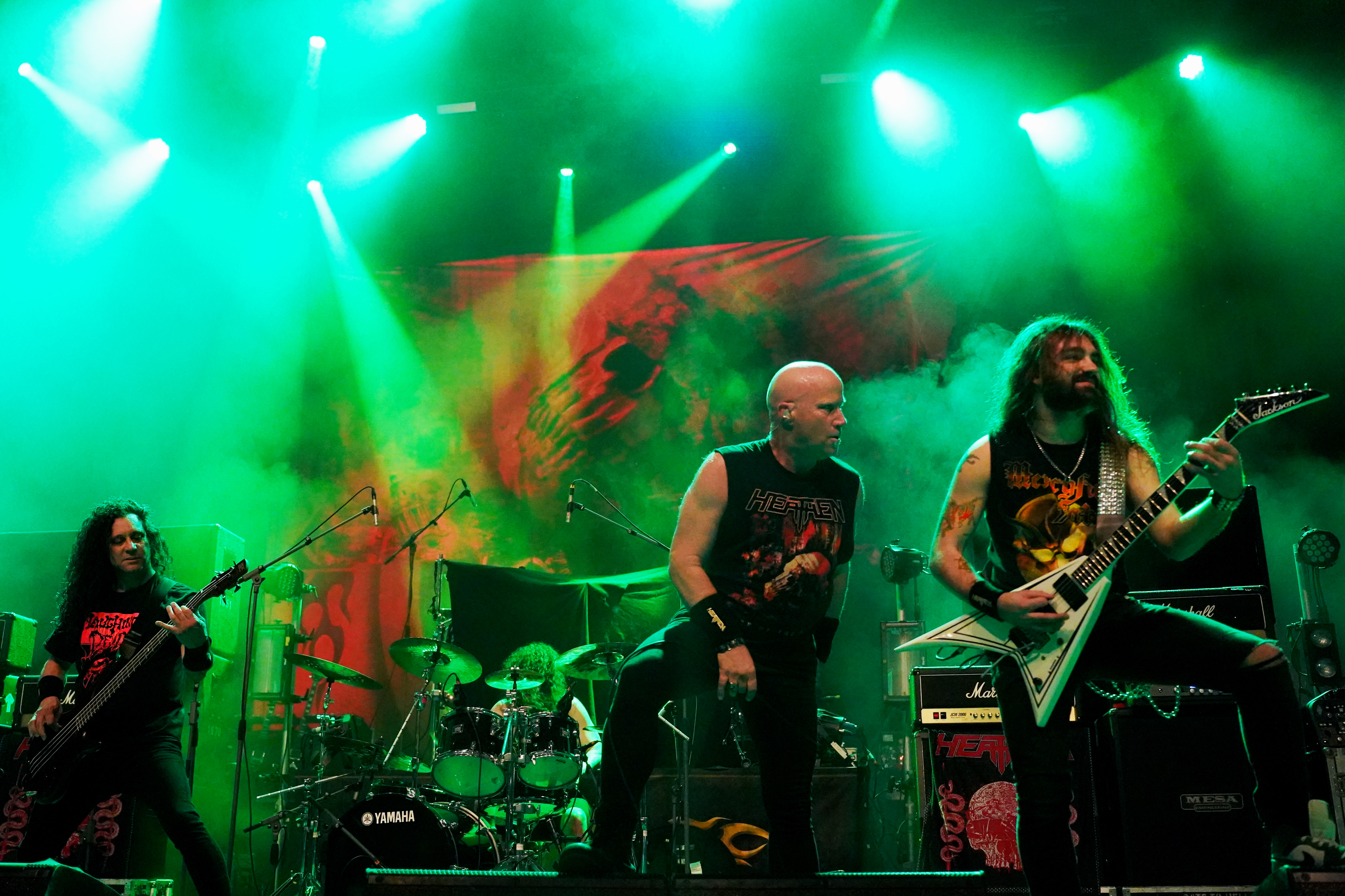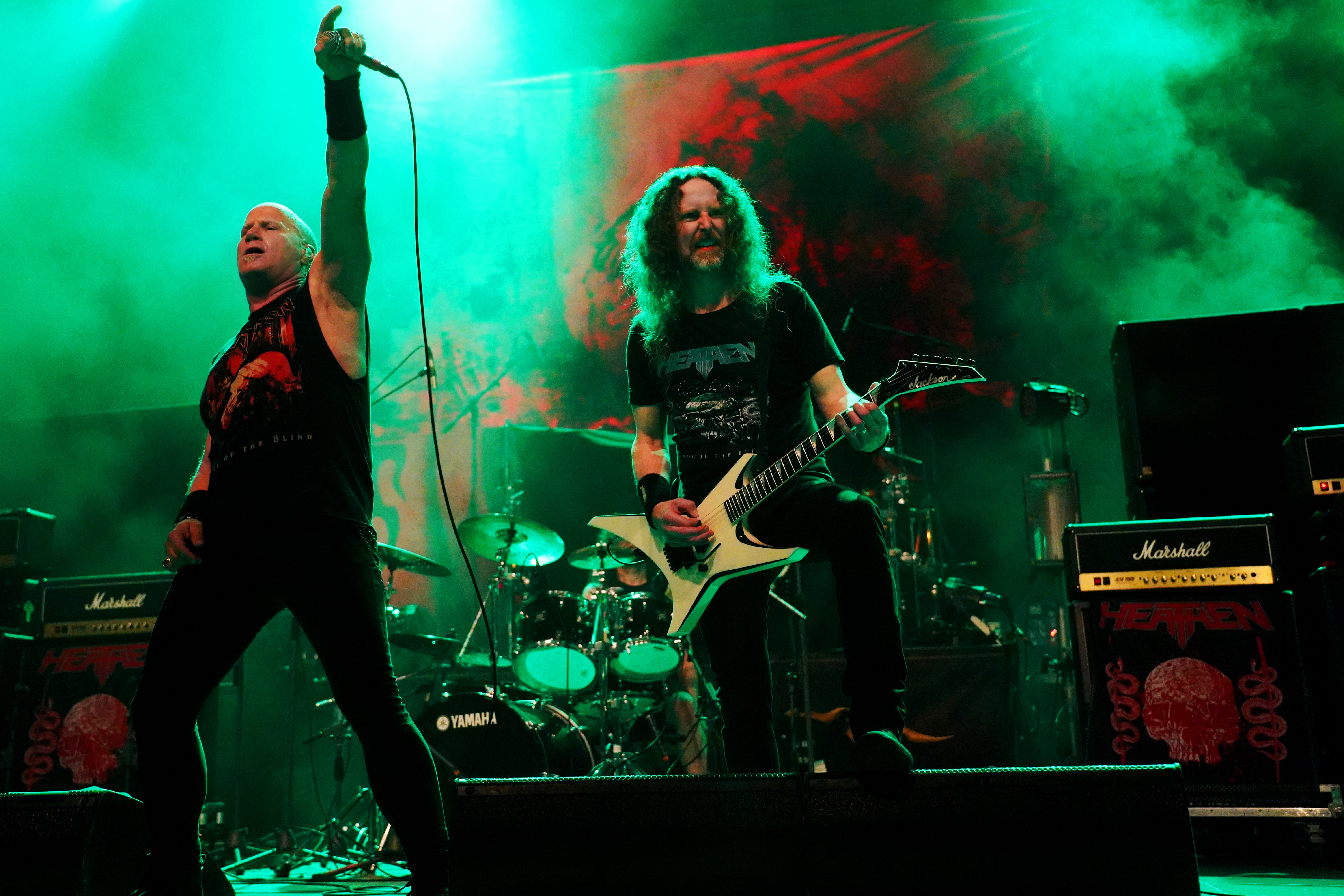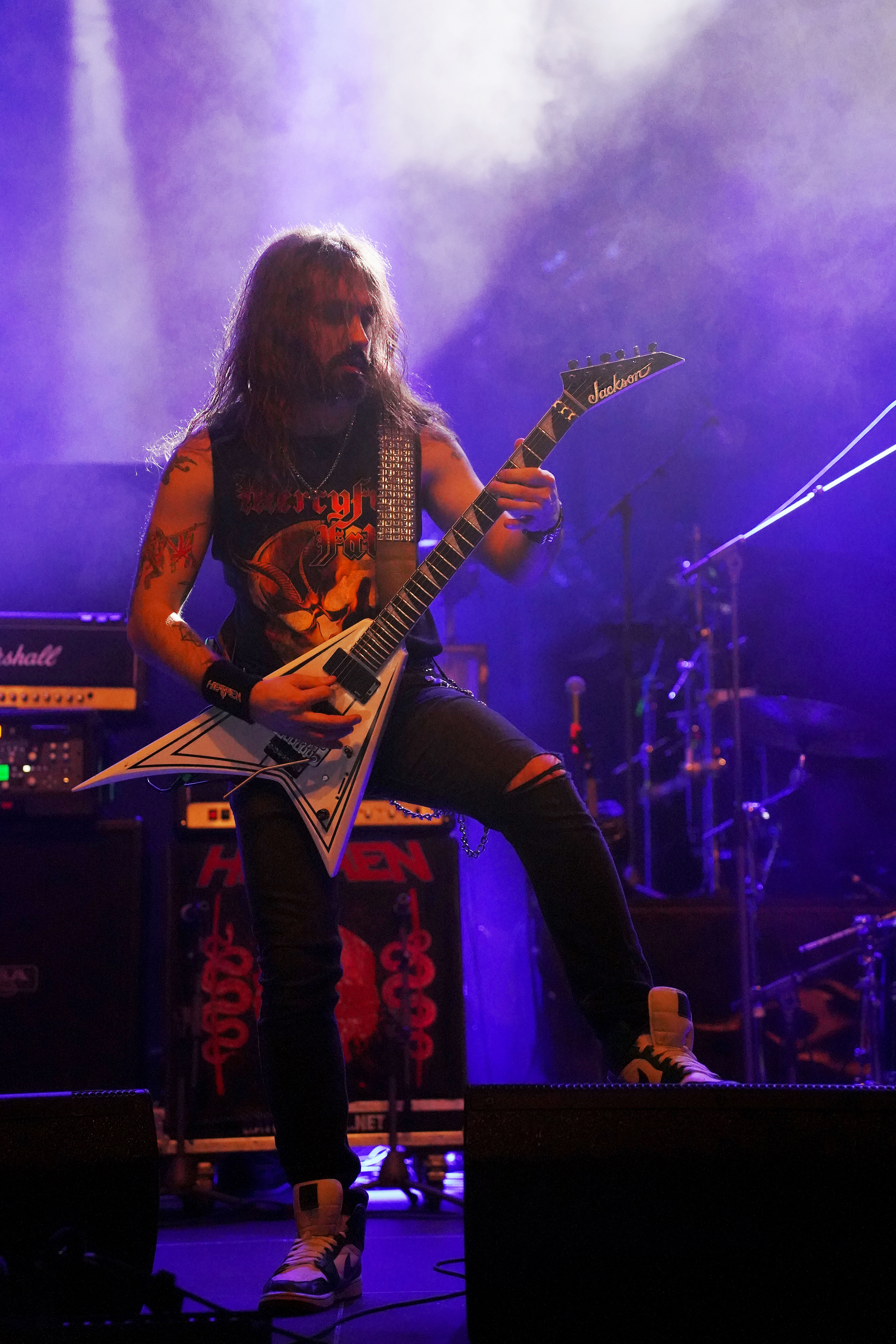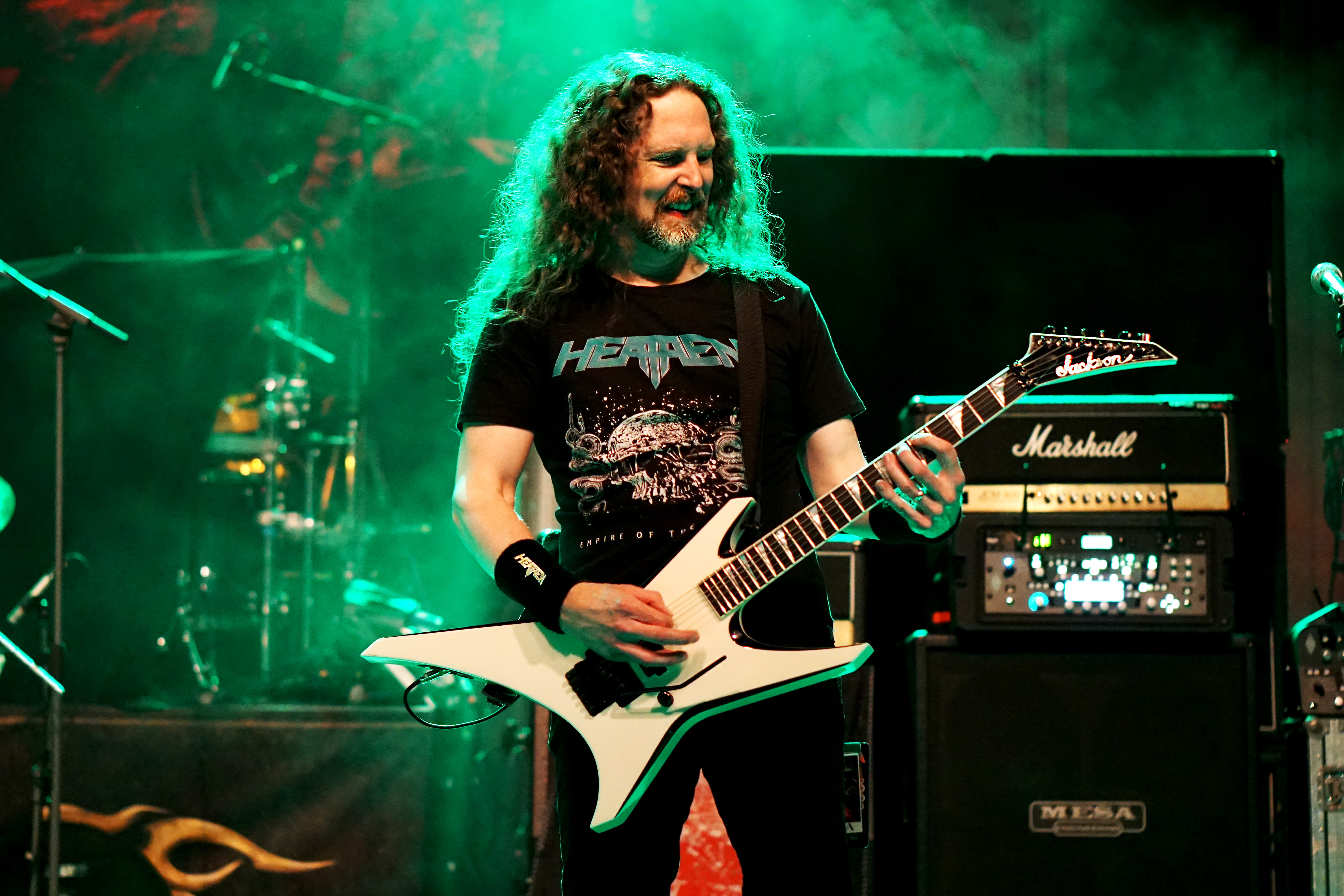 Als wir die spärlich gefüllte Halle endlich erreichten, war HEATHEN schon zu Gange. Die Jungs hatte ich mir bereits letztes Jahr auf ihrer Headlinertour angesehen und sie gingen auch dieses Mal absolut ambitioniert zu Werke. In den knapp 50 Minuten würdigten sie jedes Album mit einer Nummer, “Empire Of The Blind“ und “Victims Of Deception“ mit zwei. An der Seite von Lee Altus (Gitarre) feuerte Aushilfsgitarrist Kyle Edissi gnadenlos auf alles, was ihm vor das Griffbrett kam. Die abschließenden Stücke “Set Me Free“ (SWEET-Cover) und “Hypnotized“ brachten die Anwesenden aber letztlich so richtig auf Betriebstemperatur. Die Truppe räumte alles in allem souverän und schlagkräftig ab, analog zu ihren Soloshows.
