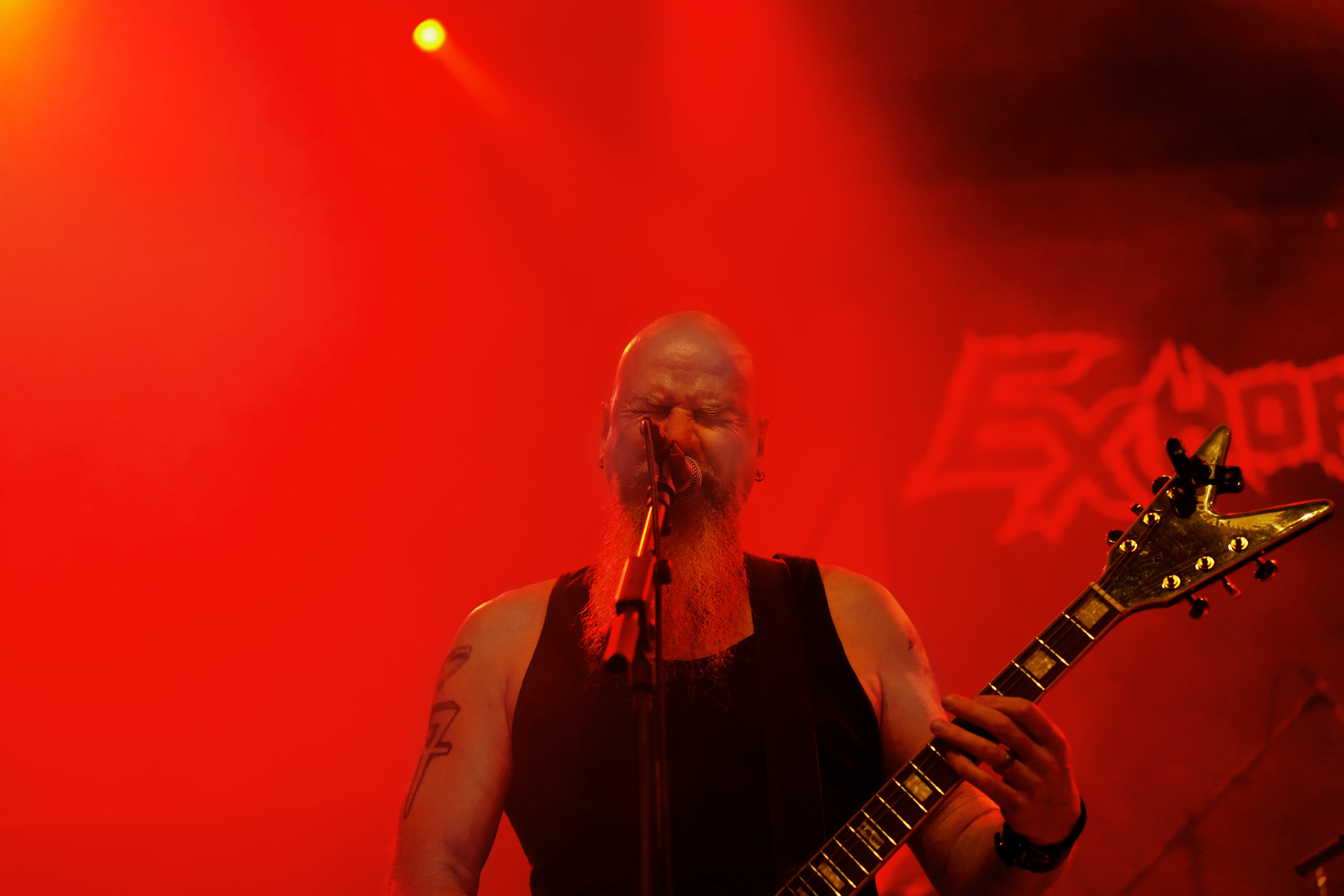 Der Abend war irgendwie geprägt von Dingen, die nicht so laufen sollten, wie geplant. Das ging im Prinzip am Tag zuvor schon los, als sich mein lieber Kollege Fabian, der mit mir dieses Konzert besuchen wollte, krank gemeldet hat. Das mit der Baustelle und dem Verpassen von KEOPS war dann die Fortsetzung. EXHORDER konnten im Folgenden ebenfalls mit Hiobsbotschaften aufwarten. Kyle Thomas (Gesang) informierte uns zu Beginn der Show darüber, dass sich Jason Viebrooks (Bass) im Krankenhaus befände und der zweite Mann an der Klampfe Waldemar Sorychta (ex GRIP INC., DESPAIR, VOODOOCULT) sich das Bein gebrochen hatte, so dass jener das Set meist im Sitzen absolvieren musste. Mit den Worten „Lasst uns das Beste daraus machen“ legten die Groove-Metal-Pioniere sodann aber direkt los. Nach dem Opener “Incontinence“ folgte, zur Freude der Anhängerschaft eine fast vollständige Zelebrierung ihres umstrittenen Kultwerkes “Slaughter in the Vatican“ aus dem Jahre 1990. Bis auf “Homicide“, “The Tragic Period“ und “Anal Lust“ wurde alles zum Besten gegeben. Mein persönliches Highlight war jedoch die Coverversion eines Gripklassikers “Ostracized“ - meine Güte, wie lange hatte ich das nicht mehr gehört. Letztendlich kann man jedoch konsternieren, dass die Performance auch ohne Bassist in allen Belangen passte. Ich persönlich hatte die Combo zwar bisher nicht so richtig auf dem Schirm, war aber von der Energie, die da von der Bühne kam, überaus angetan und ließ mich von der allseits herrschenden Begeisterung anstecken. Es war aber nicht nur die Musik, sondern darüber hinaus auch die ausgesprochen sympathische Art, mit der die Truppe aus New Orleans das Publikum in ihren Bann zog, das noch lange nach Ende der letzten Nummer „EXHORDER“ skandierte.