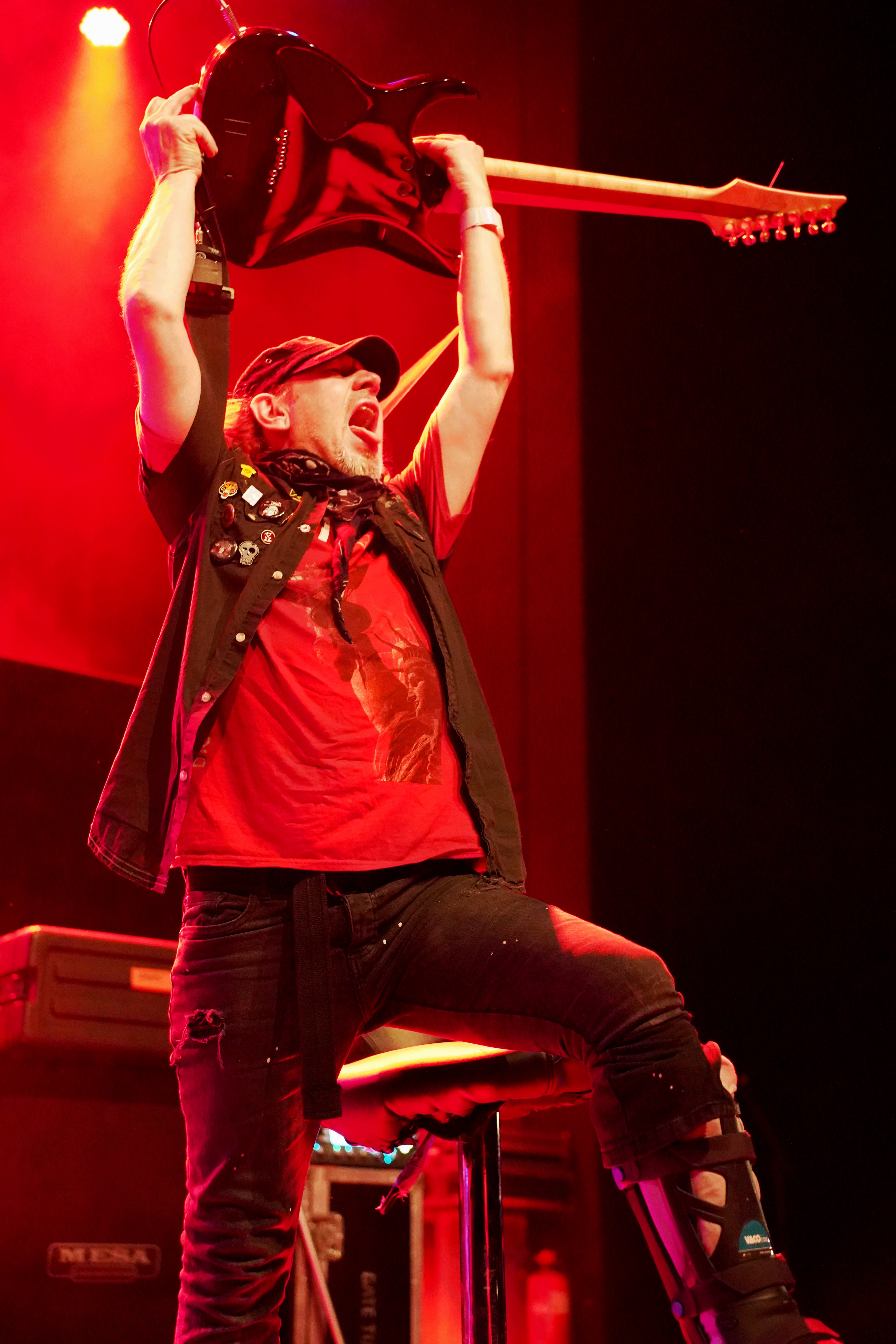 “Electric Rattlesnake“ entpuppte sich an dritter Stelle schon als erster Höhepunkt, nimmt man den Kreisverkehr in der Halle und die Fanchöre als Gradmesser. Zu keiner Zeit kam auch nur der geringste Zweifel auf, dass hier und heute nicht alles niedergebrannt wurde. Die Riffgewitter von Dave Linsk und Derek Tailer waren erbarmungslos,die Solos furios. Nachdem das Auditorium bereits in Schutt und Asche lag, gelang es selbstredend diesen Thrash-Urvätern mühelos nochmals einen drauf zu legen, da mit 20 Scheiben (an zehn davon bediente man sich) in der Diskographie ausreichend fettes Liedgut vorhanden ist. Mit “Elimination“ wurde zum Finalen Schlag angesetzt. “Overkill“ und “Rotten To The Core“ wurde nachgelegt, nachdem man kurz Luft holen konnte, bevor die New Yorker zum unvermeidbaren Gnadenstoß “Fuck You“ (THE SUBHUMANS-Cover) ausholten. Wohl dem, der solche Granaten im Koffer hat.