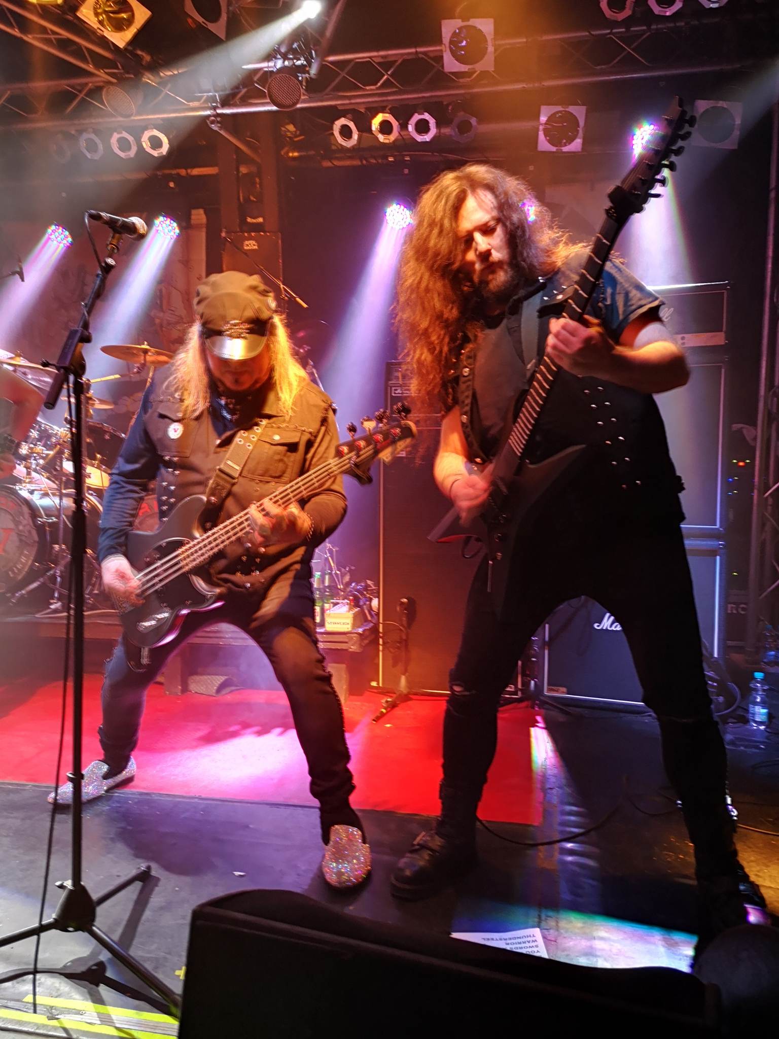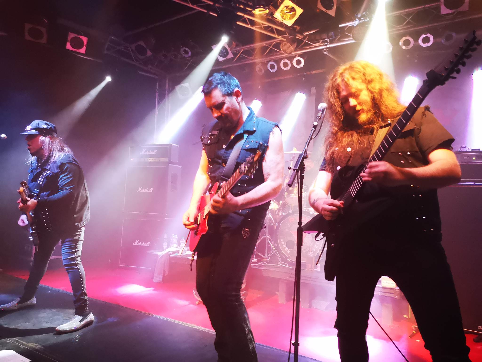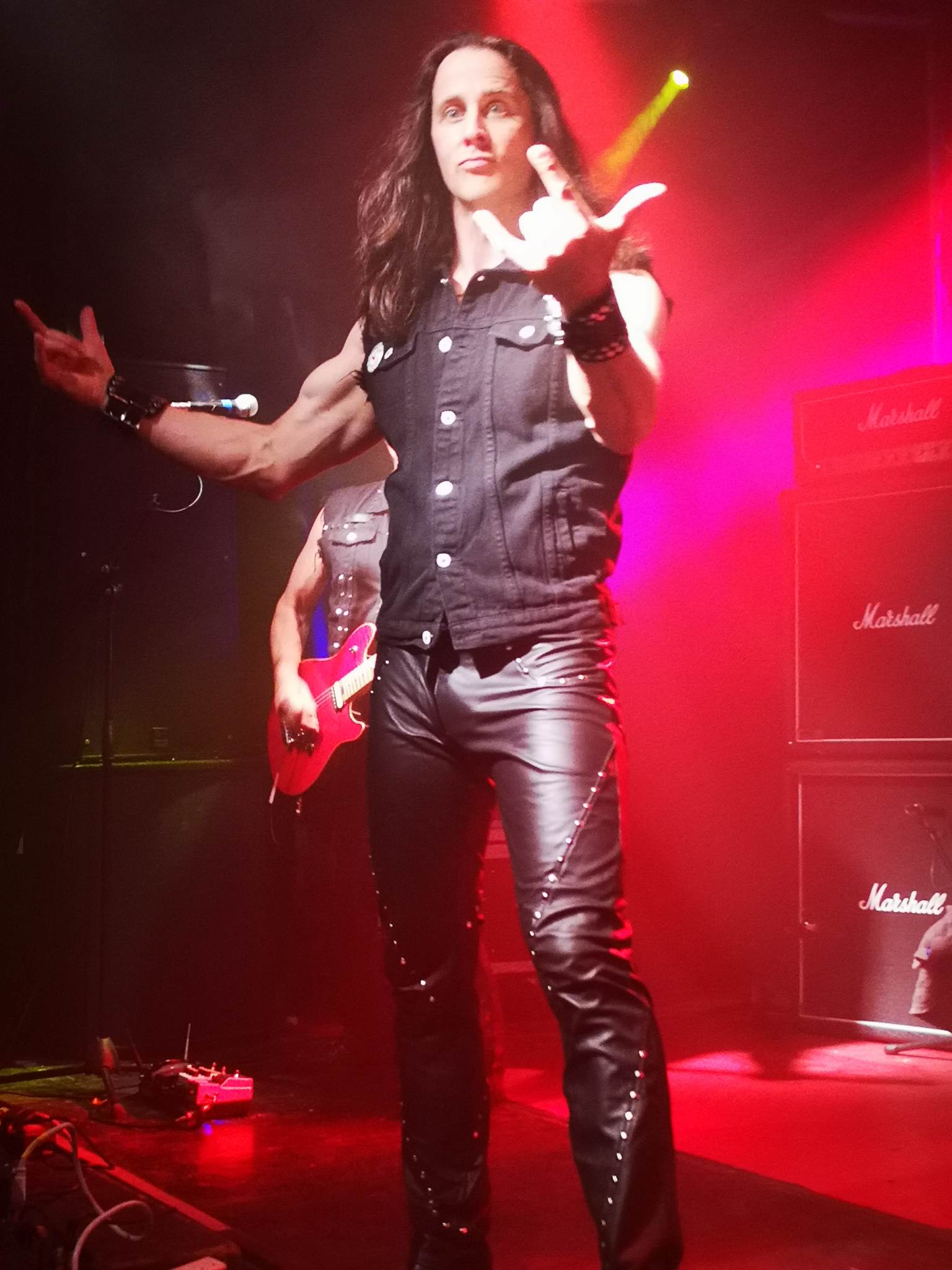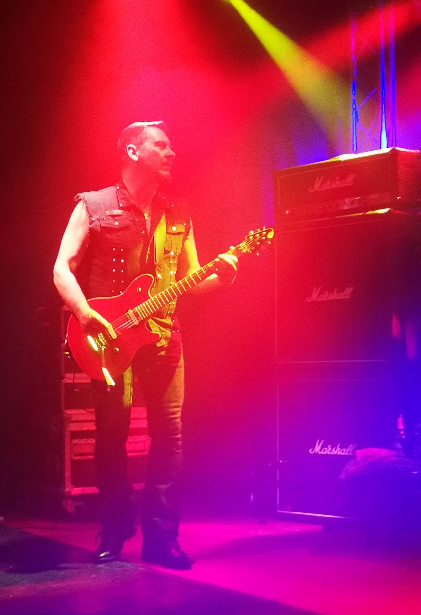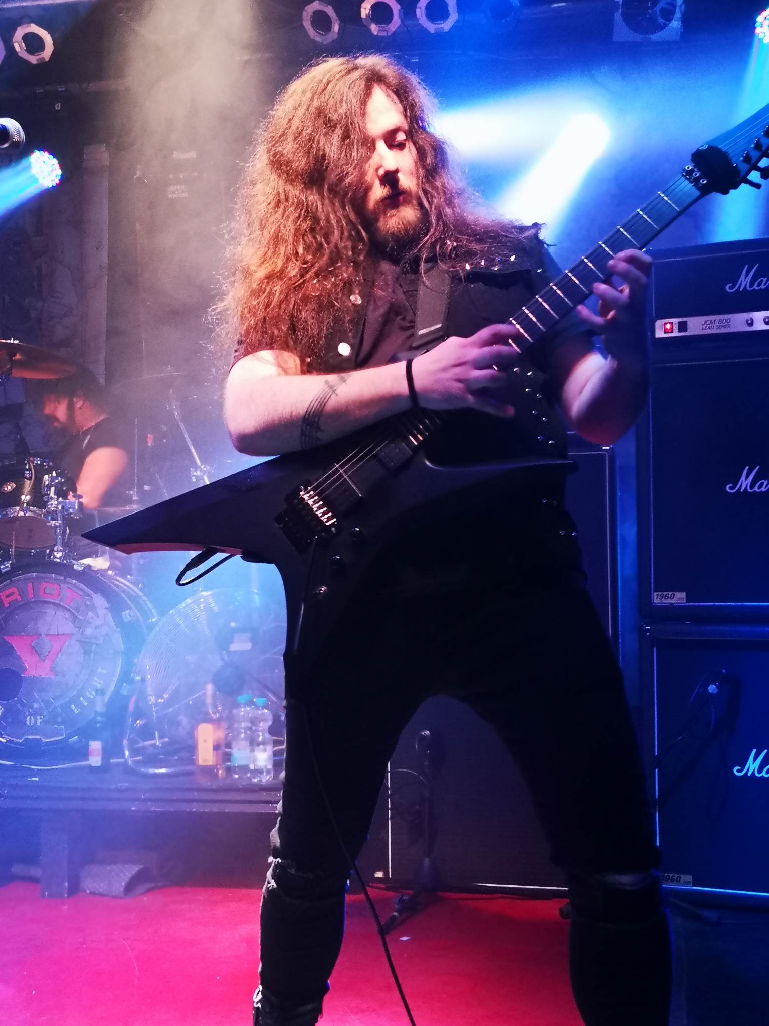 Danach ist das Publikum erst recht heiß auf eine der langlebigsten und beständigsten Bands des Planeten. Auch ohne Mark Reale und ohne jedes weitere Gründungsmitglied führen RIOT V das Erbe würdig weiter. Von der ersten Sekunde an gibt die Band Vollgas. 99% aller Bands hätten “Fight Or Fall” und “On Your Knees” in ihrem Zugabenblock, RIOT V eröffnen mit diesen Klassikern mal ganz locker ihren Gig. Natürlich ist auch die Meute vor der Bühne auf den Punkt hellwach. Glückliche Gesichter, gereckte Fäuste, leidenschaftliches Mitsingen… oder auch -gröhlen. Egal. Spätestens mit “Fire Down Under” an vierter Stelle des Sets explodiert die Stimmung im Club endgültig und von der ersten bis zur letzten Reihe sind alle voll dabei. Todd Michael Hall zeigt erneut eine souveräne, eigentlich völlig überirdische Gesangsleistung. Er trägt seine Vokalakrobatik mit solcher Lockerheit und ohne jeden unsicheren Ton vor, dass es eine wahre Freude ist. Auch Mike Flyntz an der Leadgitarre hat sich längst zur Identifikationsfigur der Band entwickelt. Er füllt die übergroßen Fußstapfen, die Mark Reale hinterließ, wirklich sehr gut aus. An der zweiten Gitarre macht der Ersatzklampfer Jonathan Reinheimer für den verhinderten Nick Lee seine Sache auch richtig gut. Das Rhythmus-Team van Stavern/Gilchriest legt einen bemerkenswert präzisen, auf den Punkt gespielten Teppich.