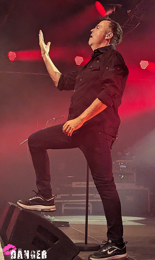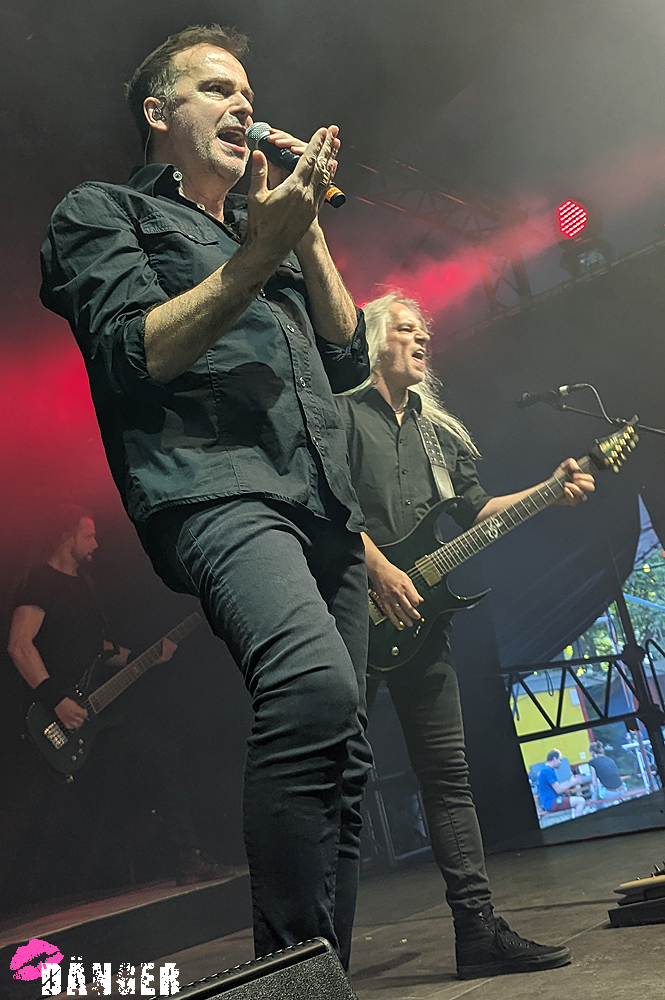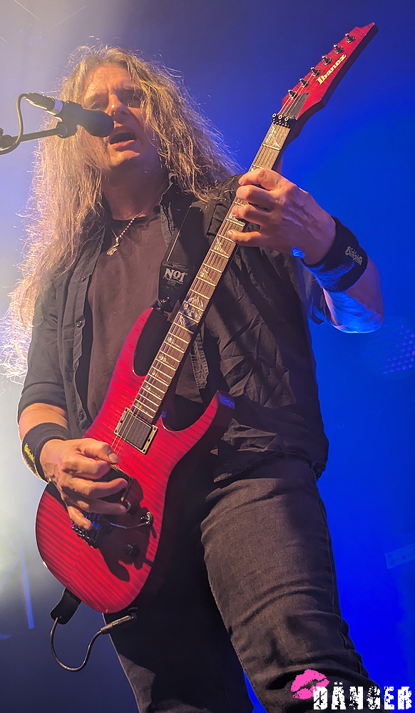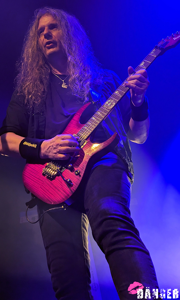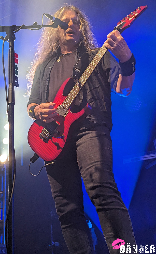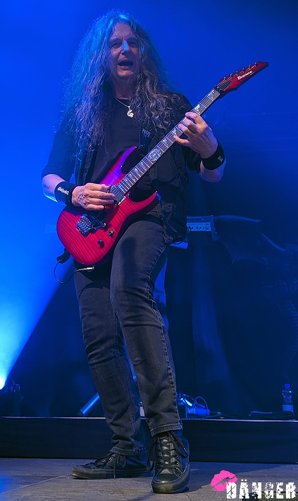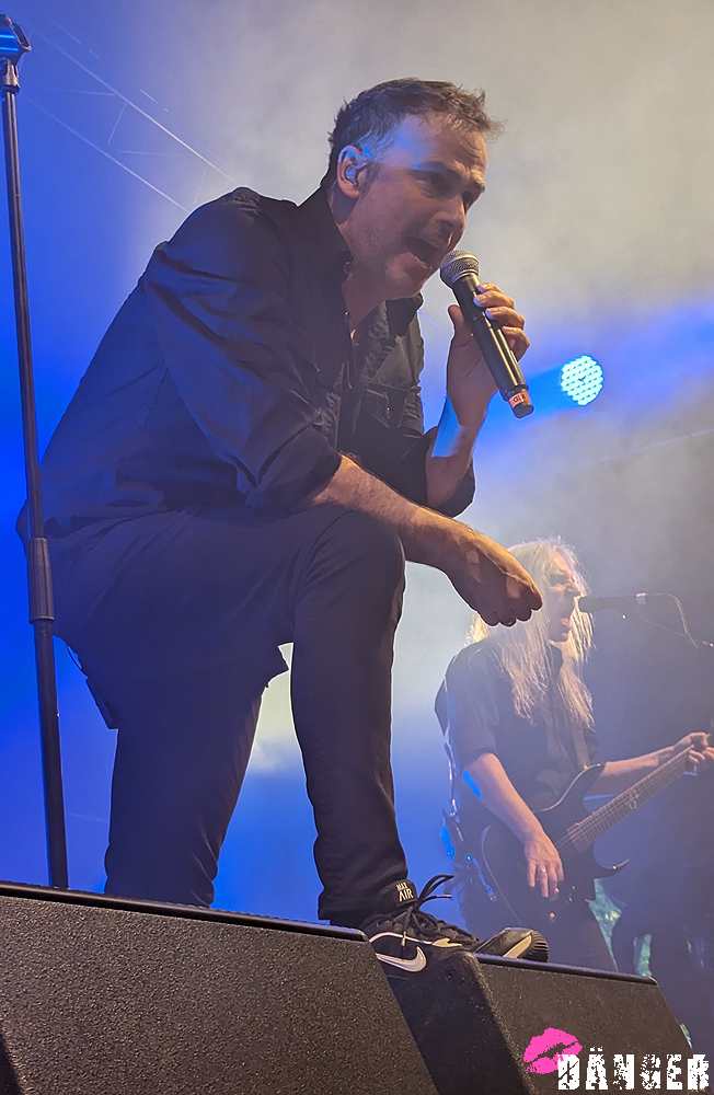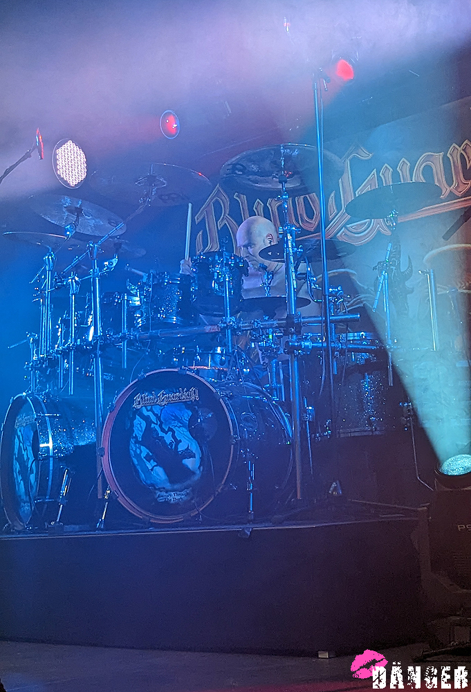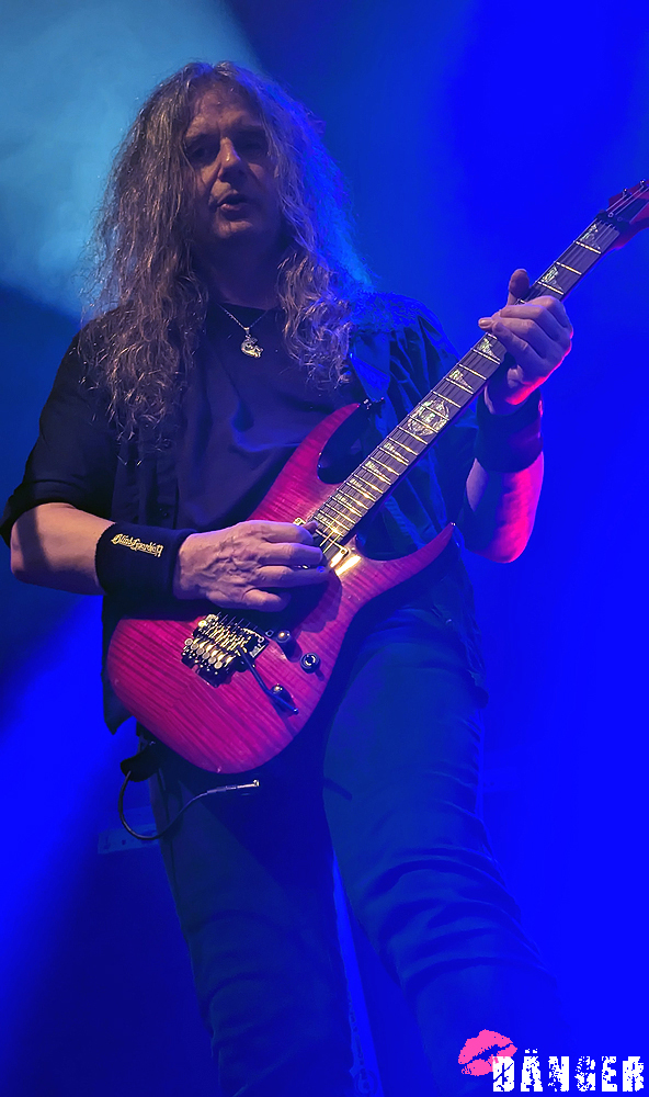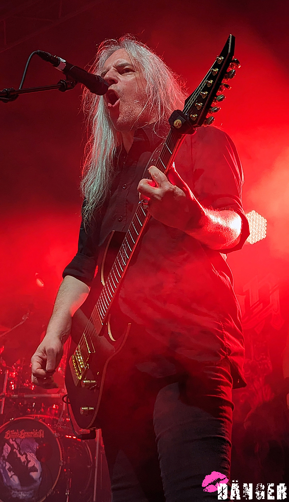Eine Supportband gibt es heute leider nicht, und so startet das Krefelder Quartett, auf der Bühne verstärkt von Keyboarder Michael Schüren und Johan van Stratum am Bass (der sich aus Sicht des Publikums ganz schüchtern in der hinteren rechten Ecke versteckt), eine sehr starke Zeitreise durch seine inzwischen 35-jährige Diskografie. Meine persönliche Befürchtung, die Hauptlast der Setlist primär auf das neue Album „The God Machine“ zu legen und nur am Ende des Gigs ein paar Klassiker auszupacken, erfüllt sich glücklicherweise nicht. Und als es mit dem grandiosen „Imaginations From The Other Side“ losgeht, kommt selbst beim ansonsten allgemein gerne sehr verhaltenen Ulmer Publikum so etwas wie Stimmung auf, die im Laufe des Sets noch weiter an Fahrt aufnimmt. Das liegt zum allergrößten Teil an der famosen Setlist, die gerade einmal drei Songs aus dem neuen Jahrtausend (!) offenbart („Deliver Us From Evil“ und „Violent Shadows“ vom neuen Album sowie „Sacred Worlds“ von „At The Edge Of Time“) und ansonsten ausschließlich Material der 80er- und 90er-Jahre preisgibt. Sänger Hansi Kürsch ist mit seinen rund 40 Jahren Bühnenerfahrung ein ausgezeichneter Entertainer, der sich zwar anfangs ein wenig über das „Zirkuszelt“ lustig macht, die gesamte Show aber trotz gefühlter 80 Grad Celsius (die Seitenverkleidungen des Zelts werden im Laufe des Konzerts nach oben geklappt, damit das Publikum nicht nach unten klappt) souverän und nach eigener Aussage als „Zirkusdirektor“ dirigiert. Und auch heute sind BLIND GUARDIAN - nicht nur angesichts der Hitze - keine über die Bühne fegenden Derwische, das waren sie auch früher nie, sondern leben von ihren grandiosen Mitsinghymnen, von denen vor allem „Nightfall“, „Lord Of The Rings“, „Ashes To Ashes“, der unvermeidliche und wie immer fast alleine vom Publikum getragene „The Bard’s Song“ (ich persönlich könnte auf die Nummer verzichten, aber ohne wird es wohl in diesem Leben keine Show der „Blinden Gardinen“ mehr geben!) und das im Zugabenteil ausgepackte „Valhalla“ mächtig zünden und die Temperatur im Zelt noch weiter in die Höhe treiben.