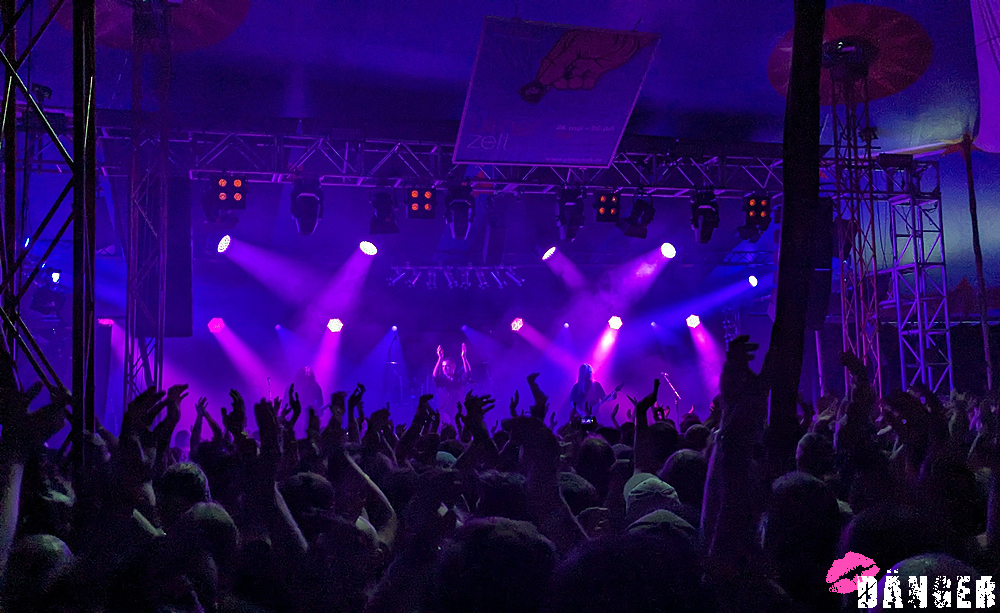 Da werden ausnahmsweise nach einigen Jahren der Abstinenz wieder größere Metalbands in Ulm angekündigt, und was passiert?! SAXON und RAGE im Roxy fallen aufgrund von Krankheit ins Wasser, und VOIVOD spielen im Roxy auch nicht, weil… siehe einen Satz weiter. BLIND GUARDIAN jedenfalls sagen nicht ab, auch nicht zwei Tage vorher, und parallel findet auch kein Festival statt, das sie dem Ulmer Zelt „klauen“ könnte. So begibt es sich, dass das Zelt bei bester Laune und sommerlich-heißen Temperaturen in letzter Minute ausverkauft ist und man bereits auf der Straßenbahnfahrt in die wunderschöne Friedrichsau diverse Herren (viel mehr) und Damen (leider viel weniger) unterschiedlichsten Alters und in bunte BLIND GUARDIAN-Gewänder gehüllt vorfindet.