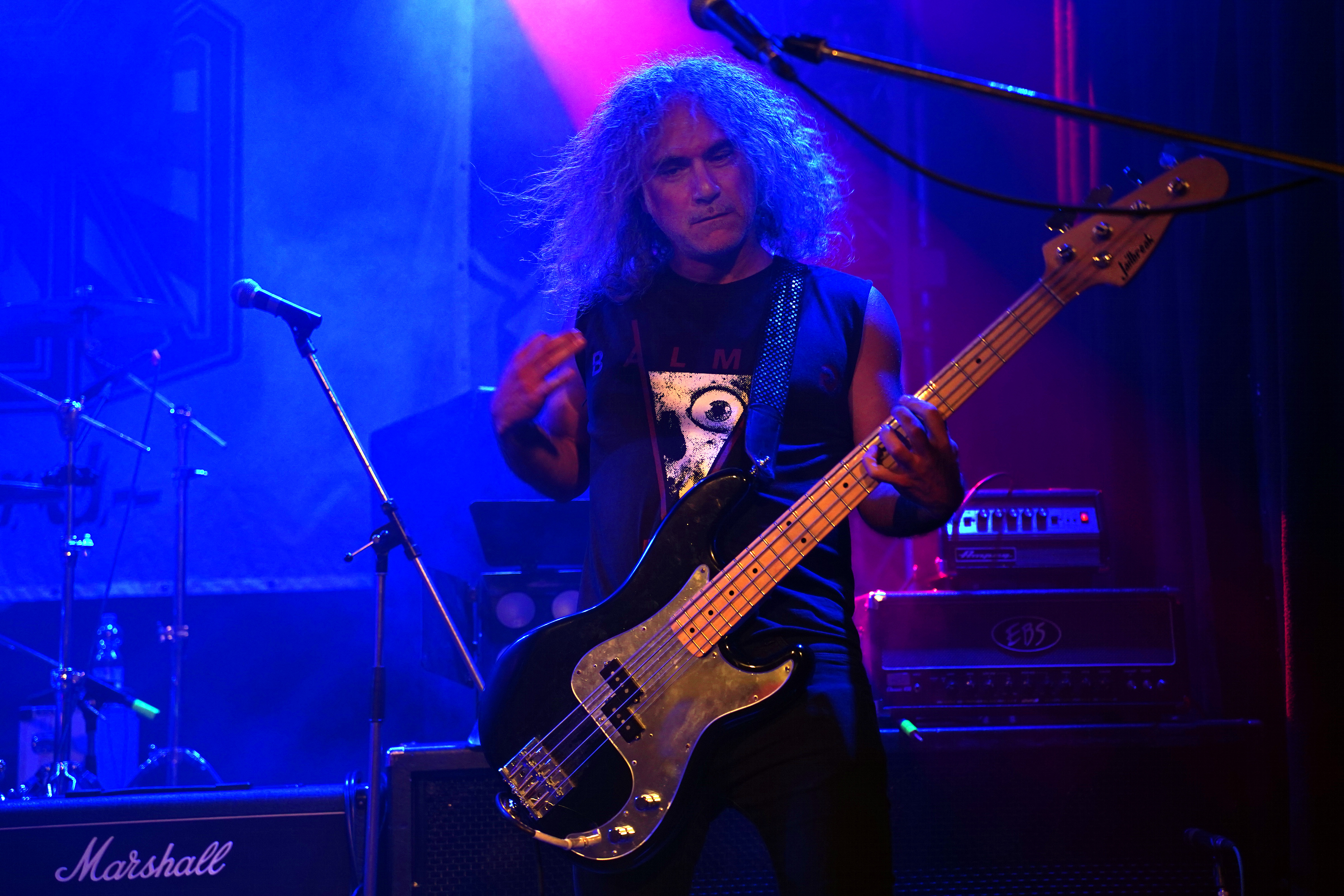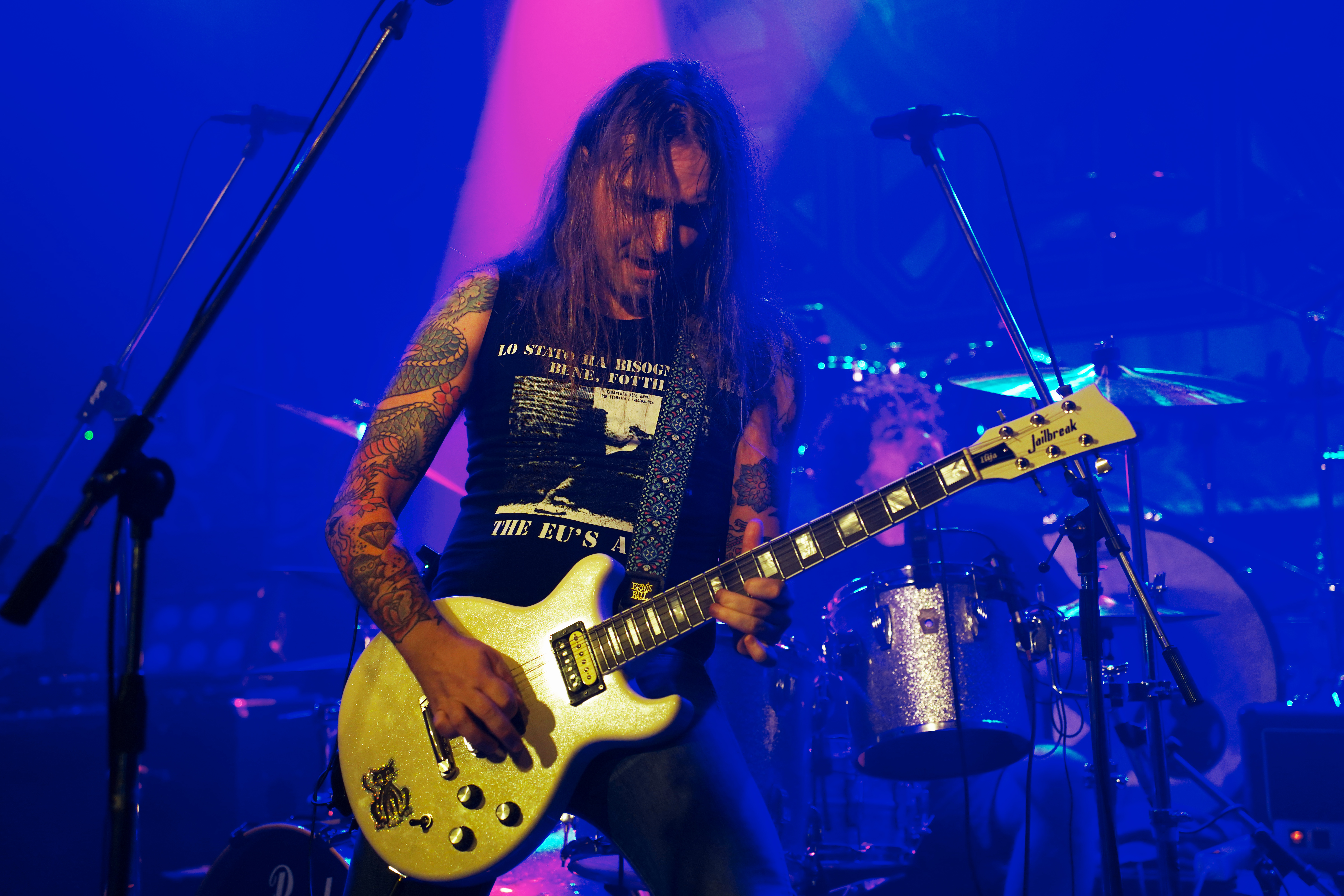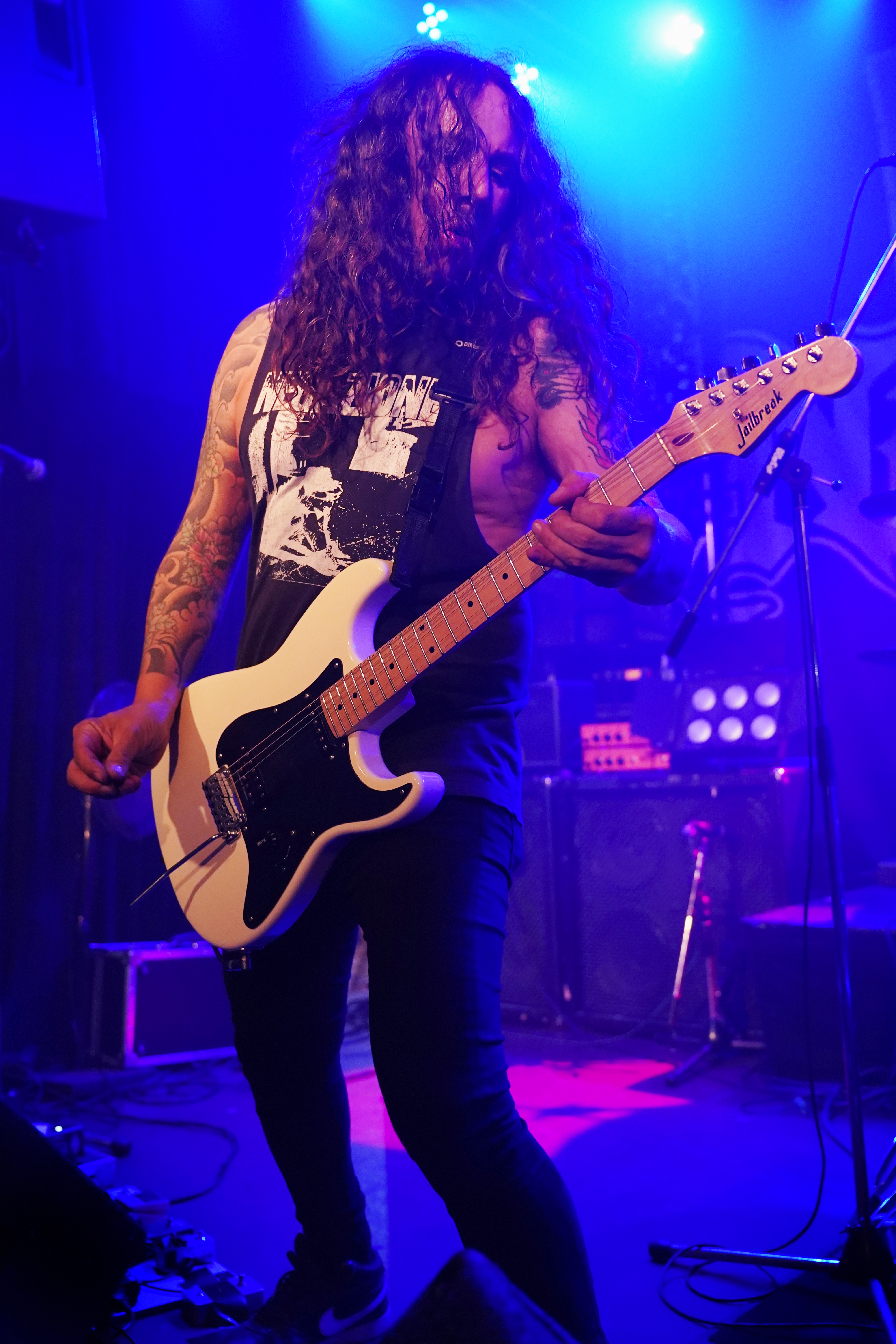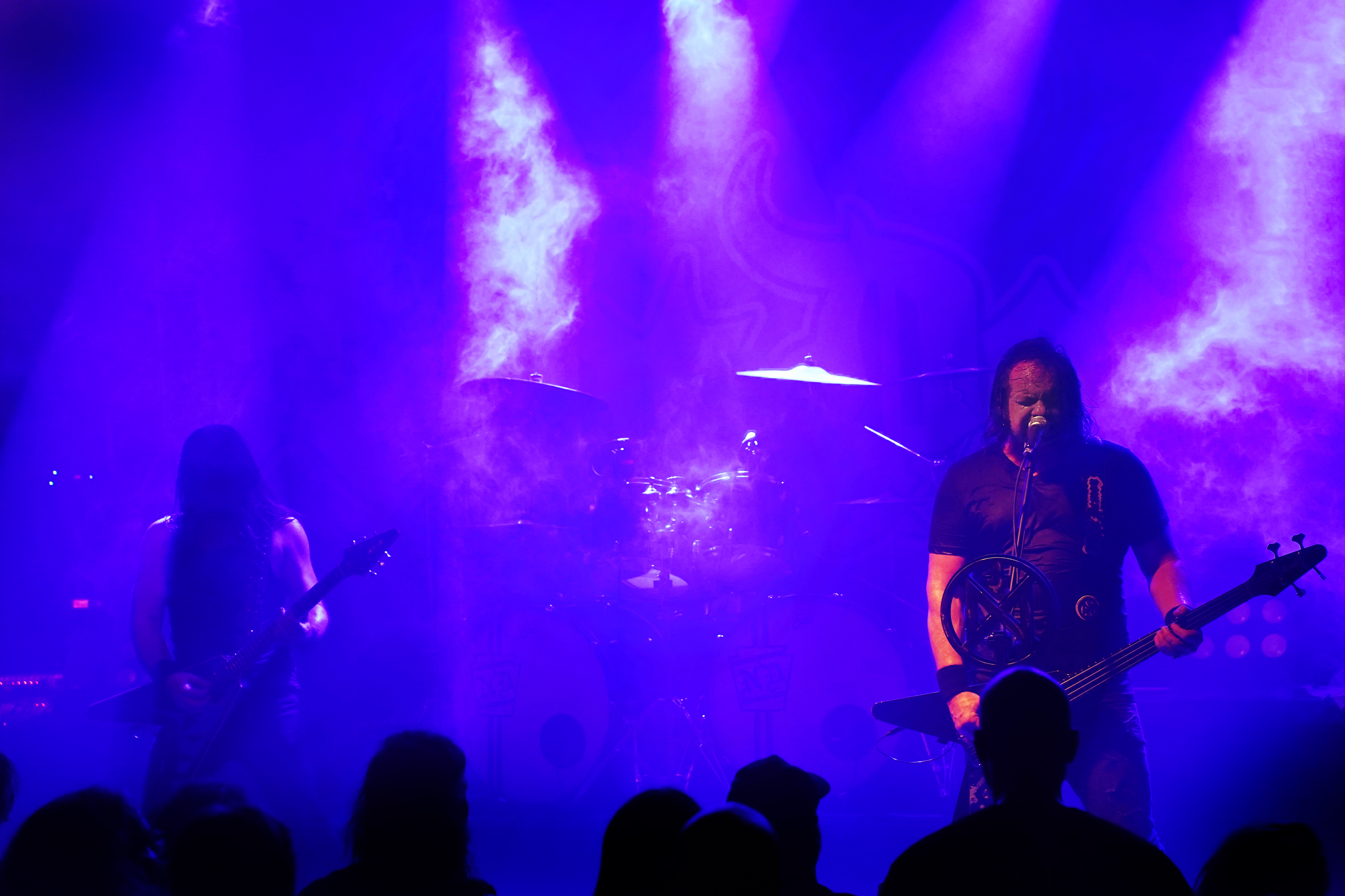 NIGHT DEMON überzeugen von Beginn an mit Atmosphäre, Knüppel auf den Kopf und einem sehr agilen und im weiteren Verlauf immer präziser werdenden Gitarristen, der sich häufigen Szenen-Applaus verdient hat. Das US-Trio ist verständlicherweise top eingespielt, und die Bühne wird gerecht zwischen den drei Musikern aufgeteilt. Das Set besteht in der ersten Hälfte komplett aus dem neuen Album "Outsider". Inklusive Intro gibt es 8 Songs des 9 Songs umfassenden Longplayers und diese in der gleichen Reihenfolge wie auf der Konserve. Danach kommen alle weiteren NIGHT DEMON-Veröffentlichungen zum Zuge. Zu unserer Überraschung gibt es keinen einzigen Coversong. Nicht, dass uns der gefehlt hätte. Aber NIGHT DEMON hat doch zuweilen eine ganze Riege wunderbarer Versionen im Programm, u.a. von BLACK SABBATH, THIN LIZZY, DIAMOND HEAD und den SCORPIONS; dieses Mal gibt es nur Eigengewächse. Hier freut mich das ungewöhnliche und stimmungsvolle "Darkness Remains" ganz besonders, das kurz vor dem Zugabenblock nochmal ordentlich Motivation in dem mittlerweile auf Saunatemperaturen angeheizten Club freisetzt. Nach gut 80 Minuten sind die US Boys fertig und das Publikum komplett nassgeschwitzt. Alle drei Musiker funktionieren als Einheit und präsentieren sich als würdigen Headliner. Der Gitarrist Armand John Anthony beeindruckt mit seinen tollen Soli und seinem immer mal wieder die Härte aufweichenden, hardrockigen Spiel. Der Club hat ein tolles, sehr nettes und immer entspanntes Personal und an diesem Freitag ein feierfreudiges, sympathisches Publikum zu bieten. Indes, eine Klimaanlage oder wenigstens ein Deckenventilator wäre ganz sicher eine lohnende Anschaffung bei einem solch heißen Package.