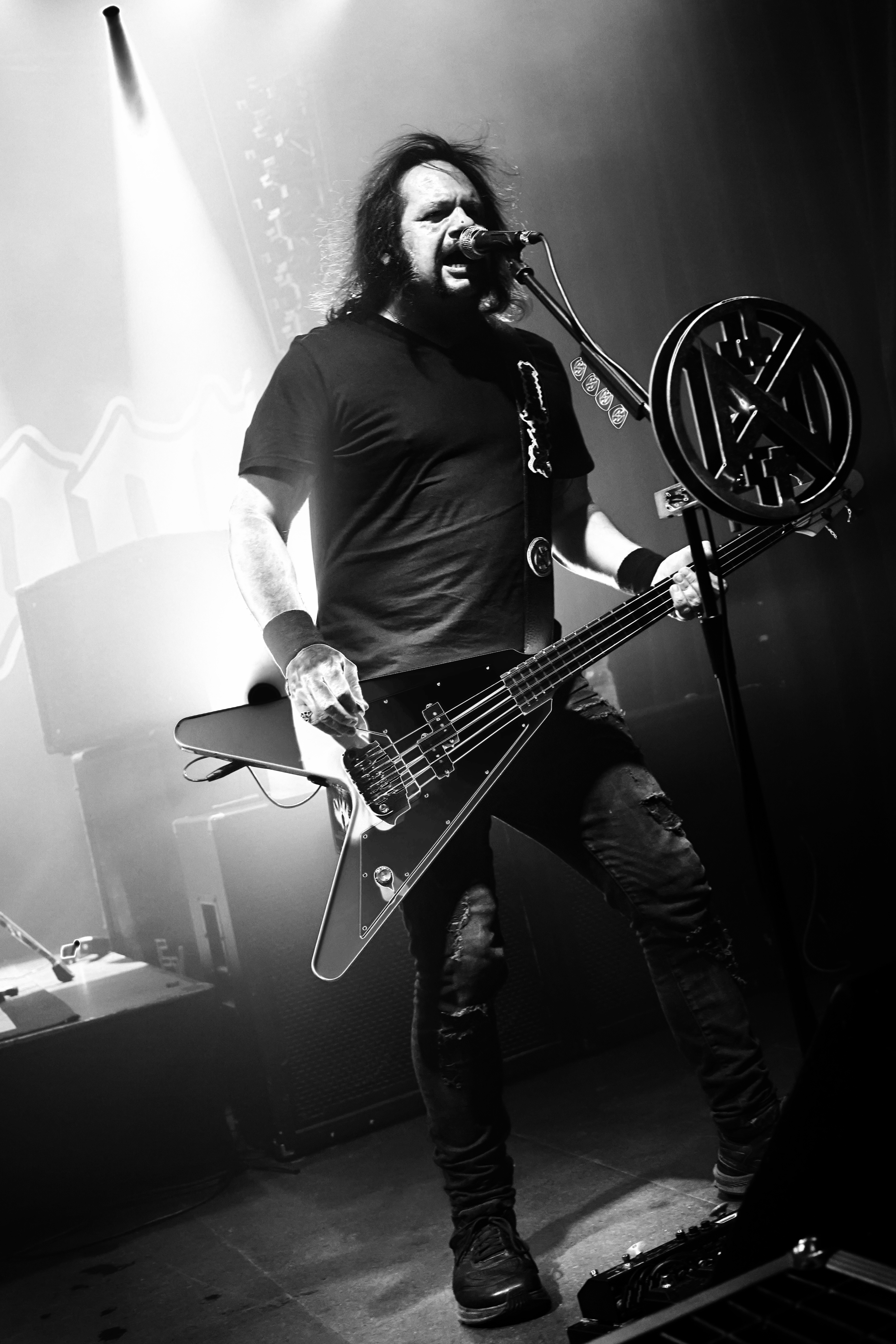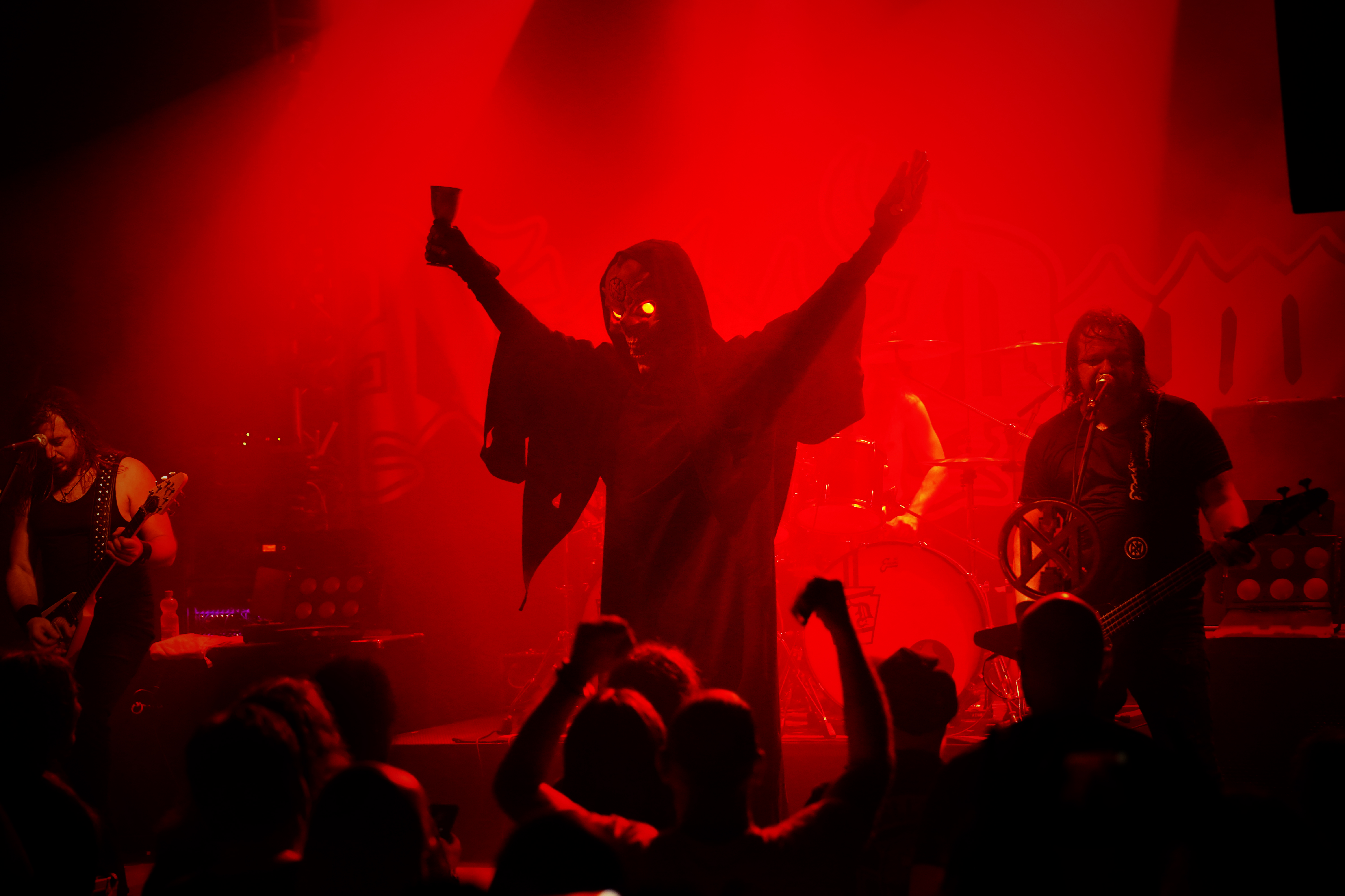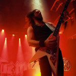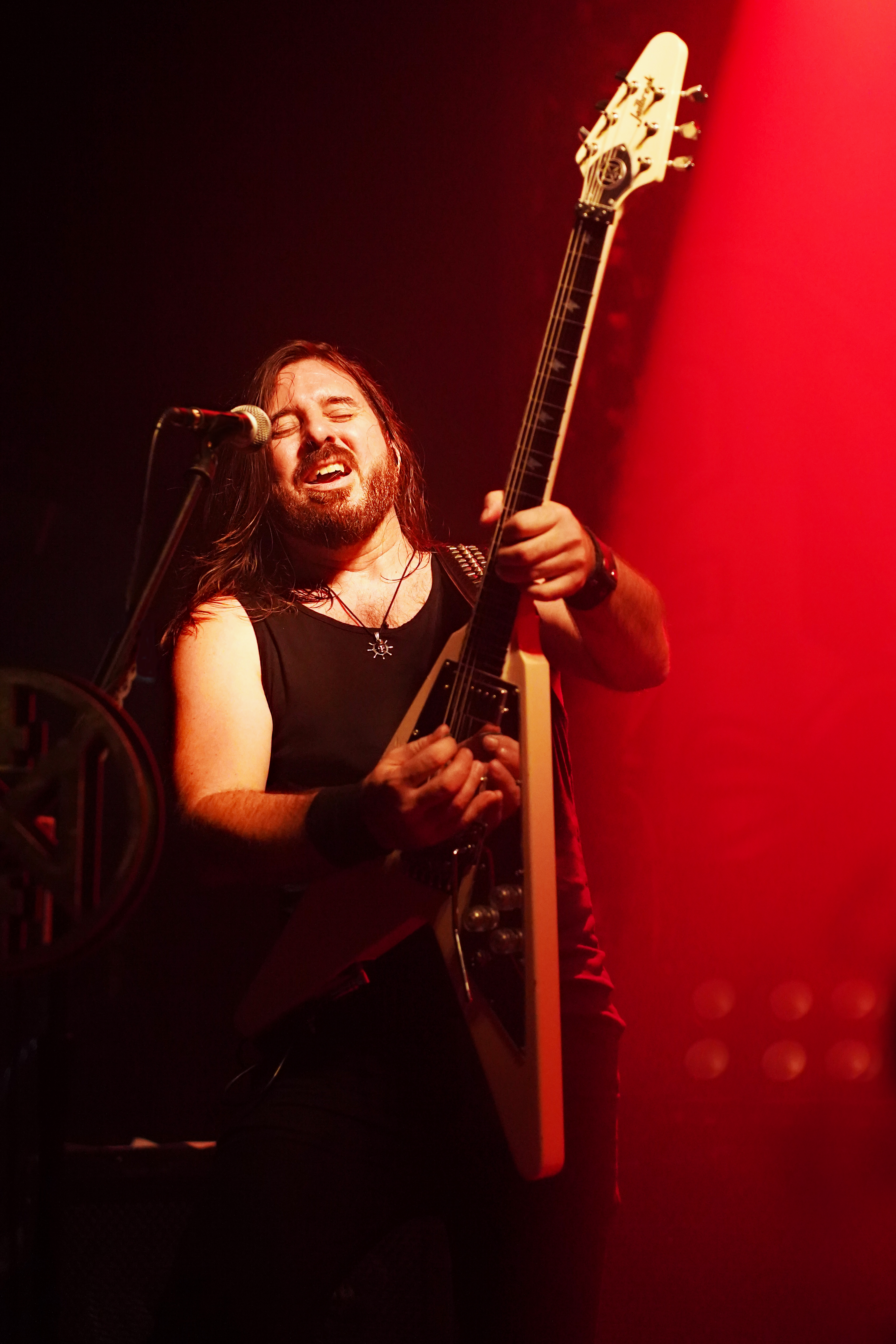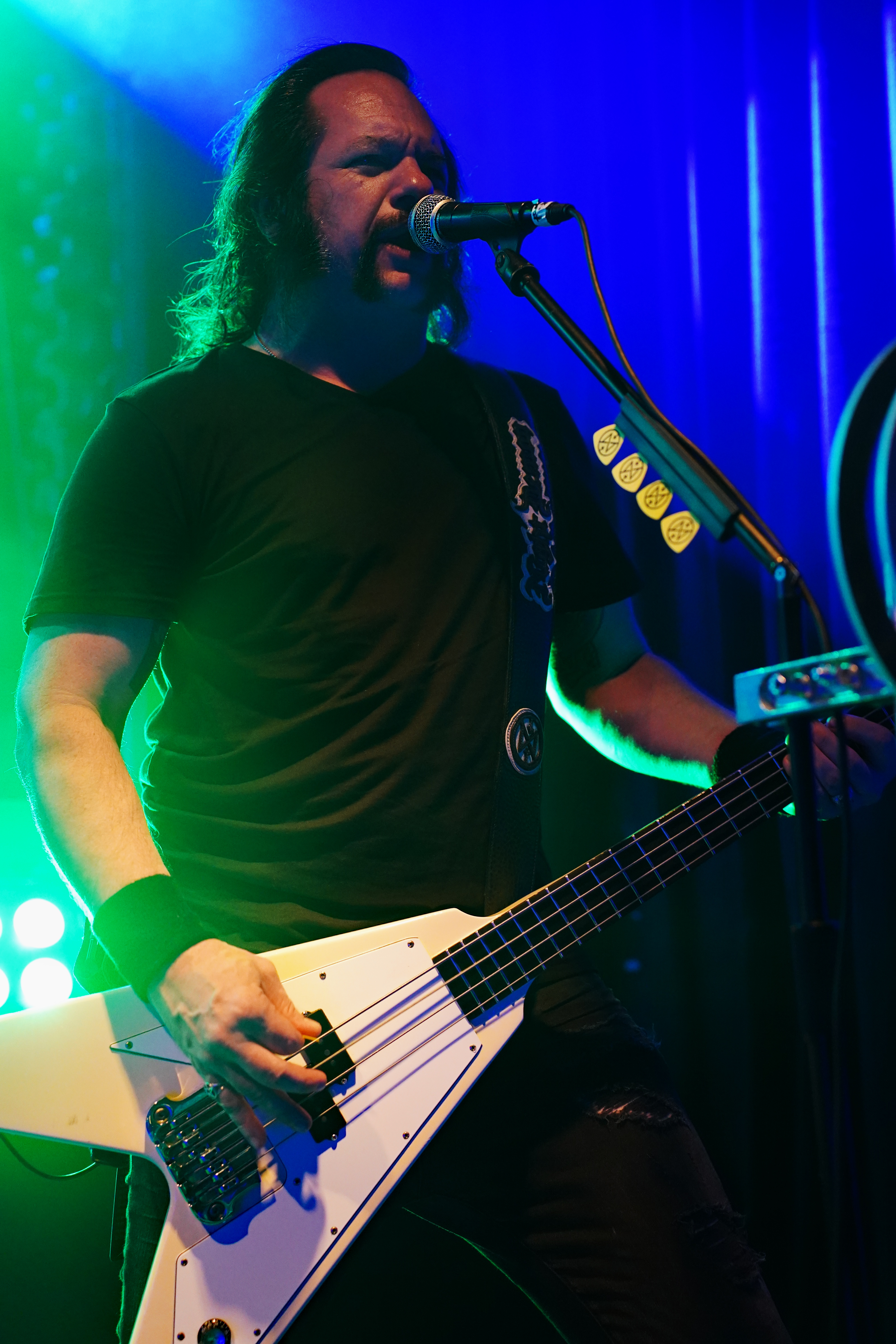 NIGHT DEMON überzeugen von Beginn an mit Atmosphäre, Knüppel auf den Kopf und einem sehr agilen und im weiteren Verlauf immer präziser werdenden Gitarristen, der sich häufigen Szenen-Applaus verdient hat. Das US-Trio ist verständlicherweise top eingespielt, und die Bühne wird gerecht zwischen den drei Musikern aufgeteilt. Das Set besteht in der ersten Hälfte komplett aus dem neuen Album "Outsider". Inklusive Intro gibt es 8 Songs des 9 Songs umfassenden Longplayers und diese in der gleichen Reihenfolge wie auf der Konserve. Danach kommen alle weiteren NIGHT DEMON-Veröffentlichungen zum Zuge. Zu unserer Überraschung gibt es keinen einzigen Coversong. Nicht, dass uns der gefehlt hätte. Aber NIGHT DEMON hat doch zuweilen eine ganze Riege wunderbarer Versionen im Programm, u.a. von BLACK SABBATH, THIN LIZZY, DIAMOND HEAD und den SCORPIONS; dieses Mal gibt es nur Eigengewächse. Hier freut mich das ungewöhnliche und stimmungsvolle "Darkness Remains" ganz besonders, das kurz vor dem Zugabenblock nochmal ordentlich Motivation in dem mittlerweile auf Saunatemperaturen angeheizten Club freisetzt. Nach gut 80 Minuten sind die US Boys fertig und das Publikum komplett nassgeschwitzt. Alle drei Musiker funktionieren als Einheit und präsentieren sich als würdigen Headliner. Der Gitarrist Armand John Anthony beeindruckt mit seinen tollen Soli und seinem immer mal wieder die Härte aufweichenden, hardrockigen Spiel. Der Club hat ein tolles, sehr nettes und immer entspanntes Personal und an diesem Freitag ein feierfreudiges, sympathisches Publikum zu bieten. Indes, eine Klimaanlage oder wenigstens ein Deckenventilator wäre ganz sicher eine lohnende Anschaffung bei einem solch heißen Package.