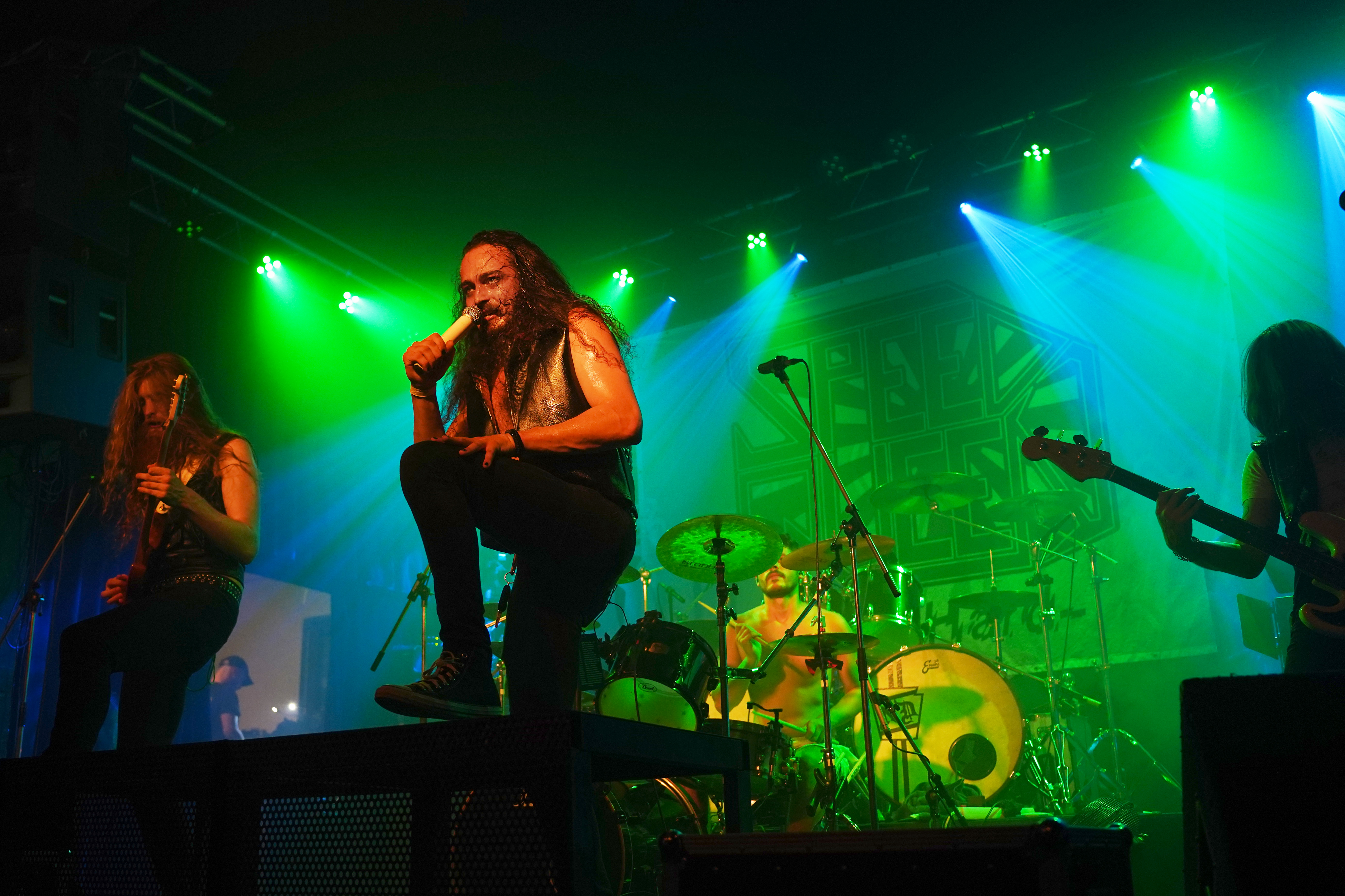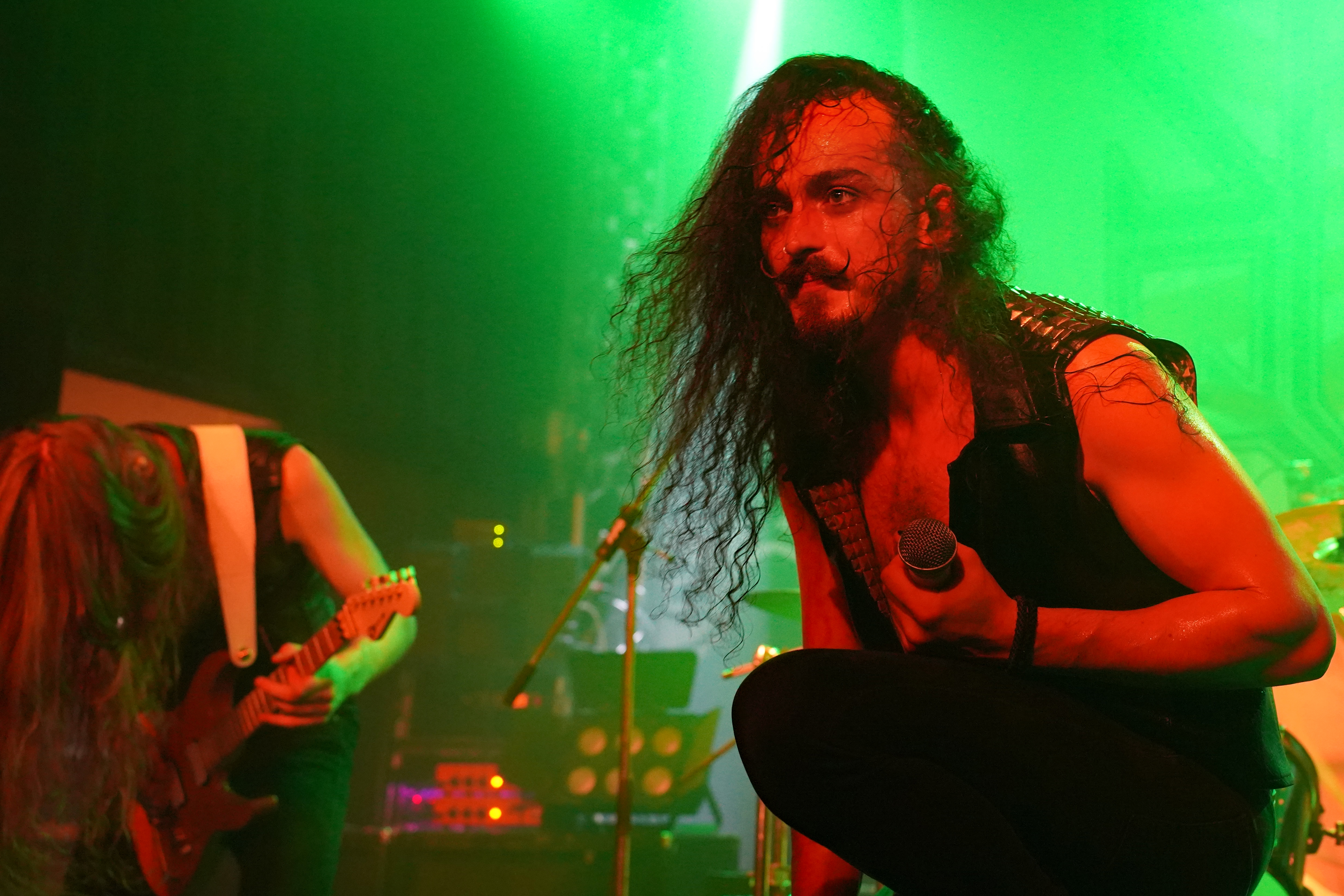 NIGHT DEMON hat sich zwei Openig Acts ins Programm geholt, und den Beginn markieren die Italiener von TYTUS. Das Quartett zockt eine ursprüngliche Form von Metal. Der Sound ist klar und transparent, nur vielleicht etwas laut für das doch recht überschaubare Auditorium. Die Stimmung wird durch die spielfreudigen und dynamischen Südländer leidenschaftlich angeheizt. Nach ca. 30 Minuten kommt der zweite Supporter SPEED QUEEN aus Belgien zum Zuge. Hier besticht der mit einem fein gezwirbelten Moustache ausgestattete, sehr agile und charismatische Sänger. Das Gebotene platziert sich zwischen thrashigem, speedigen OVERKILL - hier ist es der etwas schrille Gesang, der an die New Yorker denken lässt - und groovigem, riffbetonten RATTigen Hair Metal. Die Jungs machen eine Menge Wirbel, wirken top motiviert, und die Raumtemperatur beginnt, während des hitzigen Gigs langsam die 40 Grad zu erreichen.