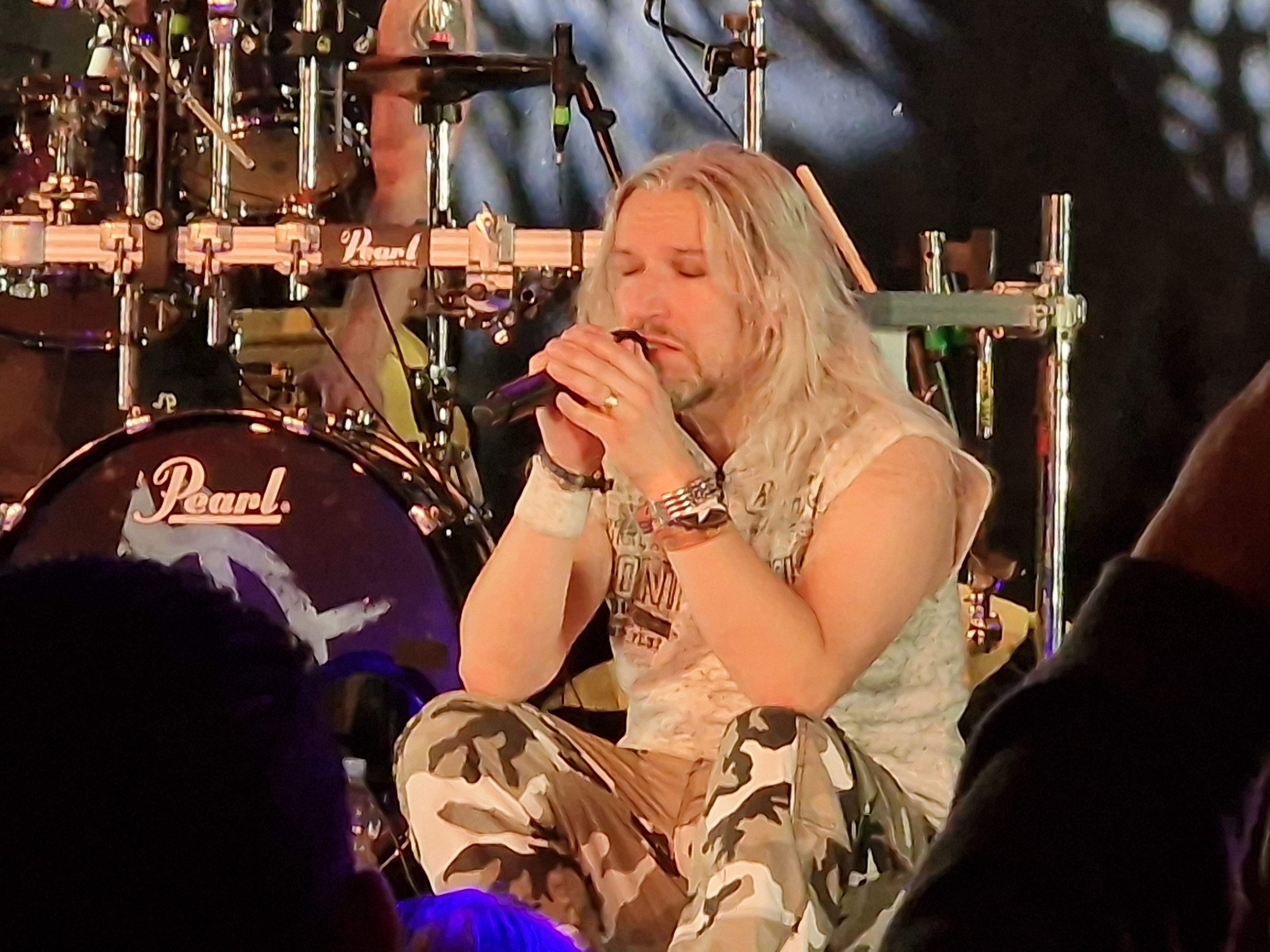 Und STRATOVARIUS beginnen standesgemäß mit dem Titelstück der aktuellen Scheibe „Survive“. Als erstes fällt auf, dass die älteren Herren einige Härtegrade über SONATA ARCTICA agieren und amtlich ballern. Als nächstes muss man neidvoll anerkennen, dass Her Kotipelto wohl irgendwo eine Bild von sich hängen hat, welches an seiner statt altert. Ich habe STRATOVARIUS das erste Mal auf der „Episode“ Tour 1996 gesehen und 26 Jahre später sieht und klingt Kotipelto immer noch unverändert. Mit „Eagleheart“, „Speed Of Light“ und „Paradise“ folgen Klassiker auf Klassiker aus der Blütezeit des europäischen Power Metals. Darüberhinaus wird heute Abend auch deutlich, dass sich STRATOVARIUS nicht nur auf ihre Klassiker konzentrieren müssen auch Song neueren Datums zünden und zeigen eine nach wie vor hungrige und relevante Band, die es gekonnt versteht, instrumentalen Eskapismus mit eingängigem Songwriting zu verbinden. Ich bin immer wieder erstaunt, wie sehr das Publikum mitgeht und eine ähnliche Aufbruchstimmung entfacht wie Anno Dunnemals. Jeder der STRATOVARIUS schon ein wenig abgeschrieben hat wir eindeutig eines Besseren belehrt. Das Finale mit „Black Diamond“, „Unbreakable“ und dem unverwüstlichen „Hunting High & Low“ mobilisiert noch einmal die letzten Kräfte.