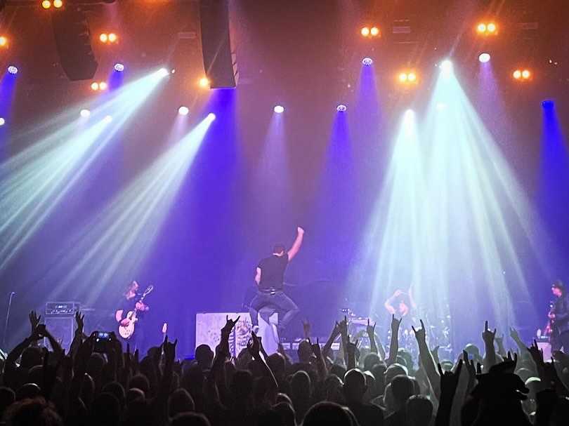 Die Waliser Vorband THOSE DAMN CROWS hätten es kaum besser treffen können. Die Hallen auf dieser Tour sind häufig gut gefüllt bis ausverkauft. Und wenn ihnen vertraglich auch nur 30 Minuten zustehen, so denke ich, dass es das letzte Mal ist, dass die Insel-Europäer als Vorband touren müssen. Sechs Songs dürfen sie performen, in starkem Sound und auf großer Bühne in Filderstadt. Und ich meine, das reicht aus, ihr Publikum zu finden und zu begeistern. Da sind zum einen unfassbar großartige Songs und zum anderen ein Frontman mit einer Stimme, die Eisberge schmelzen lässt. Sänger Shane Greenhall wirkt ungemein agil und gut gelaunt, aber noch mehr ist es seine unglaublich melodiöse, gleichwohl kraftvolle Stimme, die hier begeistert. Bei dem zur Piano-Ballade umgestalteten "Blink of an Eye", in der Mitte des Sets, zeigt er quasi allein, zumindest am Anfang, was er aus seinen Stimmbändern zaubern kann. Das ist magisch und ein Geschenk an sein Publikum. Ich bin mit der - ohnehin recht kurzen - Setlist nicht ganz einverstanden. Gerade die letzte Nummer "Rock 'n' Roll Ain't Dead", die mir etwas zu eindimensional ist, hätte ich getauscht. Aber das ist jammern auf ganz hohem Niveau. THOSE DAMN CROWS haben mich überzeugt und wenn hier nichts Unvorhersehbares passiert, sehe ich eine rosarote Zukunft für Band.