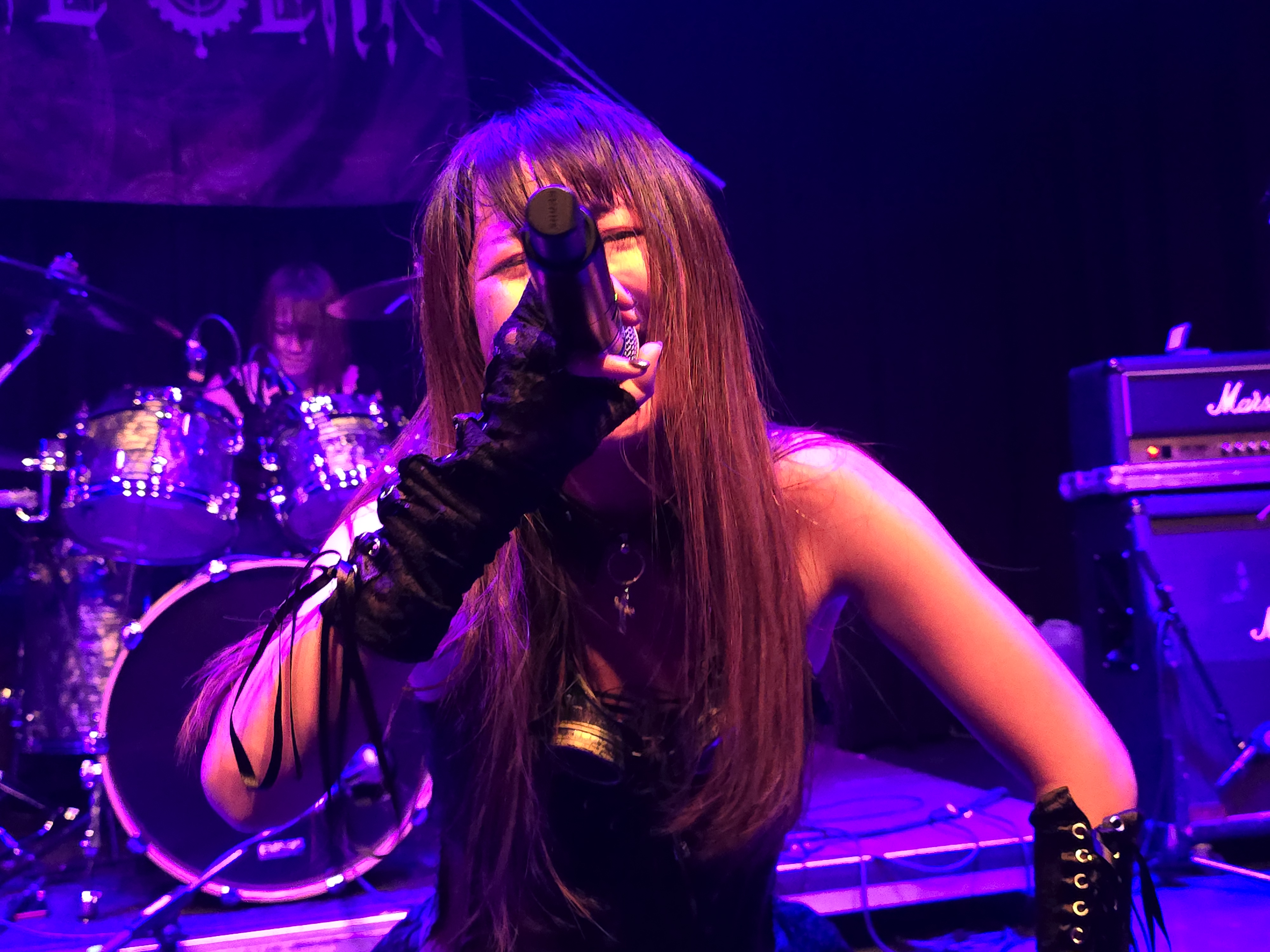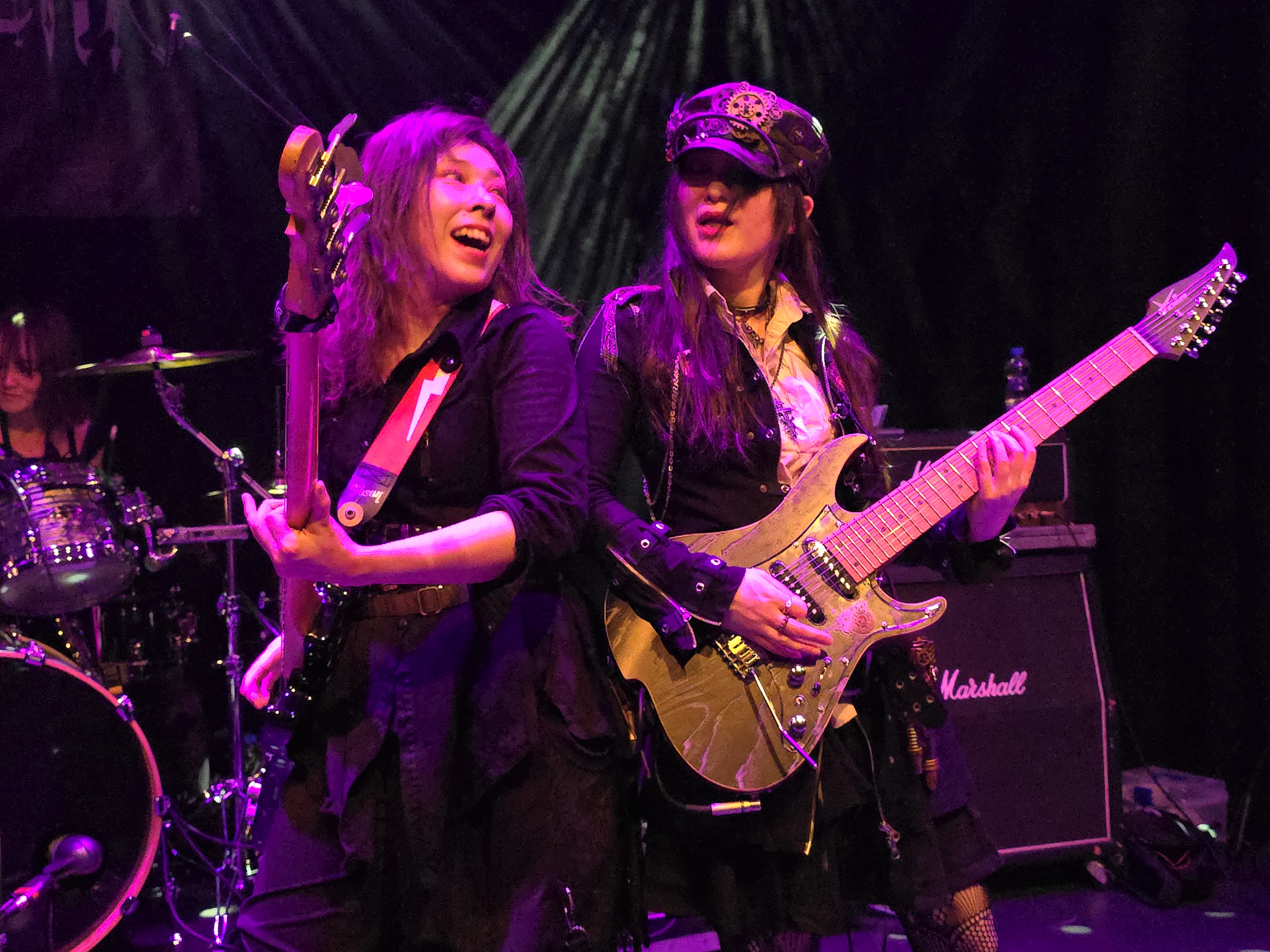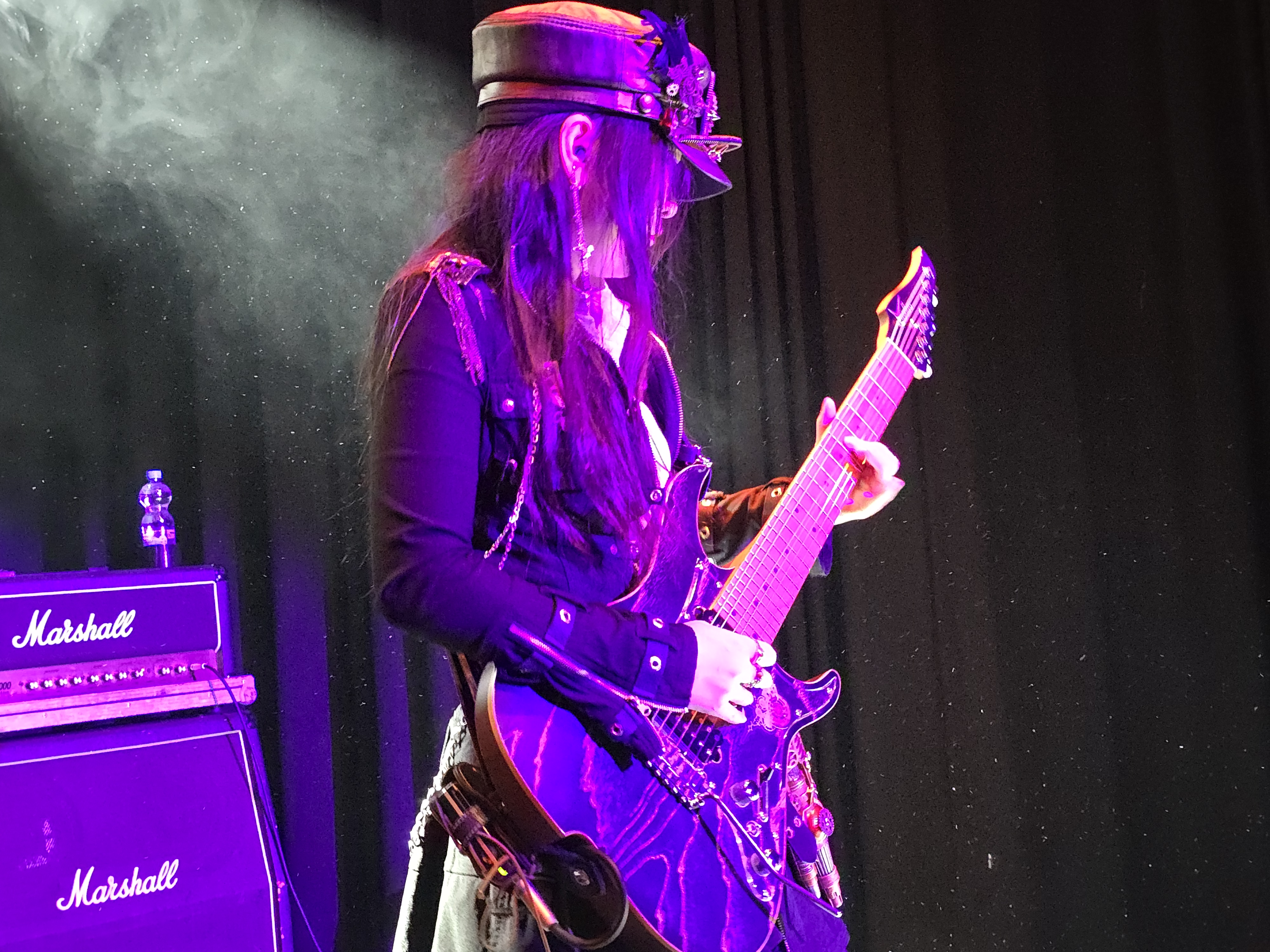 Als erster fällt das Fehlen einer Livekeyboarderin auf, was aber nicht weiter stört, sondern den Bandsound härter und basischer klingen lässt, was FATE GEAR äußerst gut zu Gesicht steht. Außerdem kommt Bandleaderin Mina mit ihrer 7-Saitigen Gitarre so noch besser zur Geltung. Die Band bleibt keine Sekunde stillstehen und besonders Bassistin Erika und Sängerin Nana platzen förmlich vor Energie. Als es bei „The Sky Pirates“ das erste Mal ein wenig episch wird, sind dann auch tatsächlich alle Hände oben und die Ladies werden nach allen Regeln der Kunst gefeiert. Mit „Romancer“ huldigen FATE GEAR auch den Anfängen und das Publikum zeigt sich vertraut mit allen Schaffensphasen der sehr veröffentlichungsfreudigen Japanerinnen. Besonders Nana weiß das Publikum, um den Finger zu wickeln. Auch wenn „Lose My Voice“ gespielt wird, kann davon keine Rede sein. Gerade wie sie auch innerhalb eines Songs von lieblichen, elfengleichen Tönen zu Growls und wieder zurück wechselt ist schon beeindruckend. Die Bandhymne „Fate Gear“ leitet nach gut 70 Minuten das Finale ein und FATE GEAR verabschieden sich von ihren Fans, die sich auch nicht zu schade sind, noch einmal einen richtigen Moshpit anzuzetteln.