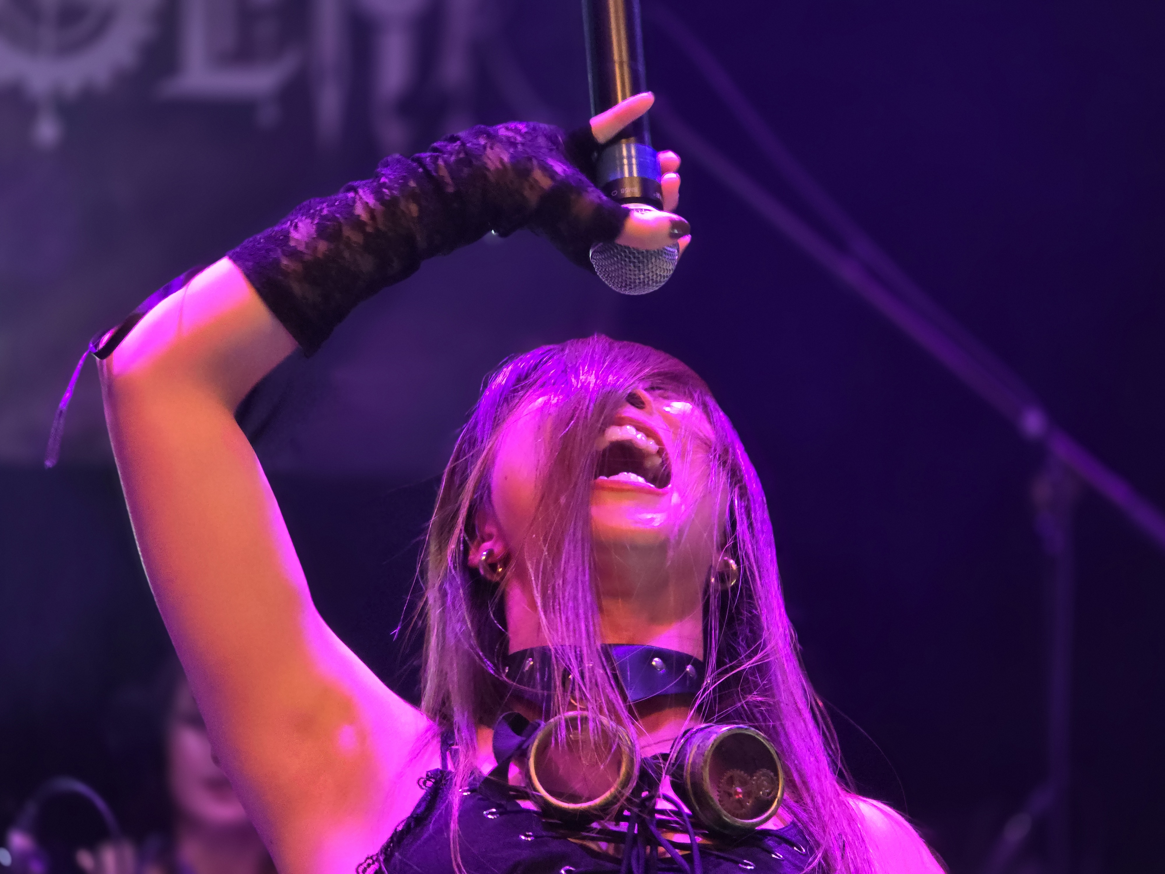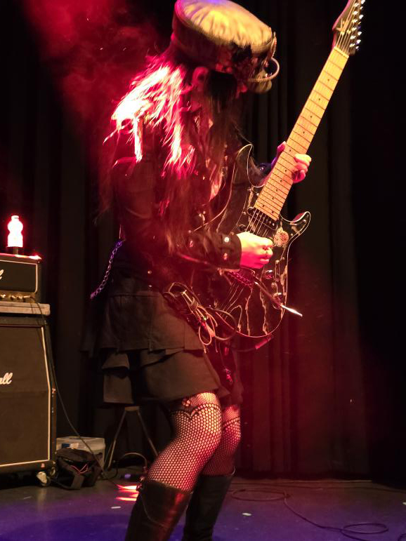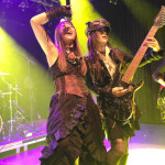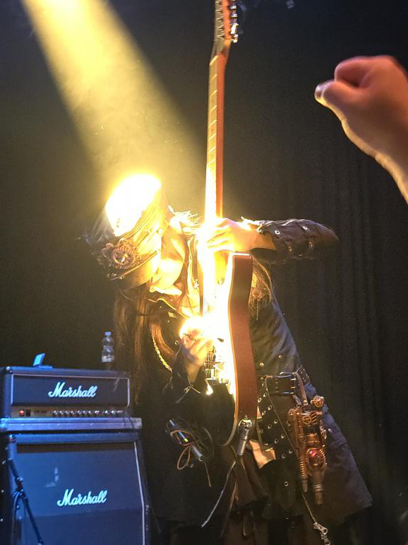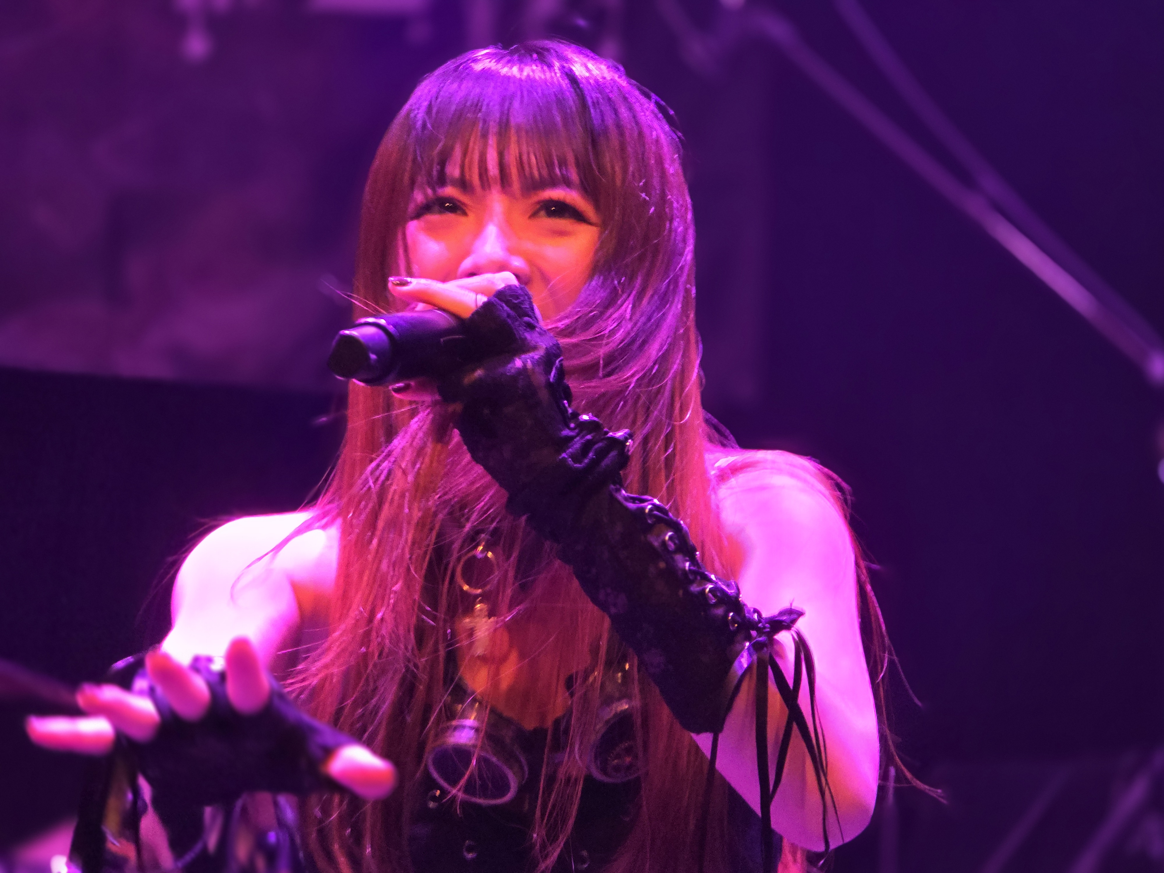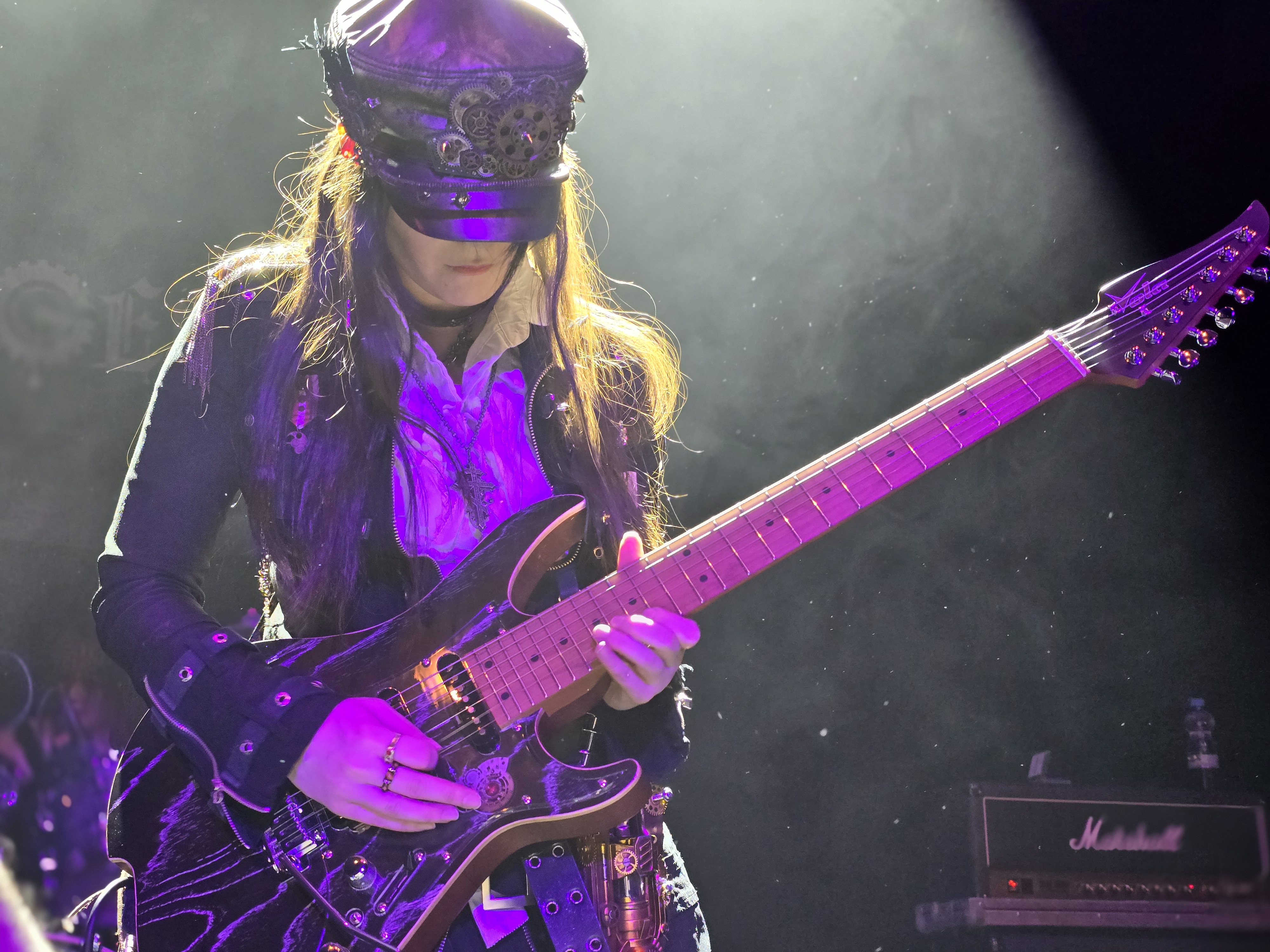 Als erster fällt das Fehlen einer Livekeyboarderin auf, was aber nicht weiter stört, sondern den Bandsound härter und basischer klingen lässt, was FATE GEAR äußerst gut zu Gesicht steht. Außerdem kommt Bandleaderin Mina mit ihrer 7-Saitigen Gitarre so noch besser zur Geltung. Die Band bleibt keine Sekunde stillstehen und besonders Bassistin Erika und Sängerin Nana platzen förmlich vor Energie. Als es bei „The Sky Pirates“ das erste Mal ein wenig episch wird, sind dann auch tatsächlich alle Hände oben und die Ladies werden nach allen Regeln der Kunst gefeiert. Mit „Romancer“ huldigen FATE GEAR auch den Anfängen und das Publikum zeigt sich vertraut mit allen Schaffensphasen der sehr veröffentlichungsfreudigen Japanerinnen. Besonders Nana weiß das Publikum, um den Finger zu wickeln. Auch wenn „Lose My Voice“ gespielt wird, kann davon keine Rede sein. Gerade wie sie auch innerhalb eines Songs von lieblichen, elfengleichen Tönen zu Growls und wieder zurück wechselt ist schon beeindruckend. Die Bandhymne „Fate Gear“ leitet nach gut 70 Minuten das Finale ein und FATE GEAR verabschieden sich von ihren Fans, die sich auch nicht zu schade sind, noch einmal einen richtigen Moshpit anzuzetteln.