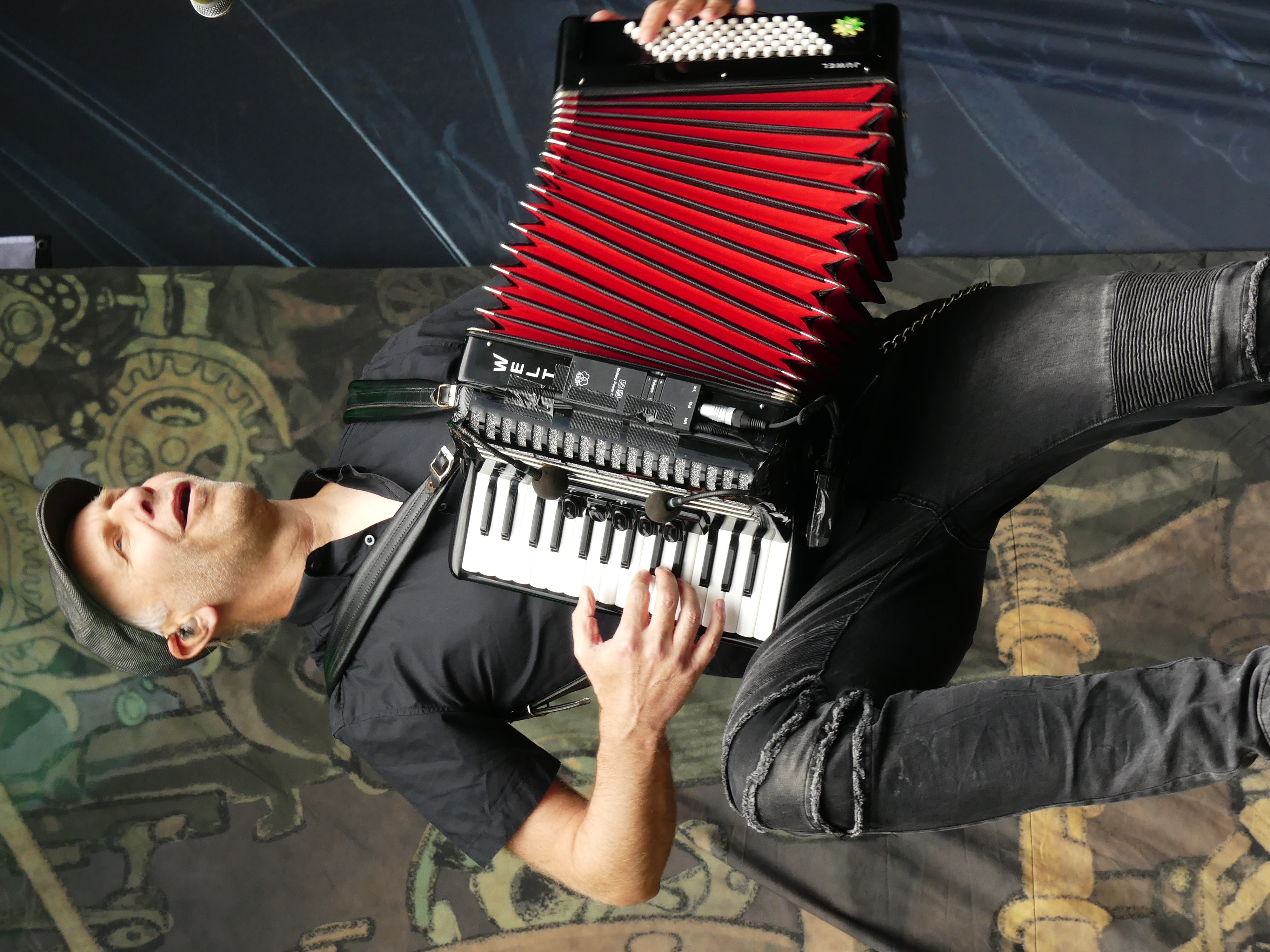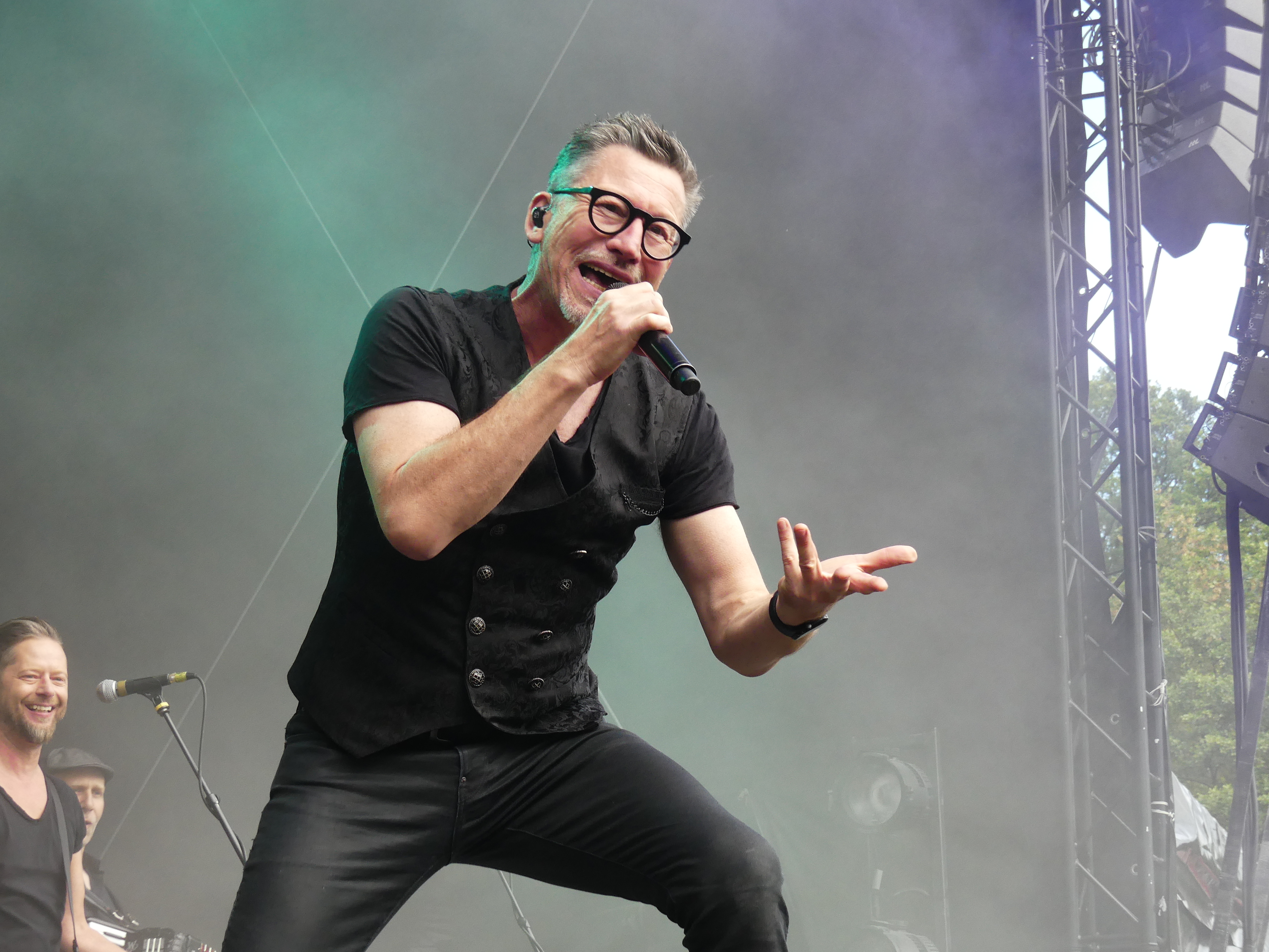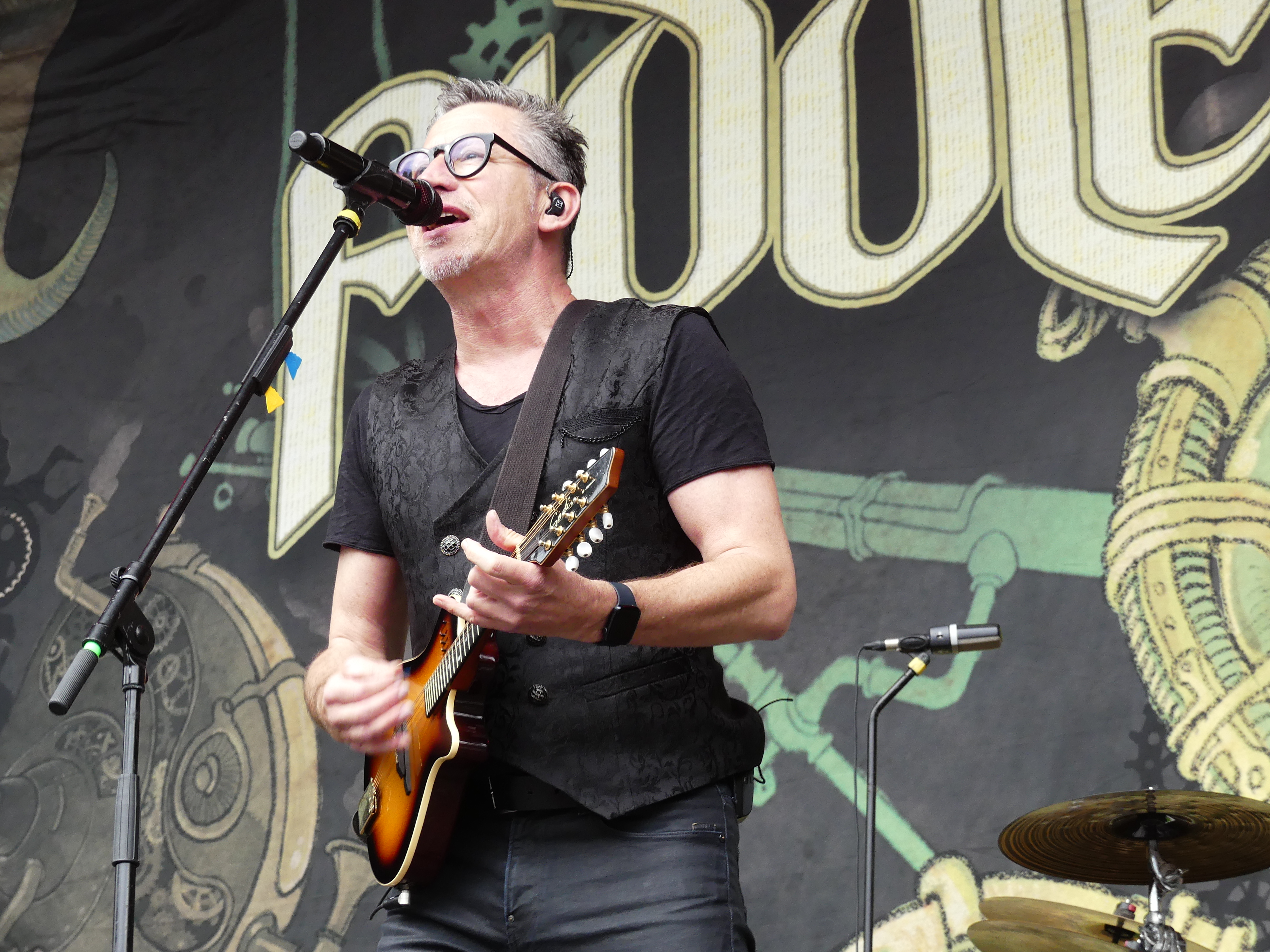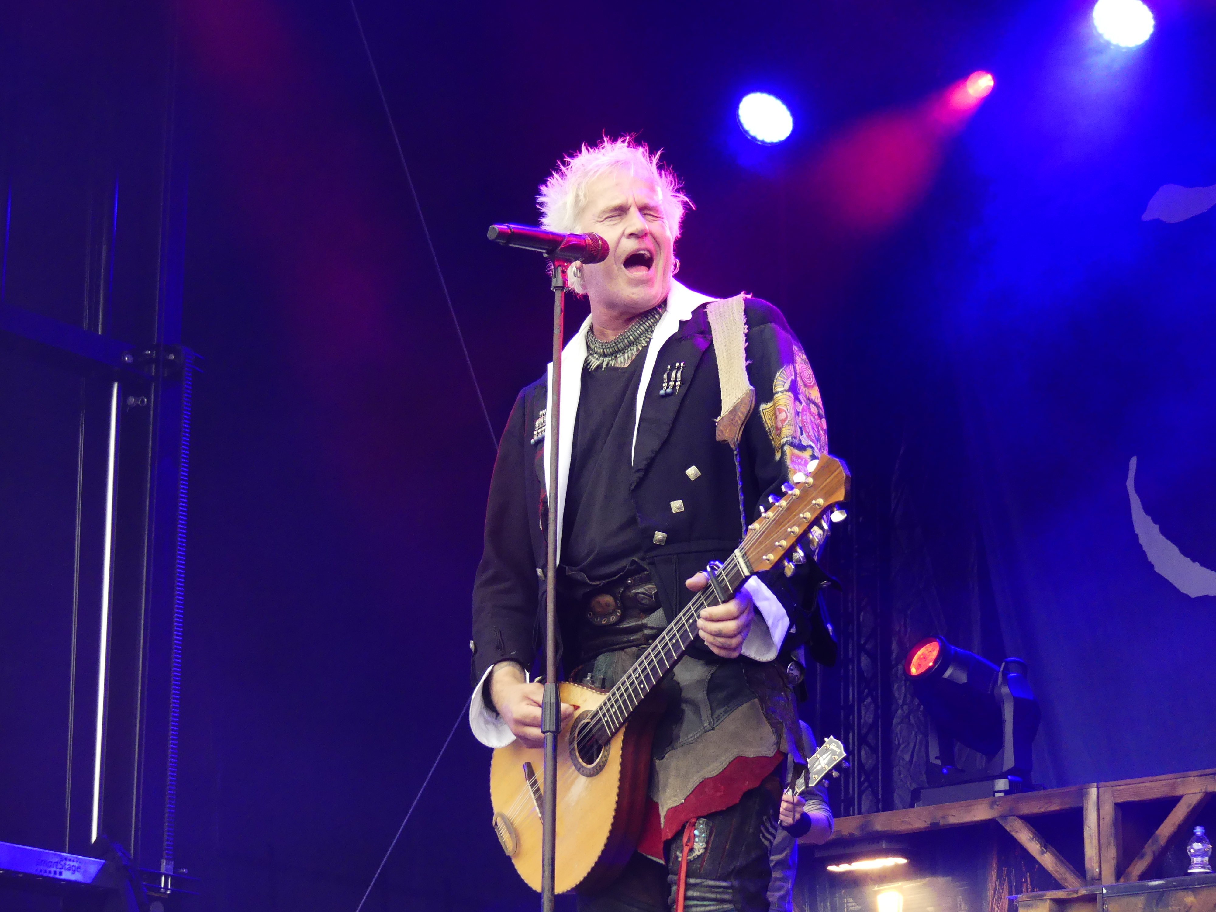 Das Gastspiel auf dem Gelände von Burg Satzvey – für IN EXTREMO-Sänger Micha Rhein quasi ein Heimspiel – ließ sich vielversprechend an und schon kurz nach Einlass um 15:30 Uhr herrschte in den Burghöfen und auf der Wiese dahinter, auf der die Bühne aufgebaut war, reges Treiben. Vom kräftigen Wind ließ sich keiner stören, stattdessen flanierten die Besucher entlang der vorhandenen Marktstände und scharten sich vor den Essens- und Getränkebuden, wobei (wenig überraschenderweise) vor allem Bier und – stilechter – Met reißenden Absatz zu finden schienen.