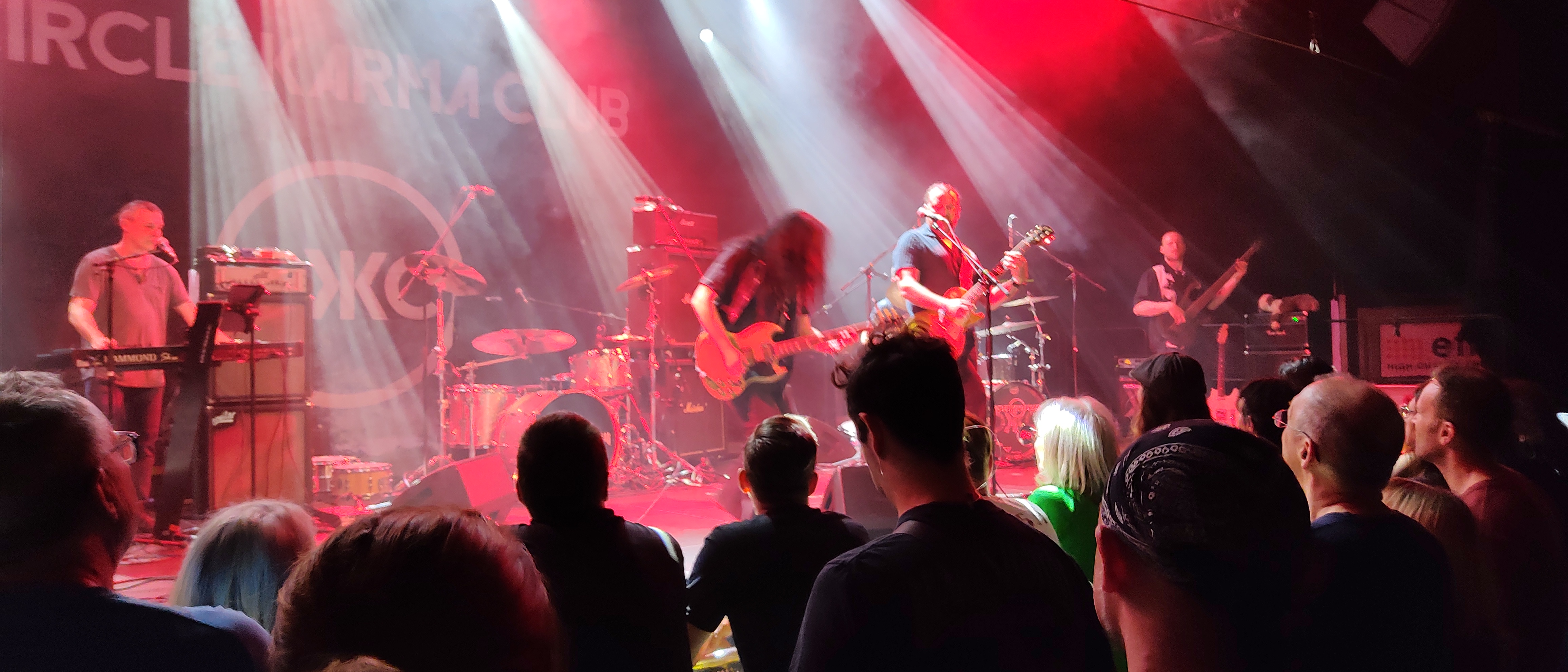 Die Garage ist an diesem Montagabend mit etwa 350 Besuchern gefüllt als CIRCLE KARMA CLUB um den Gitarristen und Sänger Uwe Jolly die Bühne betreten. Das Sextett gab gut abgehangenen Bluesrock zum Besten, von den erfahrenen Musikern (an der zweiten Gitarre z. B. Uwe Angel von ROOK ROAD) aus der saarländischen Szene kompetent vorgetragen. Deswegen gab es nach rund 40 Minuten Spielzeit auch ordentlichen und verdienten Applaus. Sehr lustig übrigens Jollys Frage wie viele Gitarristen denn im Publikum wären und gefühlt die ganze Halle sich meldete.