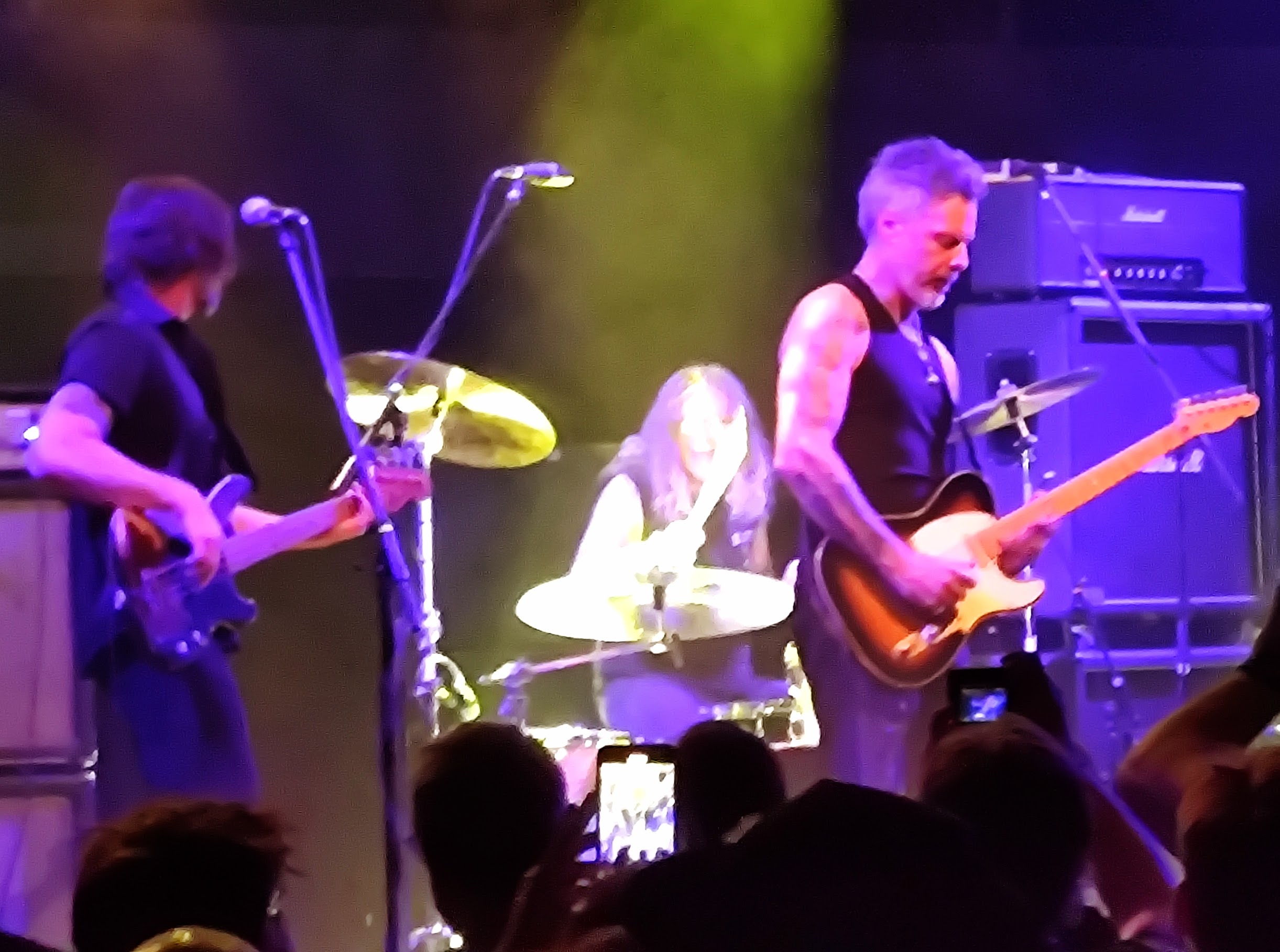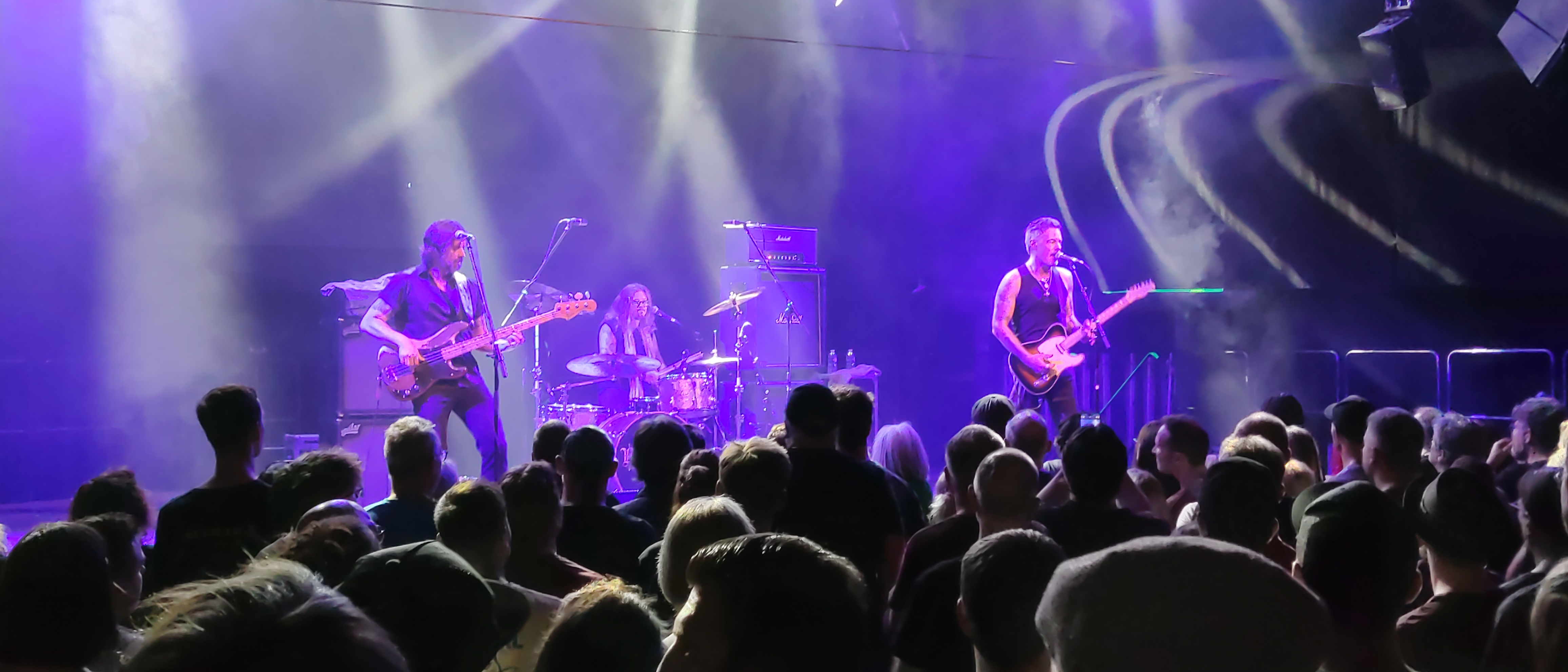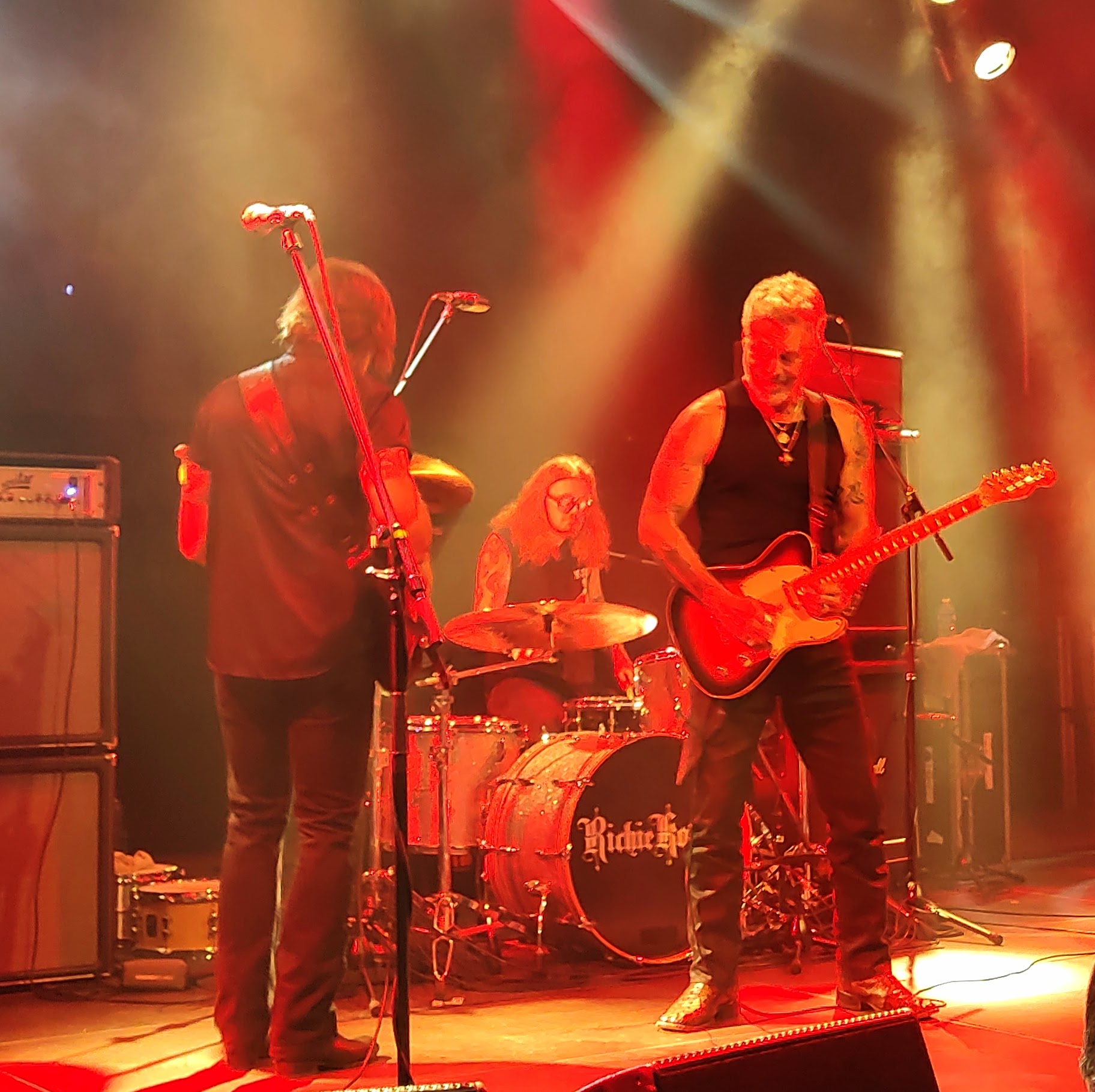 Also machen wir uns nichts vor..... Hauptsächlich aufgekreuzt an diesem undankbaren Termin zu Wochenbeginn sind die Leute wegen Maestro RICHIE KOTZEN. In Trio-Besetzung und mit minimalistischem Equipment auf der Bühne zeigte er gleich an, dass es hier und heute um erdige Musik ohne moderne Soundmätzchen oder den Einsatz von fünfundzwanzig verschiedenen Gitarren geht. Nur Drums, Bass, Gitarre, Gesang und das in Reinform - das ist alles, was es braucht. Als Opener wurde "Losin` My Mind" vom 2004er Album "Get Up" in einer krachenden und groovenden Version ins Publikum geschmettert. Und dieses huldigte Richie mit Szenenapplaus für seine Soli, aber auch für den überragenden Gesang. Von allen Gitarrenhelden ist er wahrscheinlich derjenige, der mit seiner Stimme am besten umgehen kann. Besonders berührend seine Vocals bei funkig-souligen Nummern wie "Bad Situation" oder langsamen Bluesstücken wie "Remember", das den regulären Teil der Show abschloss. Von der musikalischen Seite gab es rein gar nichts zu beanstanden, nur hatte Richie leider wenig Lust mit dem Publikum zu kommunizieren und wirkte irgendwie zugeknöpft. Dazu passte es, dass er die eigentlich geplanten Zugaben komplett (!) strich und nur noch das tolle "Go Faster!" nachlegte, um dann flugs zu entschwinden. Aber sei es drum, auch einem Künstler muss mal gestattet nicht immer beste Laune zu haben. Für die Fans war es trotzdem die Vollbedienung und RICHIE KOTZENs Gigs sind auf jeden Fall uneingeschränkt zu empfehlen.