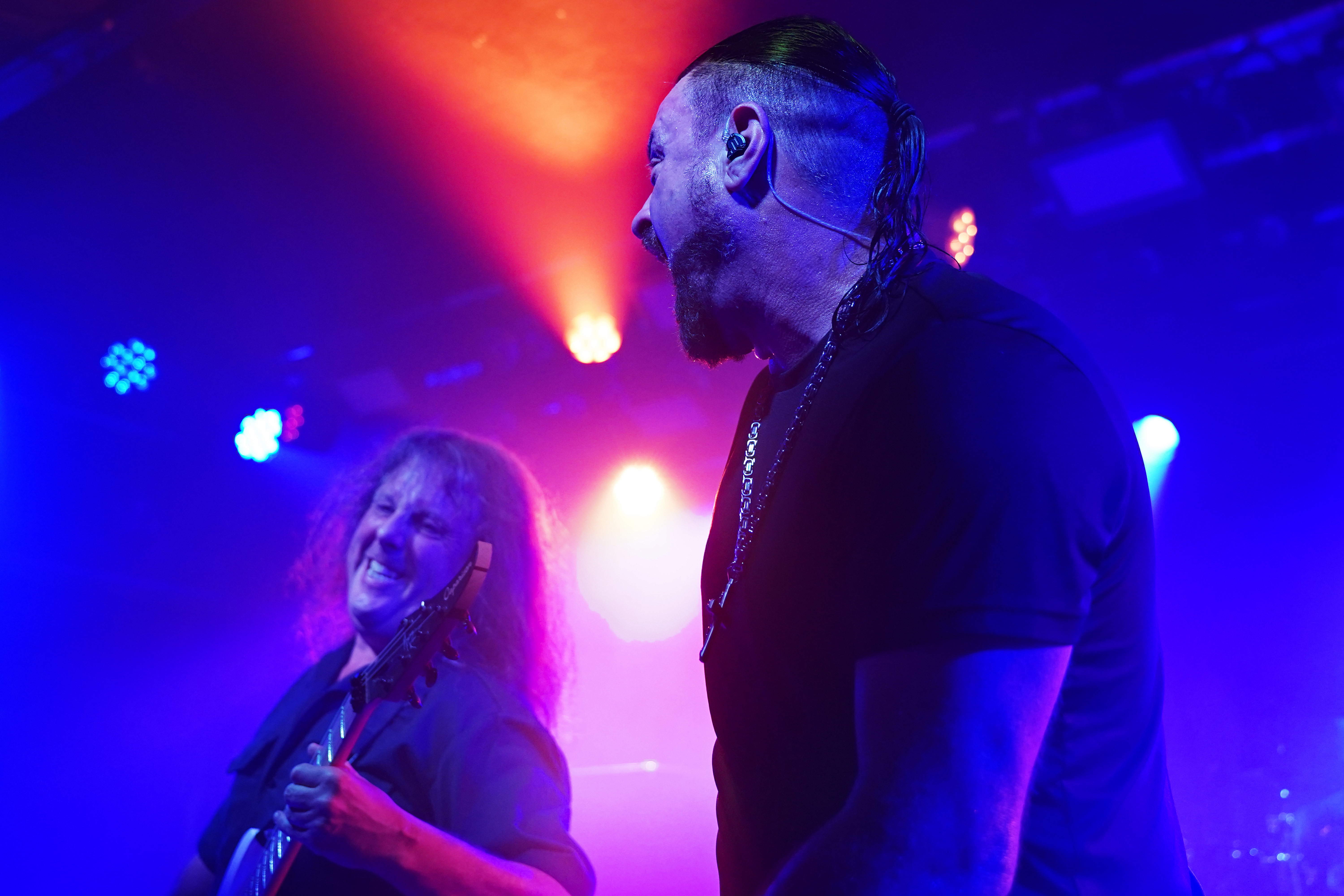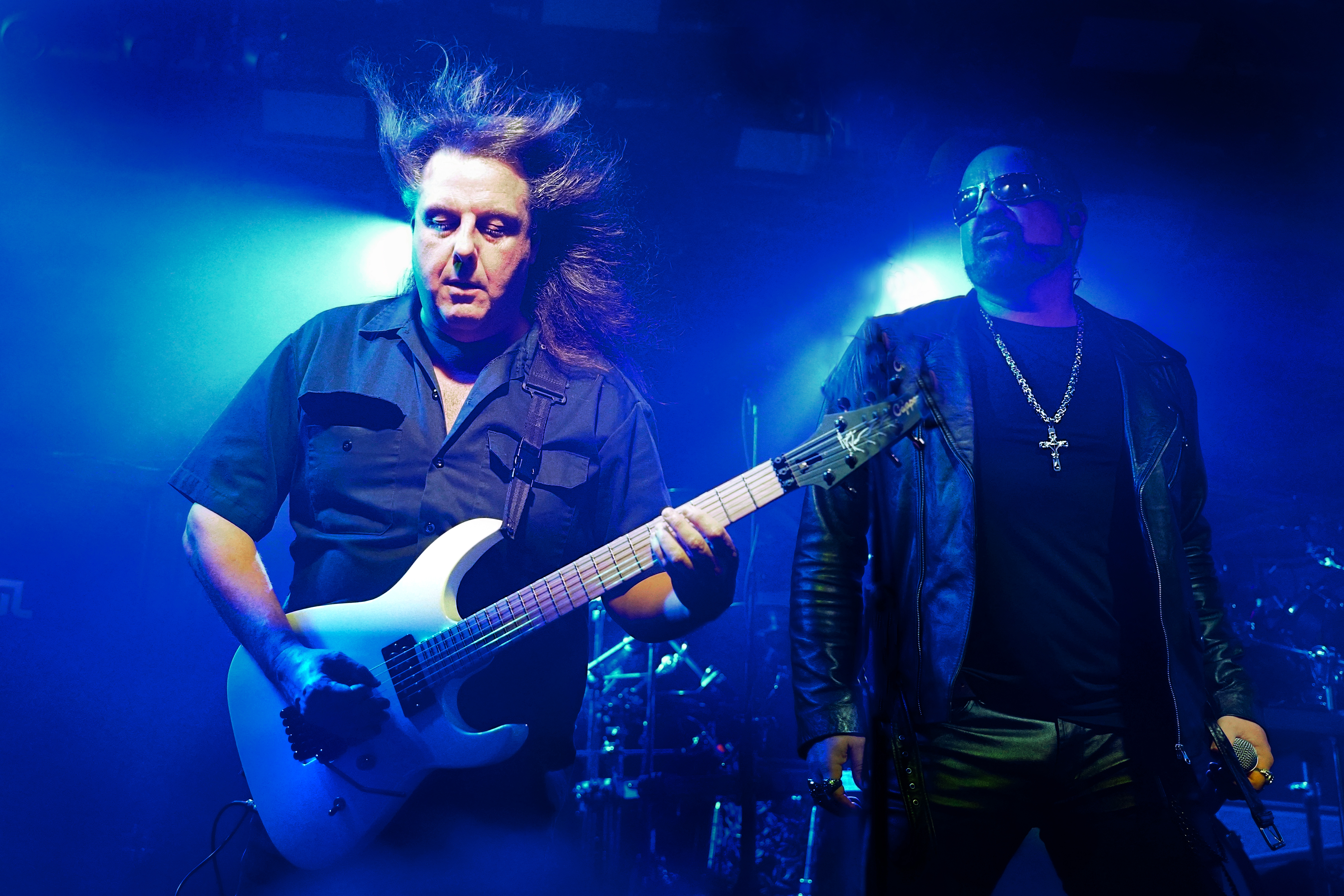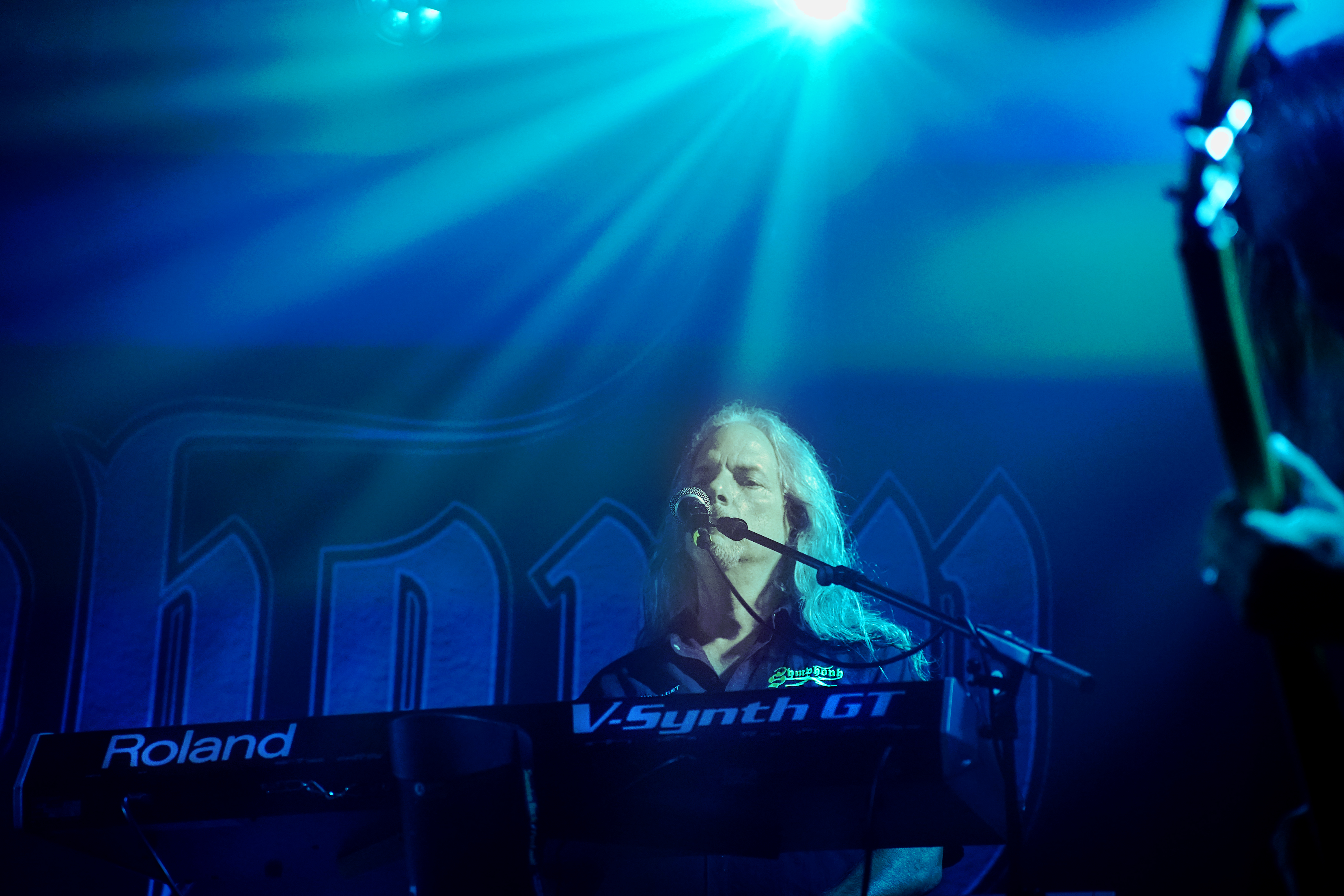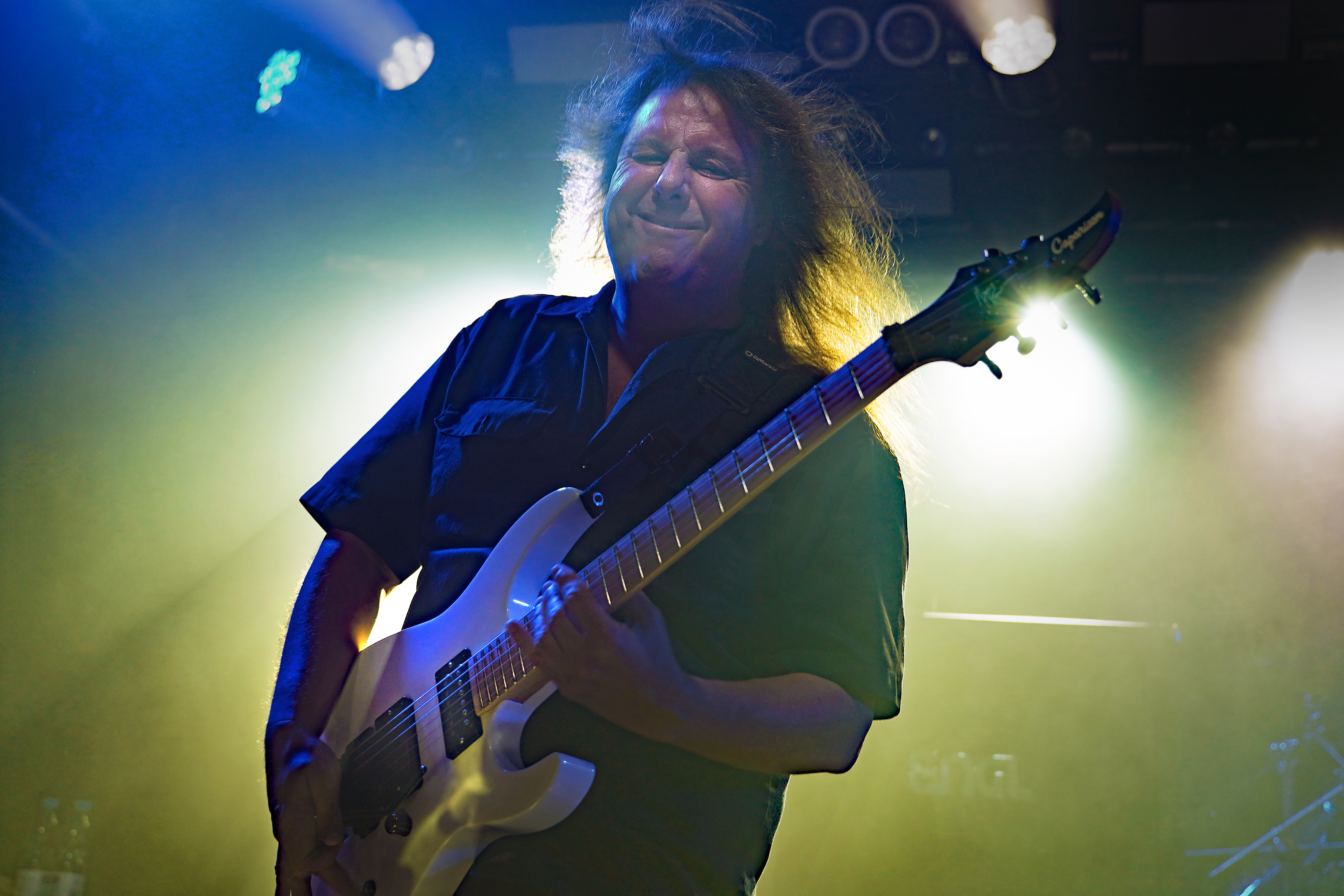 Aber die Menge im sehr gut gefüllten Aschaffenburger Colos-Saal will vor Allem ihre Helden sehen und als diese mit „Iconoclast“ loslegen, gibt es kein Halten mehr. Dass SYMPHONY X seit nunmehr 27 Jahren in der gleichen Besetzung spielen merkt man sofort. Trotz des halsbrecherischen Tempos und der musikalischen Komplexität ist man perfekt aufeinander eingespielt und tight wie auf den Boden des Mariannengraben gesunkenes U-Boot. SYMPHONY X bestehen aus 5 Einzelkönnern, wobei jeder mit Tonnen an Charisma gesegnet ist, und jeder könnte der herausragende Akteur in jeder anderen Band sein. Bei SYMPHONY X jedoch verschmelzen diese 5 Charaktere zu einem noch größeren Ganzen und jeder nimmt seinen Platz im Dienste der Sache ein. Zugegeben, Sänger Russel Allen sticht noch einmal ein wenig hervor, was aber vollkommen in Ordnung ist und zur Rolle eines guten Frontmanns gehört. Und das ist er zweifellos. Nicht nur, dass er das Publikum fest im Griff hat, sondern er singt auch, wie ein junger Gott. Die Range und seiner verschiedenen Formen des Ausdrucks sind phänomenal. Egal ob harsch wie in „Inferno“ oder mit mehr Gefühl wie in „Without You“, Russel wandelt spielend zwischen den Welten aber auch seine Mitstreiter pendeln gekonnt zwischen Songdienlichkeit und solistischer Extravaganz. Der Colos-Saal kocht und bei aller Komplexität des Songmaterials ist das Publikum extrem textsicher und trägt seine Helden auf Händen. Das Finale wird mit den beiden „Divine Wings“ Großtaten „Out Of The Ashes“ und „Sins And Shadows“ bestritten.