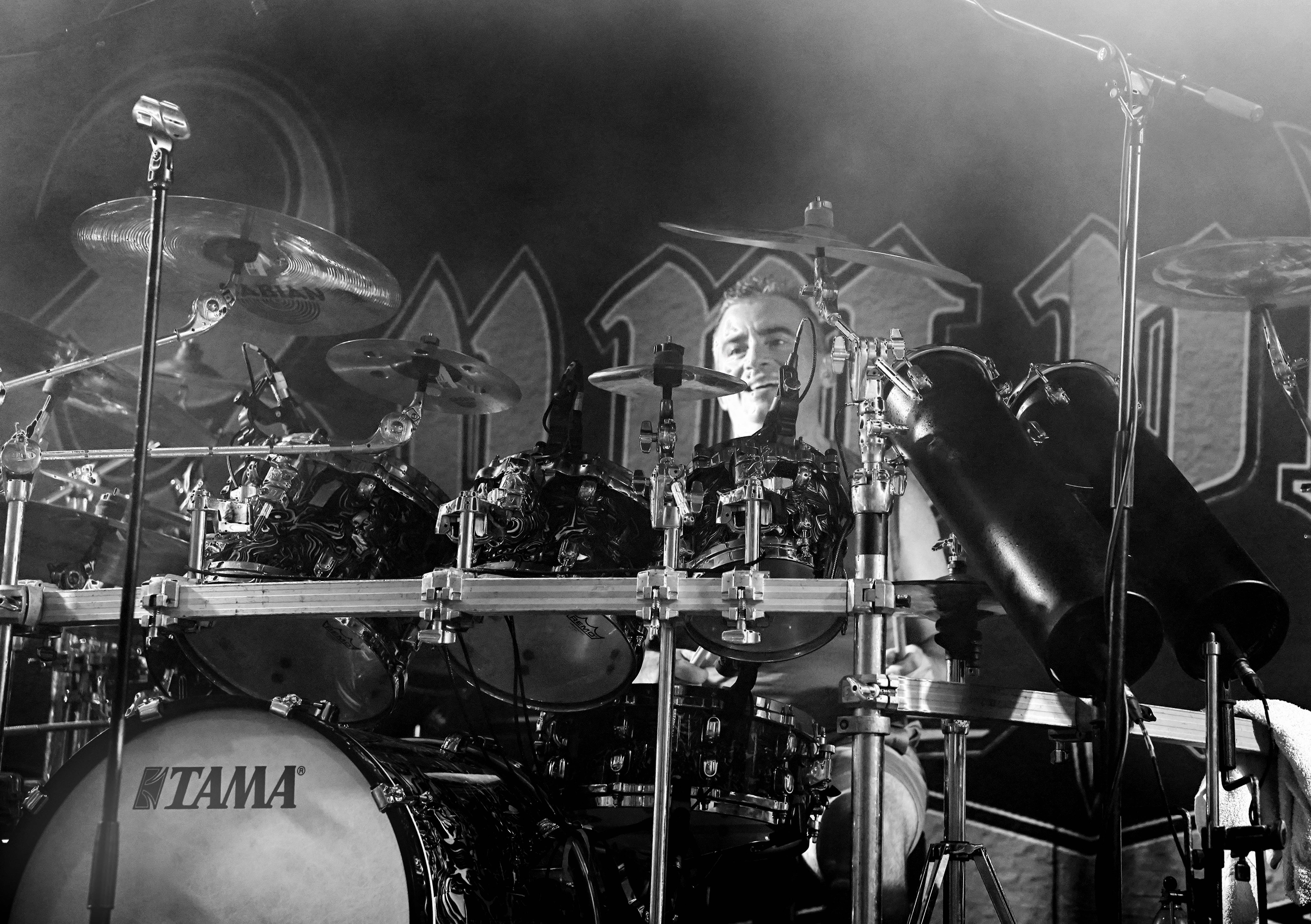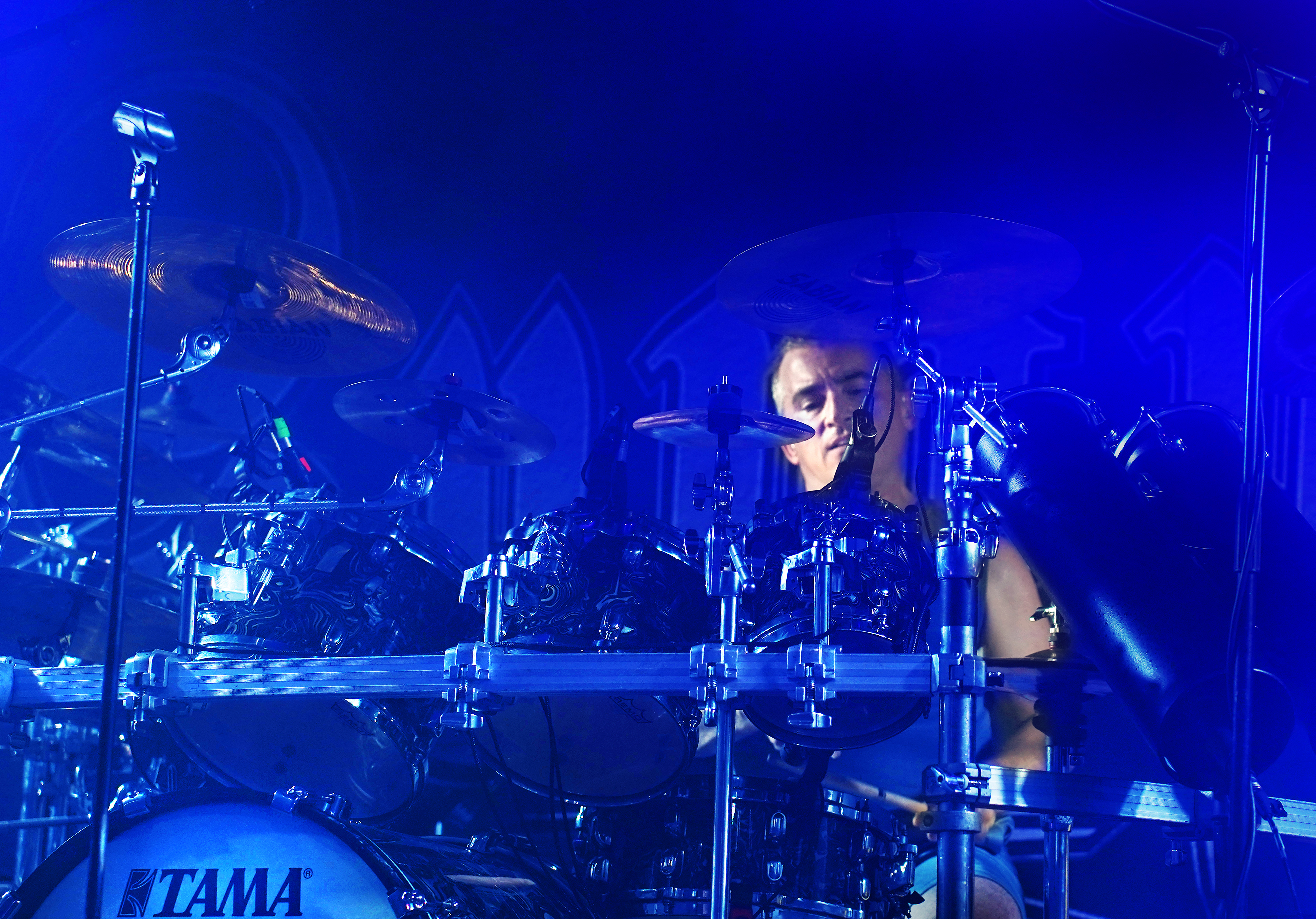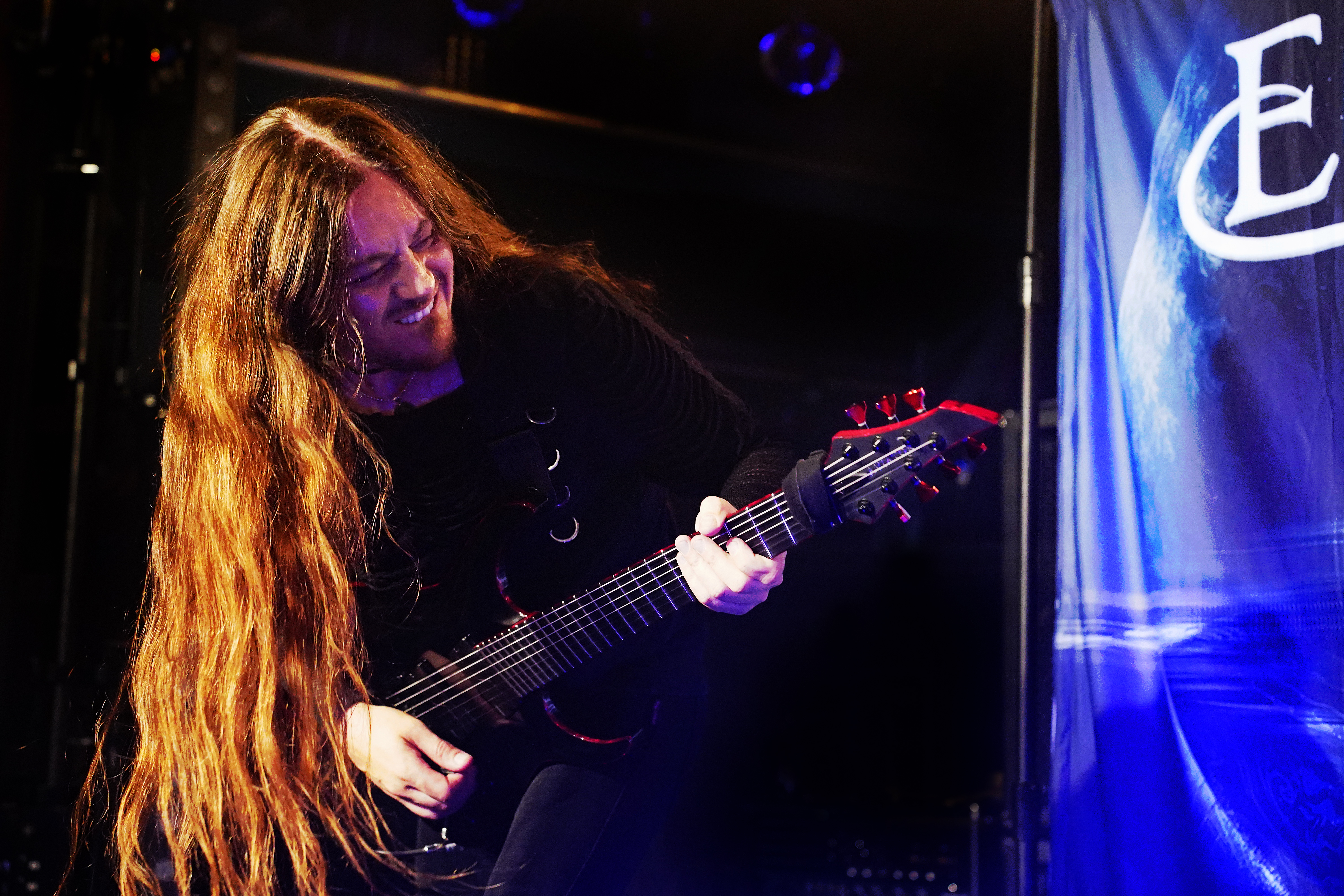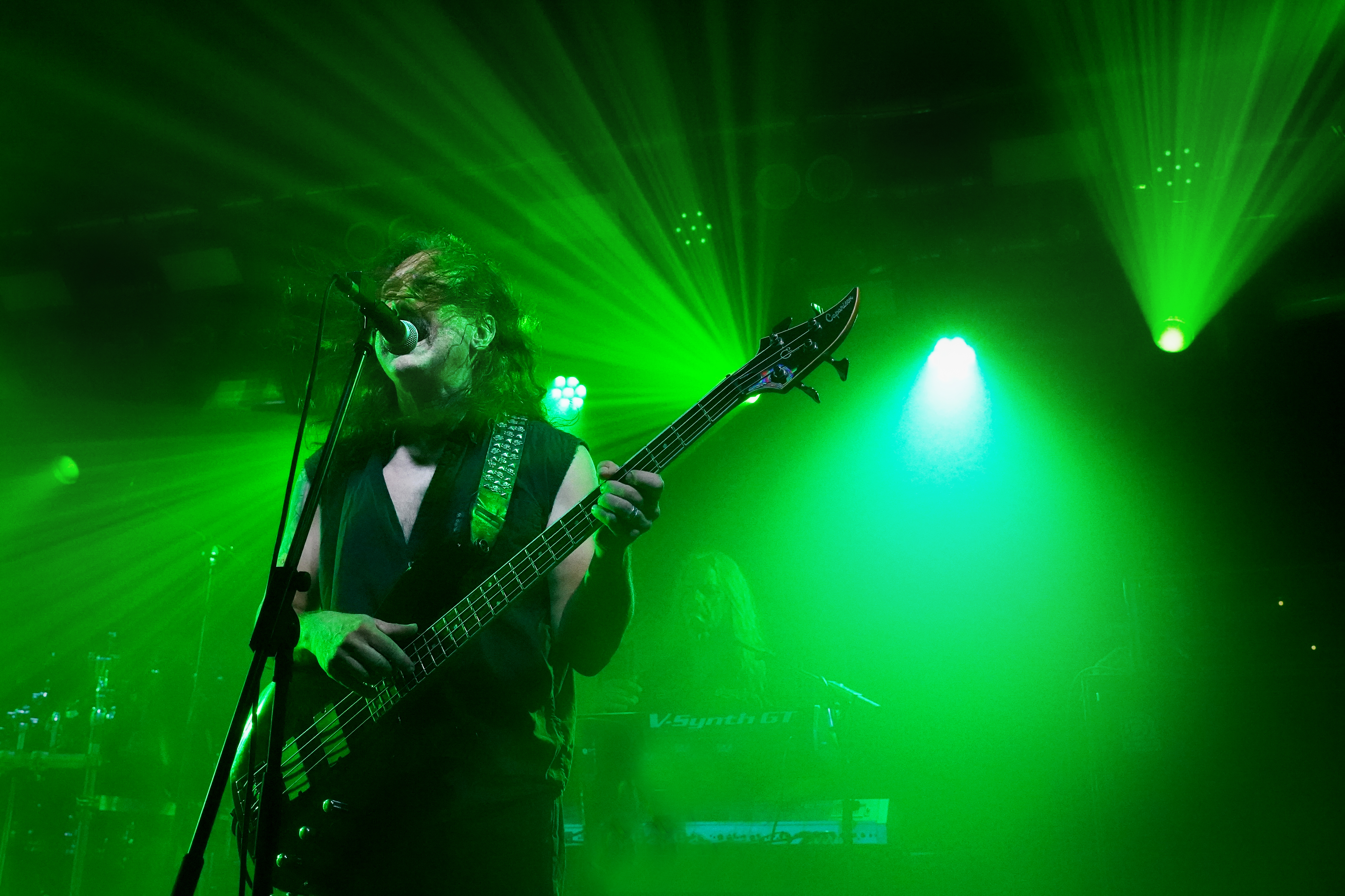 Aber die Menge im sehr gut gefüllten Aschaffenburger Colos-Saal will vor Allem ihre Helden sehen und als diese mit „Iconoclast“ loslegen, gibt es kein Halten mehr. Dass SYMPHONY X seit nunmehr 27 Jahren in der gleichen Besetzung spielen merkt man sofort. Trotz des halsbrecherischen Tempos und der musikalischen Komplexität ist man perfekt aufeinander eingespielt und tight wie auf den Boden des Mariannengraben gesunkenes U-Boot. SYMPHONY X bestehen aus 5 Einzelkönnern, wobei jeder mit Tonnen an Charisma gesegnet ist, und jeder könnte der herausragende Akteur in jeder anderen Band sein. Bei SYMPHONY X jedoch verschmelzen diese 5 Charaktere zu einem noch größeren Ganzen und jeder nimmt seinen Platz im Dienste der Sache ein. Zugegeben, Sänger Russel Allen sticht noch einmal ein wenig hervor, was aber vollkommen in Ordnung ist und zur Rolle eines guten Frontmanns gehört. Und das ist er zweifellos. Nicht nur, dass er das Publikum fest im Griff hat, sondern er singt auch, wie ein junger Gott. Die Range und seiner verschiedenen Formen des Ausdrucks sind phänomenal. Egal ob harsch wie in „Inferno“ oder mit mehr Gefühl wie in „Without You“, Russel wandelt spielend zwischen den Welten aber auch seine Mitstreiter pendeln gekonnt zwischen Songdienlichkeit und solistischer Extravaganz. Der Colos-Saal kocht und bei aller Komplexität des Songmaterials ist das Publikum extrem textsicher und trägt seine Helden auf Händen. Das Finale wird mit den beiden „Divine Wings“ Großtaten „Out Of The Ashes“ und „Sins And Shadows“ bestritten.