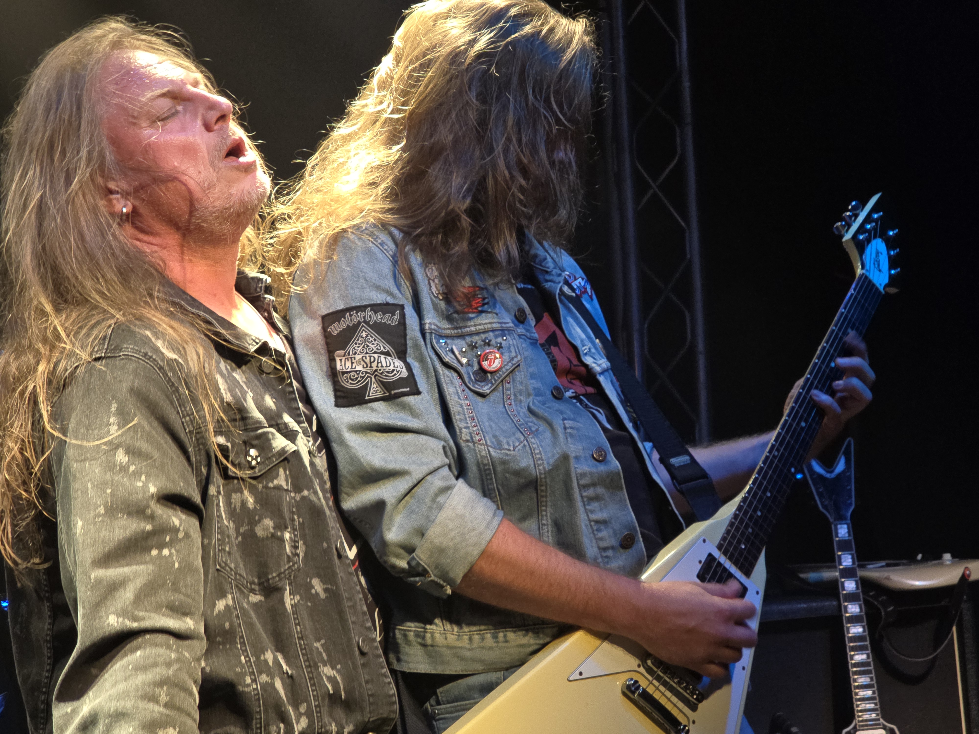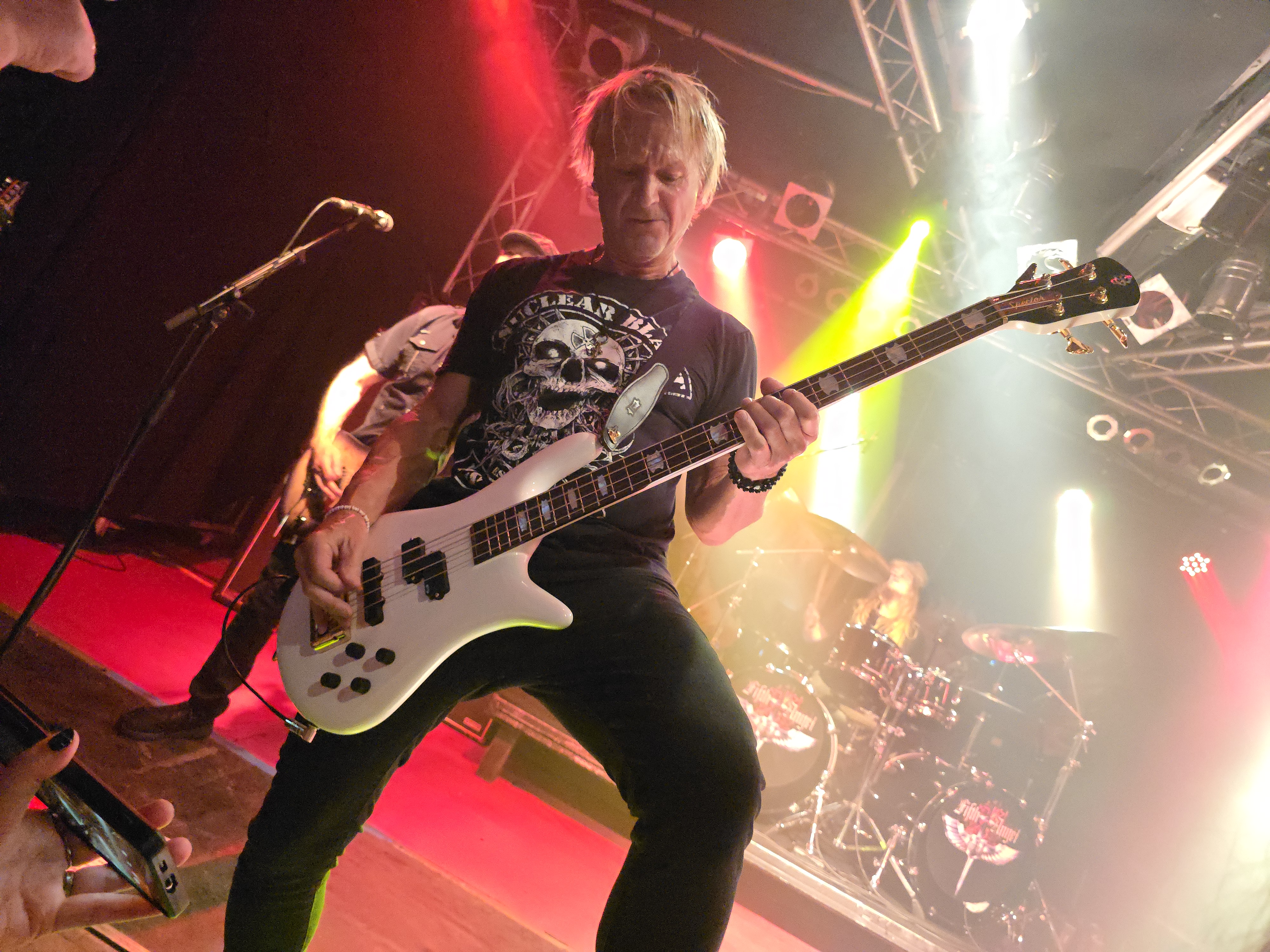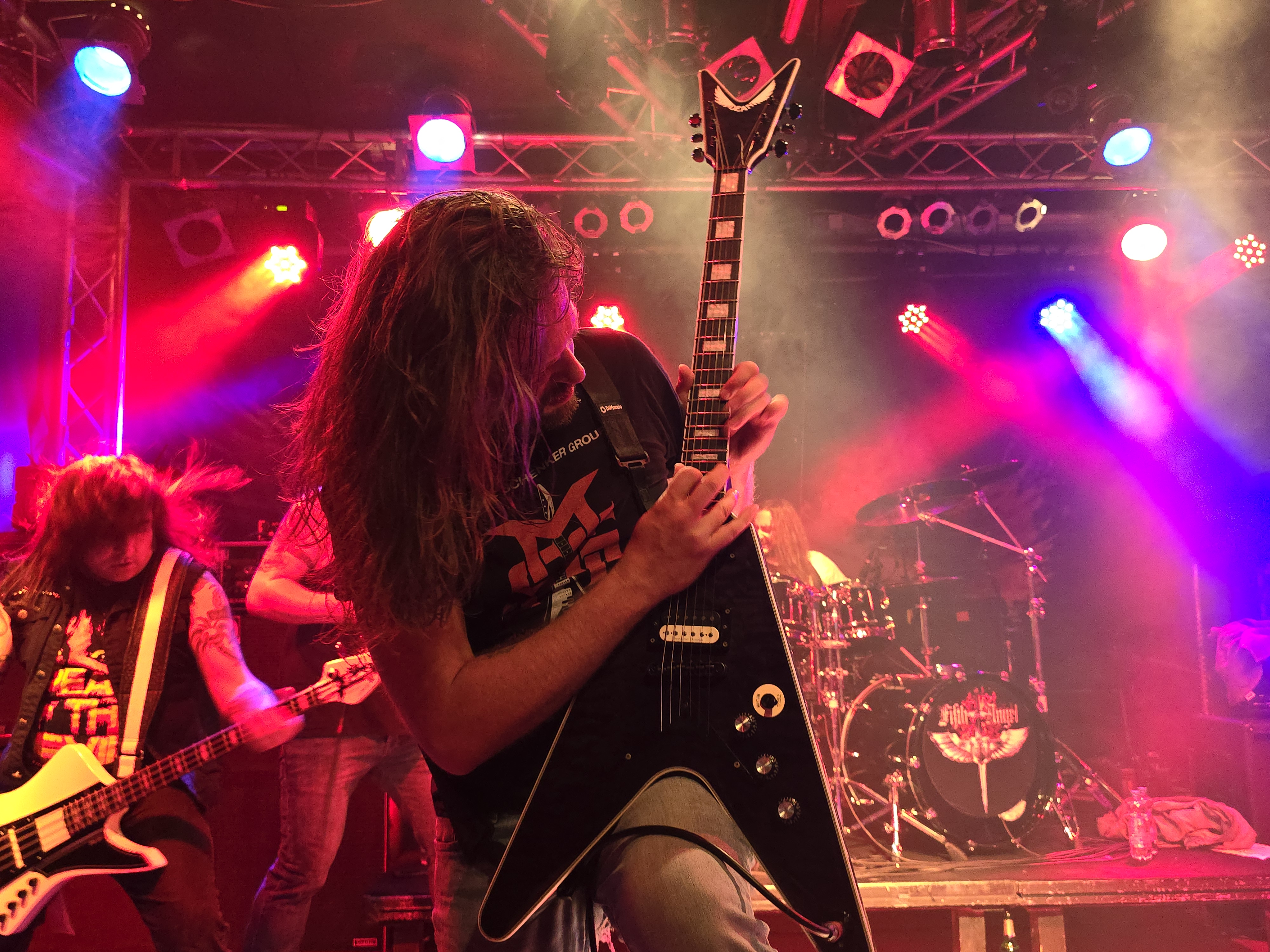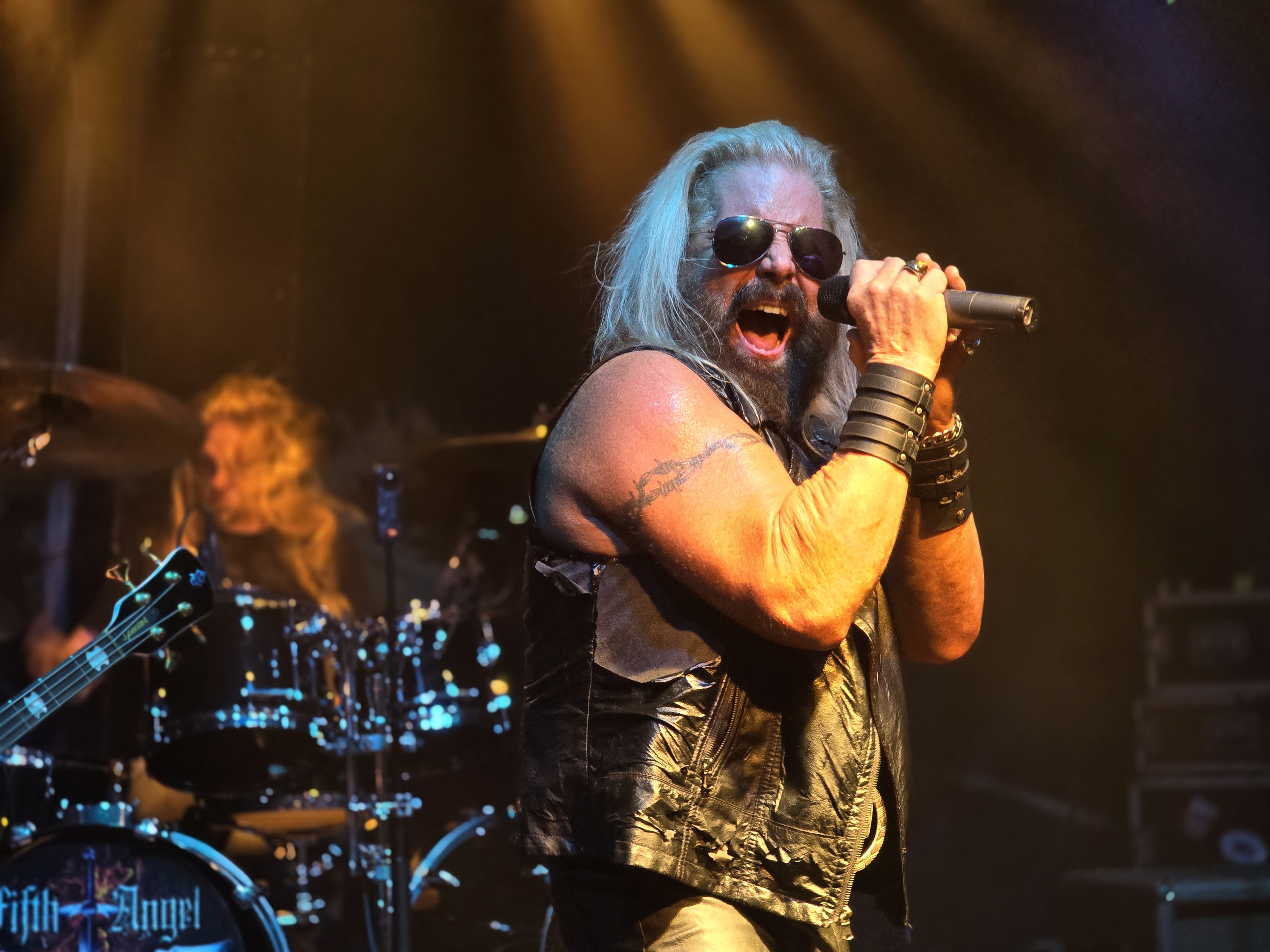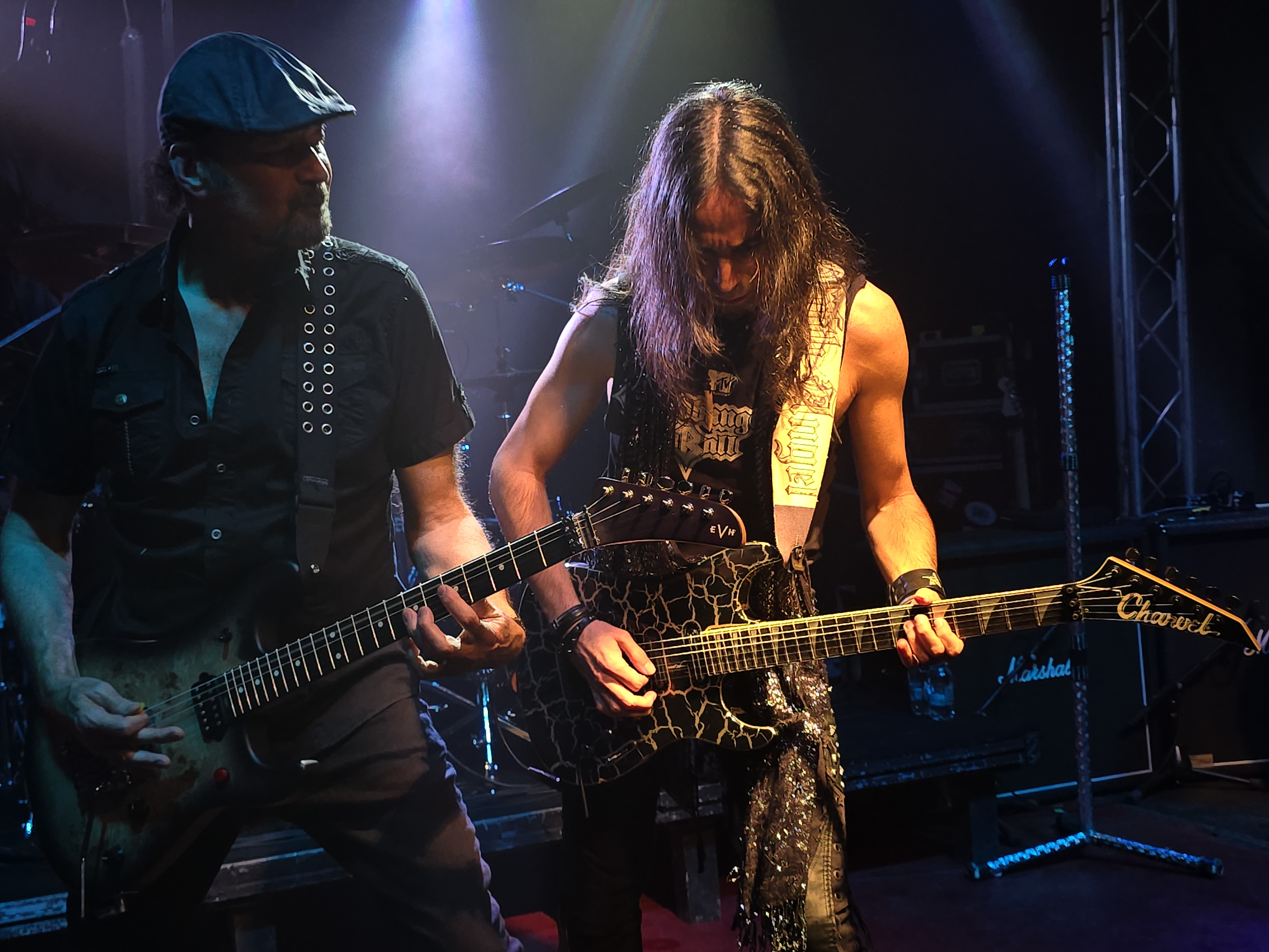 Nach einer weiteren Einlage des 7er Unikums Fisch stürmt die Hauptattraktion FIFTH ANGEL mit dem Debüt Klassiker „The Night“ die Bühne und geben von Sekunde Eins an Vollgas. A propos „Debüt“: diese wurde beinahe auf den Tag genau vor 38 Jahren veröffentlicht und bildet am heutigen Abend mit 7 Stücken den Schwerpunkt im Set der Amerikaner. Ein wenig Schade ist, dass Wunderdrummer Ken Mary aus privaten Gründen nicht mit von der Partie sein kann. Seinen Part übernimmt aber ebenso stark der junge Marco Prij, welcher Ken auch schon bei FLOTSAM & JETSAM temporär ersetzt hatte und so mit dessen Drumming bestens vertraut ist. Die restliche Band bestehend aus den Gitarristen Ed Archer und Ethan Brosh, Basser John Macko und Sänger Steven Carlson haben richtig Bock und sind sowohl virtuos, als auch agil. Der Spaß, denn die Jungs auf der Bühne haben überträgt sich auch sofort aufs Publikum und die Augen aller beginnen zu leuchten, als Großtaten wie „Shout It Out“, „Midnhight Love“, „Cry Out The Fools“ oder „Wings Of Destiny“ ertönen. Aber ich im Block mit drei Stücken des aktuellen und nicht unumstrittenen Albums „When Angels Kill“ ist kein Stimmungsabfall bemerkbar. Steven Carlson gelingt es die alten Stücke ziemlich originalgetreu rüber zu bringen und ihnen dennoch seinen eigenen Stempel aufzudrücken. Von der Saitenfraktion fällt besonders Bassist John Macko auf, welcher unermüdlich ackert und das Publikum als quasi zweiter Frontmann immer wieder animiert und anstachelt. Mit „Cathedral“ biegt man ins Schlussviertel ein bevor „Fifth Angel“, „We Rule“ und „Stars Are Falling“ den offiziellen Teil beenden. Nach einer kurzen Pause legen FIFTH ANGEL mit dem UFO-Cover „Lights Out“ nochmal nach. FIFTH ANGEL gehören immer noch zu absoluten Speerspitze des melodischen US Metal und wurden ihrem Ruf auch heute Abend mehr als gerecht. Hoffen wir, dass es keine weiteren 38 Jahre bis zur nächsten Tour dauern wird.