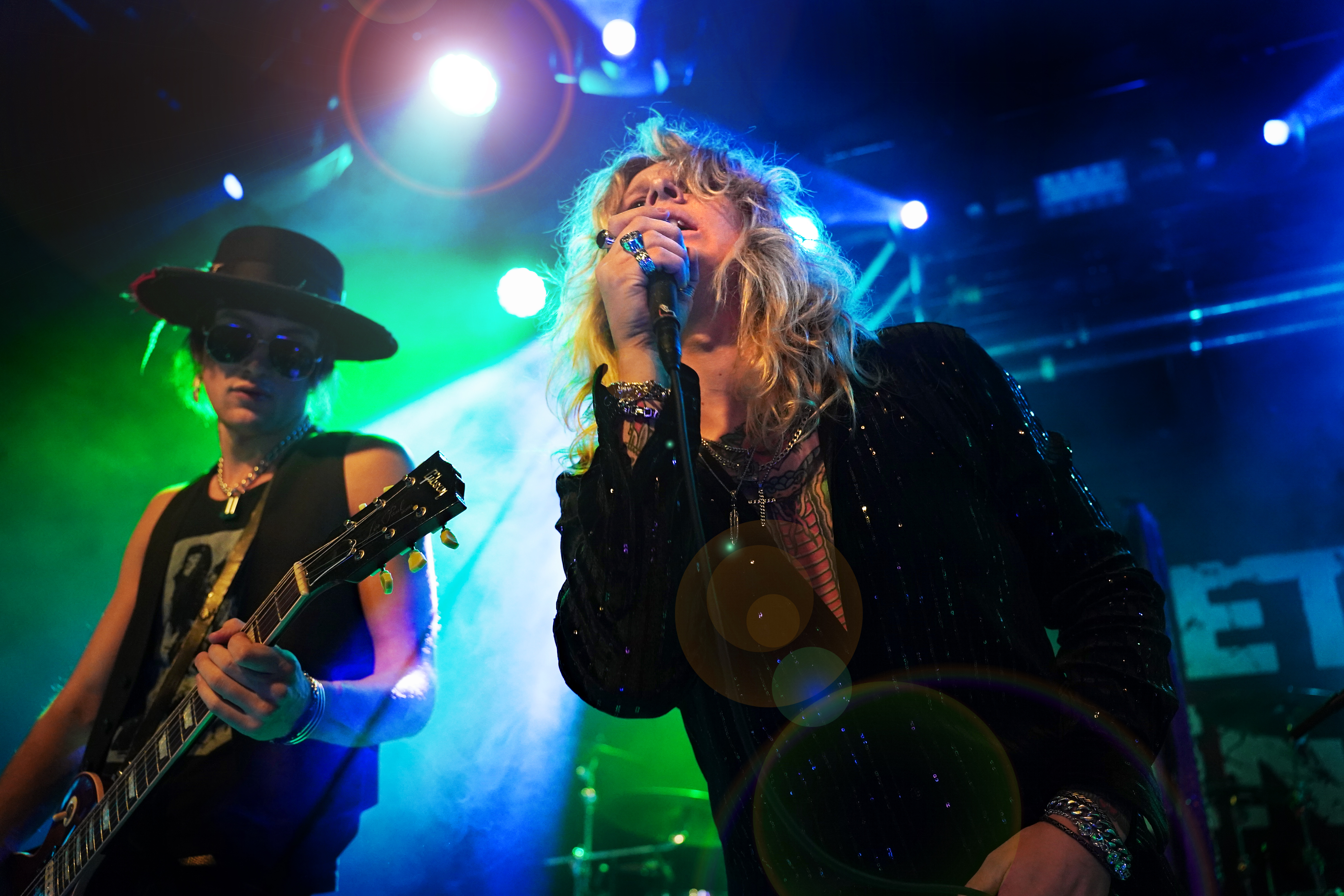 VELVETEEN QUEEN, die Landsmänner von NESTOR, eröffnen den Konzertabend. Ähnlich wie die Hauptband verströmen sie 80er Jahre Vibes. Sänger Samuel Nilsson findet sich gut, das bringt Ausstrahlung und unterhaltsame Performance. Seine Stimme indes ist doch etwas eindimensional und ein wenig limitiert, um Melodien zu transportieren. Auch der Lead-Gitarrist mit Hut und Sonnebrille ist optisch eine Mischung aus den GUNS 'N' ROSES Gitarristen Slash und Izzy Stradlin und somit eher wenig originell. Das alles tut dem Zweck, das Publikum vorzuheizen, keinen Abbruch. Und somit dürfen sich die jungen Musiker von VELVETEEN QUEEN über ordentlich Applaus freuen.