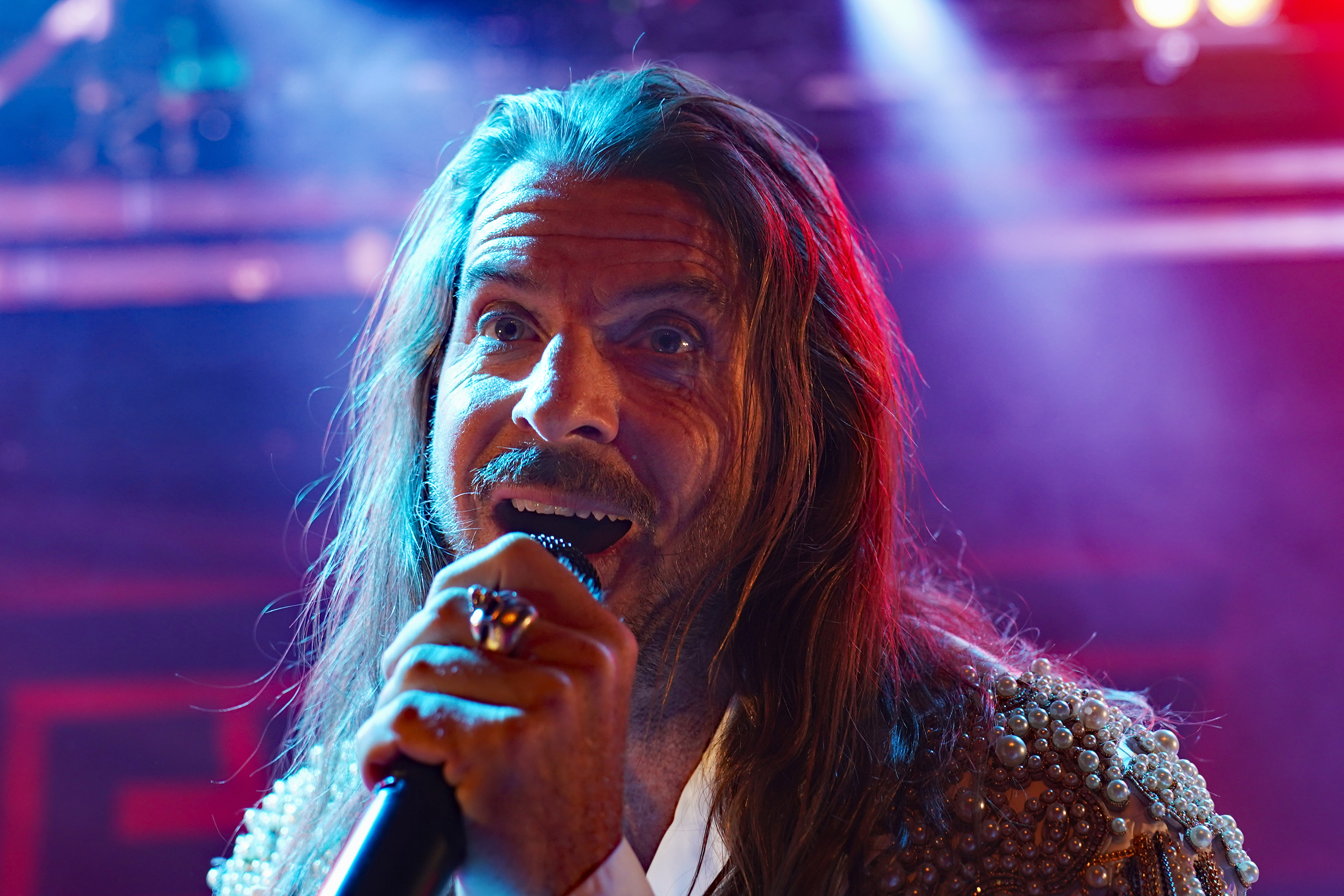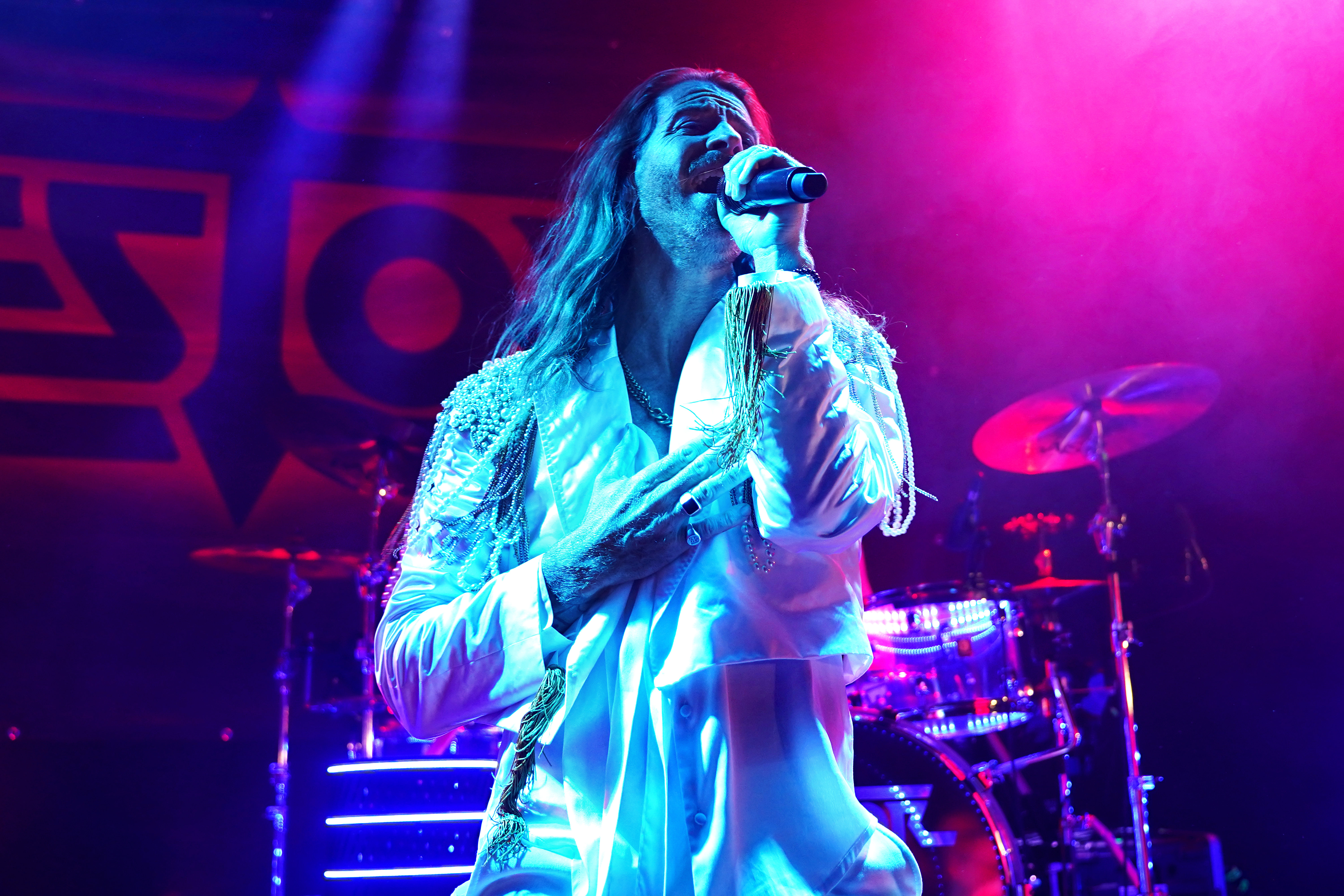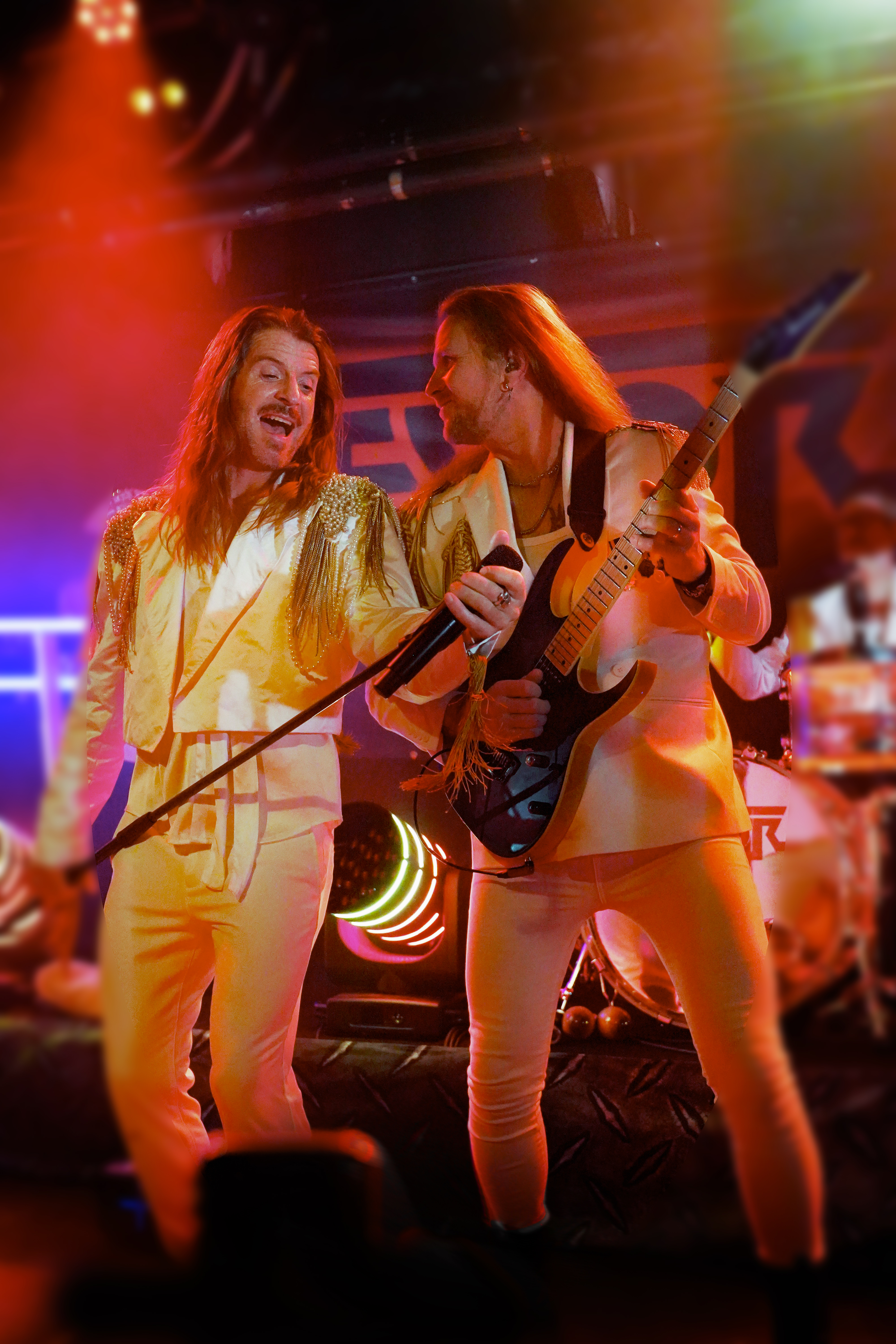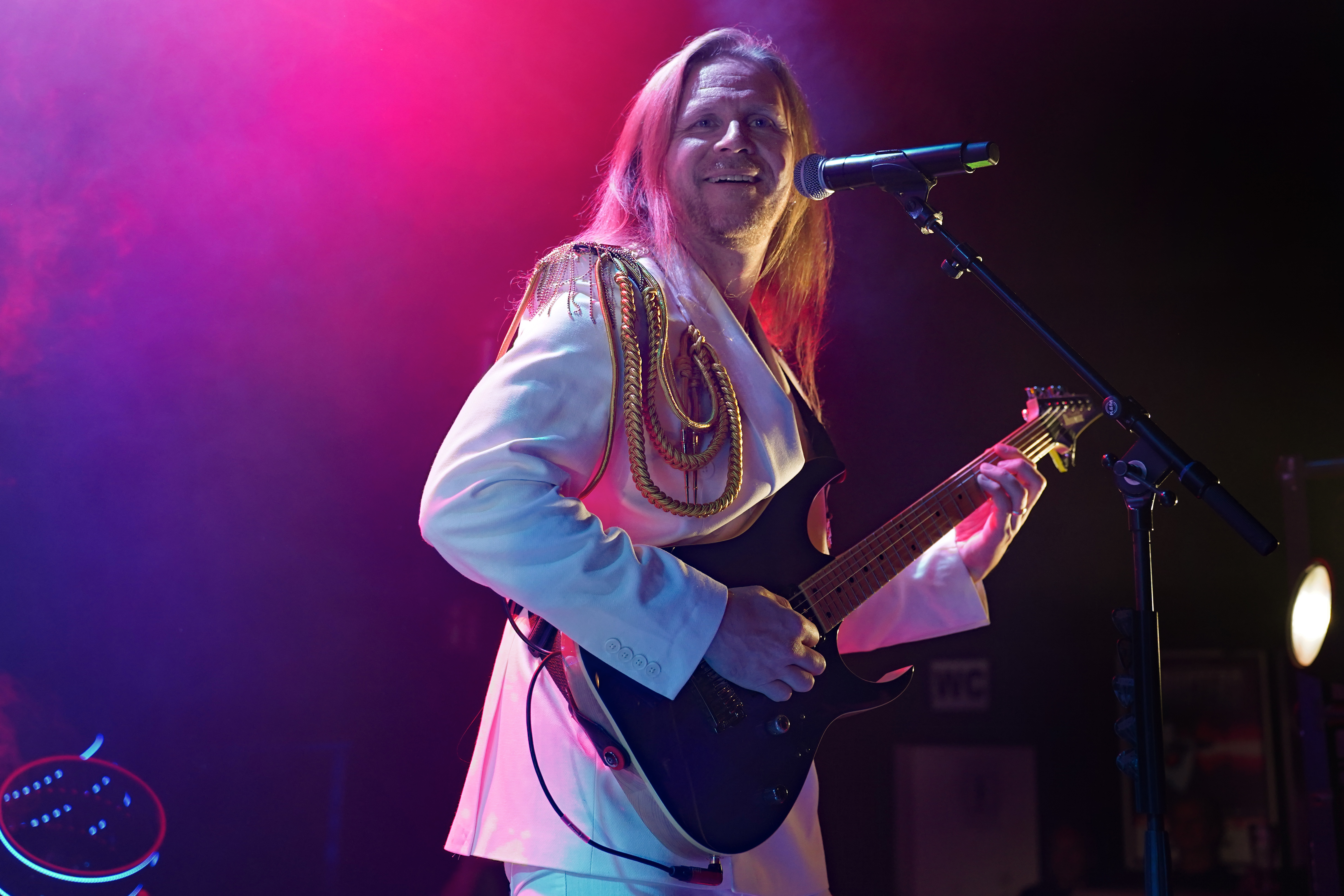 NESTOR starten mit "We Come Alive" ihren Gig. Der Sound ist transparent und druckvoll. Der Schweden-Fünfer ist komplett in weißer "Uniform" gekleidet, was mich ein wenig an ihre Kollegen vom NIGHT FLIGHT ORCHESTER erinnert und was ich ganz ehrlich etwas affig finde. Das verhindert aber nicht im geringsten die Freude, die im Auditorium entfacht wird. Zwei Alben haben NESTOR im Gepäck, und davon werden insgesamt 15 Nummern geboten, darunter die fast schon AOR Evergreens "Kids in a Ghost Town", "Victorious", "Caroline" und "1989". Die Bühnenshow ist visuell atmosphärisch und ansprechend, aber ein Headliner, der auch größere Hallen bespielen will, darf doch noch ein bis zwei Birnchen mehr einschrauben.