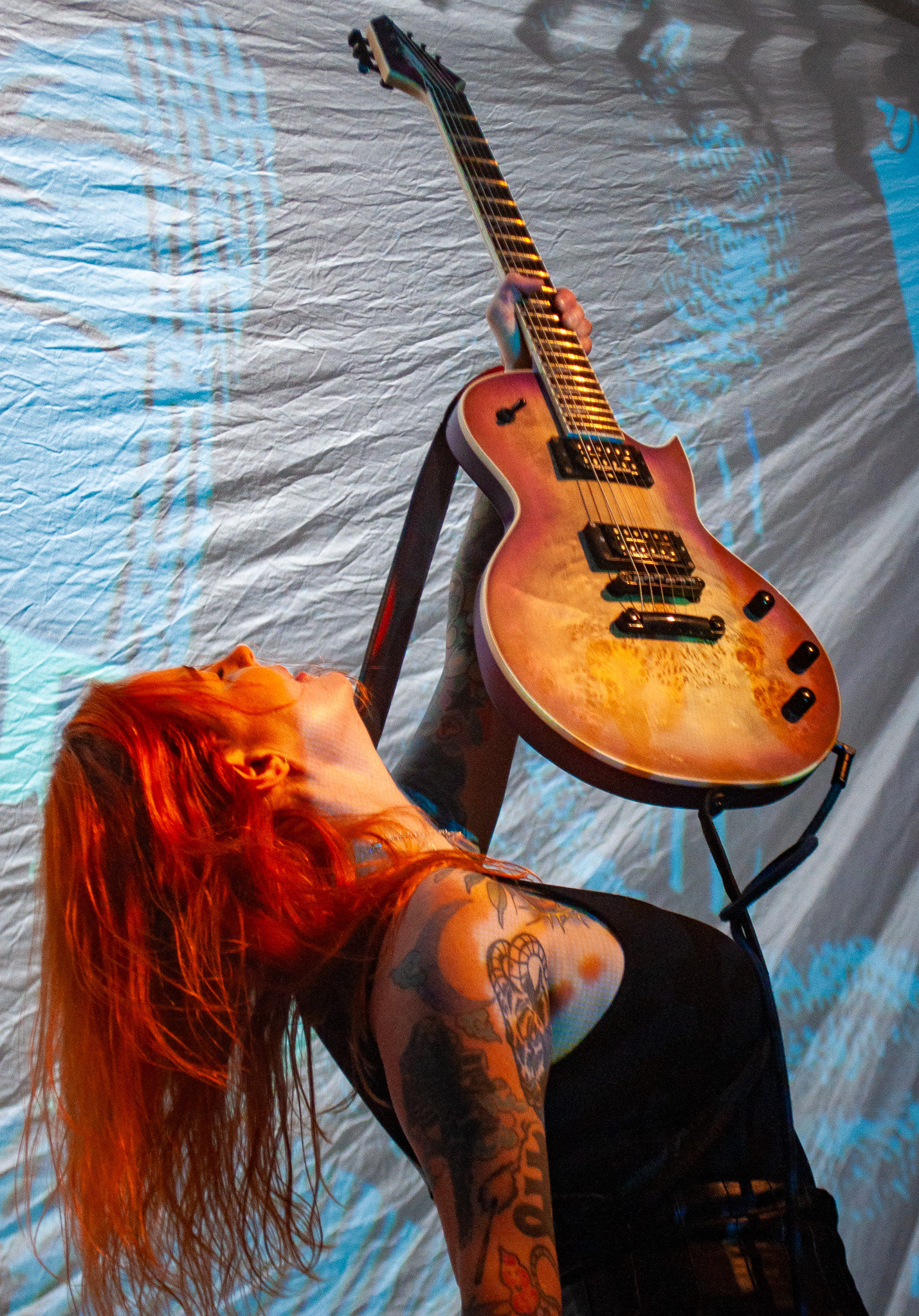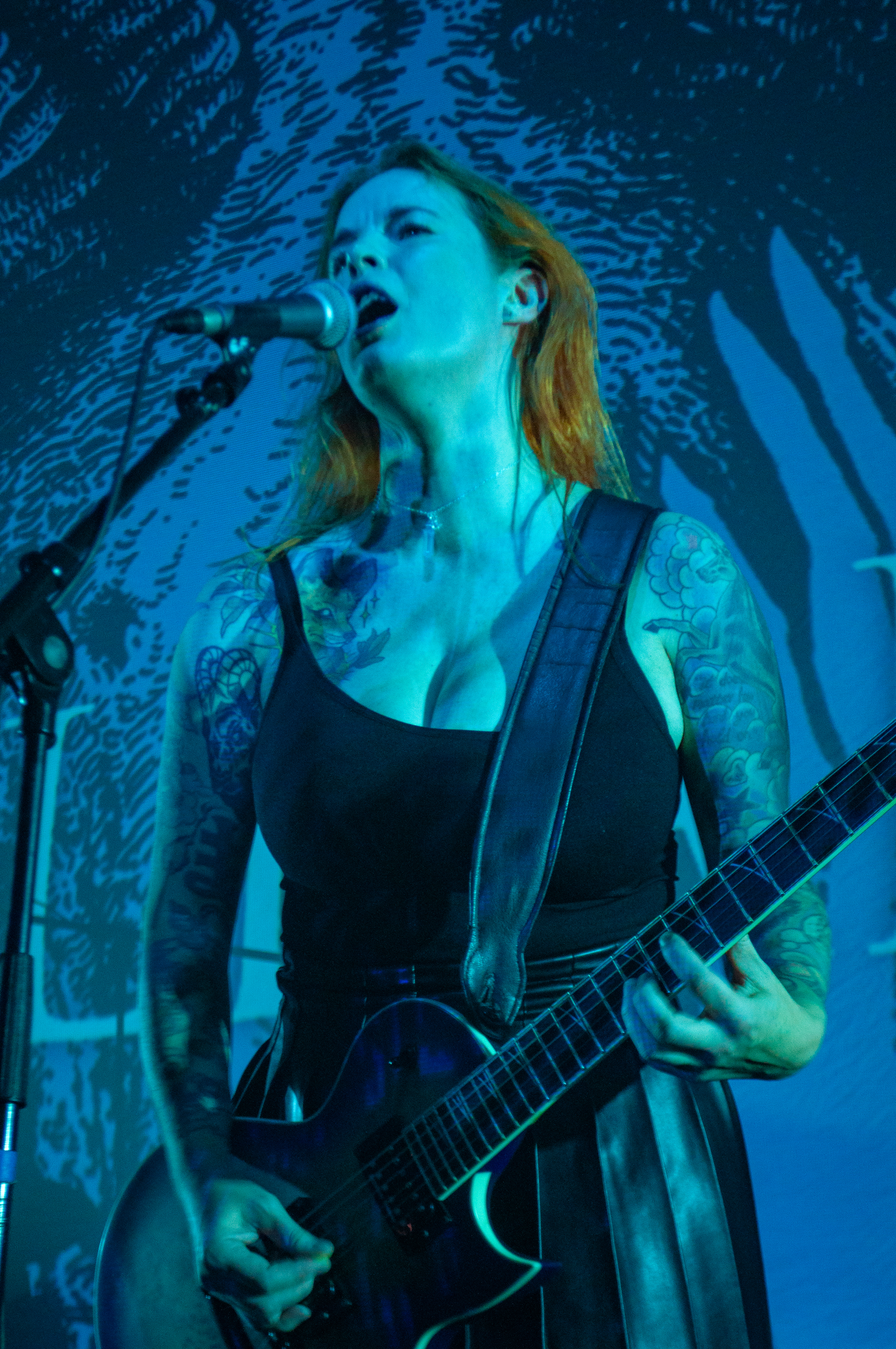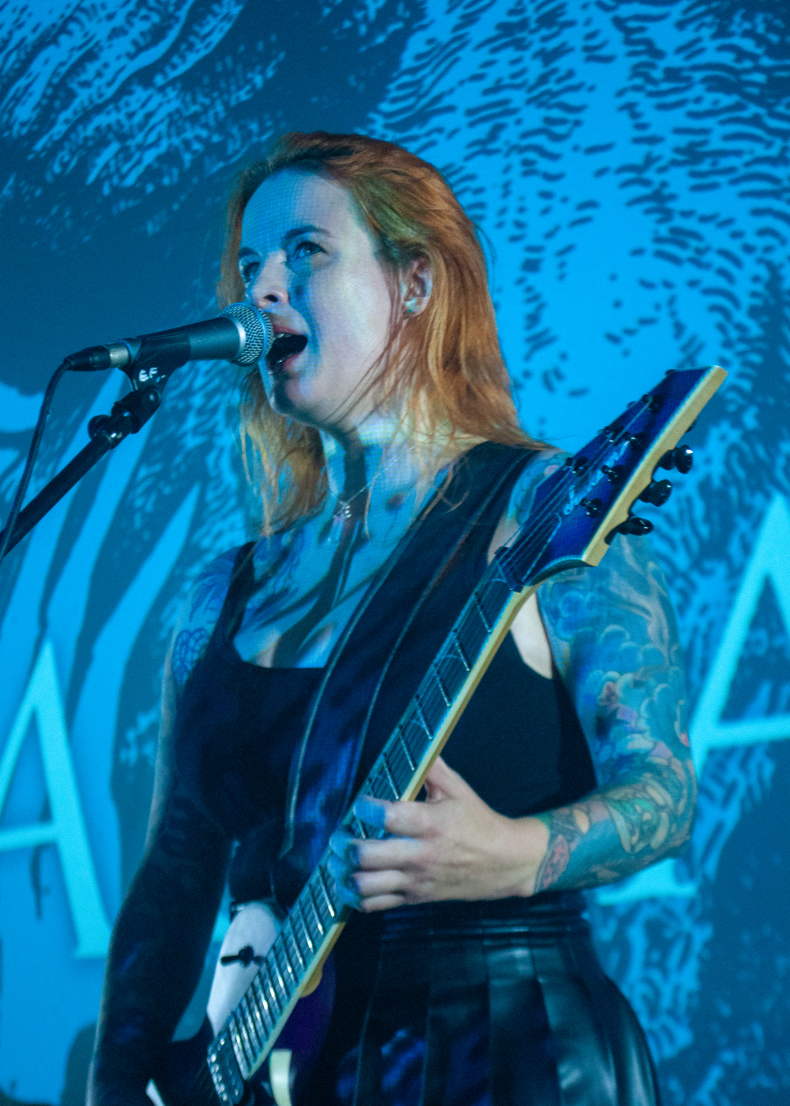 Nach gefühlt langem Soundcheck entern SVALBARD mit „Eternal Spirits“ die Bühne und gehen sofort hochmotiviert zur Sache. Die sympathische Sängerin und Achterbahn-Enthusiastin berichtet, dass ihre Oma aus der Domstadt stammt. Die Engländer stiegen heute dem Tour-Tross zu und spielen eine kurzweilige Show voller Energie. Nach „Faking It“ ist dann Schicht im Schacht.