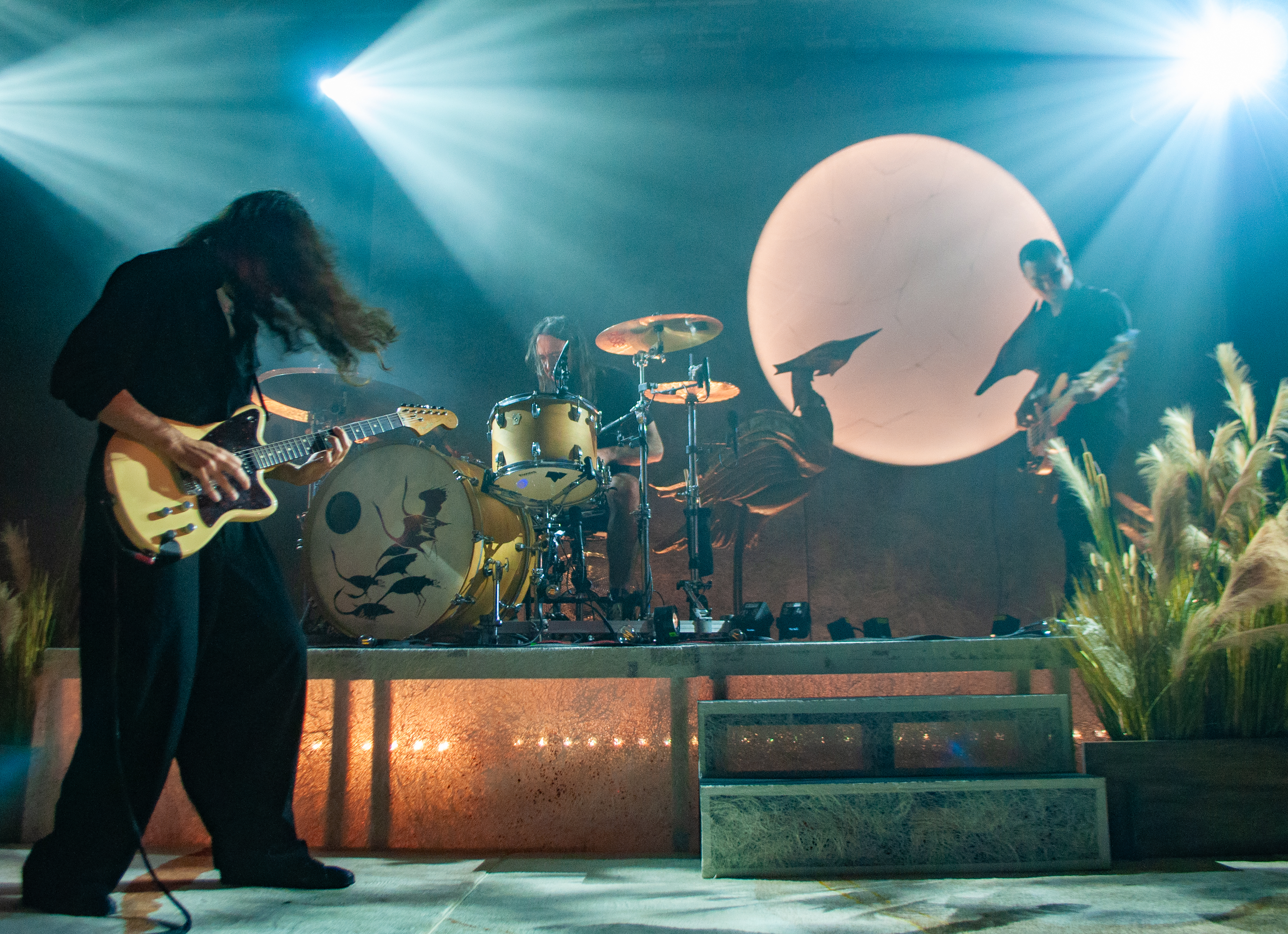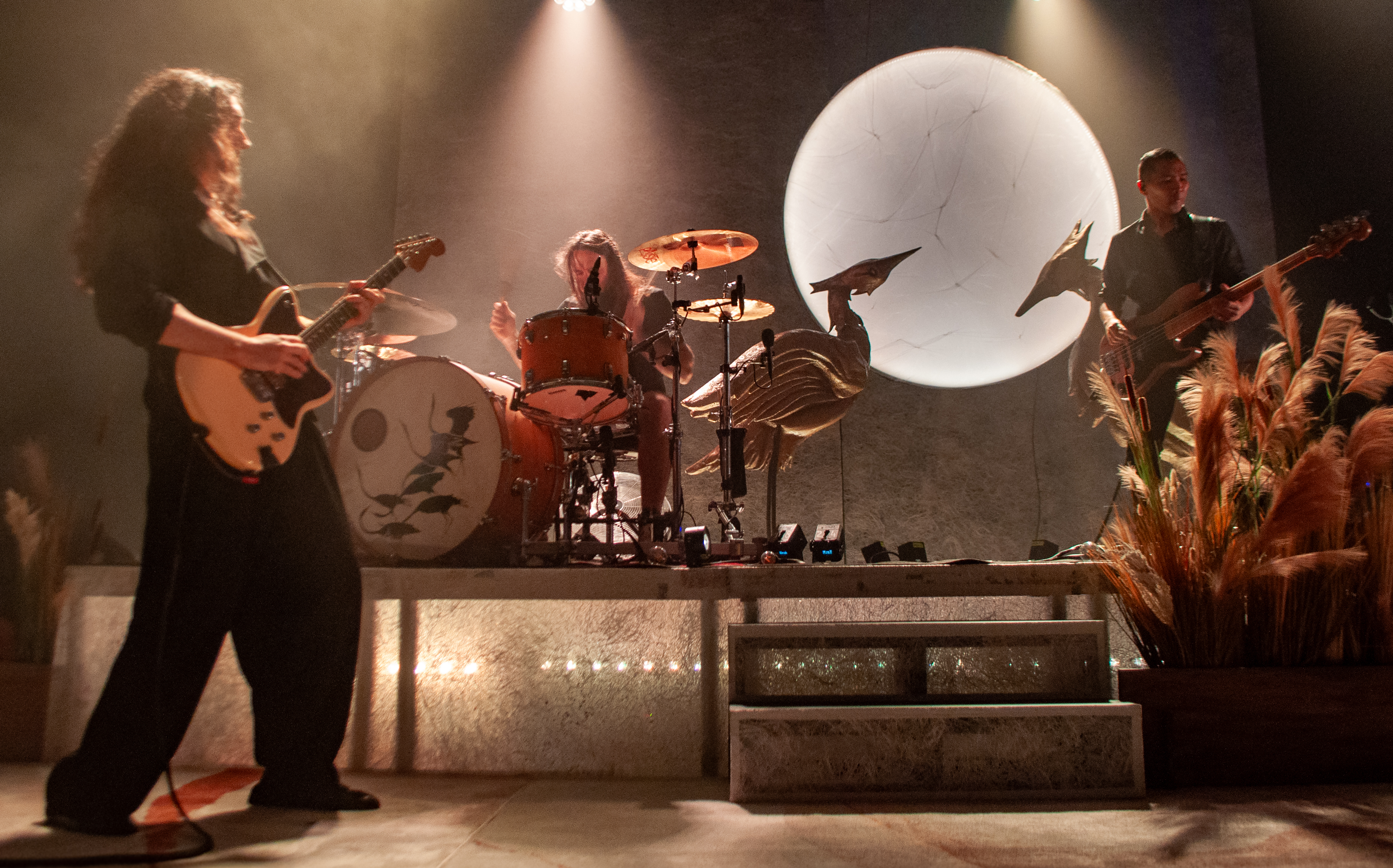 Weiter geht’s mit dem ALCEST: das liebevoll gestaltete Bühnenbild bringt etwas Feierliches in die ziemlich schmucklose Essigfabrik. Neige und Winterhalter haben anscheinend, gemeinsam mit Tine Wittler, ganze Einrichtungshäuser leer gekauft und die Bühne entsprechend des Album-Covers verschönert. ALCEST befinden sich auf der Tour zur im Mai erschienenen Scheibe „Les Chants de l’Aurore“. Auf der letzten Tour (2020) hab ich ALCEST in der Kölner Kantine gesehen; inzwischen kommt mehr Publikum und die Hallen werden größer.