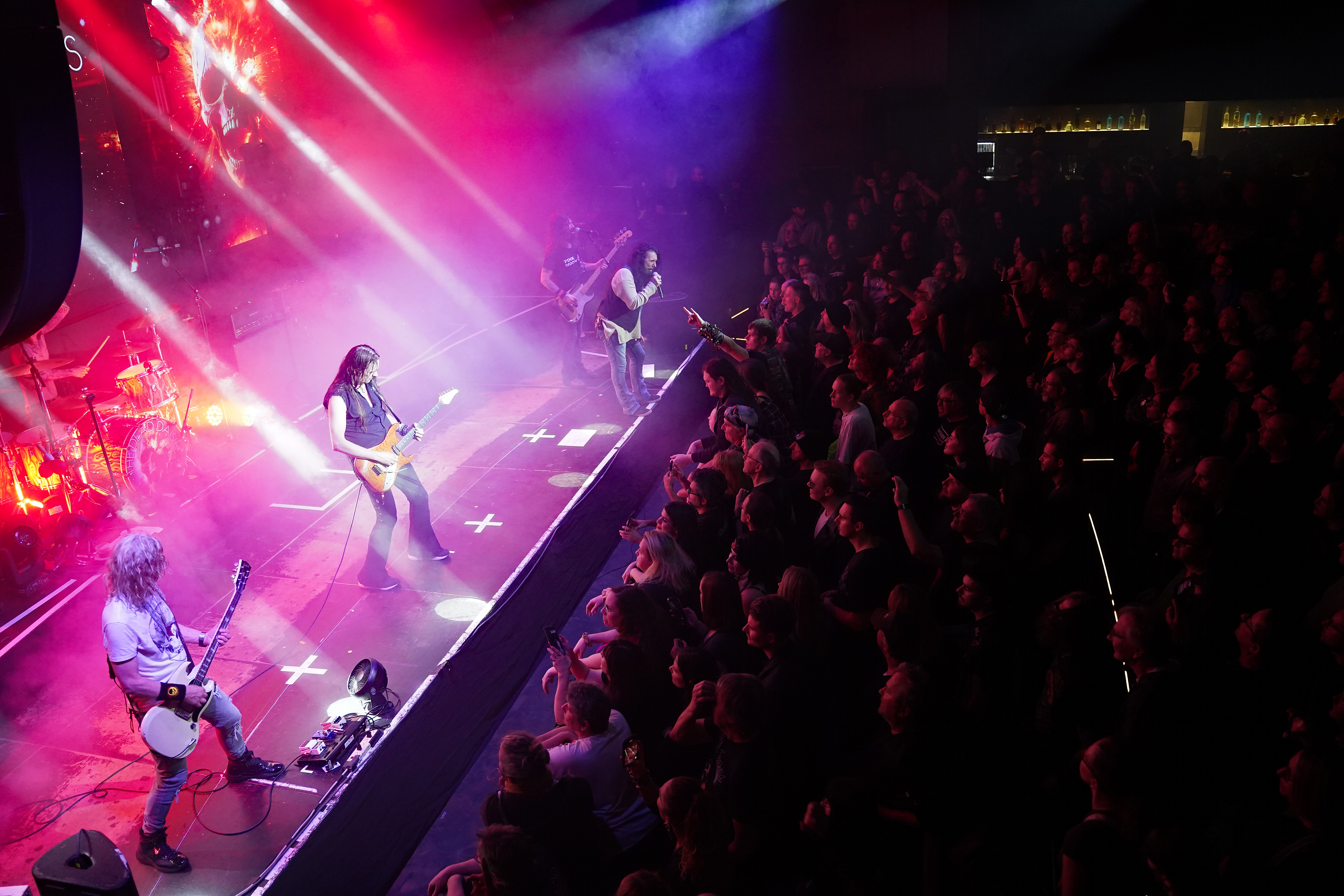 Aber der Reihe nach. Kurzentschlossen machten wir uns so gegen 18:30h auf den Weg nach Frankfurt. Während der Fahrt stellten wir fest, dass der Gig bereits um 19h beginnt. Das war doch etwas früher als erwartet. Und so kamen wir leider nur zu den zwei letzten Songs des MIKE TRAMPs WHITE LION-Auftritts in die Location. "When the Children Cry" und dem wunderbaren "Wait" durften wir noch lauschen. Mike stand zu unserer Überraschung nur mit seinem Gitarrist auf der Bühne. Schlagzeug und Bass kamen vom Band. Das war doch etwas ernüchternd. Und das heißt auch, man sollte vielleicht hin und wieder weniger spontan einen Gig auswählen. Mit ein klein wenig Recherche wäre das mit der Rumpf-Besetzung und auch der etwas frühe Beginn zu erfahren gewesen. Asche auf mein Haupt.