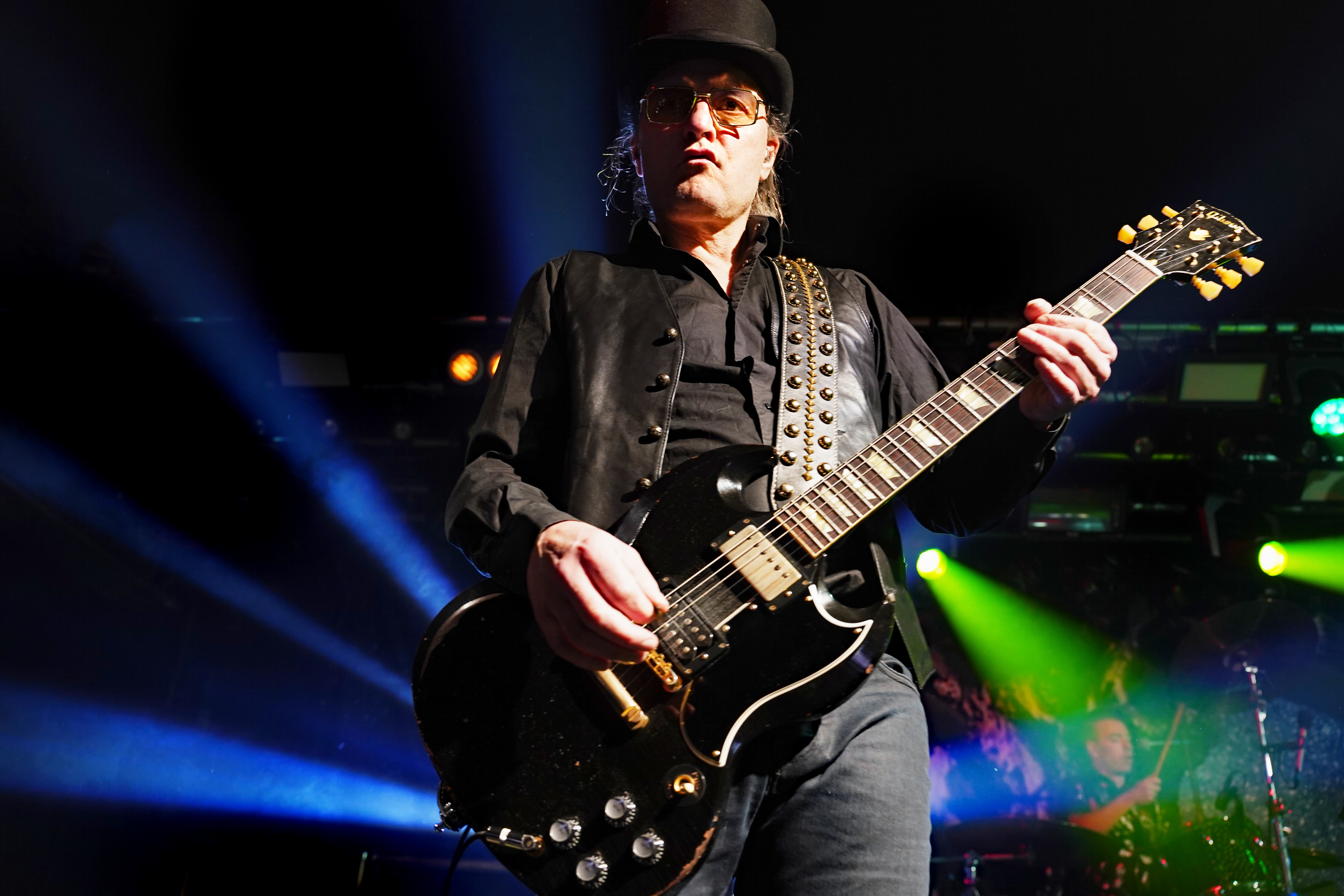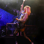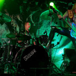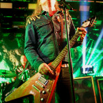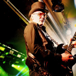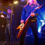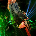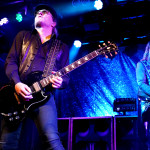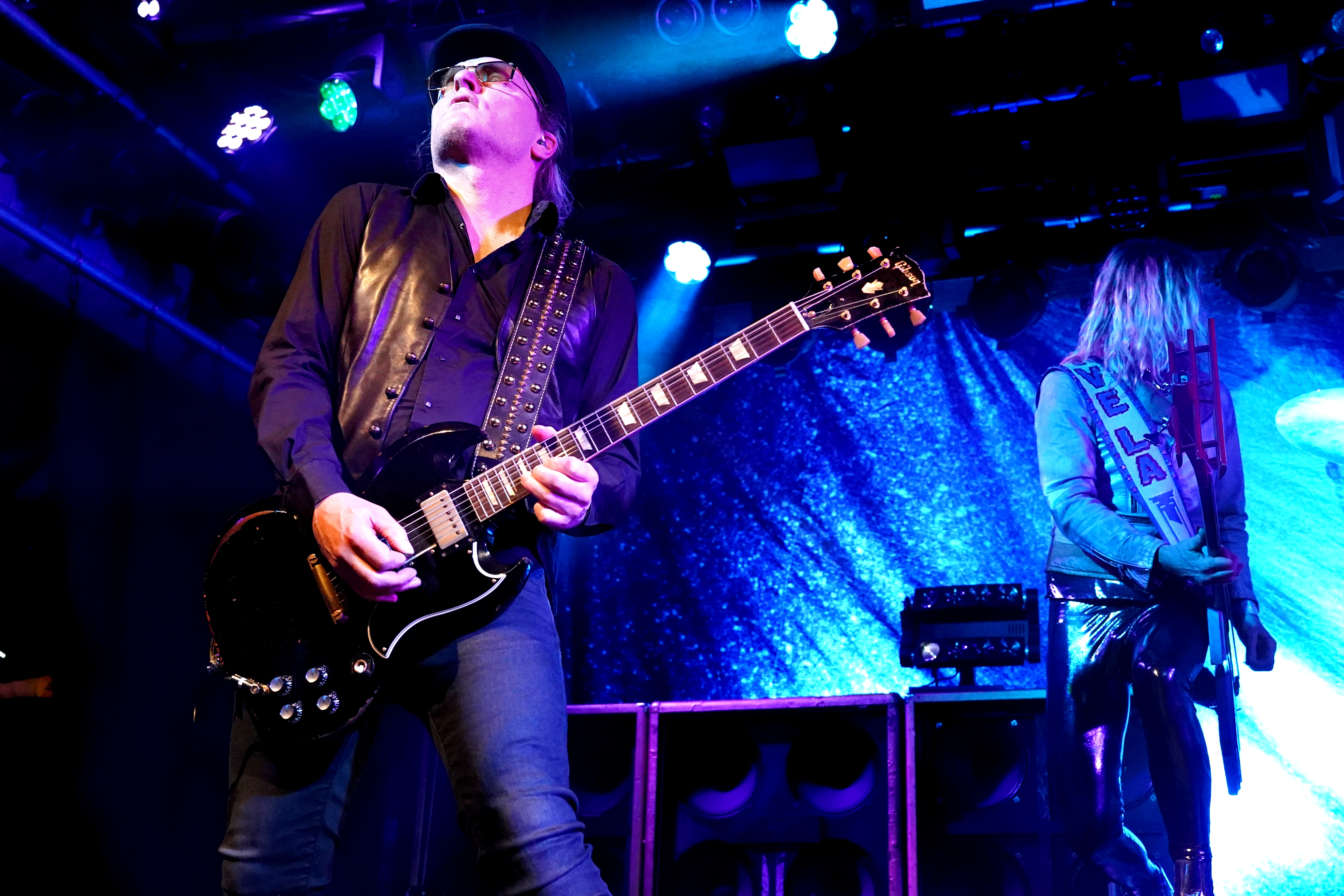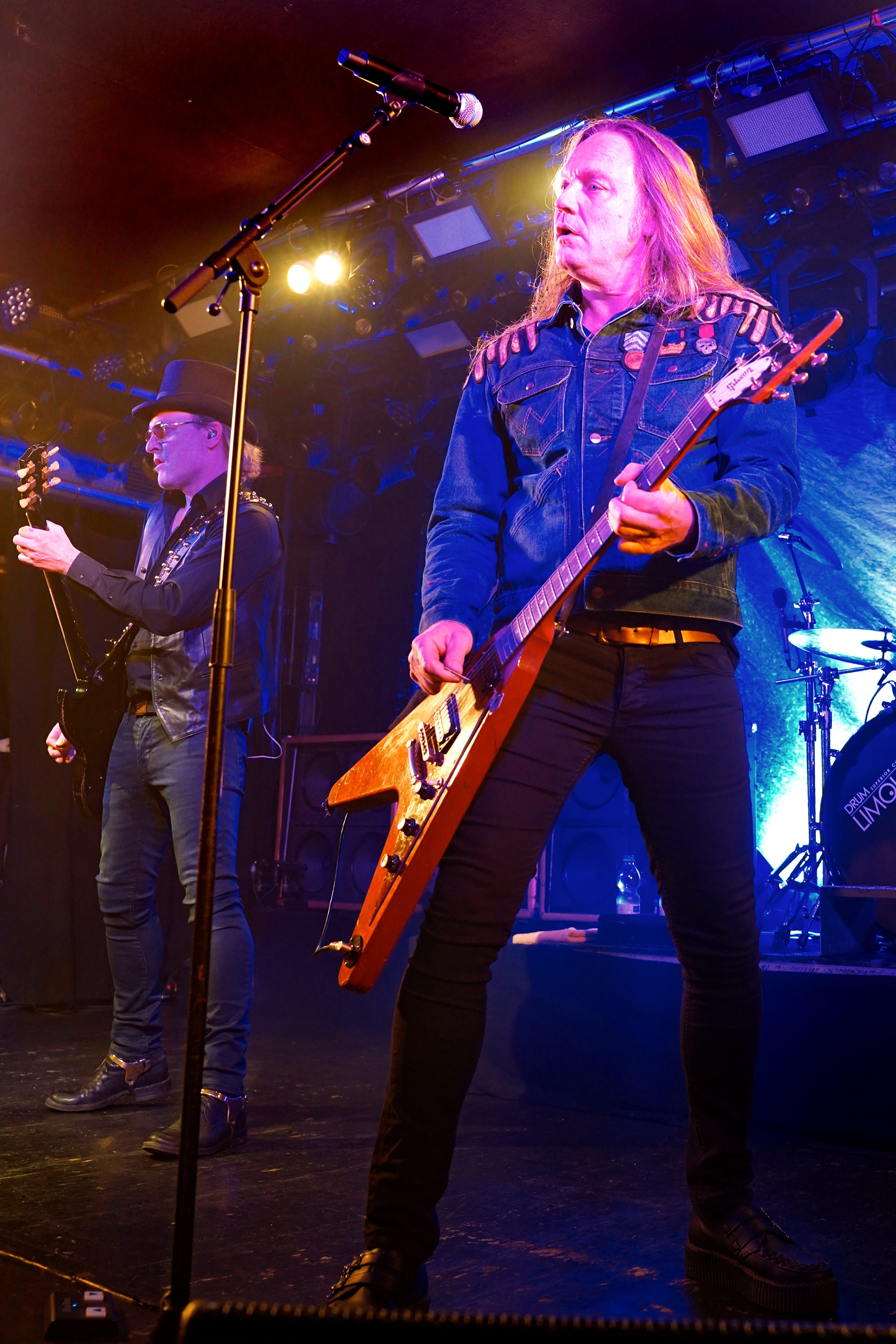 D.A.D. ist im Gegensatz zum Rock Hard ohne große Bühne, ohne beleuchteten Stierschädel und ohne aufsteigendes Tortenschlagzeug unterwegs. Eine verschwitzte, heiße, auf das Essenzielle fokussierte Live-Show ist angesagt, und genau das bekommen die Aschaffenburger auch geboten. Intensiv ist das richtige Wort, Band und Publikum verschmelzen quasi wie zwei Kerzen, die zusammenstehen, zu einer leuchtenden Masse und auch die zunehmende Hitze im Colos-Saal passt wunderbar zu diesem Bild. Hot damned waren dann doch eher D.A.D. Ich feierte Jesper Binzer charmante dänisch-deutsche Kauderwelsch-Ansagen bereits beim Rock Hard, und ich muss gestehen, das nutzt sich ab, wenn es keine Überraschung mehr ist. Das kann der Gute auf Dauer nicht als Show-Element nutzen, sonst verliert es seine "Herzigkeit". Doch noch funktioniert es wunderbar im Colos-Saal. Bruderherz und Gitarrist Jacob Binzer spielt sich zuweilen in Trance, gerade bei seinen Soli leuchtet er und wirkt zum Teil entrückt. Das ist schön zu beobachten und erzielt seine Wirkung. Der Applaus, die Stimmung, das laute Mitsingen der Refrains, Aschaffenburg war heute Abend Teil von D.A.D.