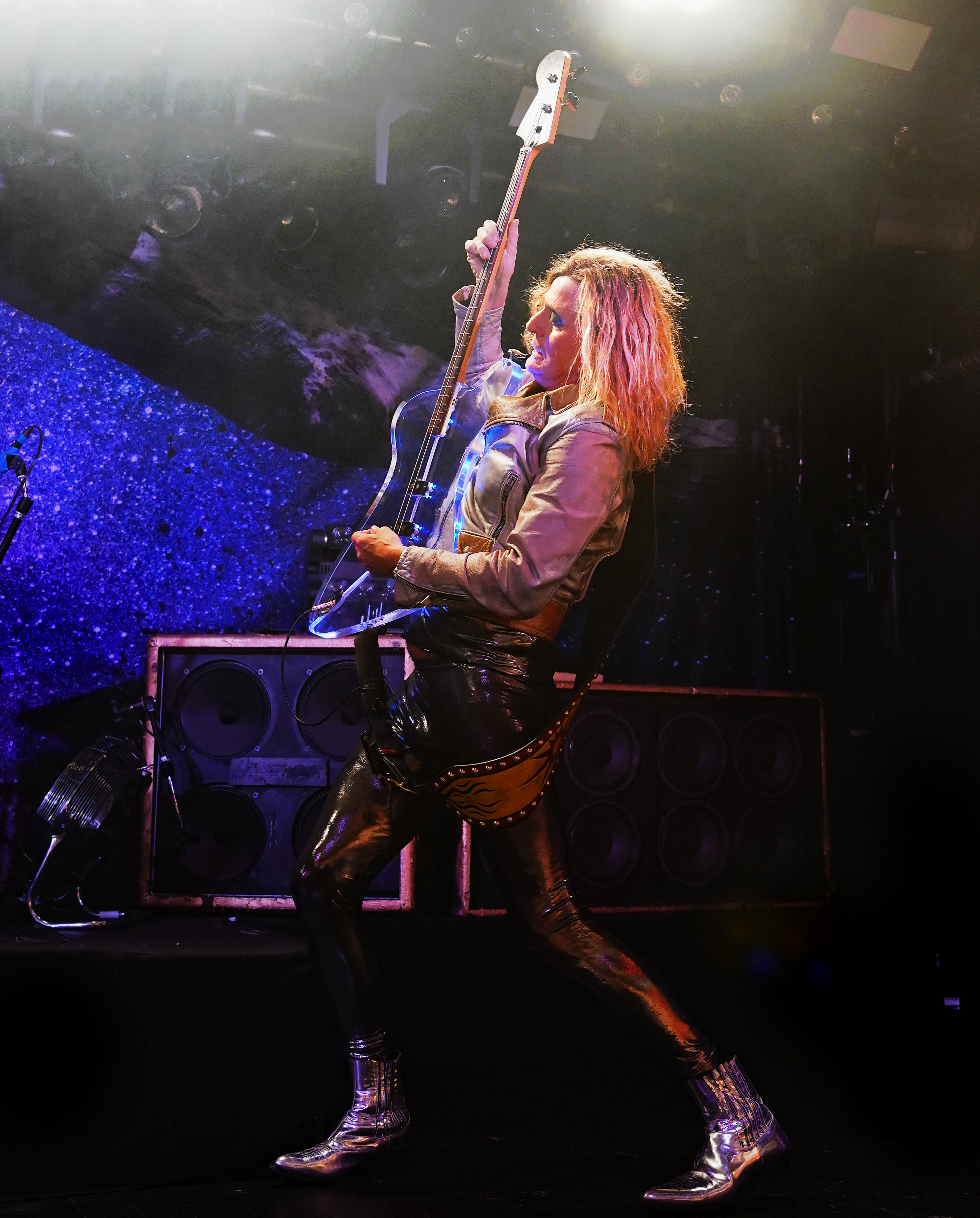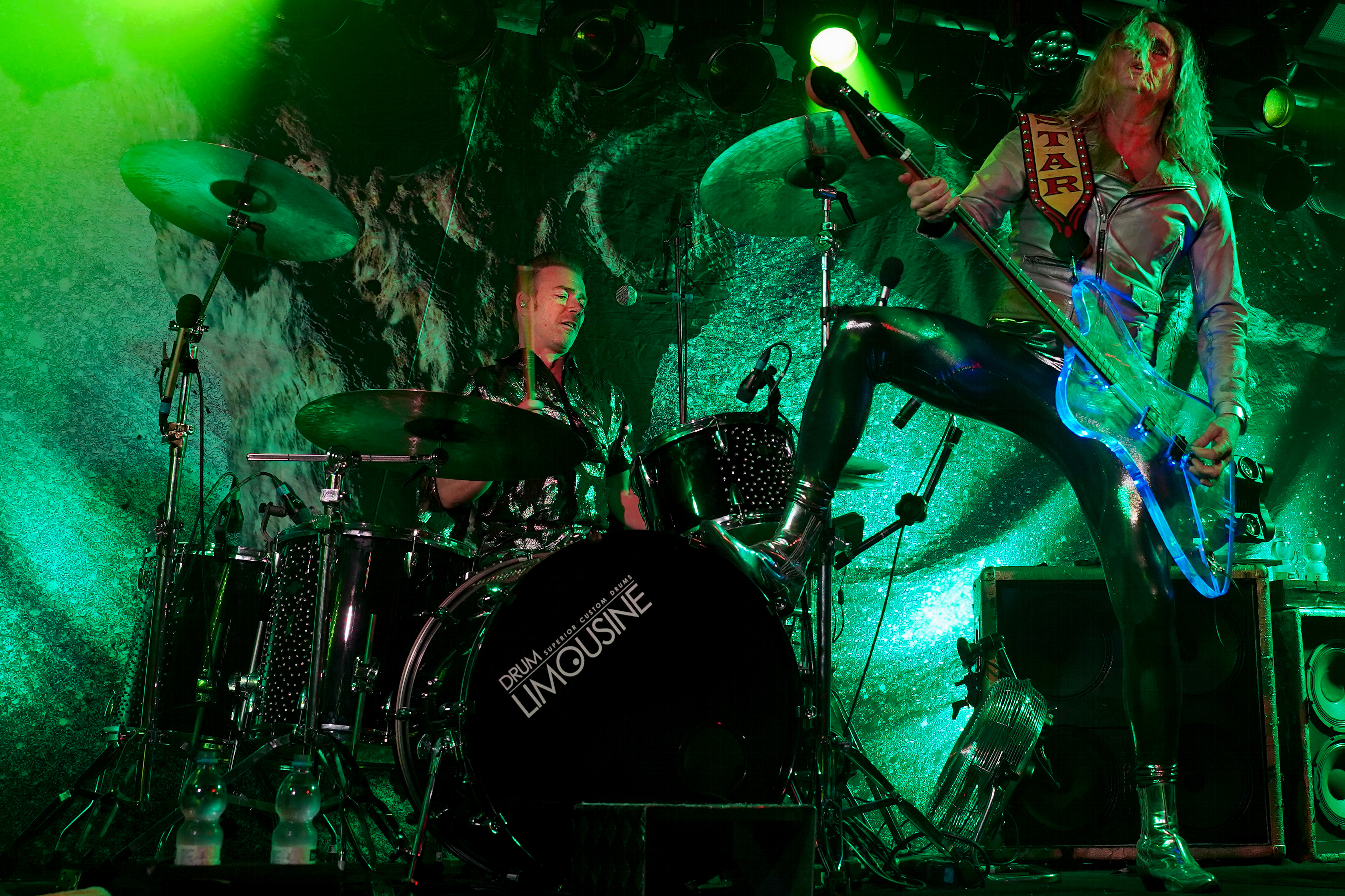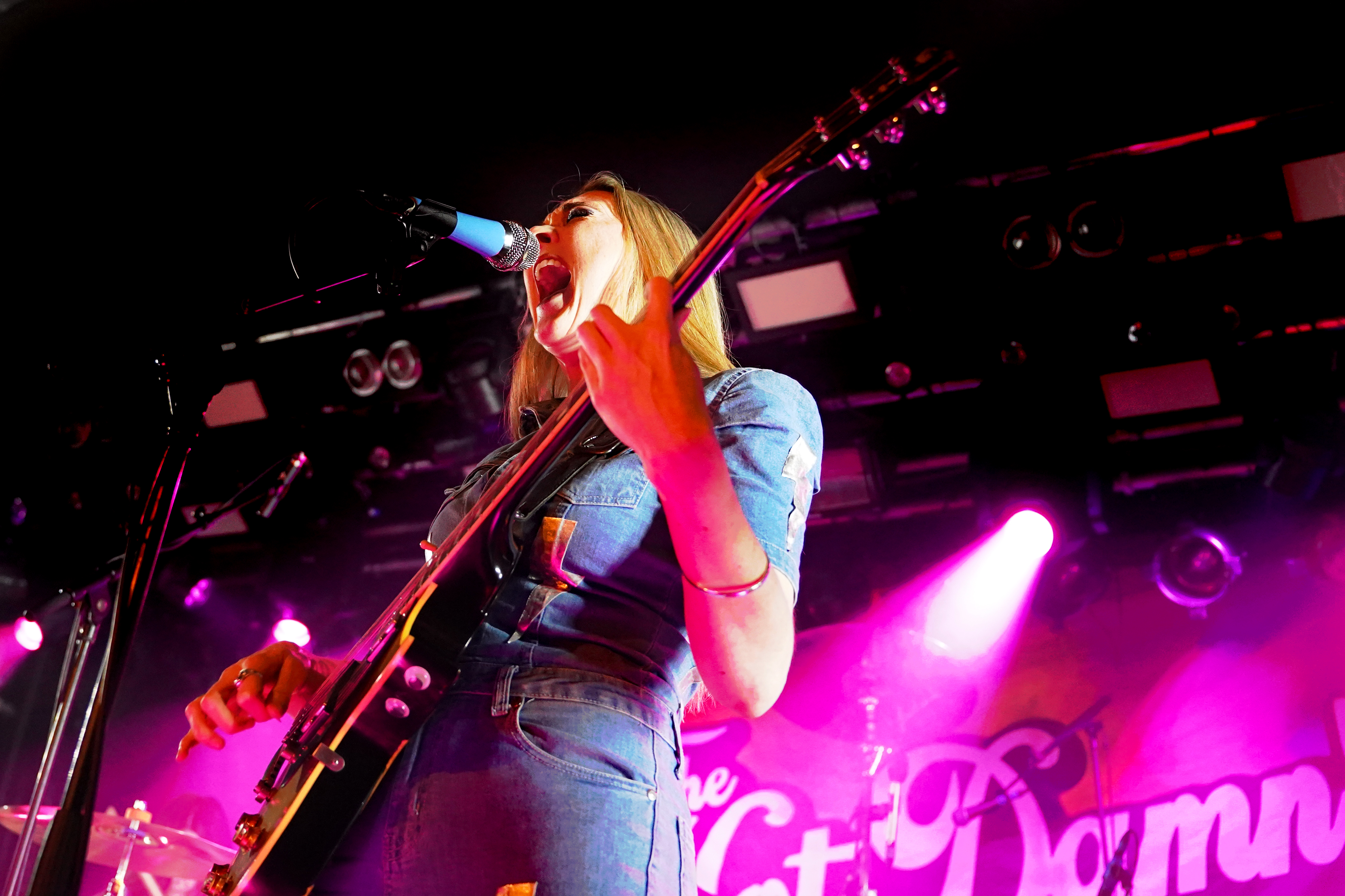 Das kann mich aber alles nicht aufhalten. Pünktlich um 20h, eingeleitet mit einer recht poppigen Keyboard-Melodie, entern die Mädels von THE HOT DAMN die Bühne. Der zu Beginn sehr basslastige Sound stört die Performance nicht wirklich. Handwerklich sind die Damen solide unterwegs und visuell mehr als ansehnlich. Der musikalische Inhalt hat einen leicht punkigen Einschlag, die Attitüde der Band passt gut zum Hauptact. Auf Strecke bietet der britische Vierer dann doch etwas zu wenig Abwechslung. Nach zwei, drei Nummern relativiert sich die entfachte anfängliche Spannung und Energie und mehr als höflicher und wohlwollender Applaus kommt auch beim Publikum nicht raus.