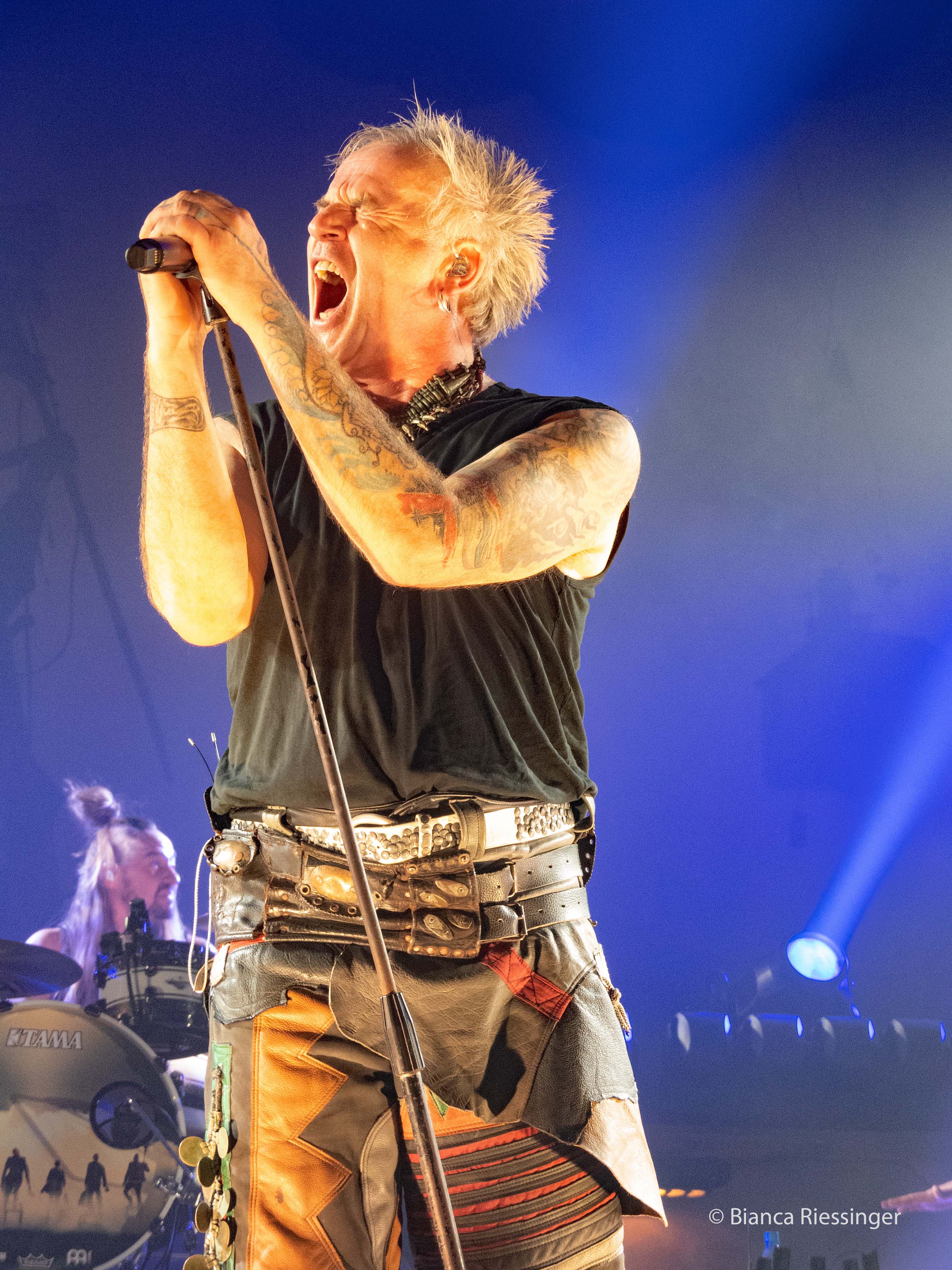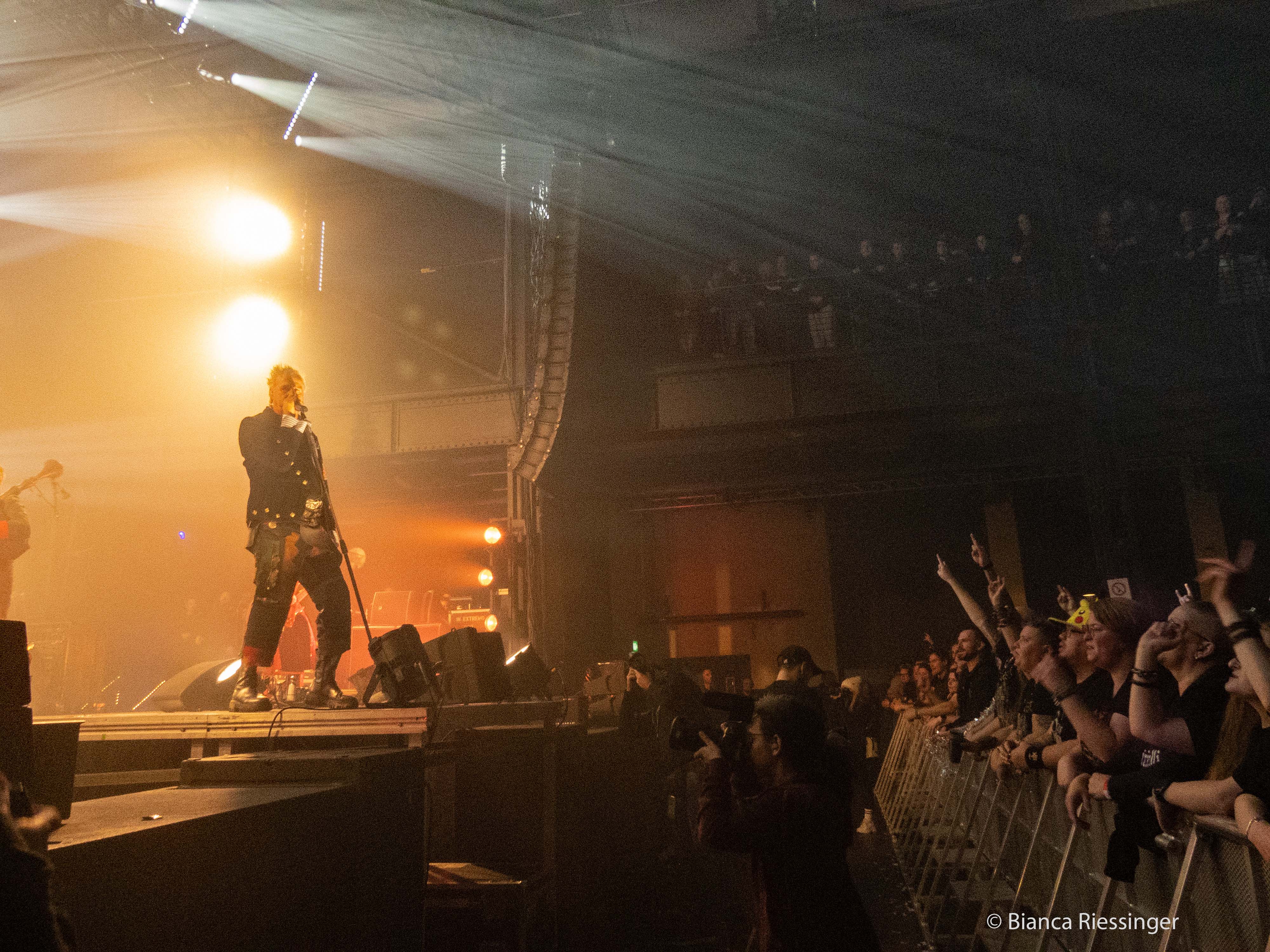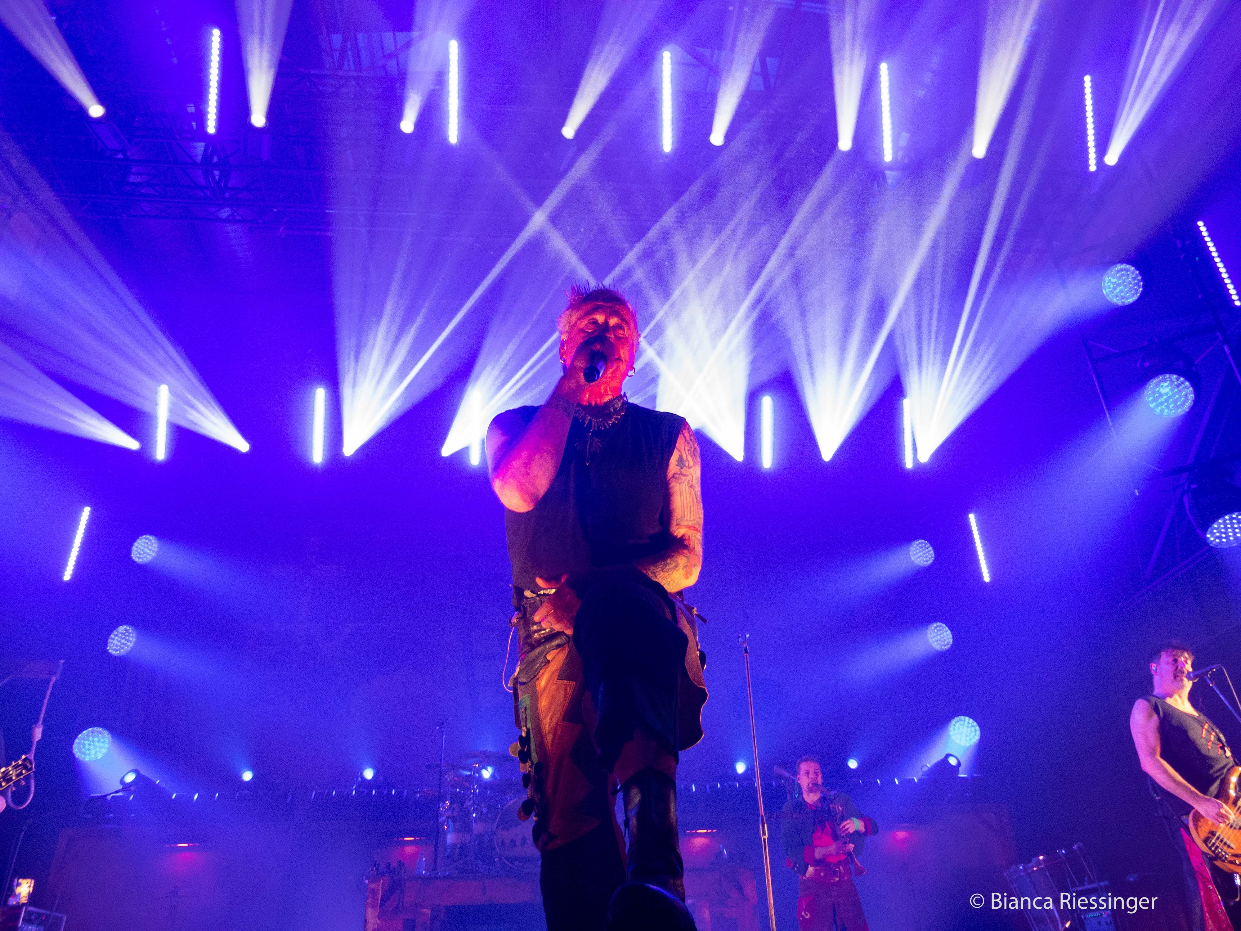 Mittlerweile ging es auf 22 Uhr zu, sowohl der Innenraum als auch die Emporen des Palladiums waren gut gefüllt und schließlich war es so weit. Buchstäblich mit einem (pyrotechnischen) Knall, damit auch ja keiner Gefahr laufen konnte, es nicht mitzubekommen, betraten die Headliner des Abends die Bühne und eröffneten mit „Olafur“ vom neuen Album „Wolkenschieber“ das Set. Nach diesem stimmungsvollen Auftakt ging es mit Vollgas weiter: „Spielmannsfluch“, „Nur Ihr Allein, „Vollmond“ – ein Hit jagte den nächsten. Doch neben bewährten Klassikern war auch für neues Material gesorgt, schließlich wollten die Songs vom aktuellen Album auch live vorgestellt werden. Neben dem bereits erwähnten „Olafur“ waren hier mit „Weckt Die Toten“, „Unser Lied“, dem Titeltrack „Wolkenschieber“, „Blutmond“ sowie „Katzengold“ mehrheitlich flotte und druckvolle, mit „Feine Seele“ aber auch leisere Töne am Start. Dazwischen wurden Dauerbrenner wie „Küss Mich“ und „Rasend Herz“ frenetisch gefeiert.