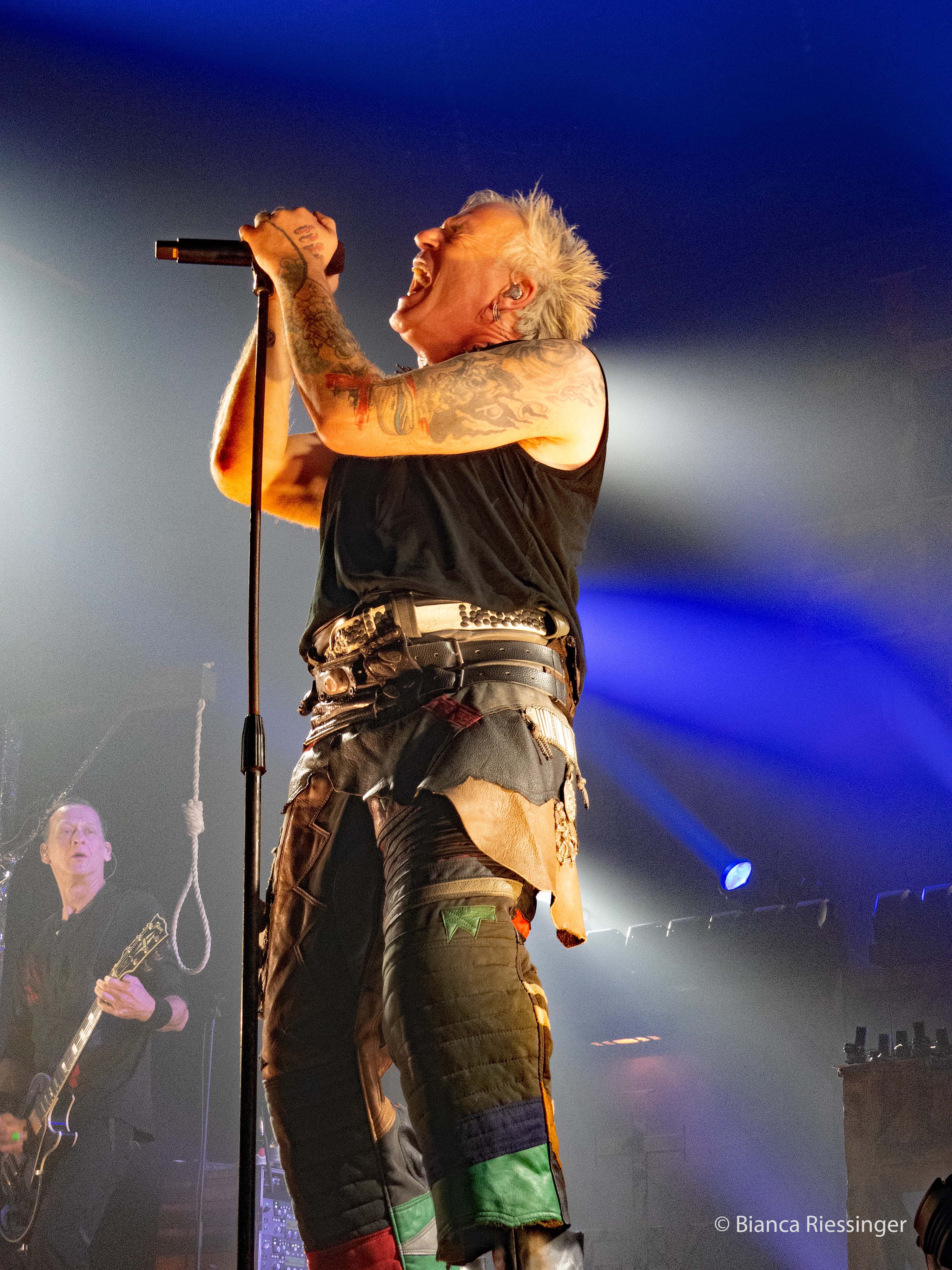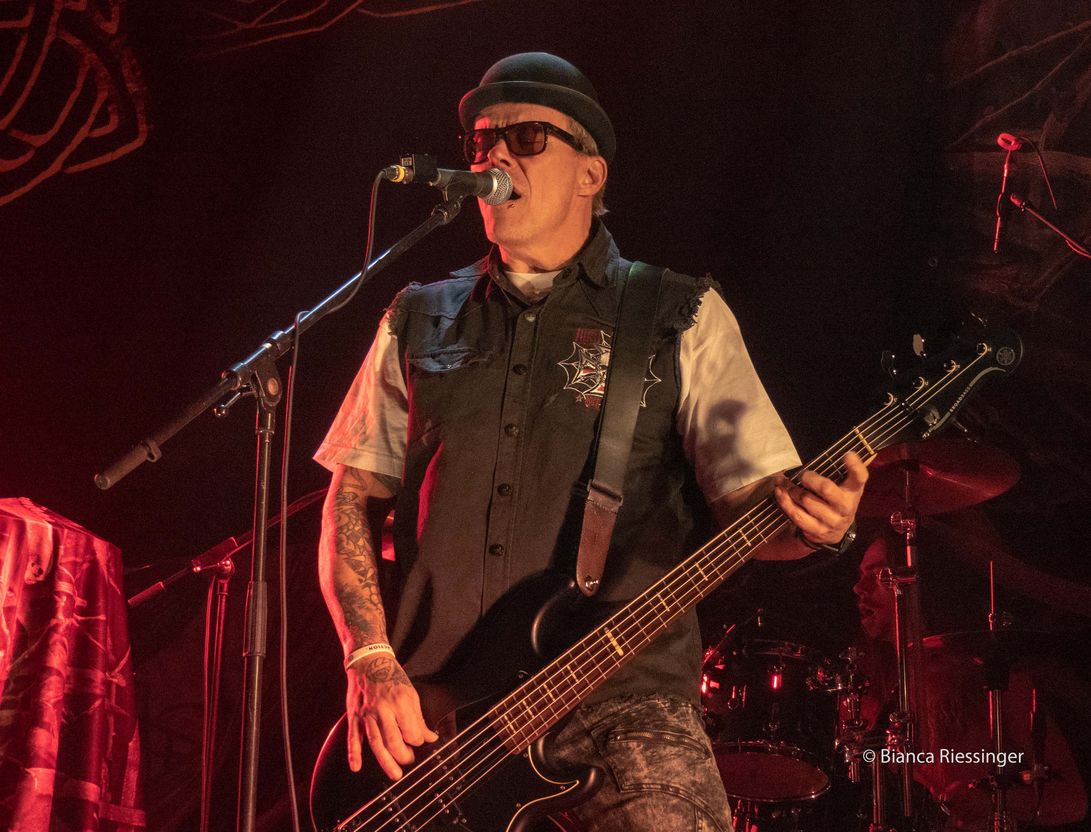 Im Innenraum des Palladiums selbst schienen die Reihen zunächst noch erstaunlich locker gefüllt, was sich aber schon mit Beginn des Auftritts von RAUHBEIN änderte. Diese legten mit dem selbstbetitelten Opener los und lockten damit das Publikum von Bar, Merchandising-Stand und Raucherbereich rasch weg zur Bühne, um dann mit „Adrenalin" und „Die Welle" weiter Gas zu geben. Dass die fröhlich-rau(h)beinige Mischung gut ankam, belegten nicht zuletzt Rufe wie „Ich will ein Bier von dir!" aus der Menge. Die Band gelobte dafür, noch einmal ihr Bestes zu geben: „Heute ist der letzte Tag der Tour, anstrengend, aber geil war's- wir sind zwar echt am Ende, aber ihr kriegt den ganzen Rest von uns!".