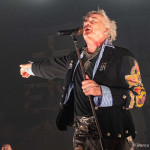 Dass der Tourabschluss zum Jahresende nicht zum ersten Mal in Köln stattfand, war sicher schon manchem Fan aufgefallen, Sänger Micha Rhein aka Das Letzte Einhorn lieferte auch breit grinsend die Erklärung dafür: „Wir haben Köln ja nicht ganz zufällig als Tourabschluss gewählt. Ich bin von hier in 20 Minuten zuhause – die anderen müssen noch nach Berlin. Haha!“ Doch das letzte Konzert sollte auch für IN EXTREMO noch die eine oder andere Überraschung mit sich bringen: so wurde die Bühne während „Störtebeker“ plötzlich von Sänger Henry M. Rauhbein von RAUHBEIN auf dem Rücken eines aufblasbaren Einhorns geentert, der fröhlich und zum großen Erstaunen von sowohl Publikum als auch Band über die Bühne galoppierte. Das Letzte Einhorn kommentierte im Anschluss: „RAUHBEIN hatten uns eine Überraschung angekündigt, weil es das letzte Konzert der Tour ist, aber was sie machen wollen, haben sie nicht verraten. Wir wussten das jetzt also auch nicht. Aber naja, ihr hier ihn Köln kennt sowas ja – Karneval, oder?“ Das anschließende „Liam“ sah erneut einen Gast von RAUHBEIN auf der Bühne, diesmal aber einen geplanten in Gestalt von Geiger Justin Ciuché, der dem Song das charakteristische irische Flair verlieh. Allerdings kam auch hier das RAUHBEINsche Aufblaseinhorn noch einmal zu einer Ehrenrunde vorbeigaloppiert. IN EXTREMO grinsten derweil über die Eskapaden der Kollegen und machten weiter. „Gaukler“, „Ai Vis A Lo Lop“, „Belladonna“ – Atempausen gab es kaum. Als die Spielleute nach der Hymne „Frei Zu Sein“, die die Meute vor der Bühne aus voller Kehle mitschmetterte, das erste Mal abgingen, standen prompt wieder RAUHBEIN parat, um die bereits laut werdenden Zugaberufe zu unterstützen: diesmal kam die Band in Bademänteln anmarschiert, um dem Publikum in Stripper-Manier ihre Kehrseite in Boxershorts und darüber mit Herzchen und Liebesbotschaft versehene T-Shirts zu präsentieren, bevor sie verlauten ließen: „Jetzt lasst uns die nochmal so richtig feiern! Es gibt da ein Lied, das könnt ihr alle komplett auswendig – los!“ Und so stimmte die Menge, angefeuert von RAUHBEIN, inbrünstig (und im einen oder anderen Fall sicherlich auch thematisch passend bierselig) „Sternhagelvoll“ an. Die Rufe wurden erhört und es dauerte nicht lange, da waren IN EXTREMO auch schon wieder da und stimmten mit ein. Es folgten noch „Feuertaufe“ und „Pikse Palve“, bevor sich die Band nach knapp zwei Stunden Spielzeit dann endgültig verabschiedete. Beim Rausschmeißer „Pikse Palve“ wurde es voll auf der Bühne, da sich auch die Musiker von RAUHBEIN und KORPIKLAANI zum Feiern noch einmal zu ihren Gastgeber-Kollegen gesellten, und allesamt wurden sie nach dem Verklingen der letzten Töne im großen Stil bejubelt – sowohl von den jeweiligen Mitmusikern als auch vom Publikum, das durchklatschte und johlte, bis die Bühne sich schließlich leerte und der bunte Reigen ein Ende hatte. So kann man den Jahresabschluss begehen – auf das nächste Jahr!