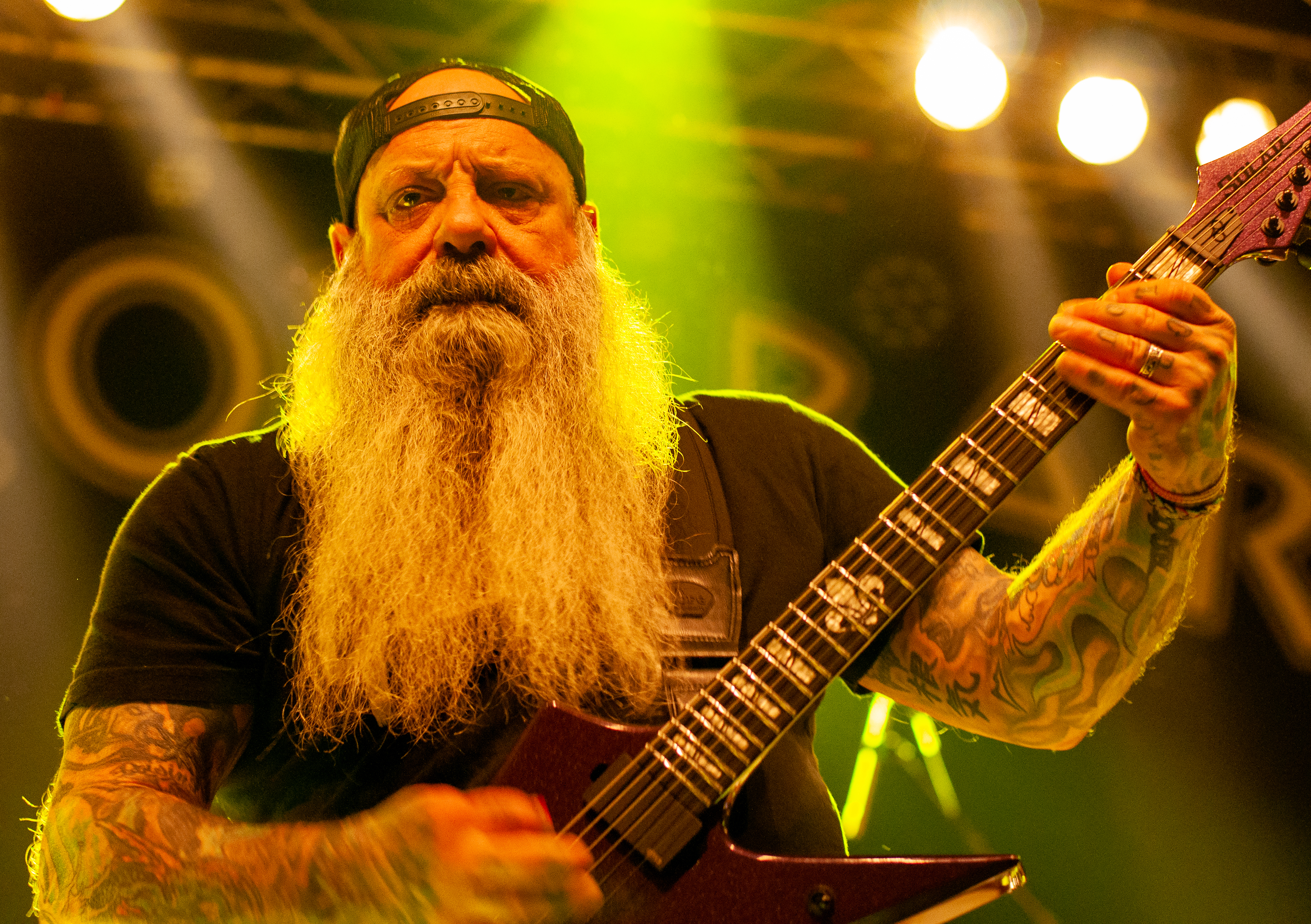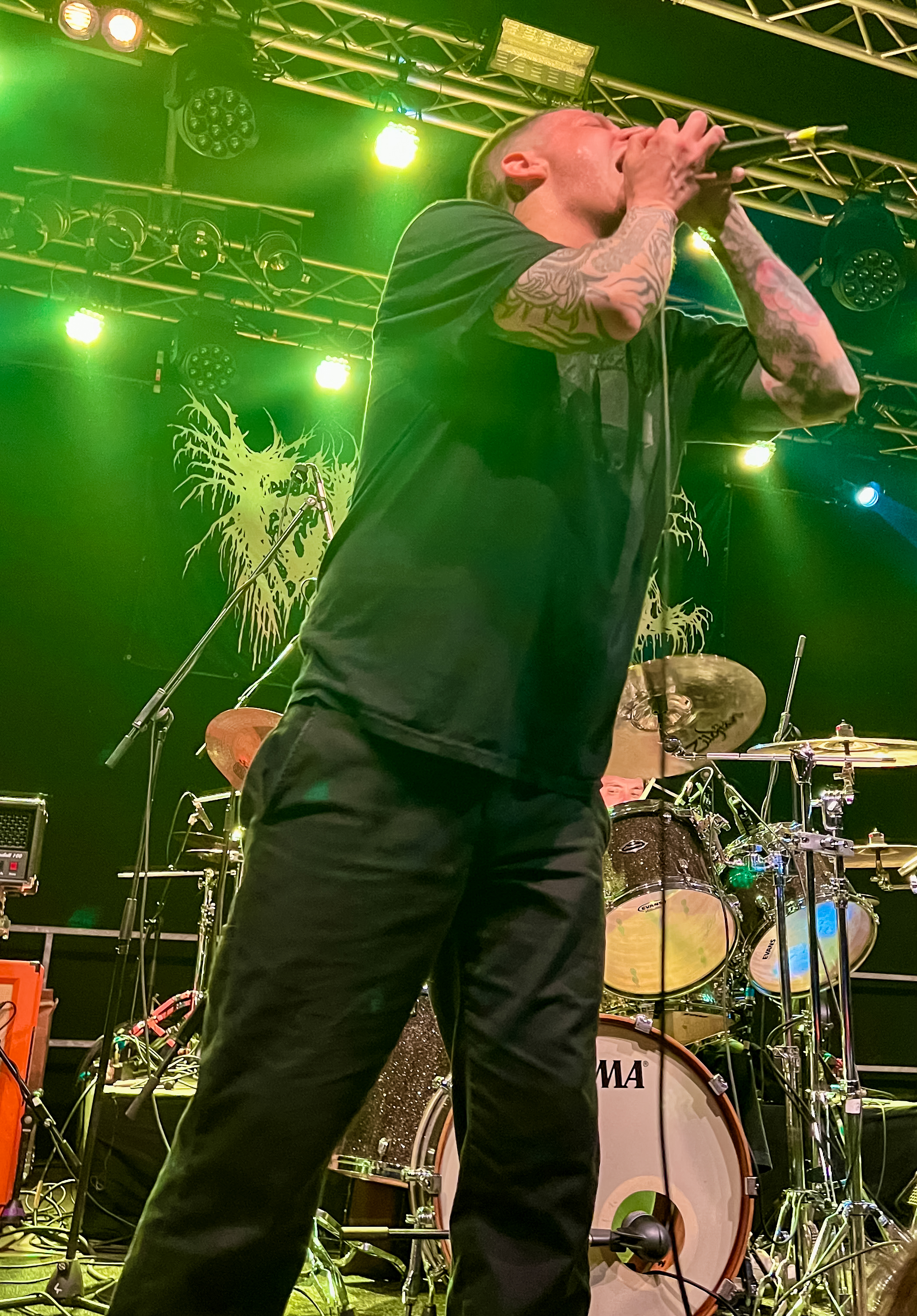 1981 starteten NAPALM DEATH ihren mitunter primitiven punkigen Grindcore-Feldzug mit deutlicher Death Metal-Pionierarbeit. Das Album „Order of the Leech“ erschien im Jahr 2002 und wurde aktuell 2024 wiederveröffentlicht. Die Jungs zocken heute Abend beliebte Klassiker wie „Silence Is Deafening“, „When All Is Said and Done“ und „Unchallenged Hate“, bringen aber auch Überraschungen wie „Lowpoint“ vom 1997er Album „Inside the Torn Apart“ und „Prison Without Walls“ (1987). Das Publikum geht gut mit und zeigt sich bewegungsfreudig. Shane Embury rackert am Bass. Frontmann Mark „Barney“ Greenway hat ordentlich Tinte auf dem Füller und wirbelt wie ein Derwisch umher. (By the way: Der Gute ist dadurch quasi unfotografierbar!) Das markante Sprachrohr betont im feinsten britischen Dialekt „Köln immer gegen Faschismus - fick die AfD!“ Natürlich sind auch der Weltrekord-“Überlängen“-Song „You Suffer“ und das DEAD-KENNEDYS-Cover „Nazi Punks Fuck Off“ mit auf der Setlist.