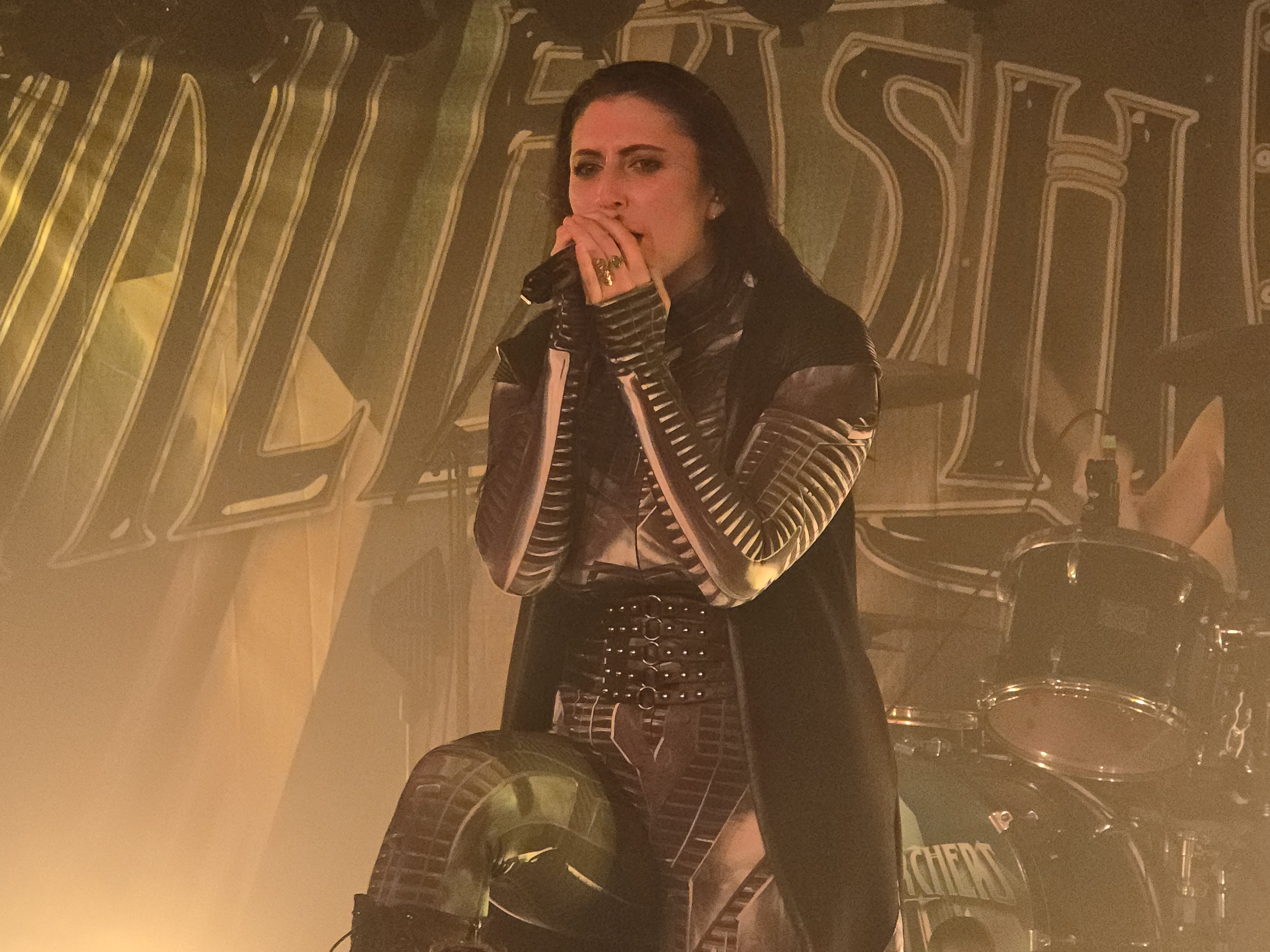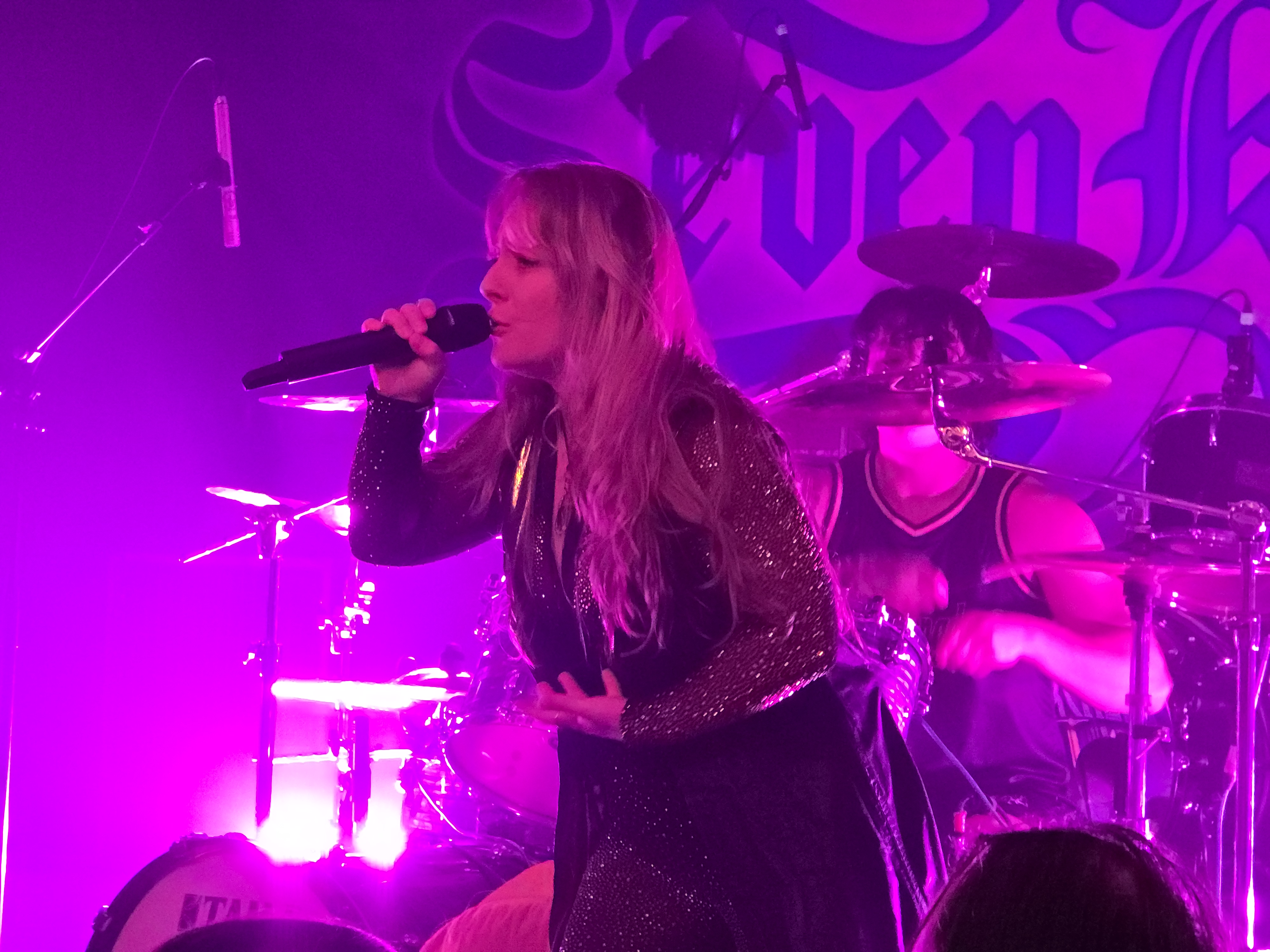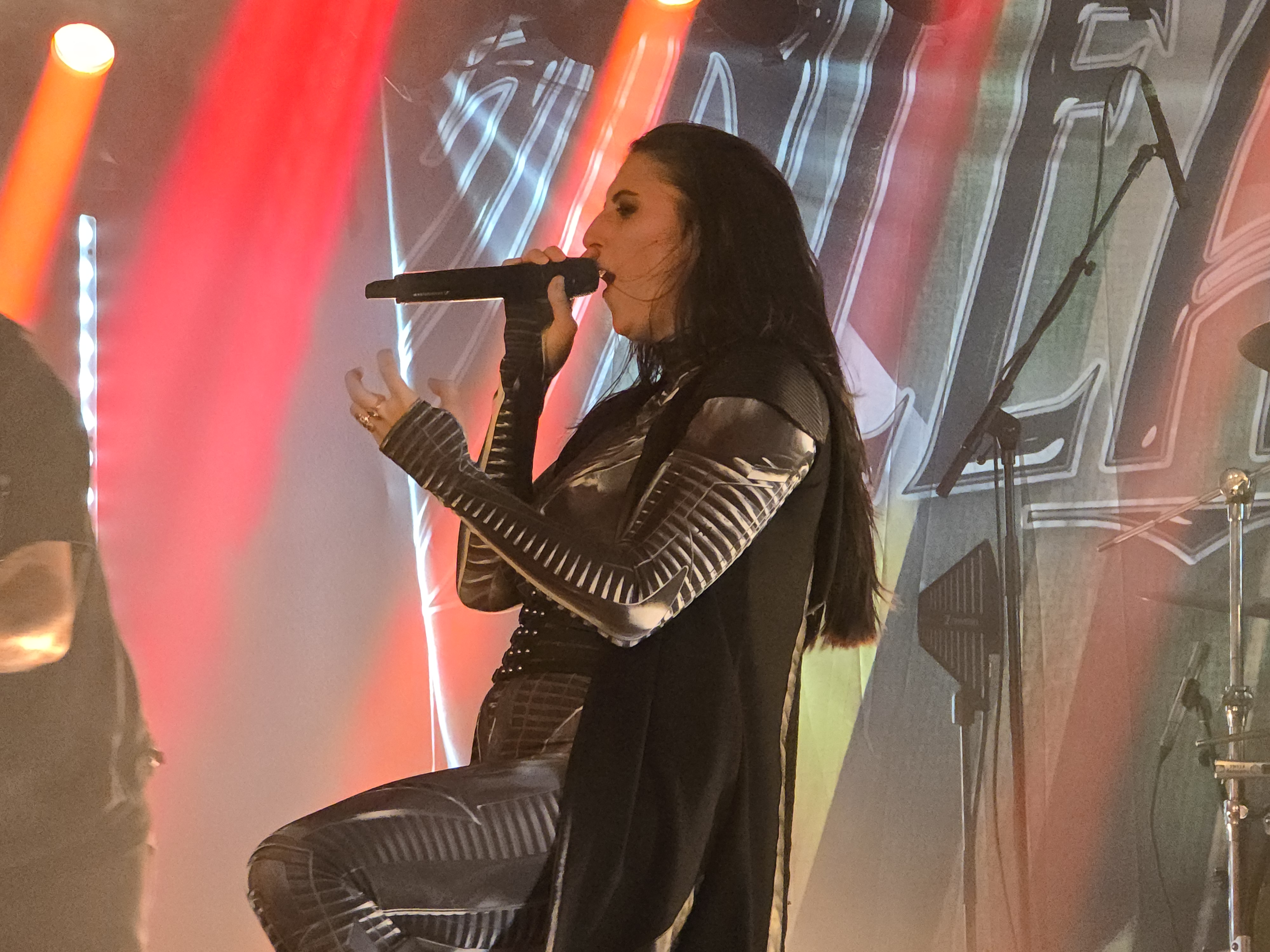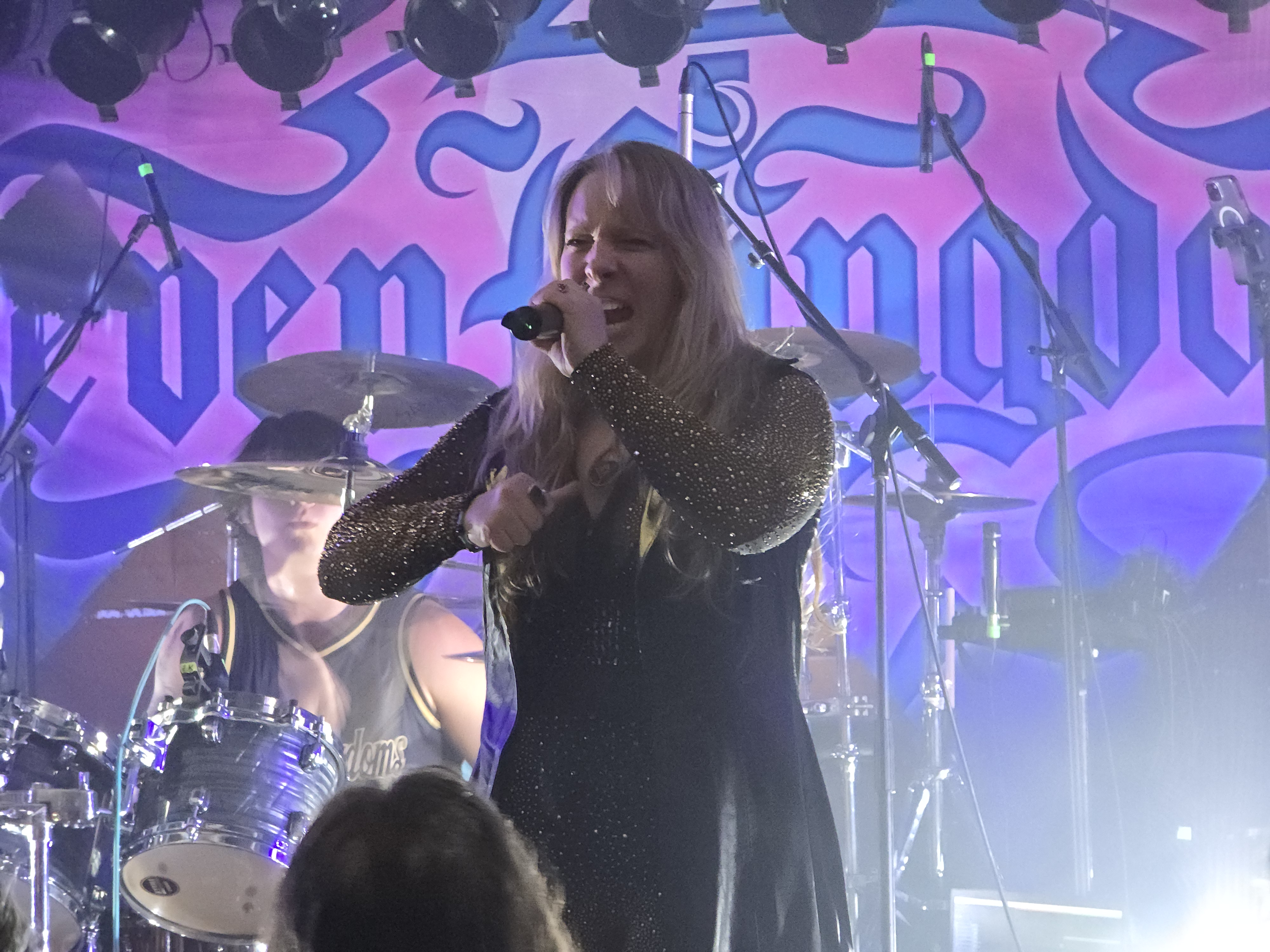 Den Anfang machen die US AmerikanerInnen SEVEN KINGDOMS, die sich in den vergangenen Jahren still und leise von einem Geheimtipp, zu einer echten Konstante im Power Metal Zirkus etabliert haben. Heute stehen vor allem die aktuelle EP „The Square“ und das letzte reguläre Album „Zenith“ im Mittelpunkt. Ergänzt wird der Set von „In The Walls“ vom 2017er Album „Decenium“. Ältere Songs bleiben dieses Mal außen vor. Sängerin Sabrina Valentina weiß mit einer energiegeladenen Performance und astreiner Gesangsleistung zu begeistern. Auch ihre Hintermannschaft legt sich massiv ins Zeug und versprüht so gar nicht die Attitüde einer Vorband. Demzufolge fällt auch der Zuspruch des Publikums äußerst positiv aus und SEVEN KINGDOMS dürften am heutigen Abend einige neue Freunde und Fans gewonnen haben. So geht catchy Up-Tempo Power Metal. Allerdings hat der Rezensent doch noch was zu meckern: ich habe kein Problem mit Backing-Tracks, wenn es um Keys, Chöre oder Orchestrierungen handelt, denn vieles lässt sich im Livekontext schlicht nicht oder nur mit großem Budget reproduzieren, aber die „klassische Metalbesetzung“ möchte ich einfach auf der Bühne sehen und es greift immer mehr um sich, dass auf eine(n) Bassist(in) verzichtet wird. Es sieht nicht nur komisch aus, es klingt auch anders. Was gerade heute wieder im Vergleich mit den anderen beiden Acts deutlich wird. Also tolle Songs, super Performance, aber holt euch bitte einen echten Bassisten und wenn es nur für Liveshows ist.