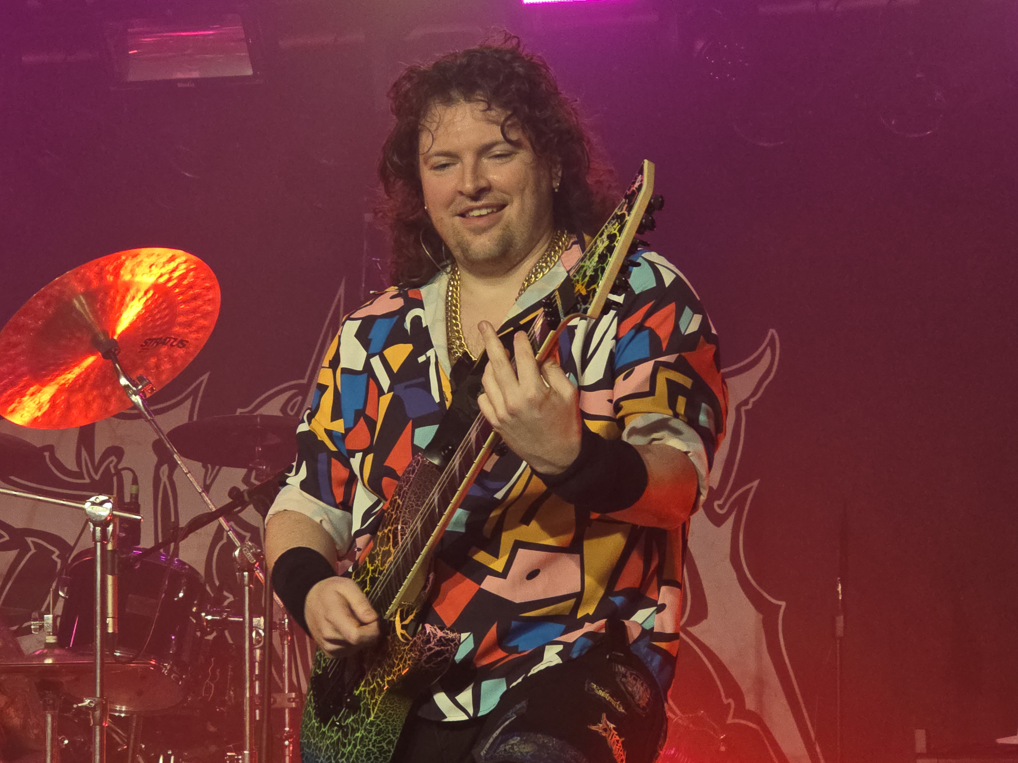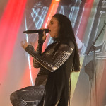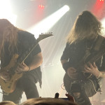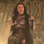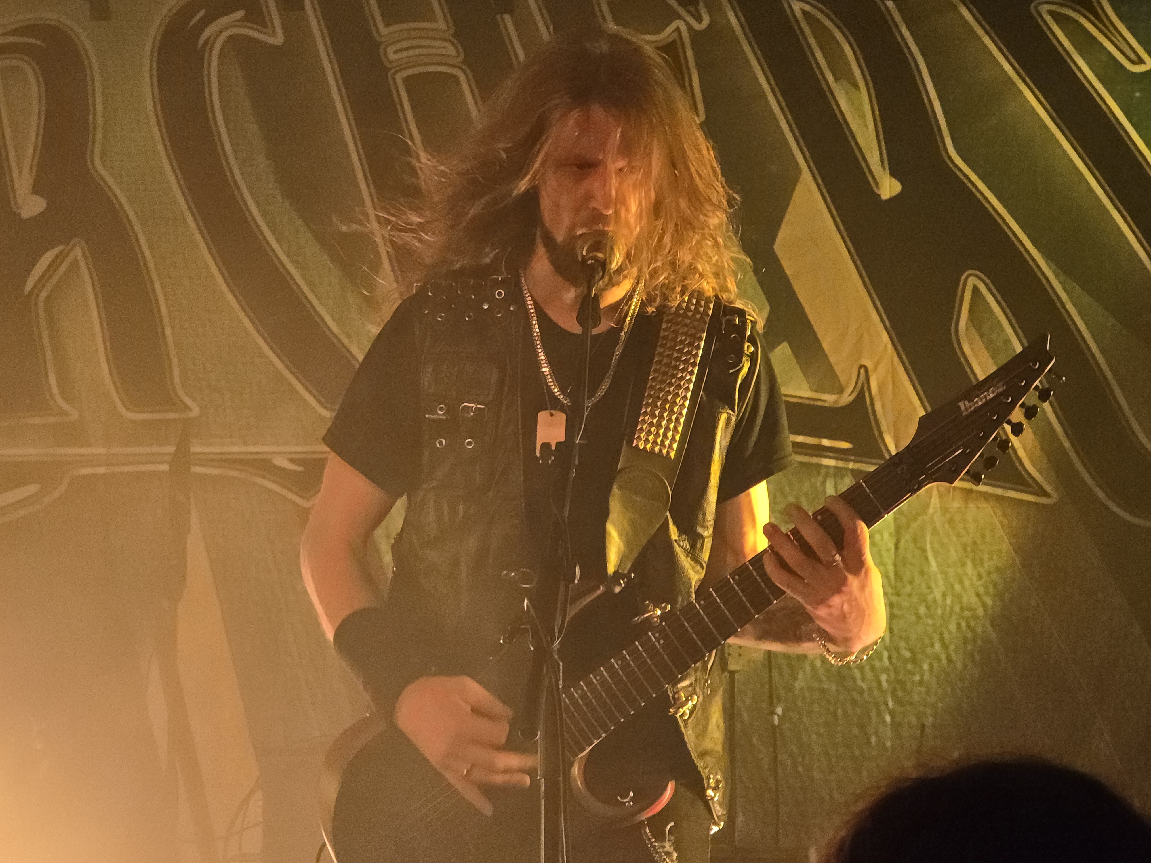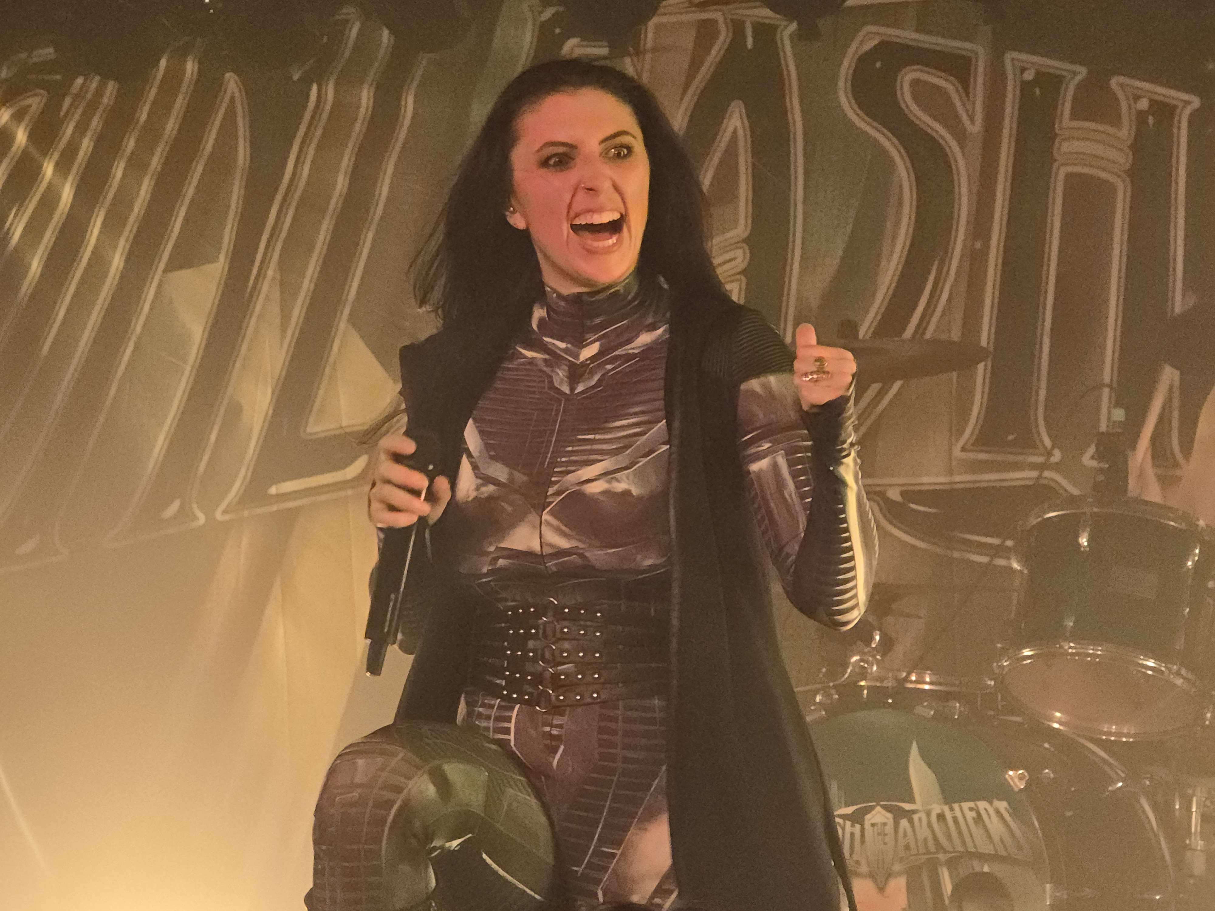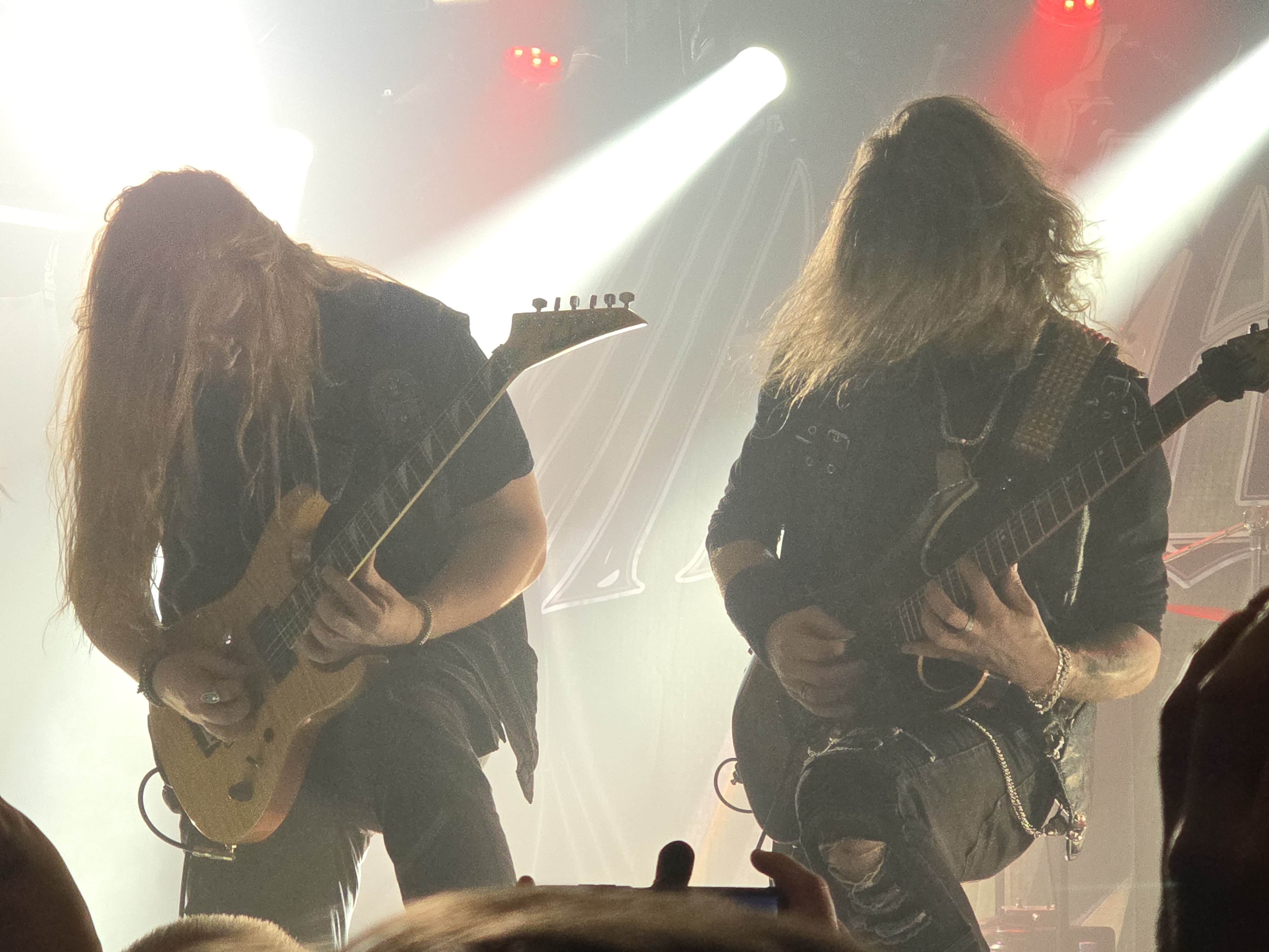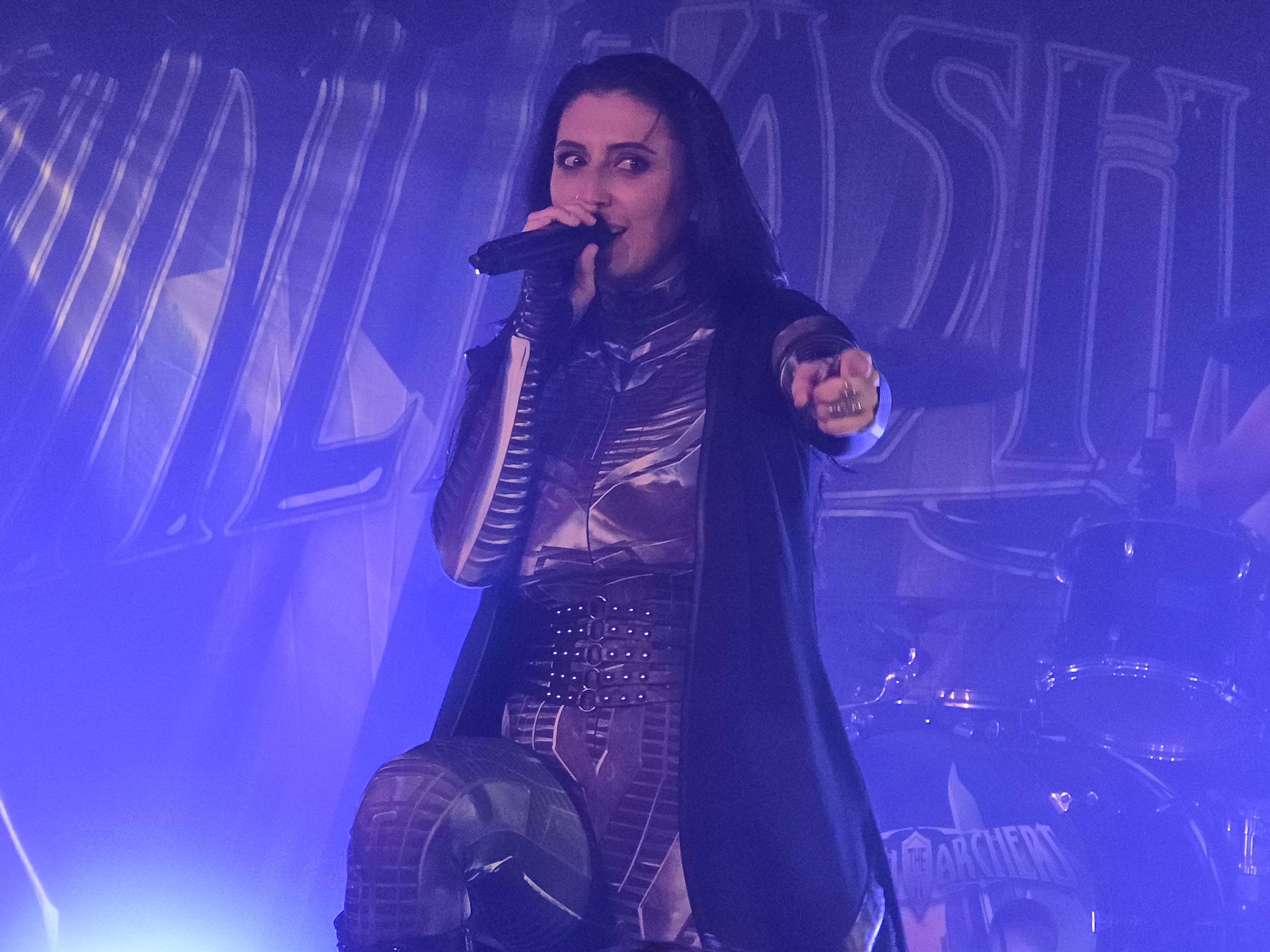 Nun wird es Zeit für die Hauptattraktion des Abends. UNLEASH THE ARCHERS geben sich zum ersten Mal post-pandemisch auf dem alten Kontinent die Ehre und starten mit dem neuen „Ph4/NT0mA“ in ihren Set. Und auch hier fällt sofort die unbändige Spielfreude auf. Auch UNLEASH THE ARCHERS wollen es wissen und werden von den Fans mit offenen Armen empfangen und von einer wahren Welle der Euphorie getragen. Was besonders Wunderstimme Brittney Slays sofort ein breites Grinsen ins Gesicht zaubert. Im Gegensatz zu ihren beiden Supportacts konzentrieren sich UNLEASH THE ARCHERS aber nicht nur auf Material ihrer letzten beiden Alben „Phantoma“ und „Abyss“, sondern geizen auch nicht mit Klassikern wie „Tonight We Ride“, „Apex“ und „Awakening“. Besonders Brittney ist der Mittelpunkt der Show und weiß mit einer sympathischen Performance und exzellentem Gesang zu begeistern. Aber sie zieht sich in den richtigen Momenten auch zurück und überlässt ihren fantastischen Musikern das Rampenlicht, so daß UNLEASH THE ARCHERS als Einheit rüberkommen und mitnichten als One-Woman Show. Das Publikum dankt es mit lautem Applaus und textsicherem Gesang und das nicht nur bei den Refrains. Als nach „Tonight We Ride“ das Licht zum ersten Mal angeht, werden UNLEASH THE ARCHERS lautstark auf die Bühne zurück gebrüllt. Und diese lassen sich nicht lange bitten und entfachen mit dem STAN ROGERS Song „Northwest Passage“ ein wahres Tollhaus. In der ruhigen und sehr emotionalen ersten Hälfte des Songs kann Brittney noch einmal richtig glänzen, bevor dann endgültig der Sack zugemacht wird und sich der Colos-Saal kollektiv in Ekstase singt.