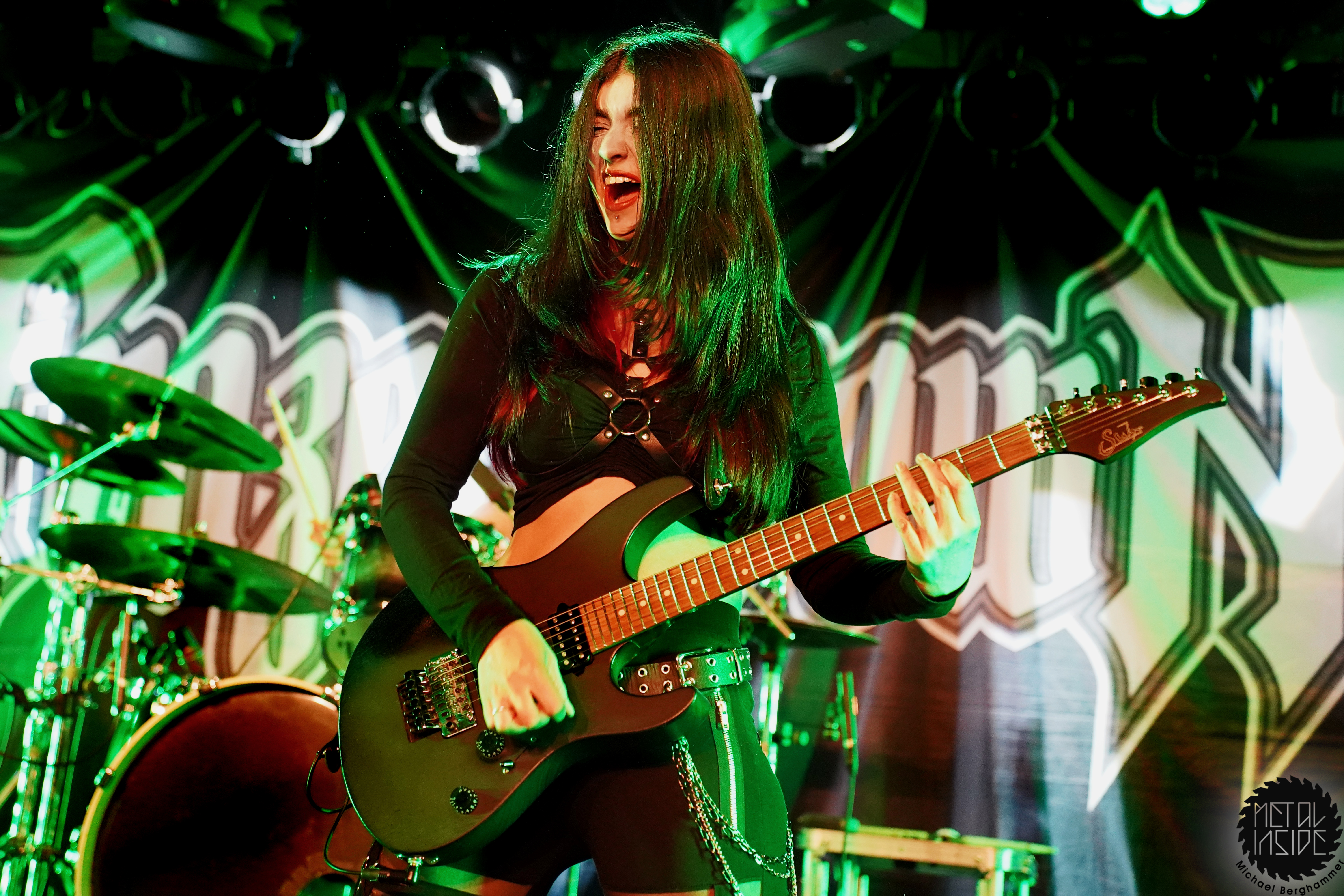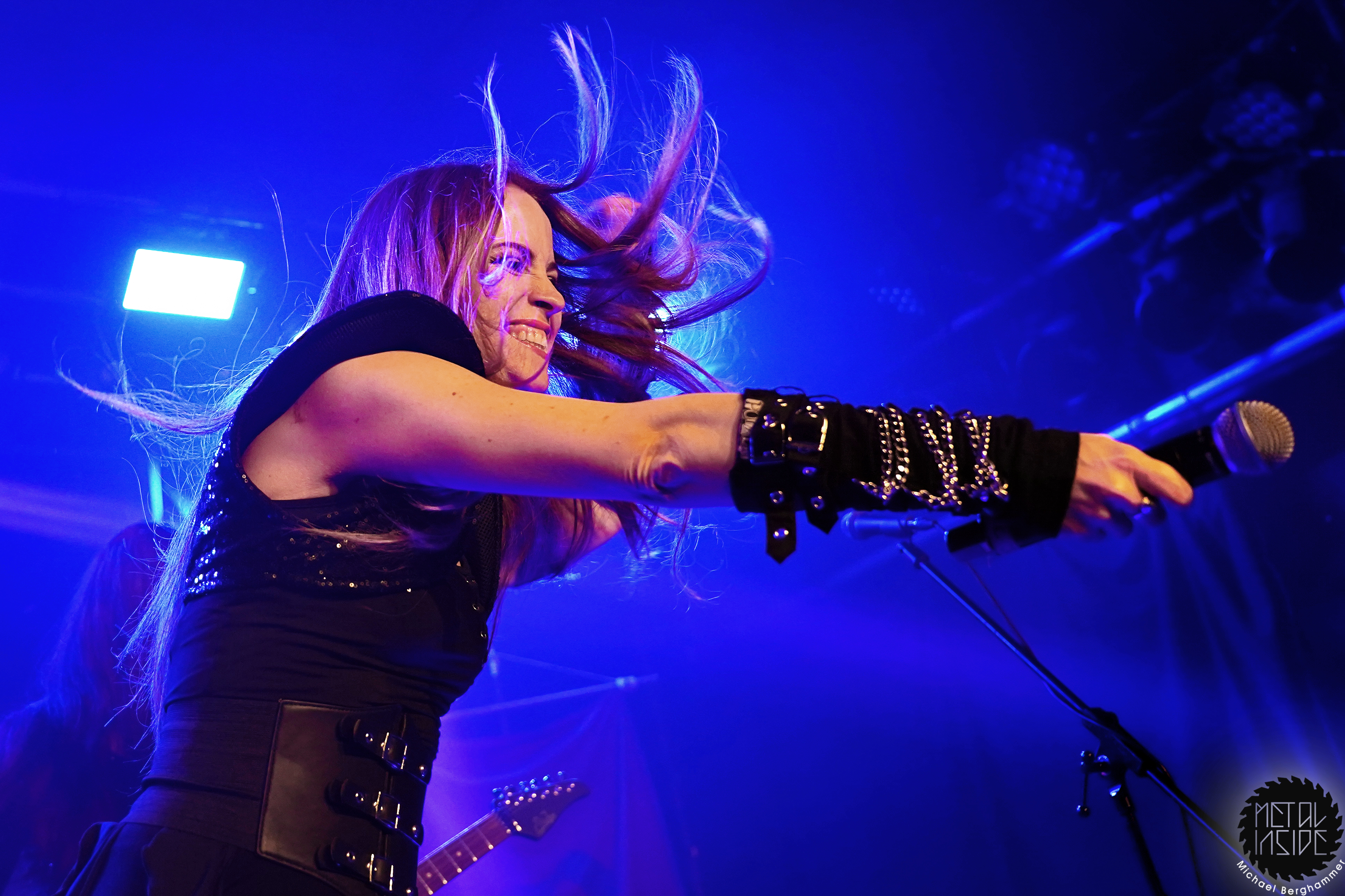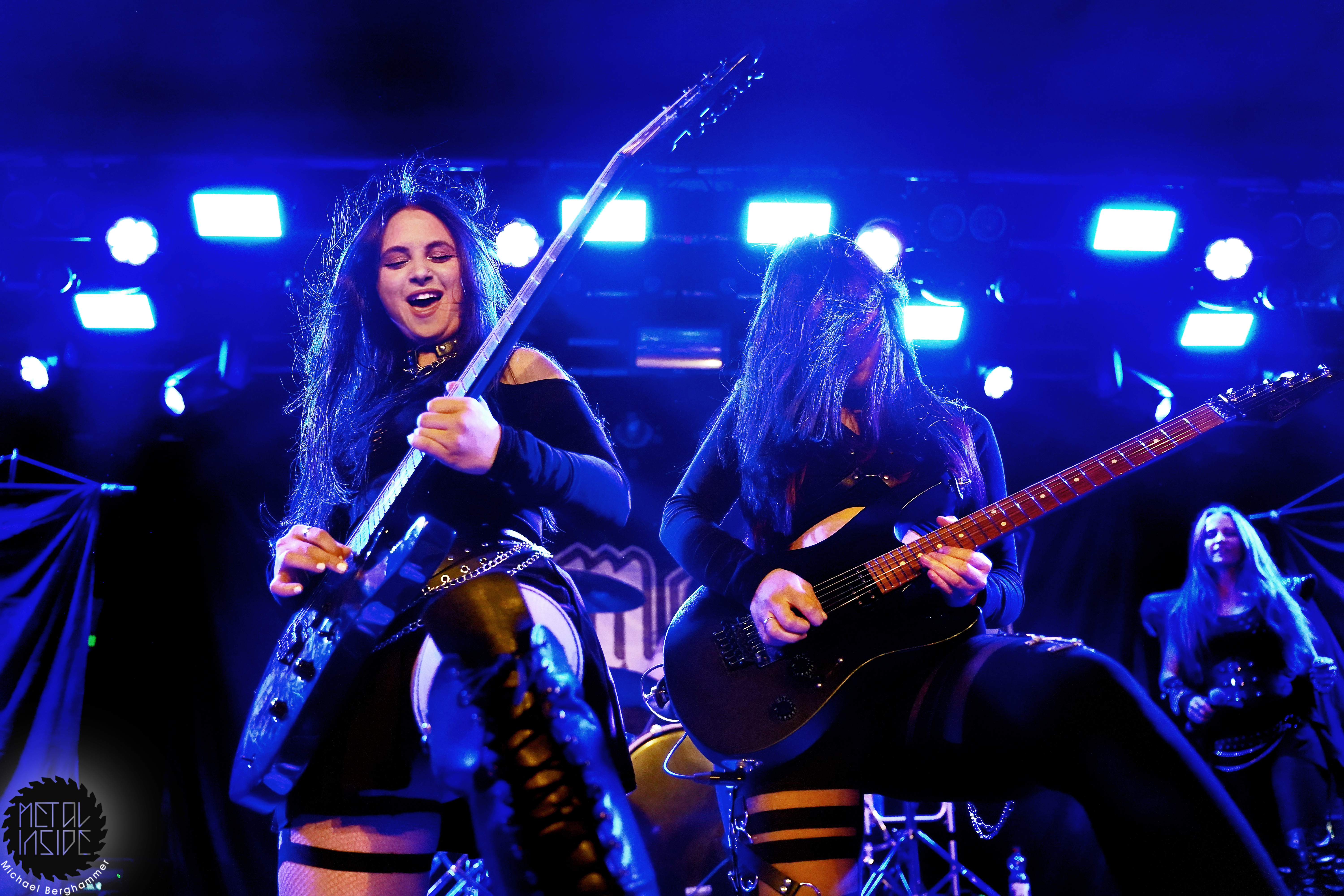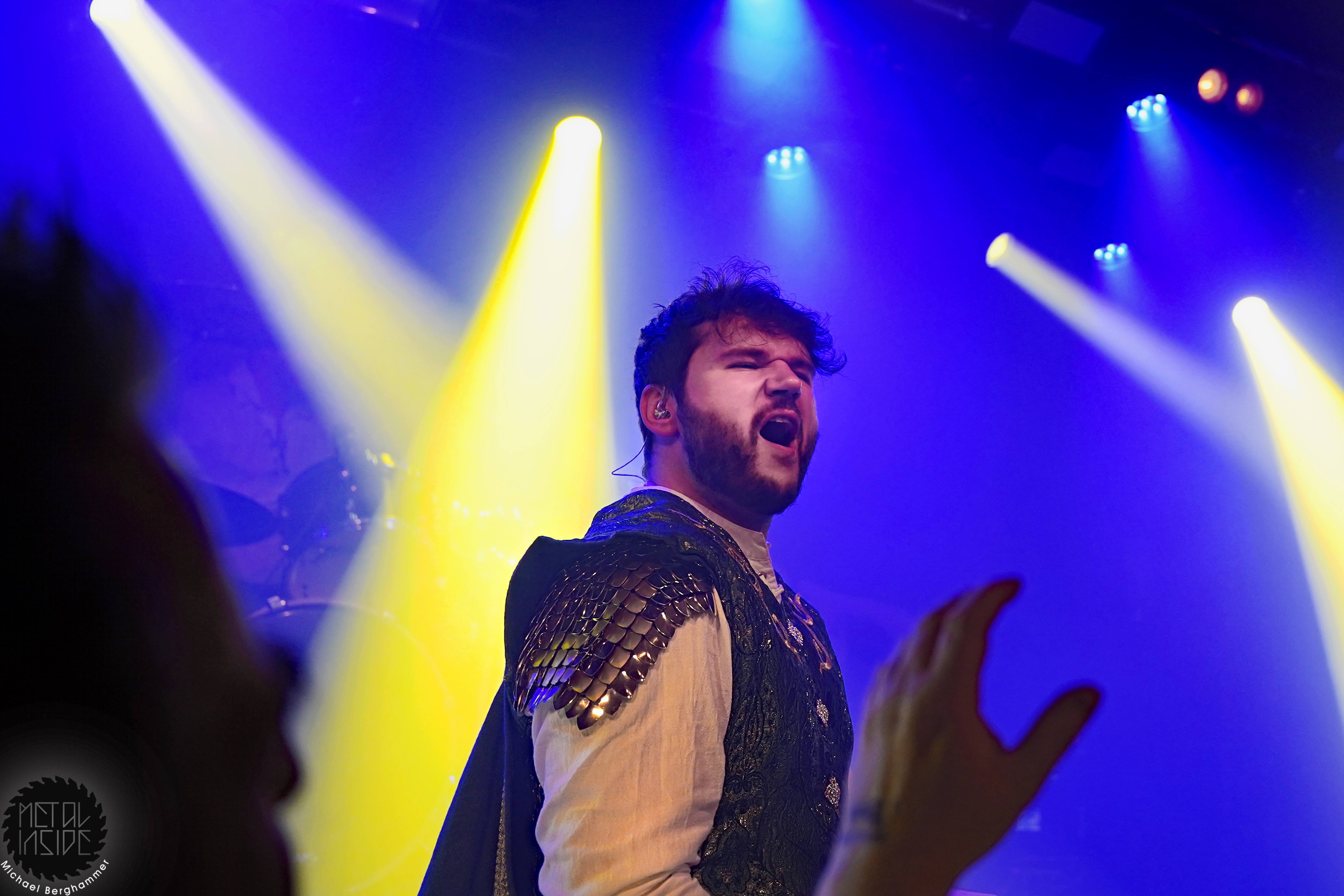 Mit dem Titelstück des aktuellen Albums „War Hearts“ geht’s auch gleich in die Vollen und das zum Sextett angewachsene Ensemble fühlt die Bühne nicht nur physisch aus. Die erst 19jährige neue Gitarristin Alessia Lanzone hat sich schon gut in die Band eingefügt und teilt sich das Rampenlicht fair mit den etablierten Sixtringern Federico Mondelli und Fabiola Bellomo. FROZEN CROWN nutzen den Vorteil ihrer Gitarrenarmee und füllen ihre Songs mit feinen und oft mehrstimmigen Harmonien und Soli. Aber über allem thront Sängerin Jade, die sehr authentisch und sympathisch erzählt, was ihr diese Tour und speziell dieser Auftritt bedeutet und gerade weil die Situation sie sichtlich mitnimmt, glaubt man ihr jedes Wort. Und die meisten anderen Bands hätten zumindest diese eine Show schlicht gecancelled. Meinen tiefsten Respekt dafür, dass sie es trotzdem durchgezogen hat. Weiter Höhepunkte stellen für mich die speedige Hymne „Steel And Gold“ (mit einer weiteren wunderbar chaotischen Ansage über „Metalle und Mineralien“; dieses Mal von Bassist Francesco Zof) und das emotionale „Ice Dragon“ dar. Letzteres wird einem verstorbenen Superfan gewidmet.