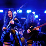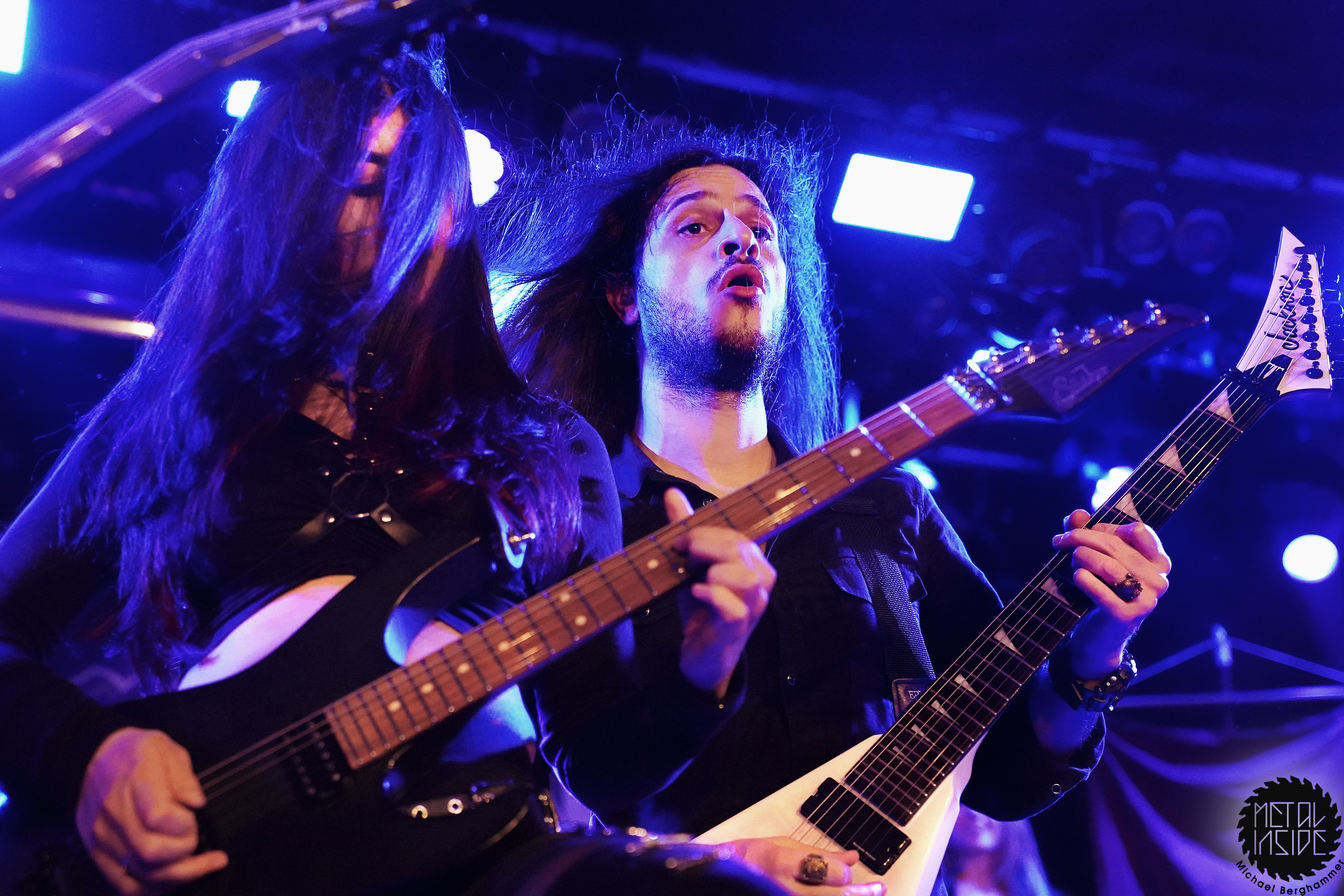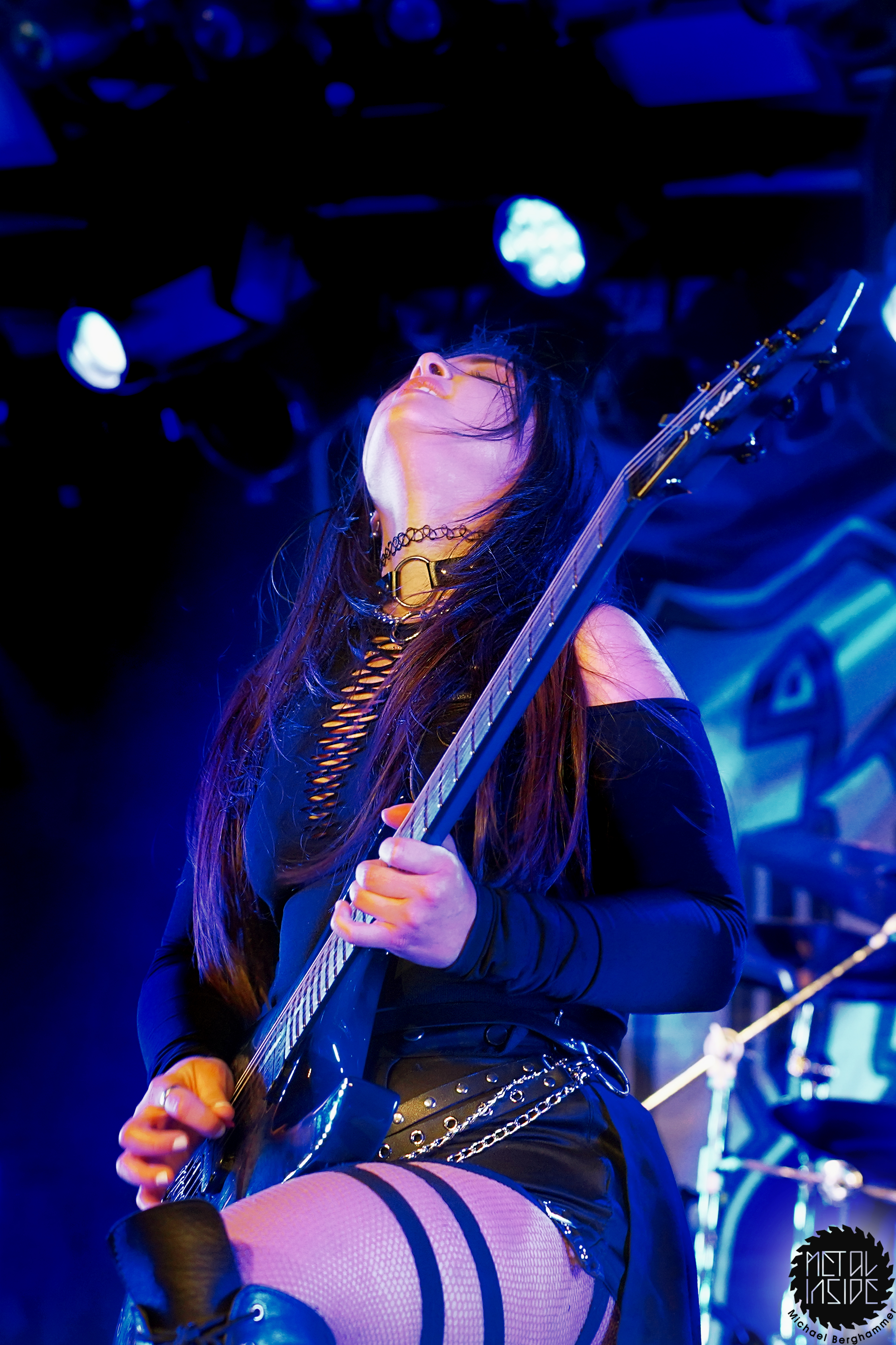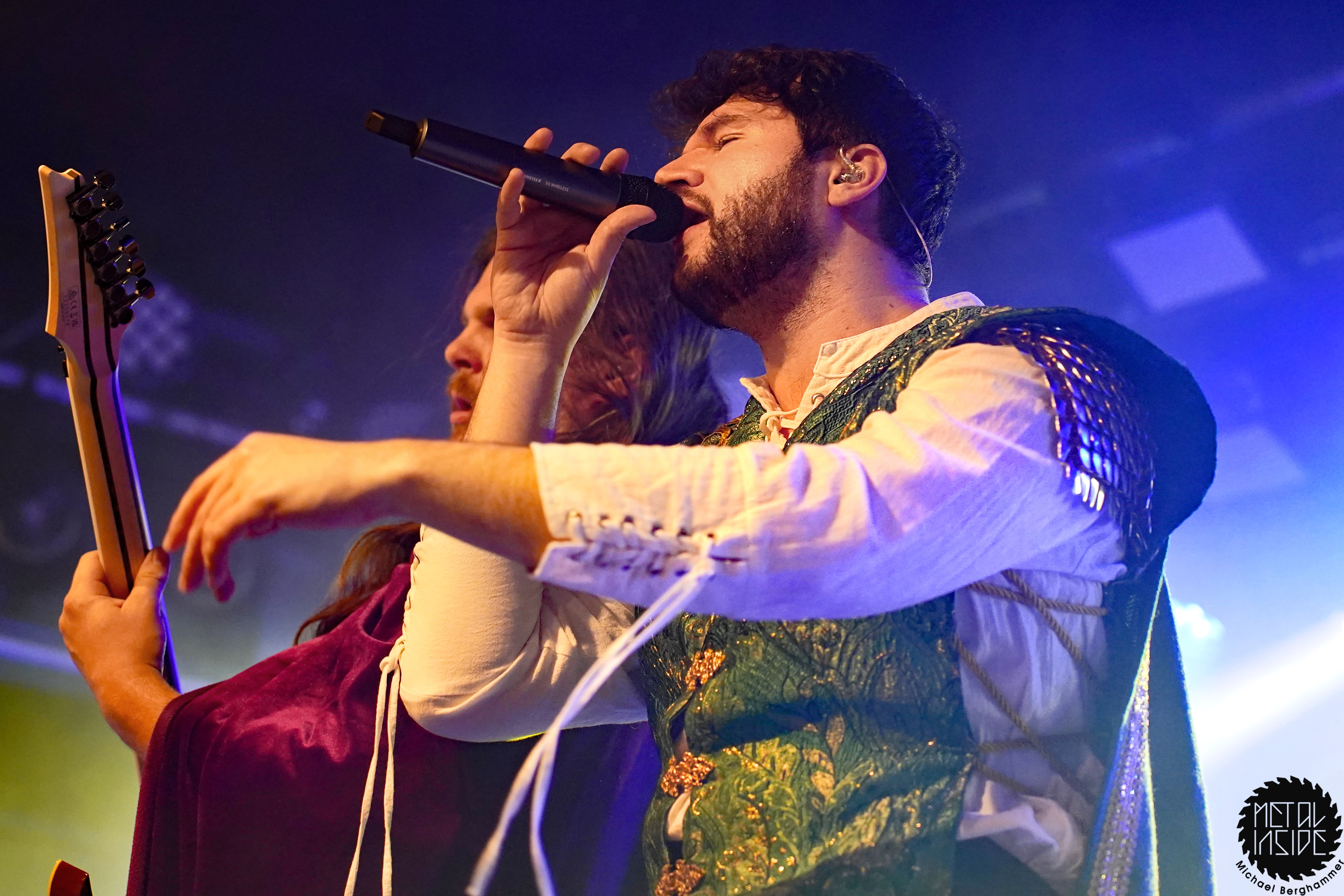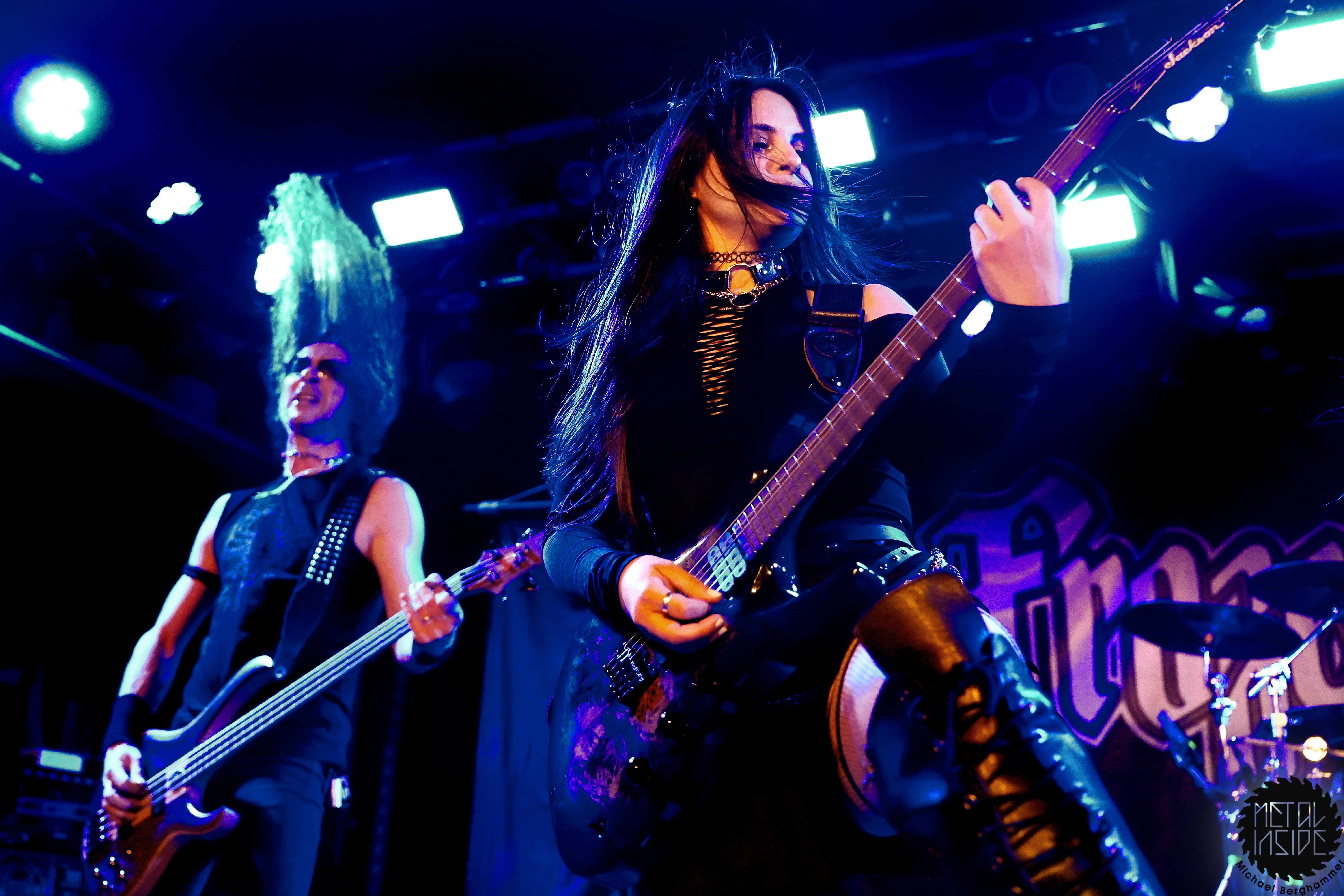 Mit dem Titelstück des aktuellen Albums „War Hearts“ geht’s auch gleich in die Vollen und das zum Sextett angewachsene Ensemble fühlt die Bühne nicht nur physisch aus. Die erst 19jährige neue Gitarristin Alessia Lanzone hat sich schon gut in die Band eingefügt und teilt sich das Rampenlicht fair mit den etablierten Sixtringern Federico Mondelli und Fabiola Bellomo. FROZEN CROWN nutzen den Vorteil ihrer Gitarrenarmee und füllen ihre Songs mit feinen und oft mehrstimmigen Harmonien und Soli. Aber über allem thront Sängerin Jade, die sehr authentisch und sympathisch erzählt, was ihr diese Tour und speziell dieser Auftritt bedeutet und gerade weil die Situation sie sichtlich mitnimmt, glaubt man ihr jedes Wort. Und die meisten anderen Bands hätten zumindest diese eine Show schlicht gecancelled. Meinen tiefsten Respekt dafür, dass sie es trotzdem durchgezogen hat. Weiter Höhepunkte stellen für mich die speedige Hymne „Steel And Gold“ (mit einer weiteren wunderbar chaotischen Ansage über „Metalle und Mineralien“; dieses Mal von Bassist Francesco Zof) und das emotionale „Ice Dragon“ dar. Letzteres wird einem verstorbenen Superfan gewidmet.