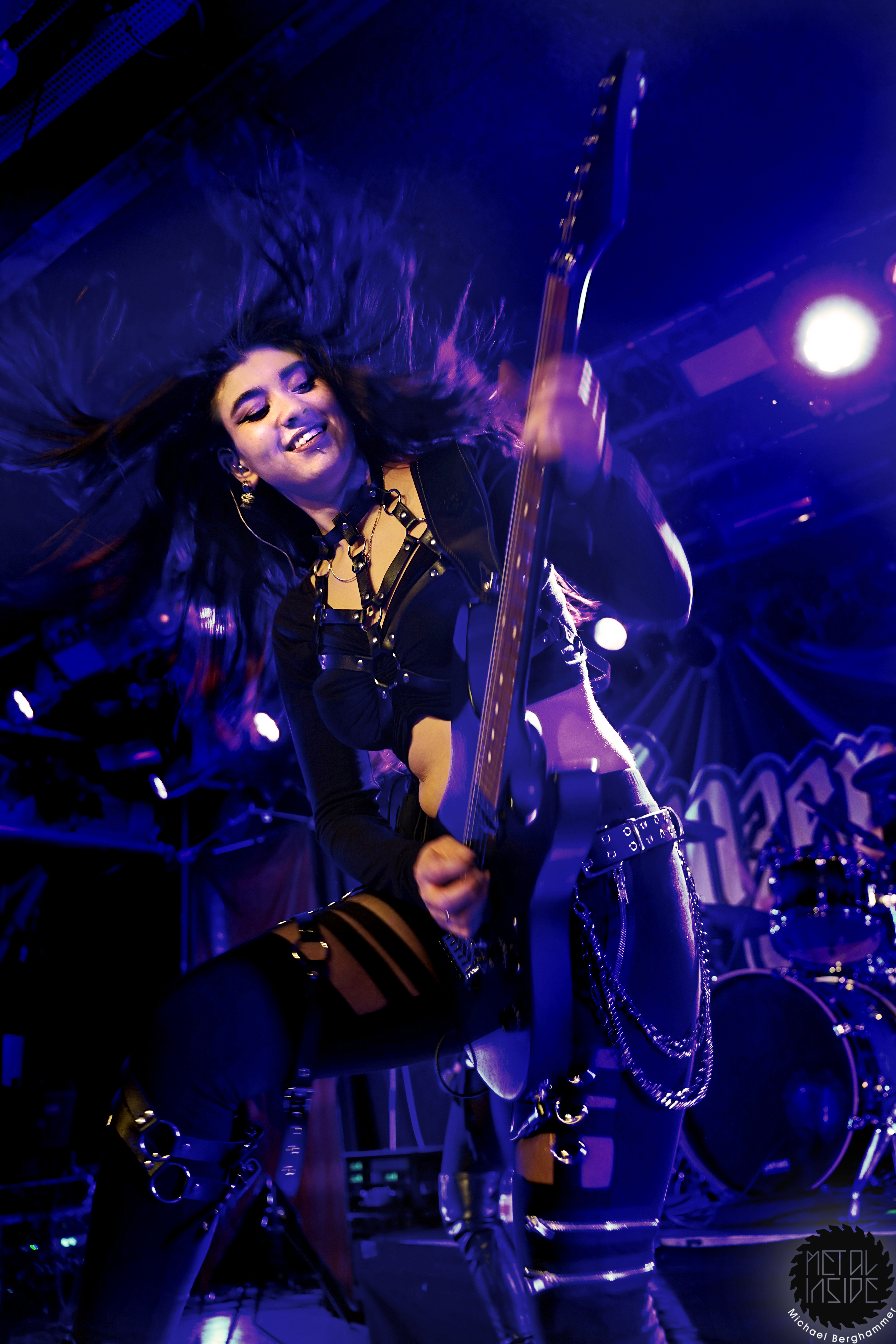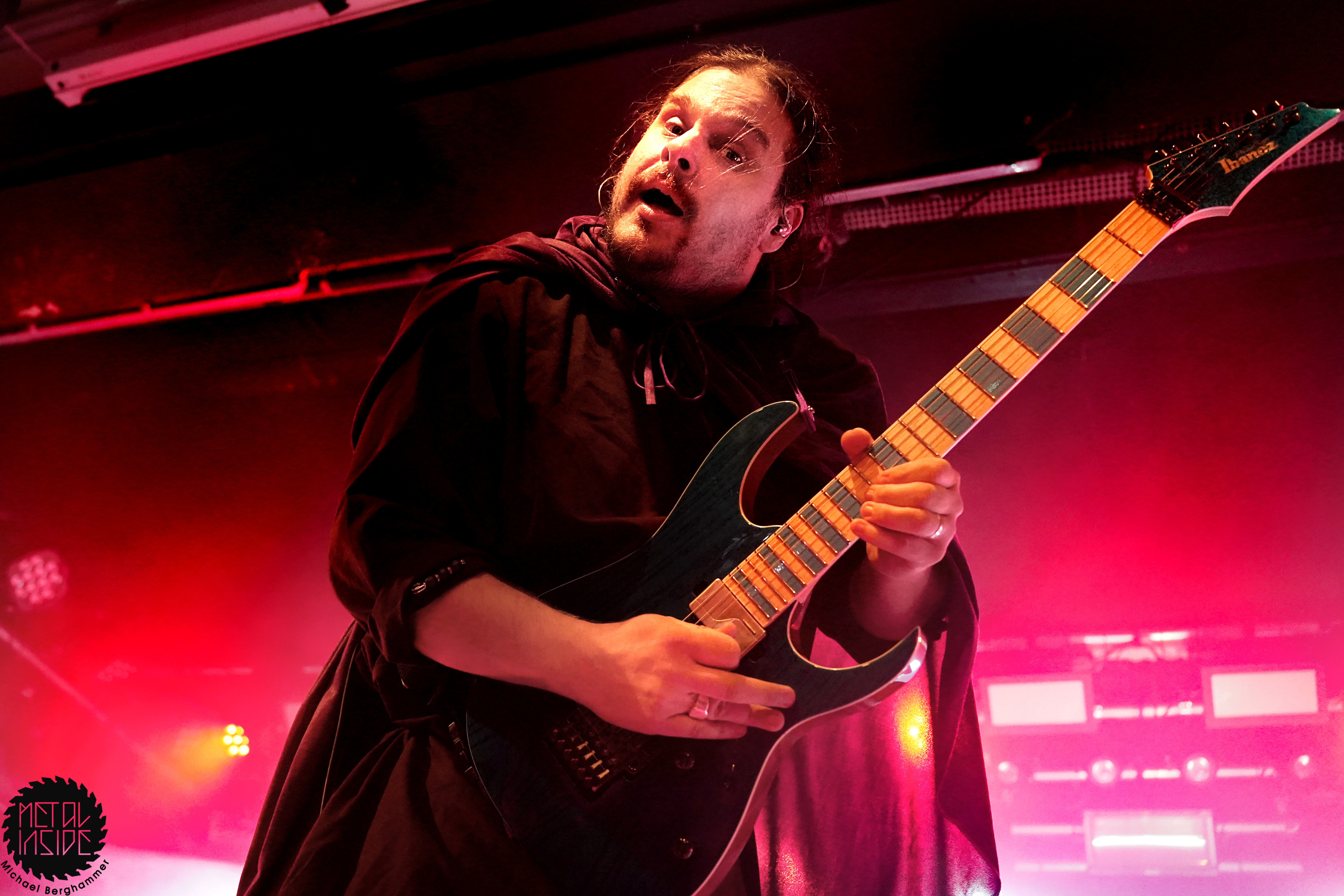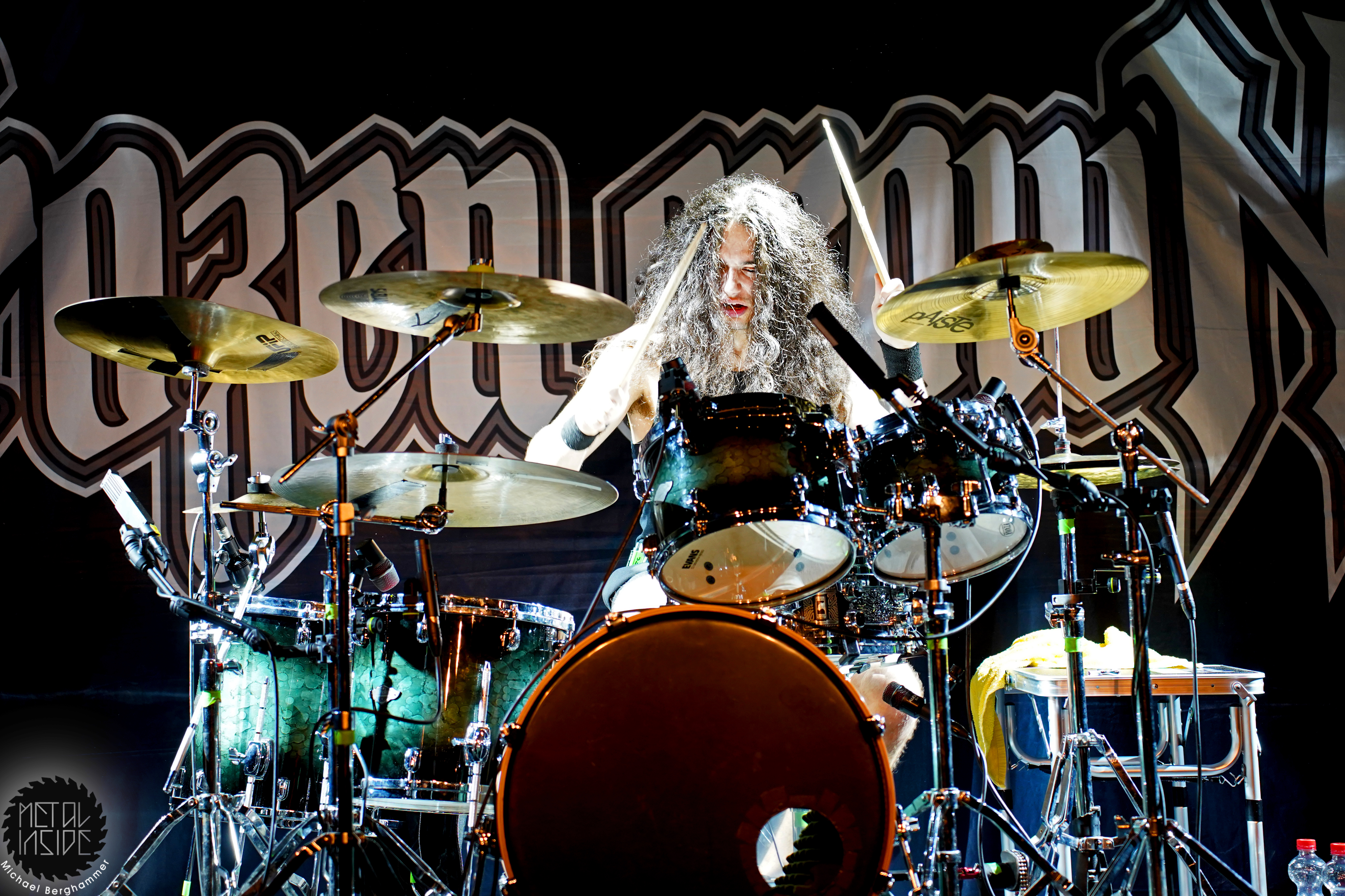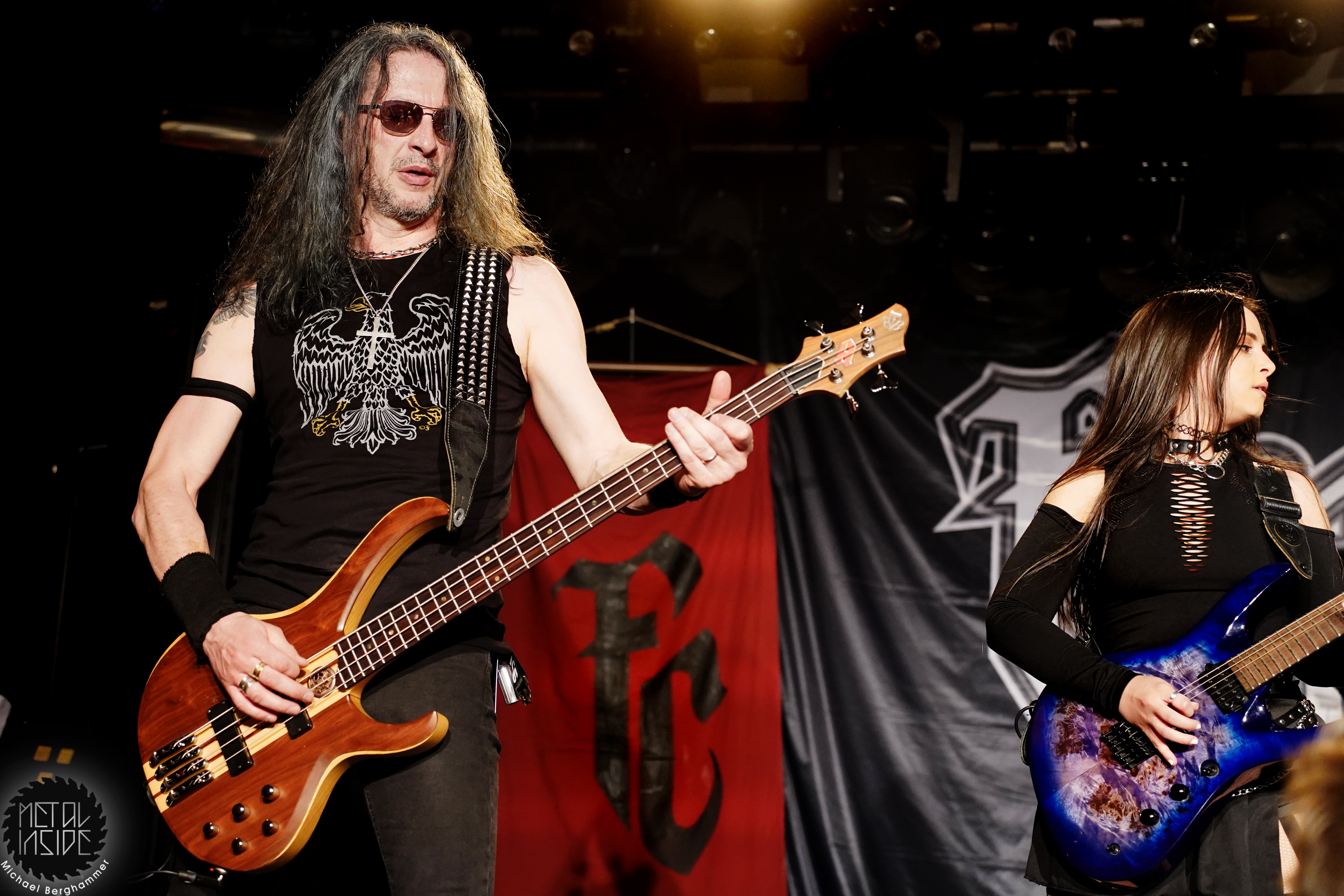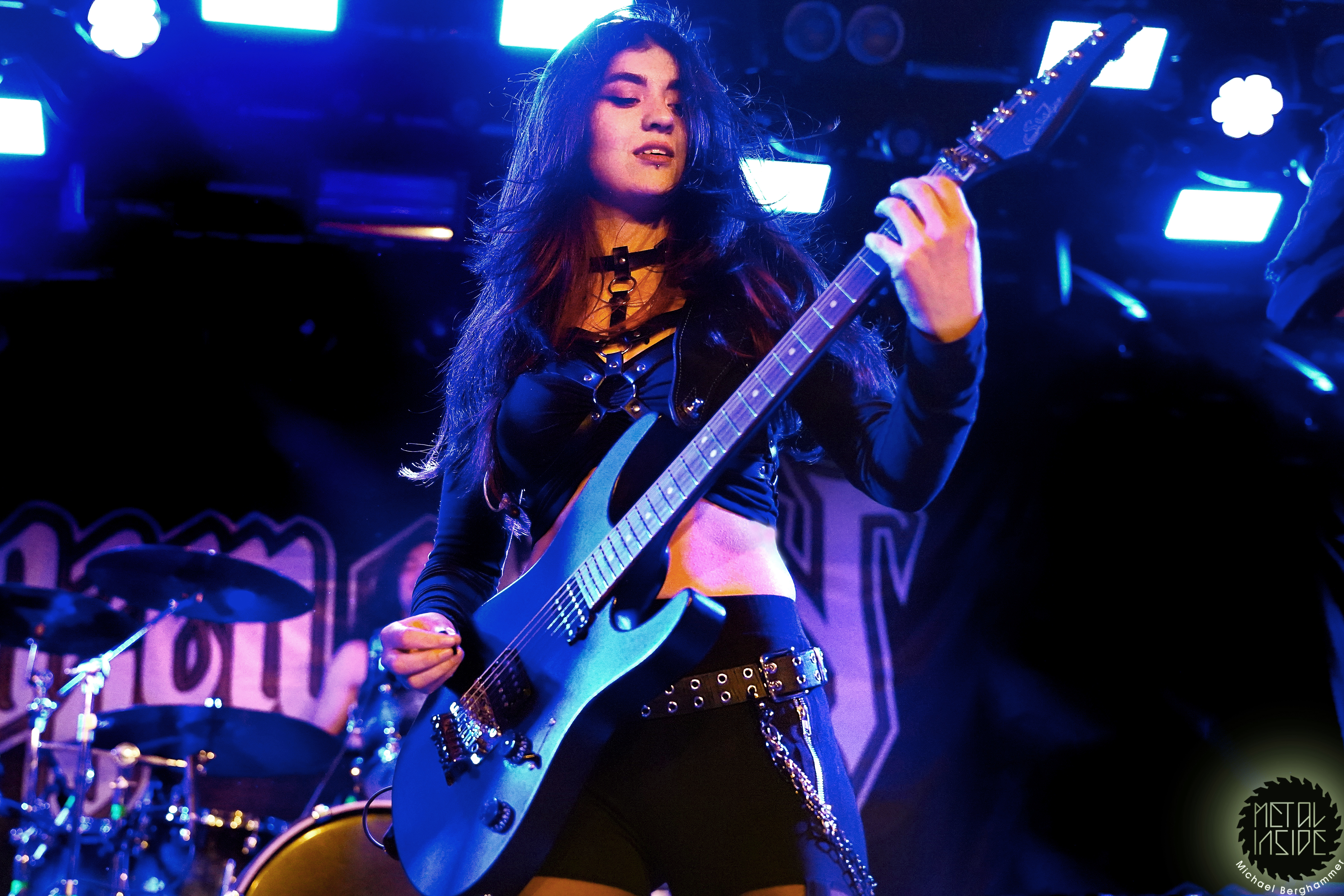 Mit dem Titelstück des aktuellen Albums „War Hearts“ geht’s auch gleich in die Vollen und das zum Sextett angewachsene Ensemble fühlt die Bühne nicht nur physisch aus. Die erst 19jährige neue Gitarristin Alessia Lanzone hat sich schon gut in die Band eingefügt und teilt sich das Rampenlicht fair mit den etablierten Sixtringern Federico Mondelli und Fabiola Bellomo. FROZEN CROWN nutzen den Vorteil ihrer Gitarrenarmee und füllen ihre Songs mit feinen und oft mehrstimmigen Harmonien und Soli. Aber über allem thront Sängerin Jade, die sehr authentisch und sympathisch erzählt, was ihr diese Tour und speziell dieser Auftritt bedeutet und gerade weil die Situation sie sichtlich mitnimmt, glaubt man ihr jedes Wort. Und die meisten anderen Bands hätten zumindest diese eine Show schlicht gecancelled. Meinen tiefsten Respekt dafür, dass sie es trotzdem durchgezogen hat. Weiter Höhepunkte stellen für mich die speedige Hymne „Steel And Gold“ (mit einer weiteren wunderbar chaotischen Ansage über „Metalle und Mineralien“; dieses Mal von Bassist Francesco Zof) und das emotionale „Ice Dragon“ dar. Letzteres wird einem verstorbenen Superfan gewidmet.